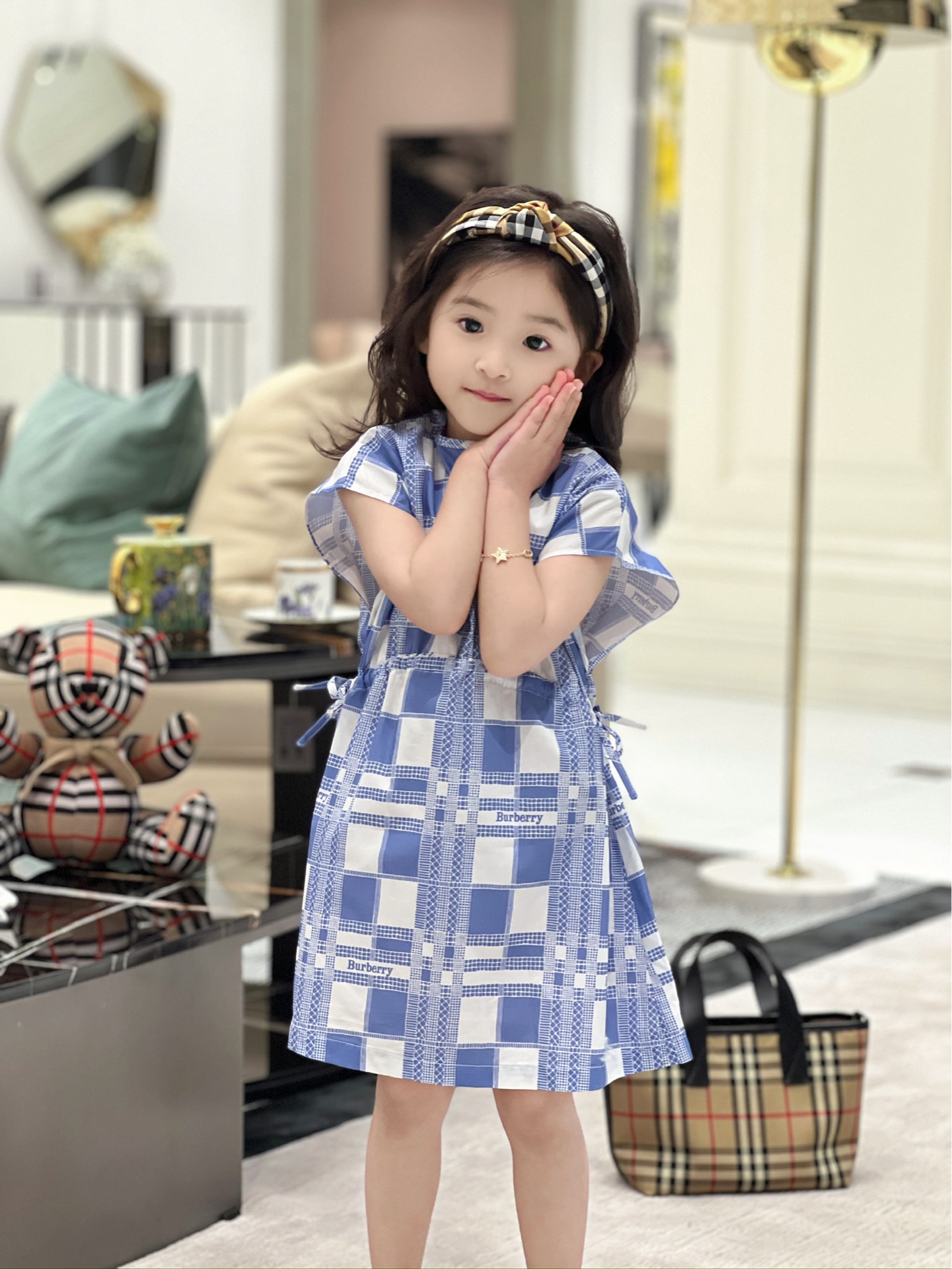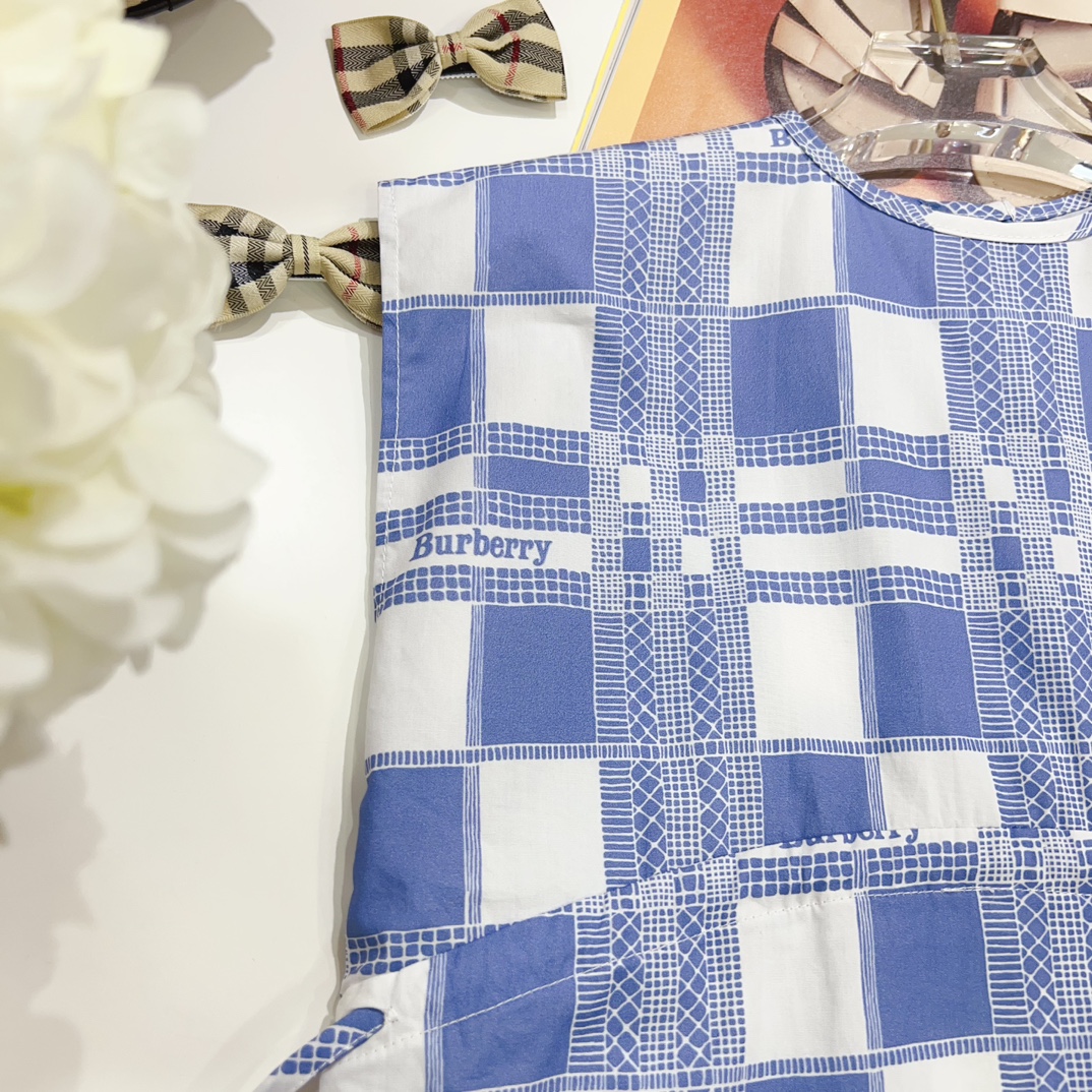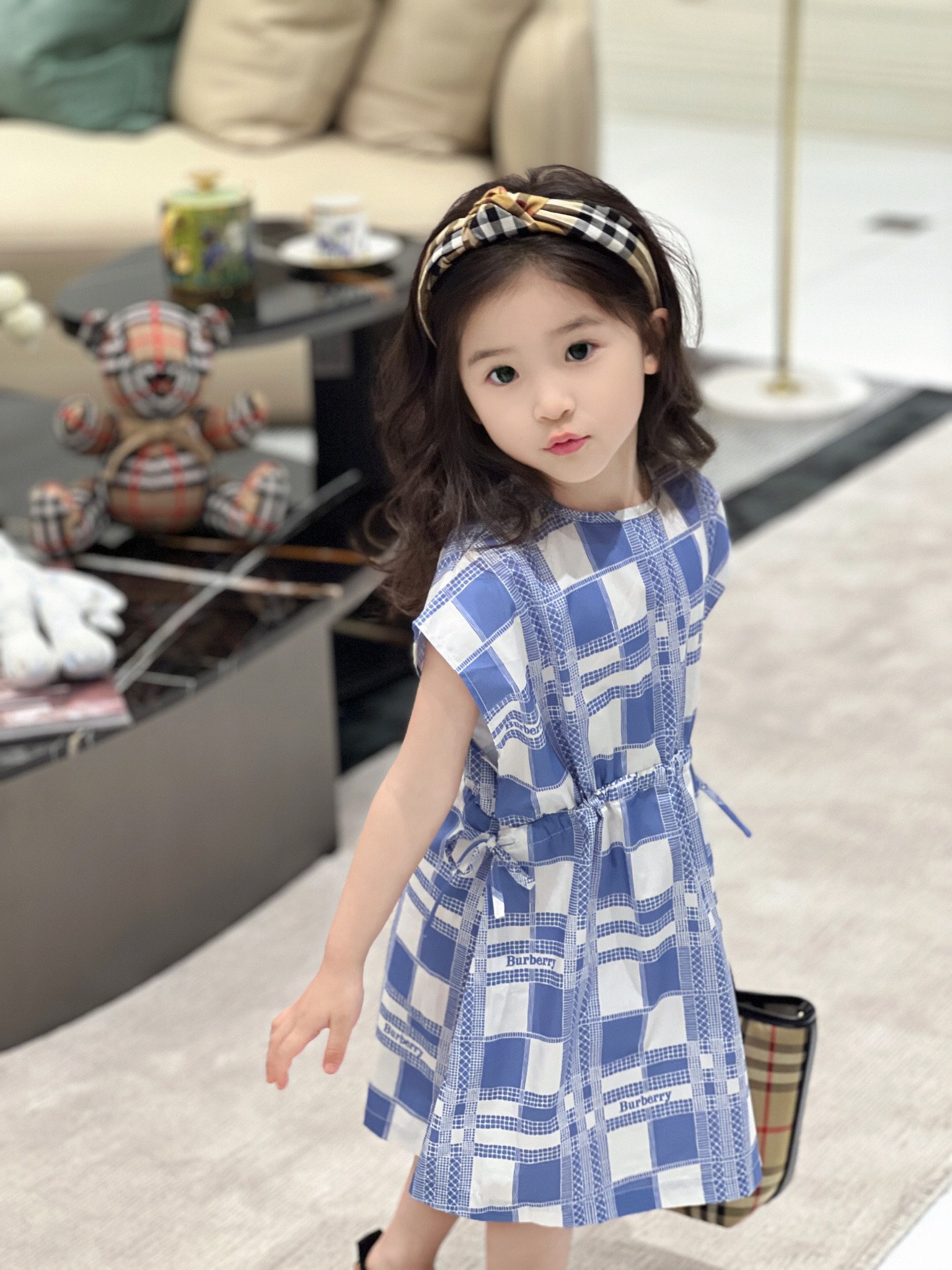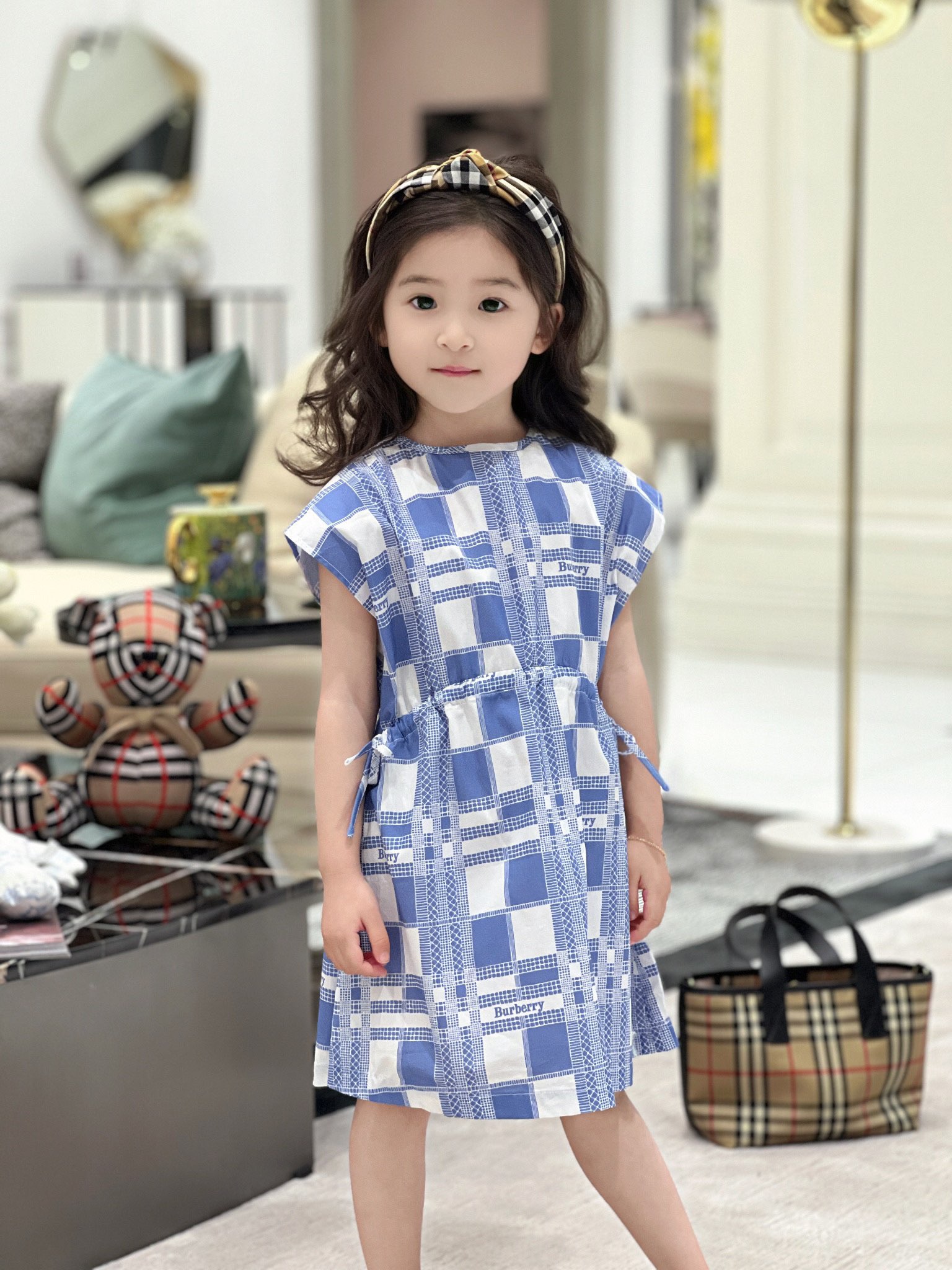 NIGO Burberry Kid's Summer Colorblocking Plaid Letter Print Cotton Sleeveless Round Neck Fitted Short Solid Color Dress #nigo31289