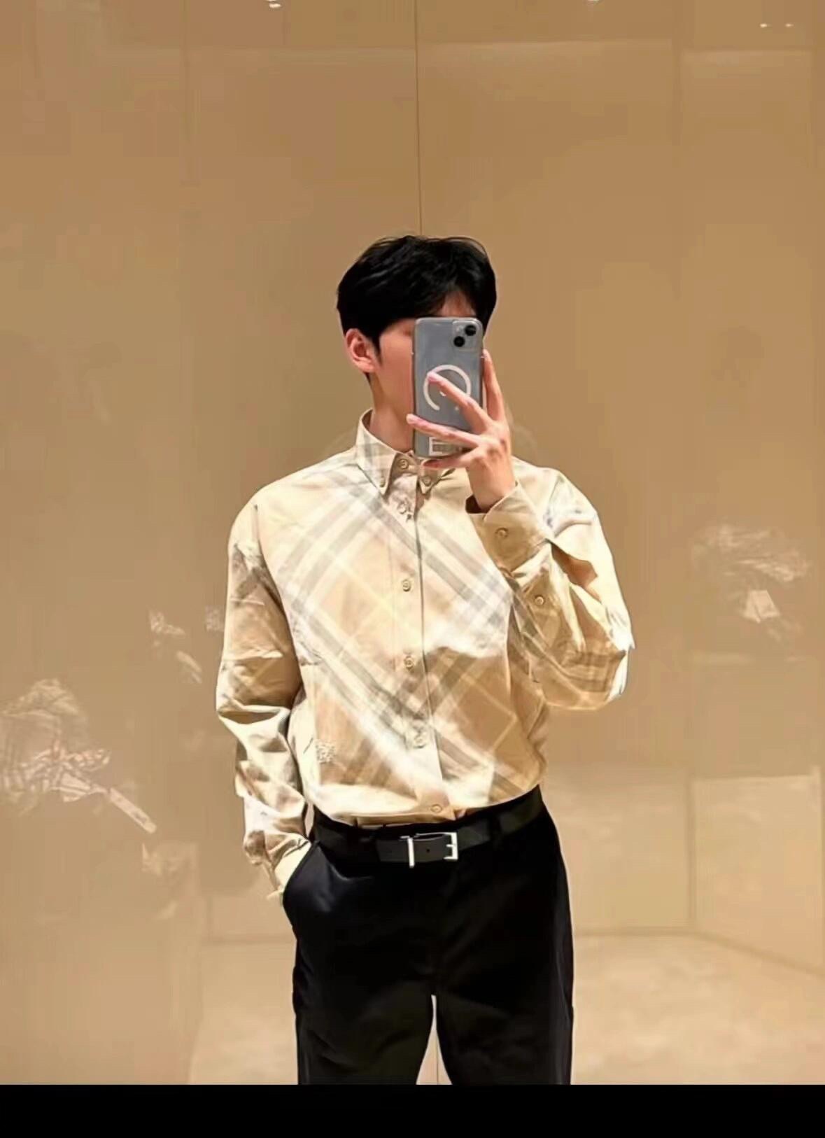 NIGO Burberry Men's Spring And Autumn New Retro Plaid Cotton Shirt Color Blocking Single-breasted Lapel Button Down Shirt #nigo71363