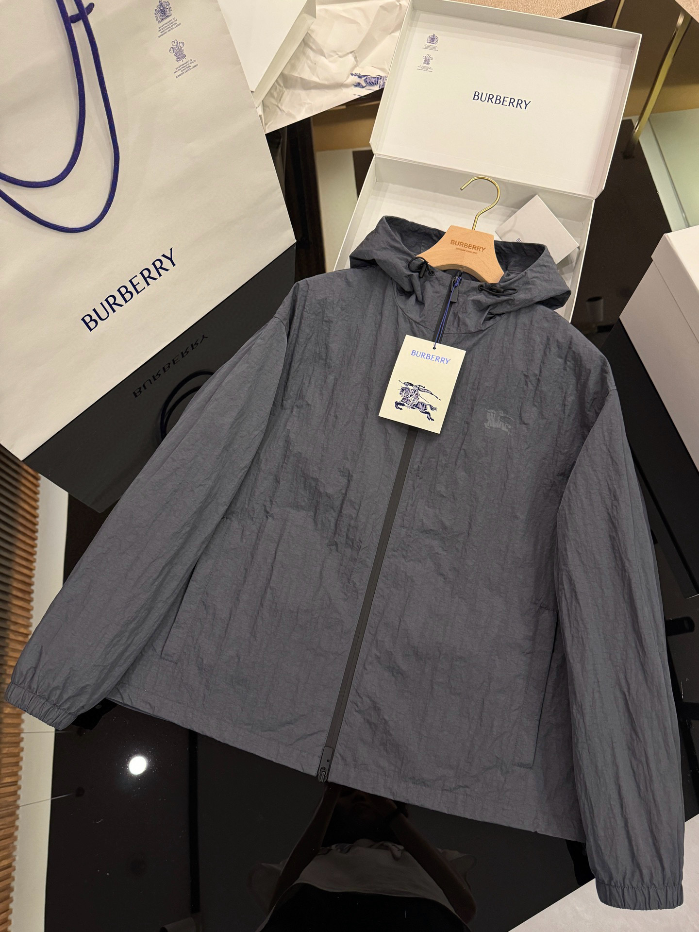 NIGO Burberry Men's Spring & Autumn EKD Badge Nylon Solid Color Long Sleeve Zipper Loose Hooded Jacket #nigo76111