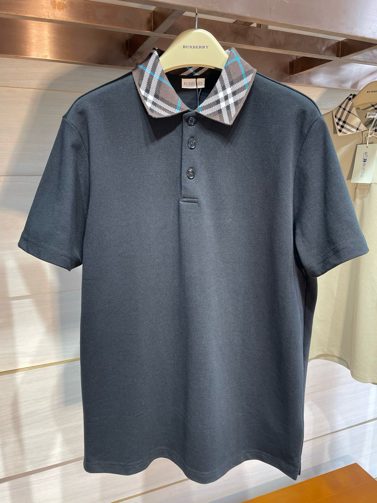 NIGO Burberry Men's Summer Check Printed Polo Neck Solid Color Short Sleeve T-Shirt #nigo75868