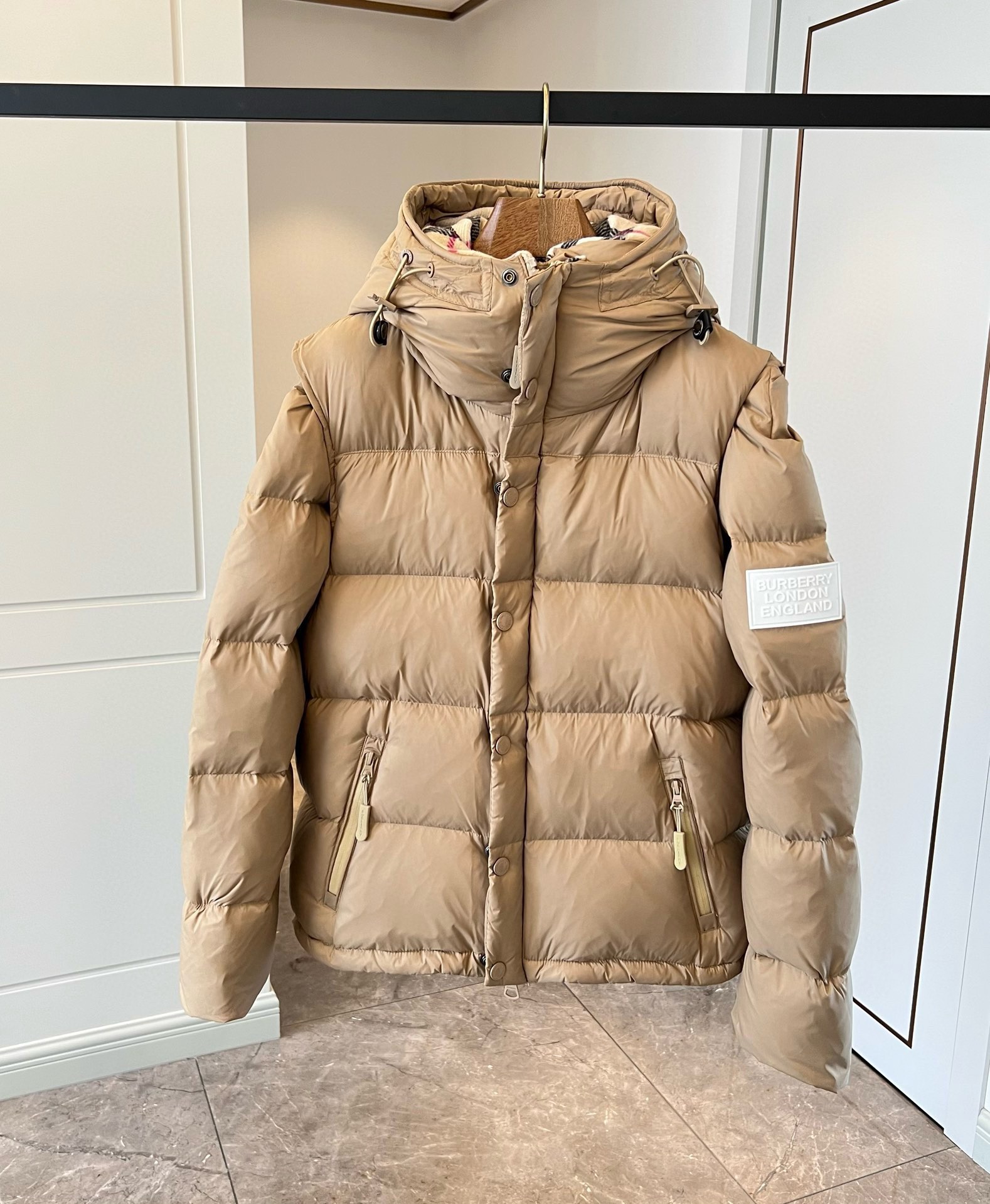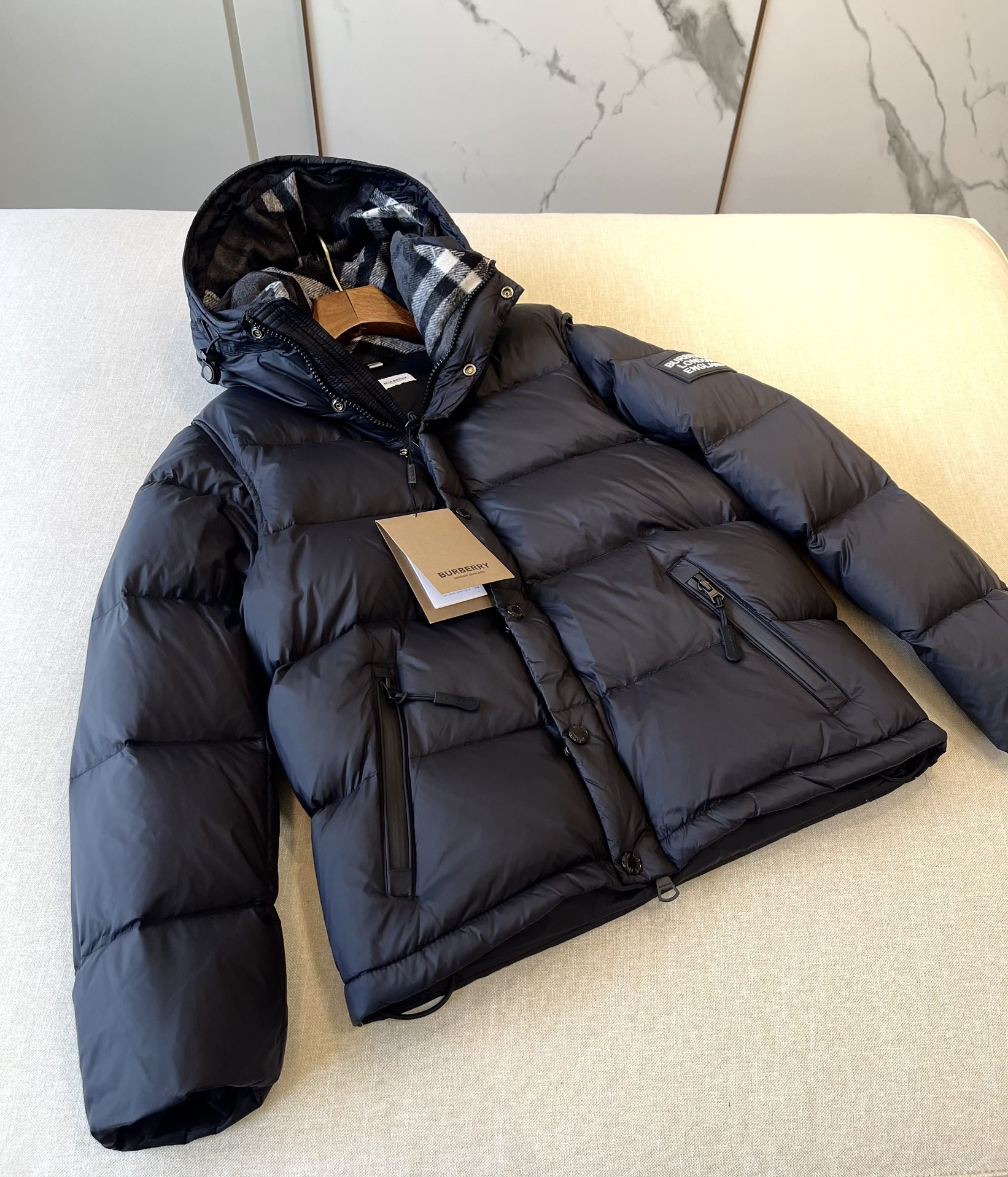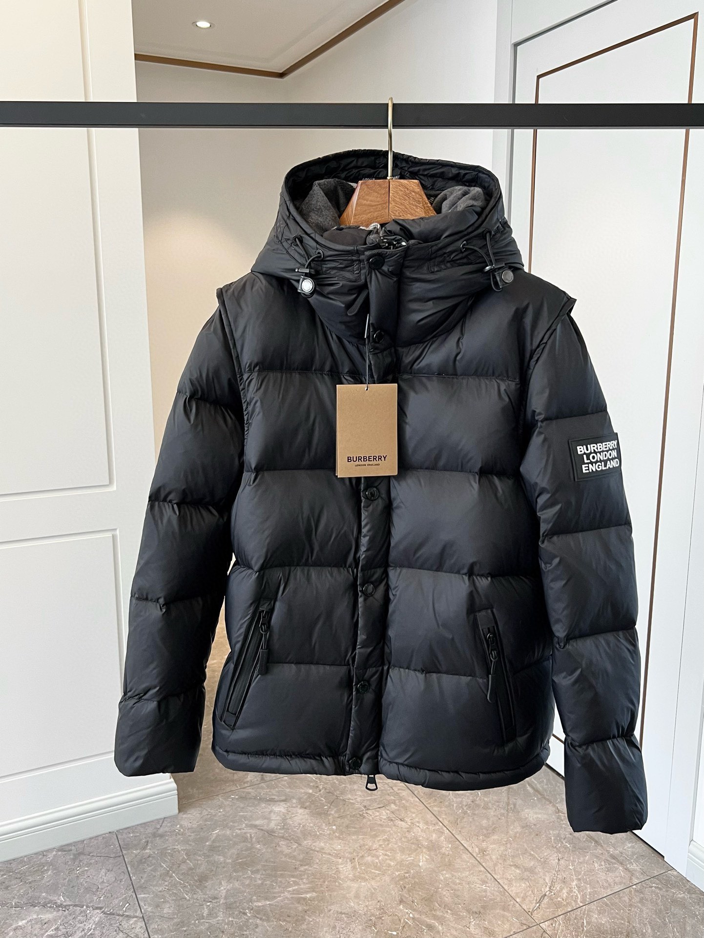 NIGO Burberry Men's Winter Solid Color Hooded Drawstring Single Breasted Detachable Long Sleeve Puffer Down Jacket #nigo73451