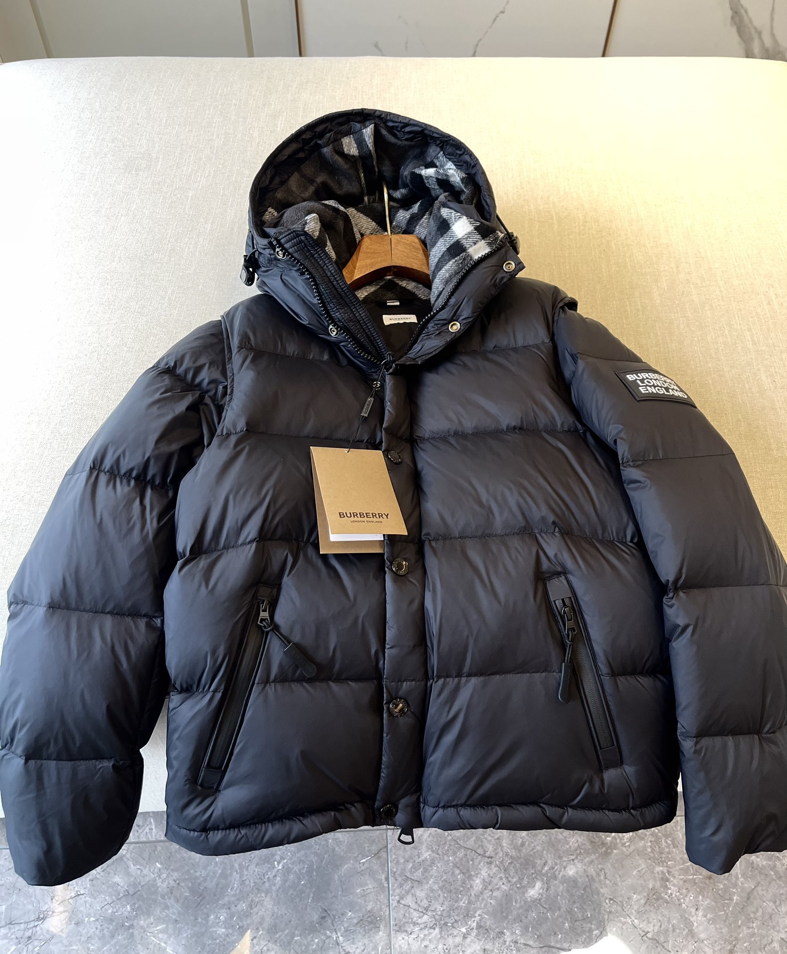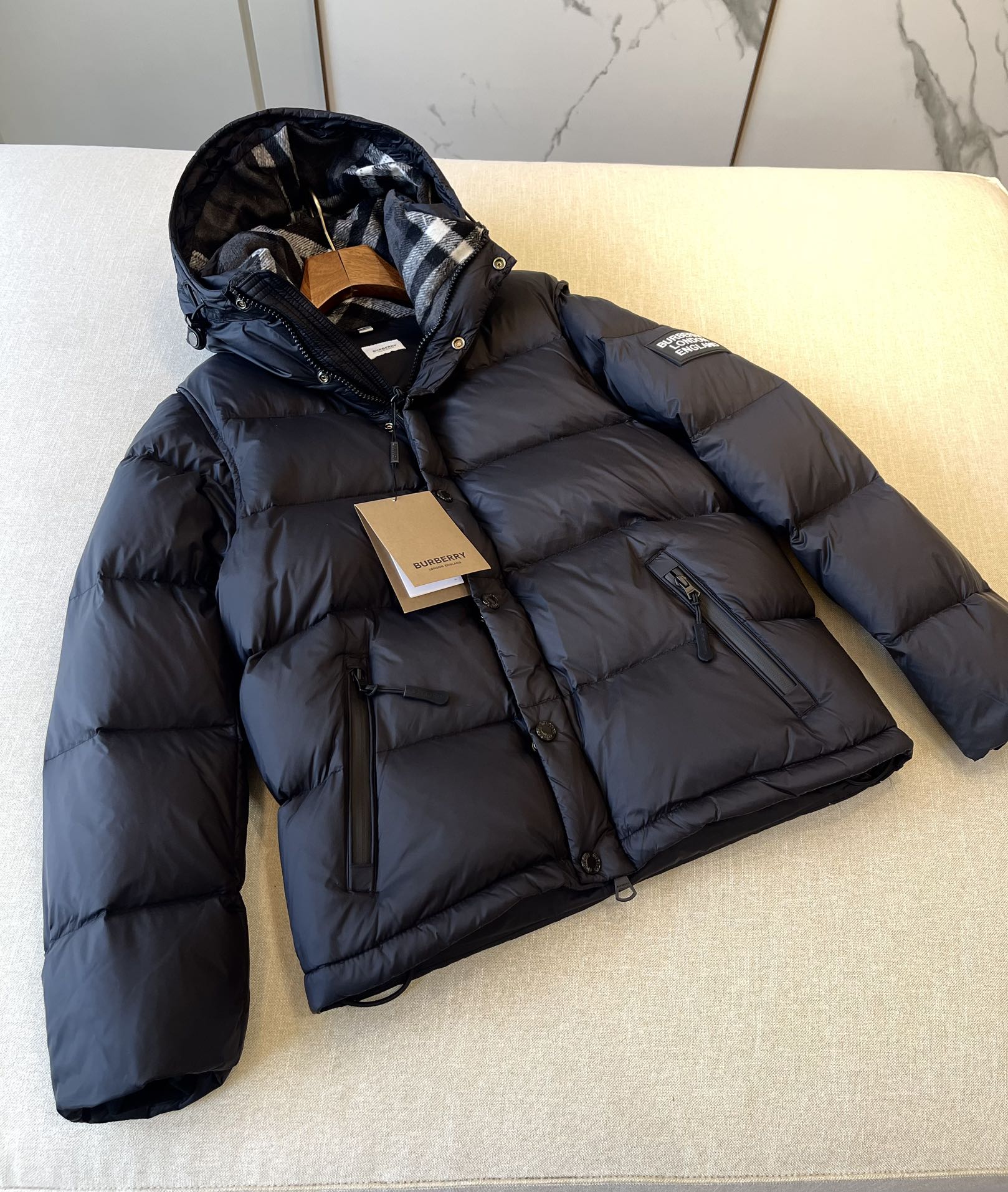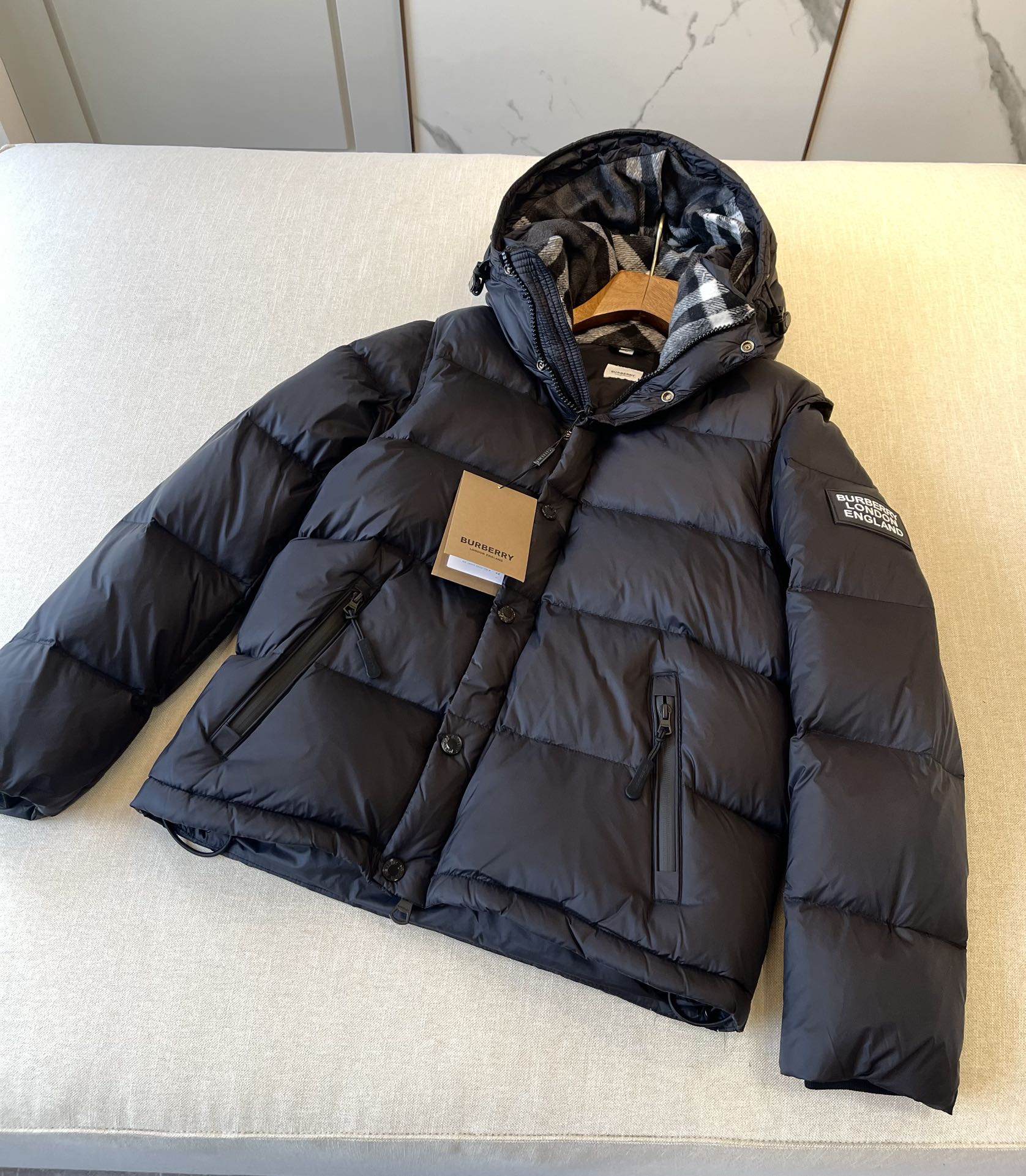 NIGO Burberry Men's Winter Solid Color Hooded Drawstring Single Breasted Detachable Long Sleeve Puffer Down Jacket #nigo73451