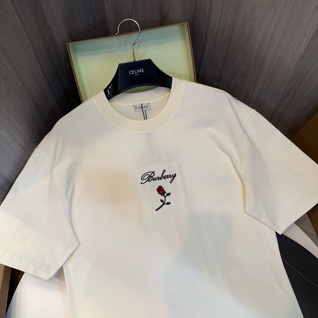 NIGO Burberry Men's Women's Summer Letter Floral Embroidery Cotton Round Neck Solid Color Short Sleeve T-Shirt #nigo76328