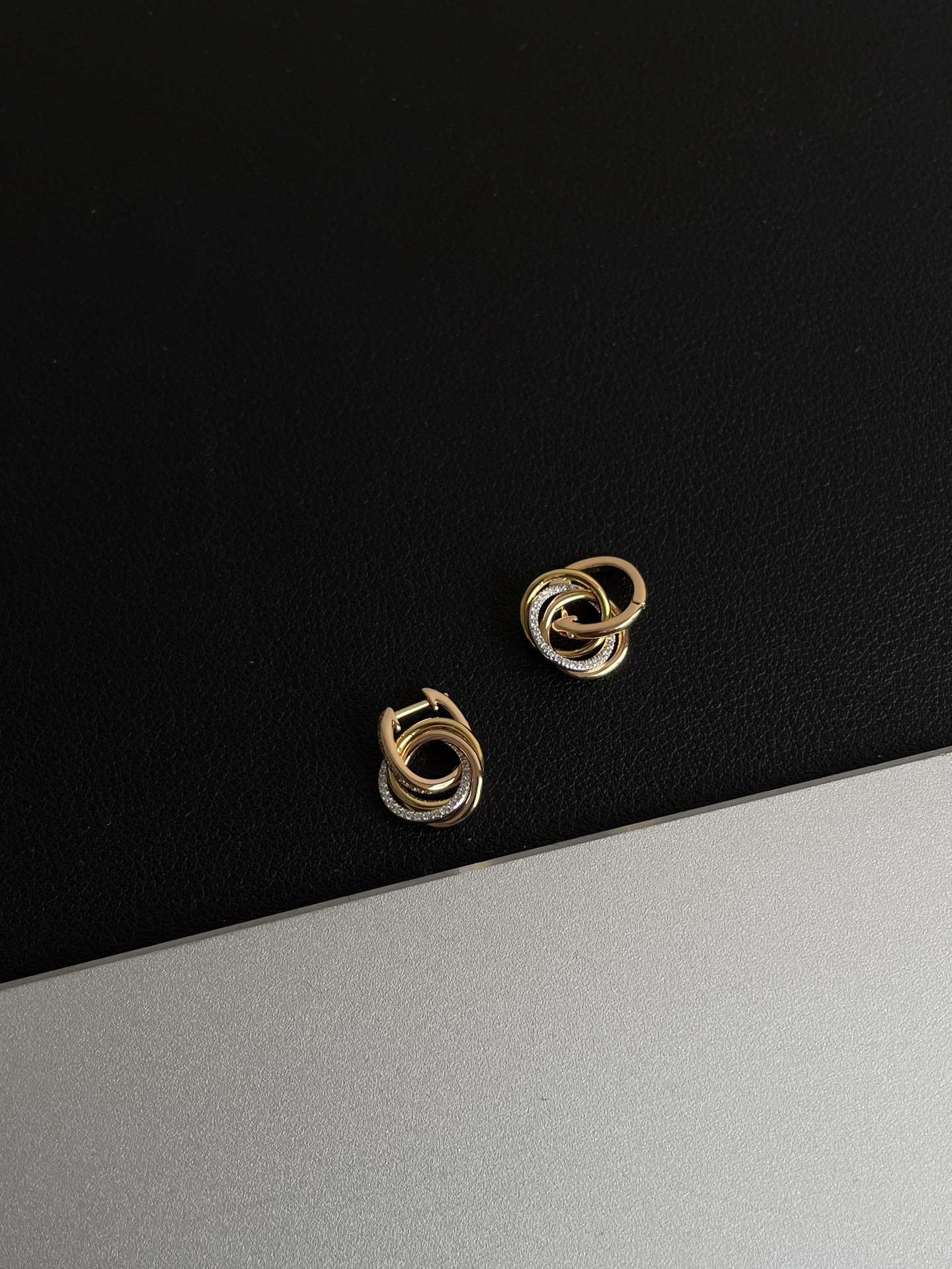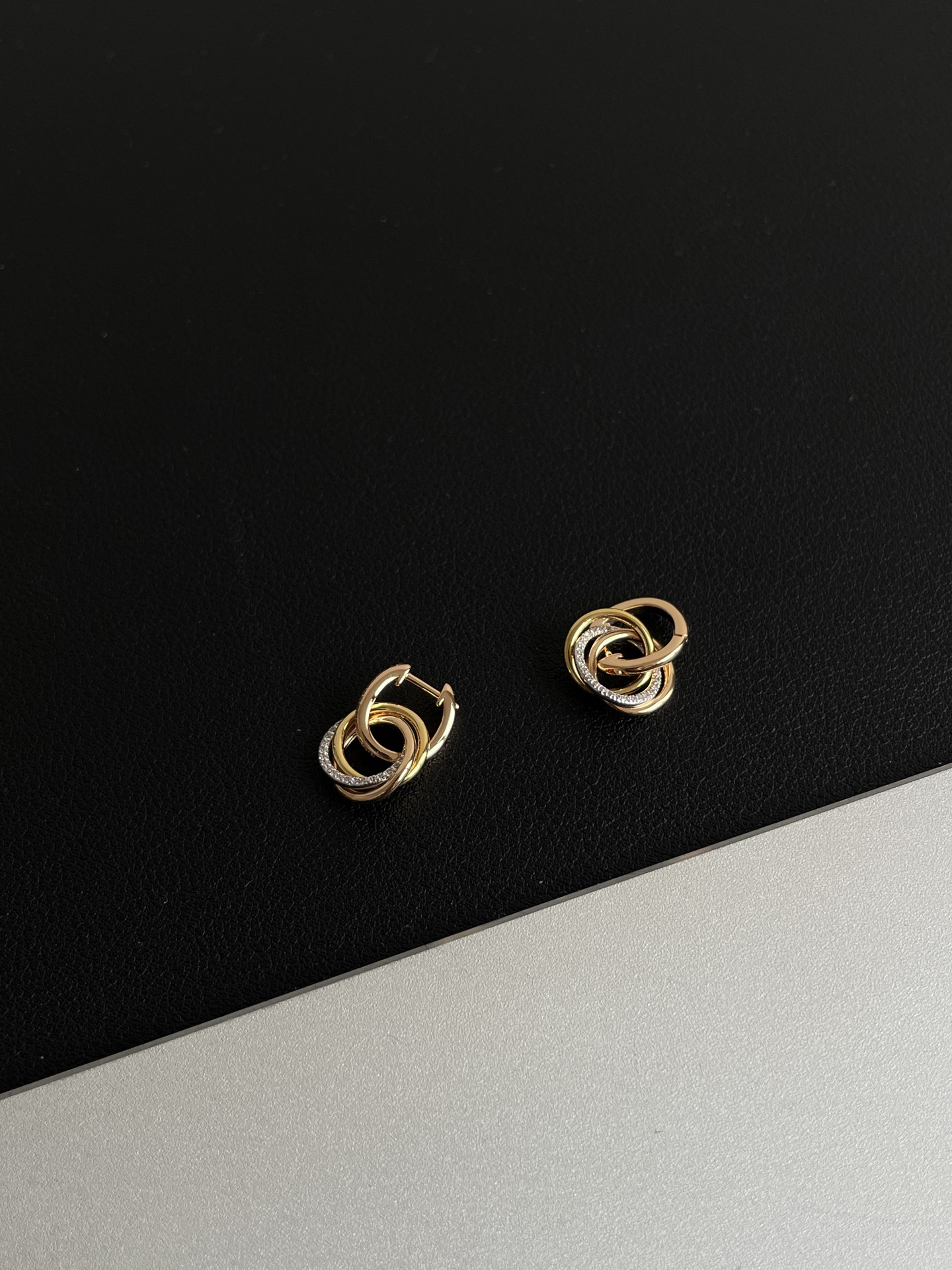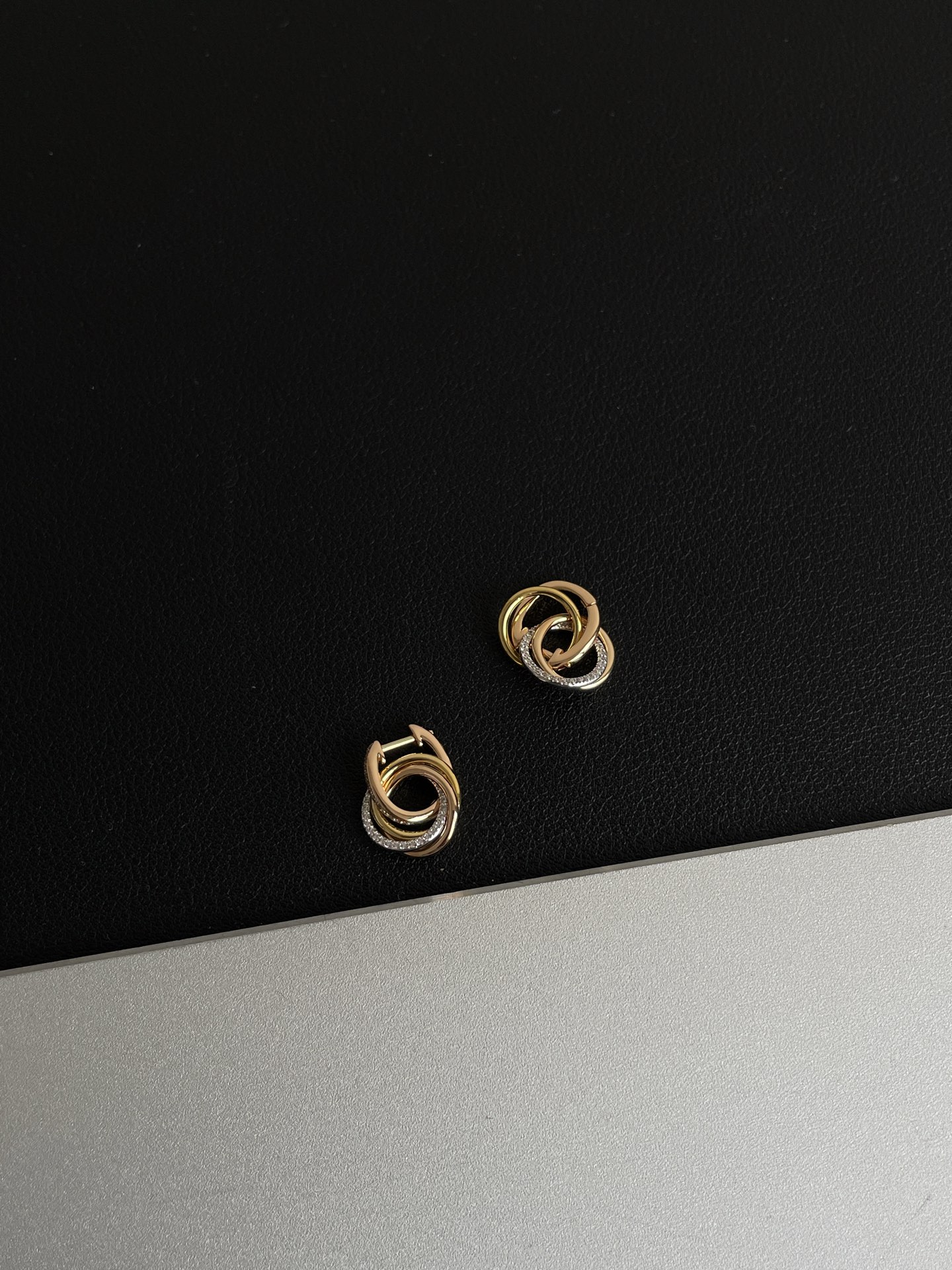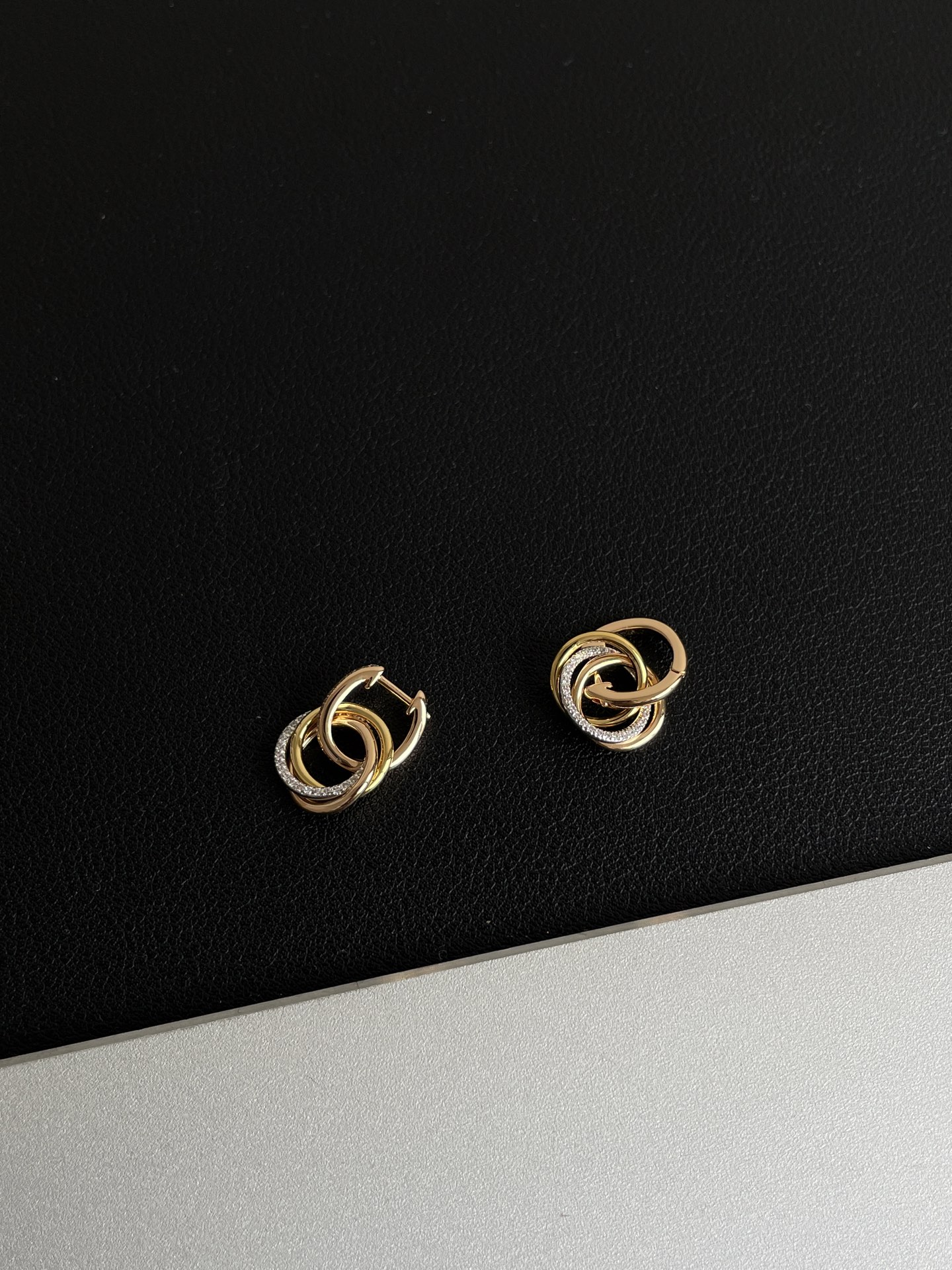 NIGO Cartier TRINITY Women's Semi-Pave Diamond Tri-color Triple Hoop Earrings Jewelry #nigo76548