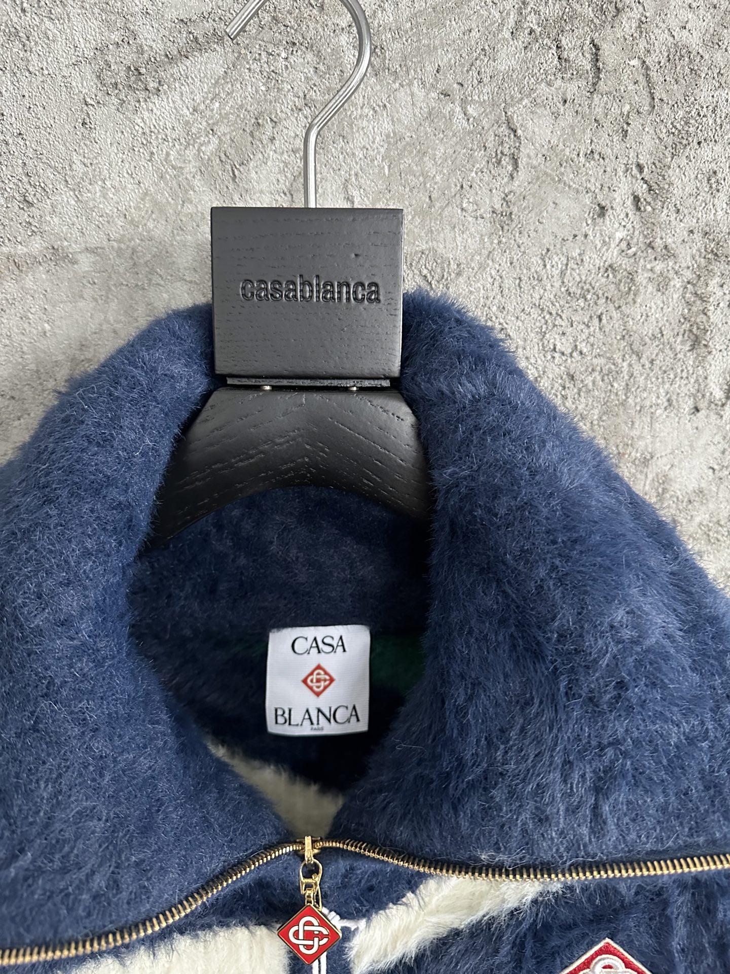 NIGO Casablanca Men's and Women's Autumn/Winter Color Block Printed High Neck Zipper Long Sleeve Knitted Jacket #nigo77328