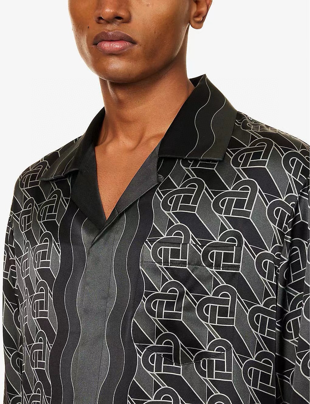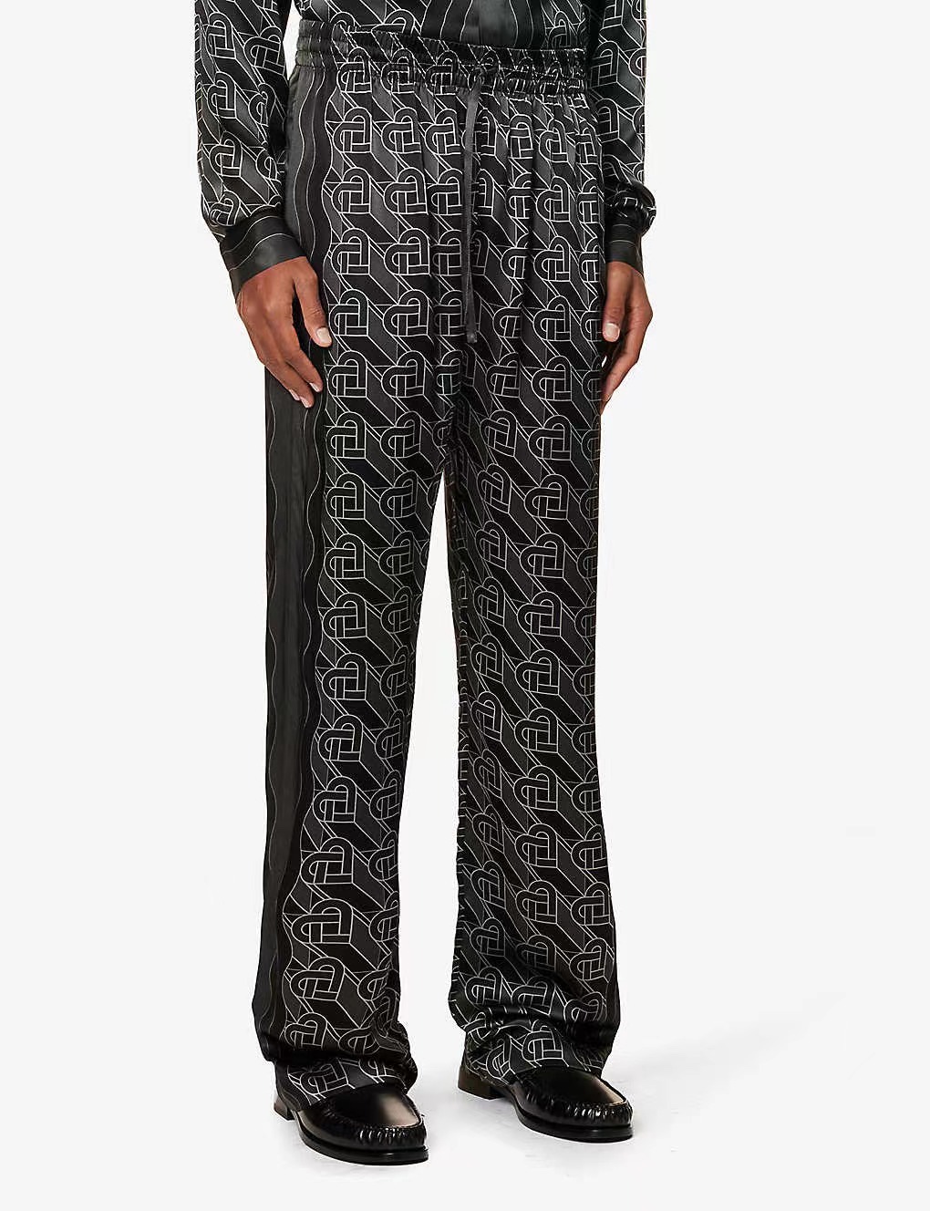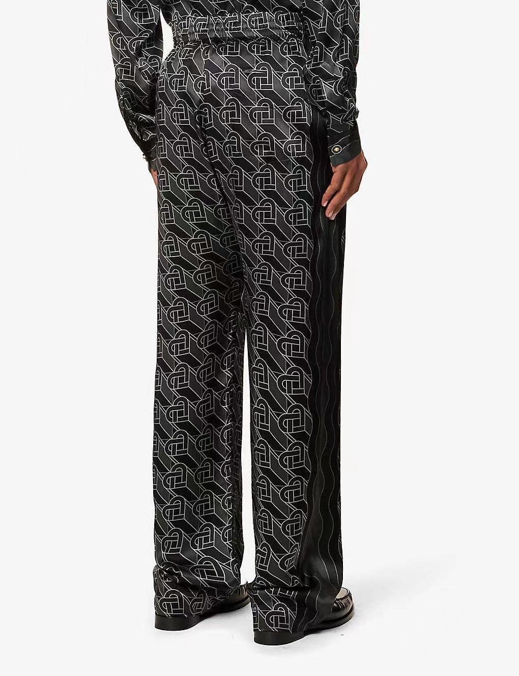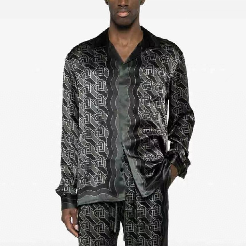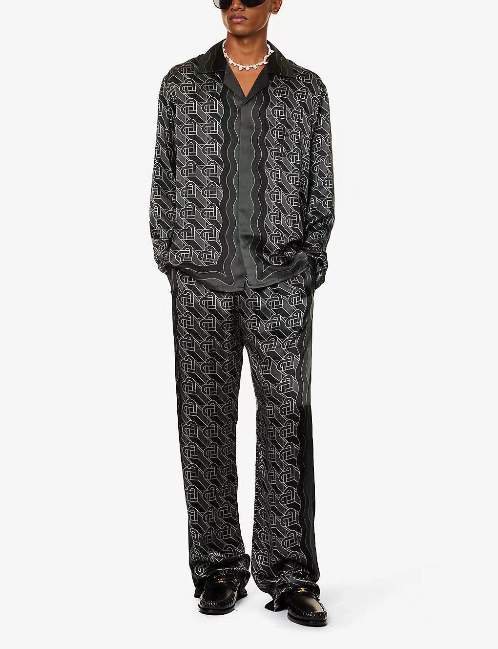 NIGO Casablanca Men's Spring And Fall Solid Color Heart Full Print Lapel Long-Sleeved Silk Loose Shirt Casual Elastic Waist Straight Pants Ngvp #nigo8827