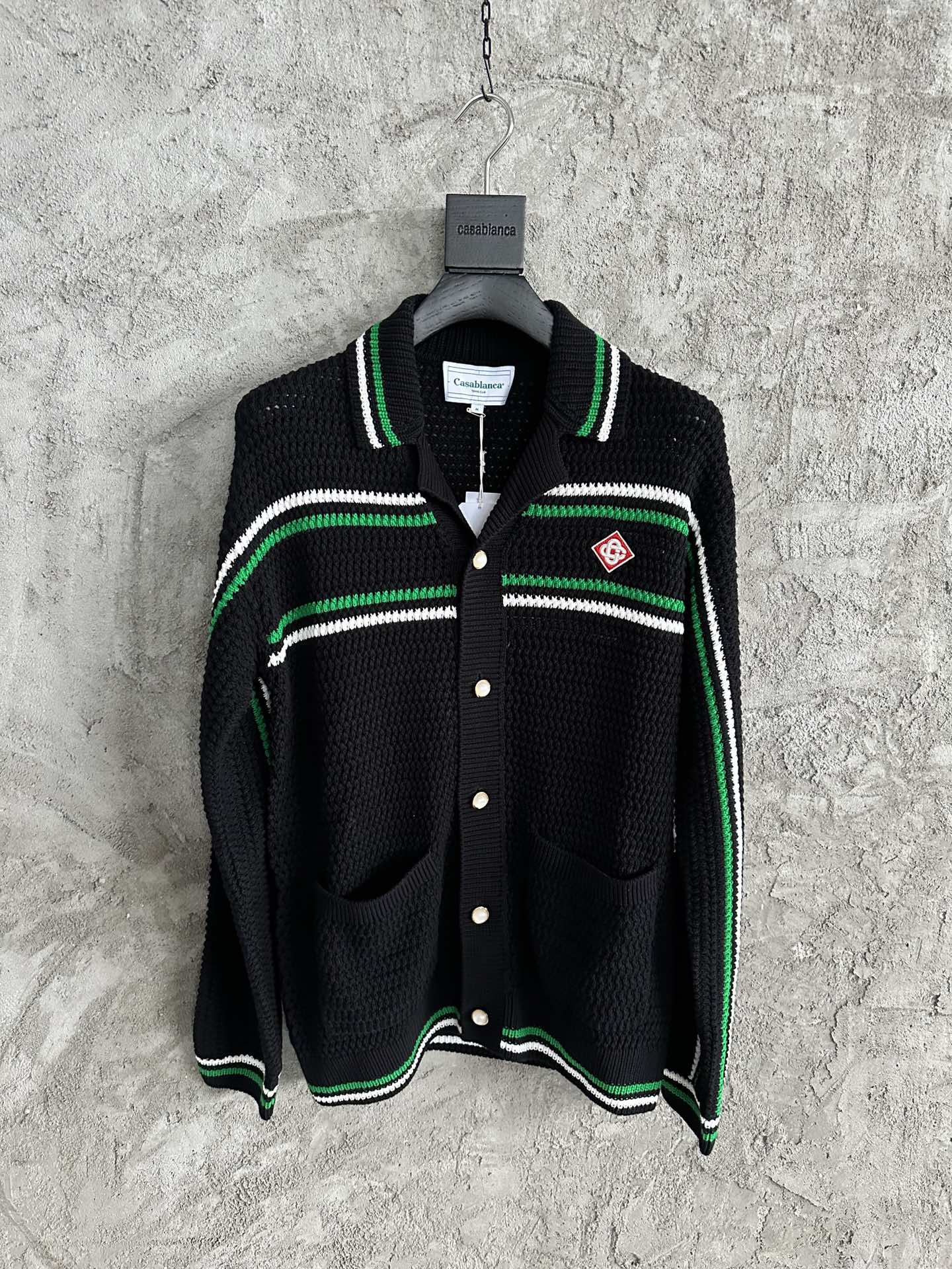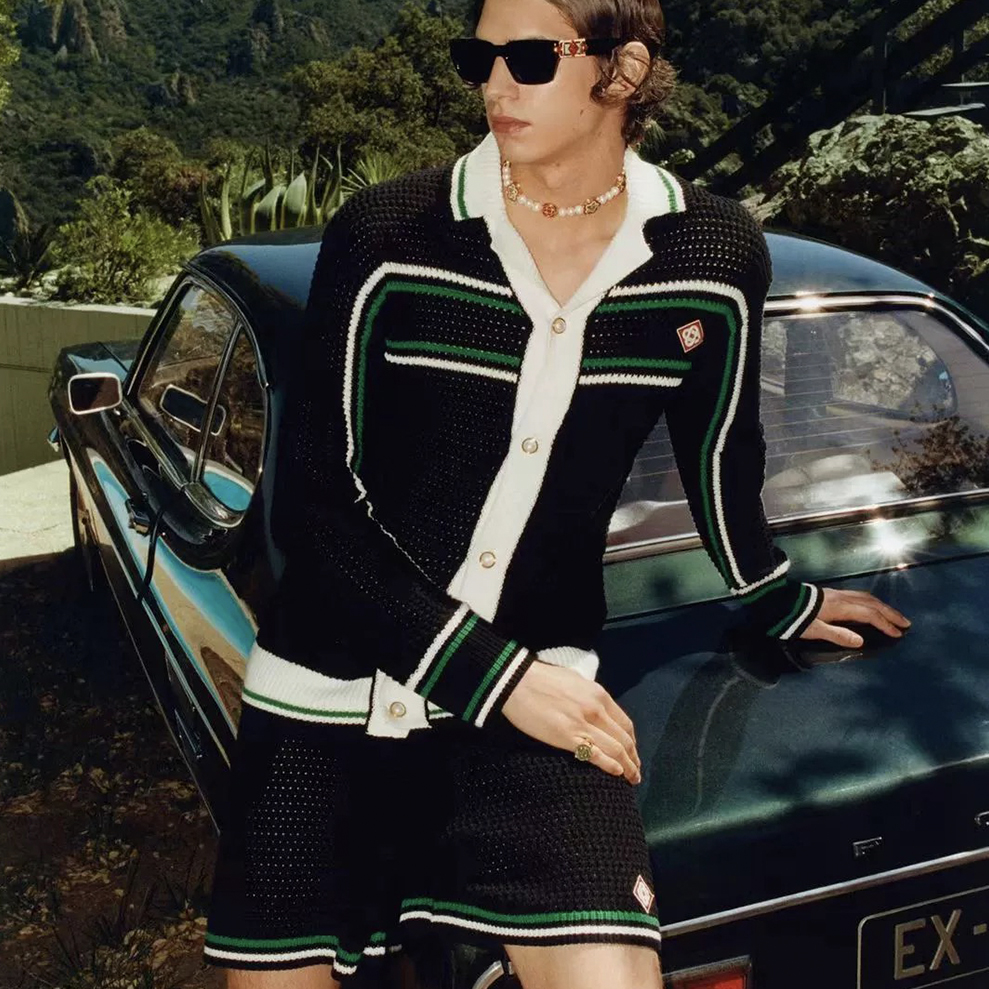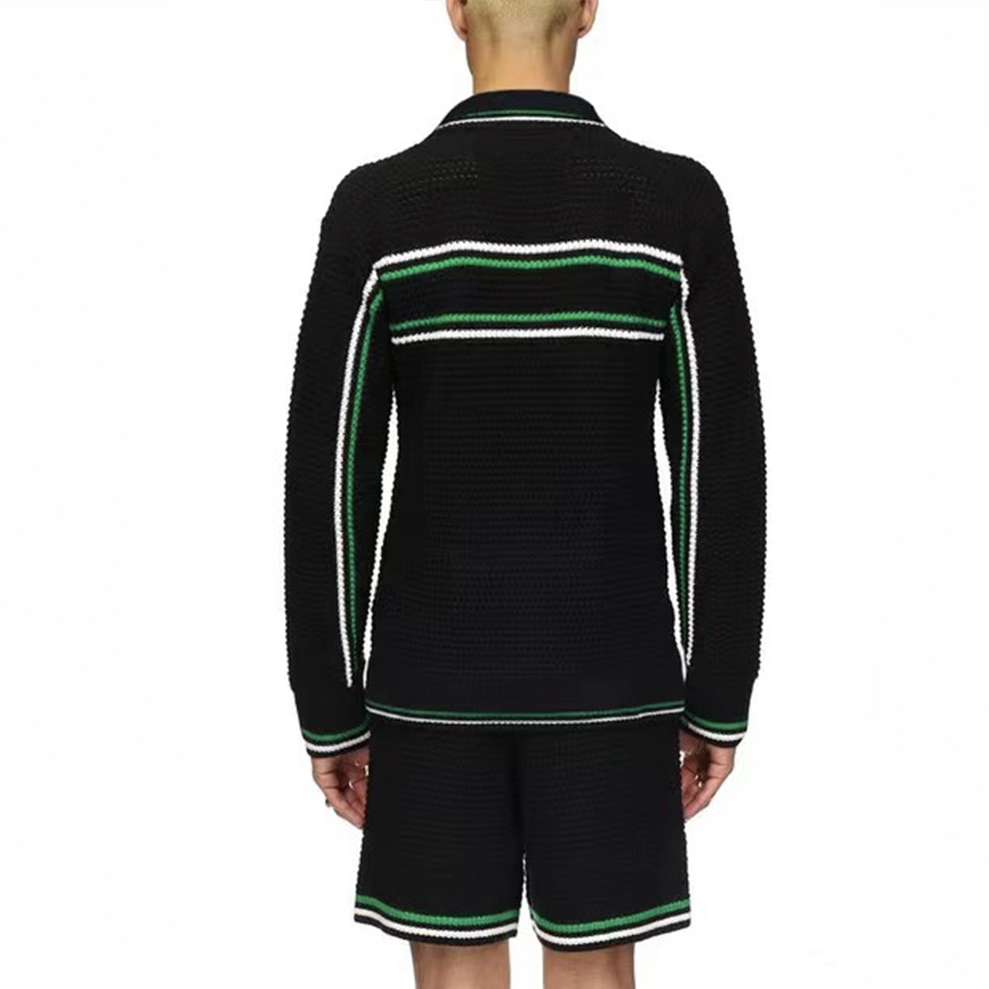 NIGO Casablanca Men's Spring And Summer Knitting Stripes Color Blocking Long-sleeved Knitted Sweater Single-breasted Cardigan Casual Knitted Shorts Set #nigo71324