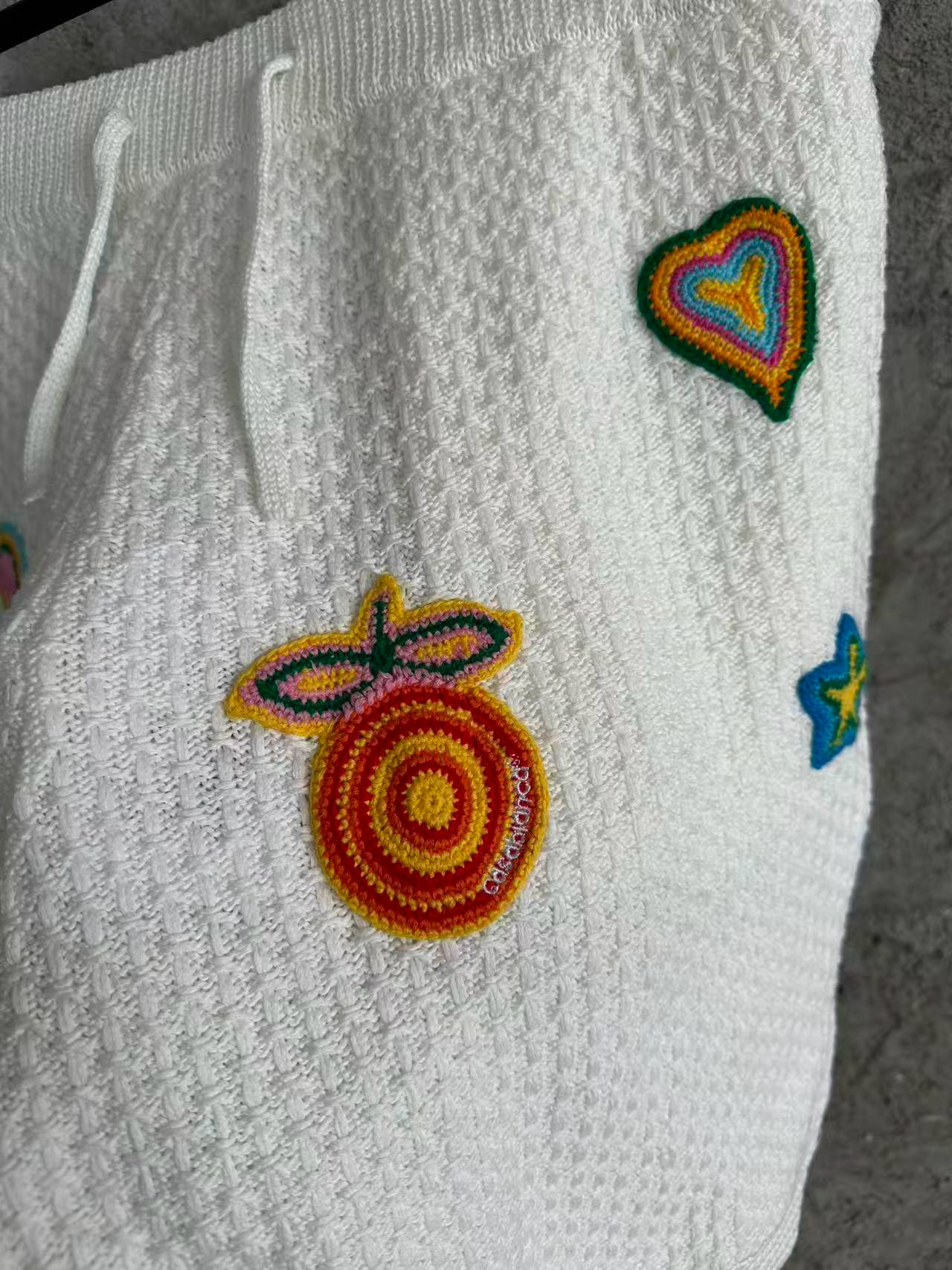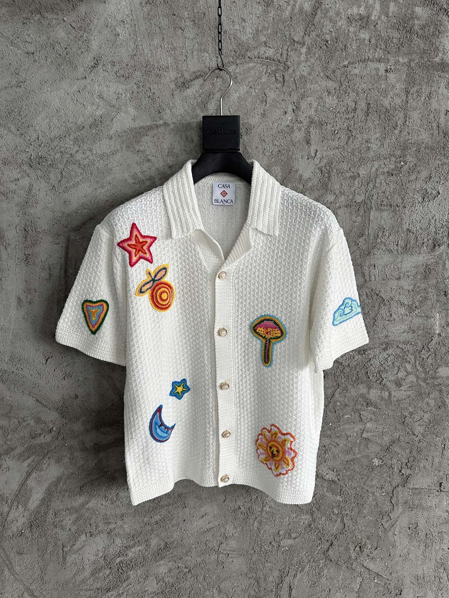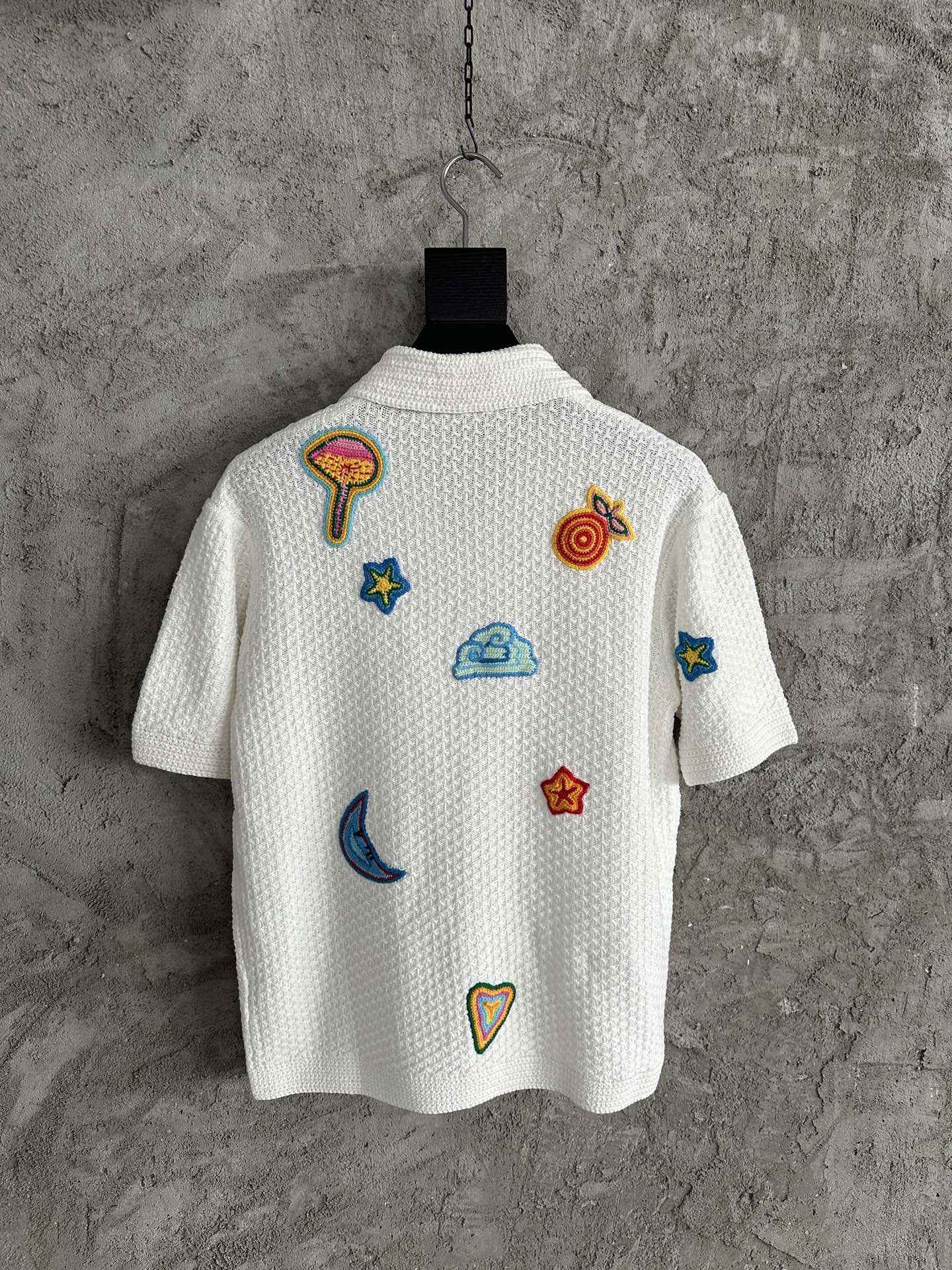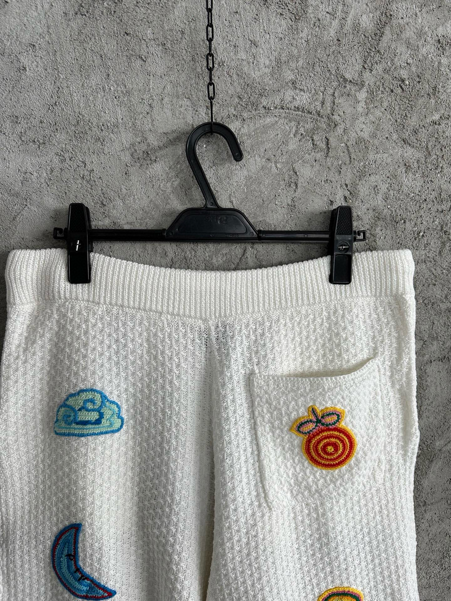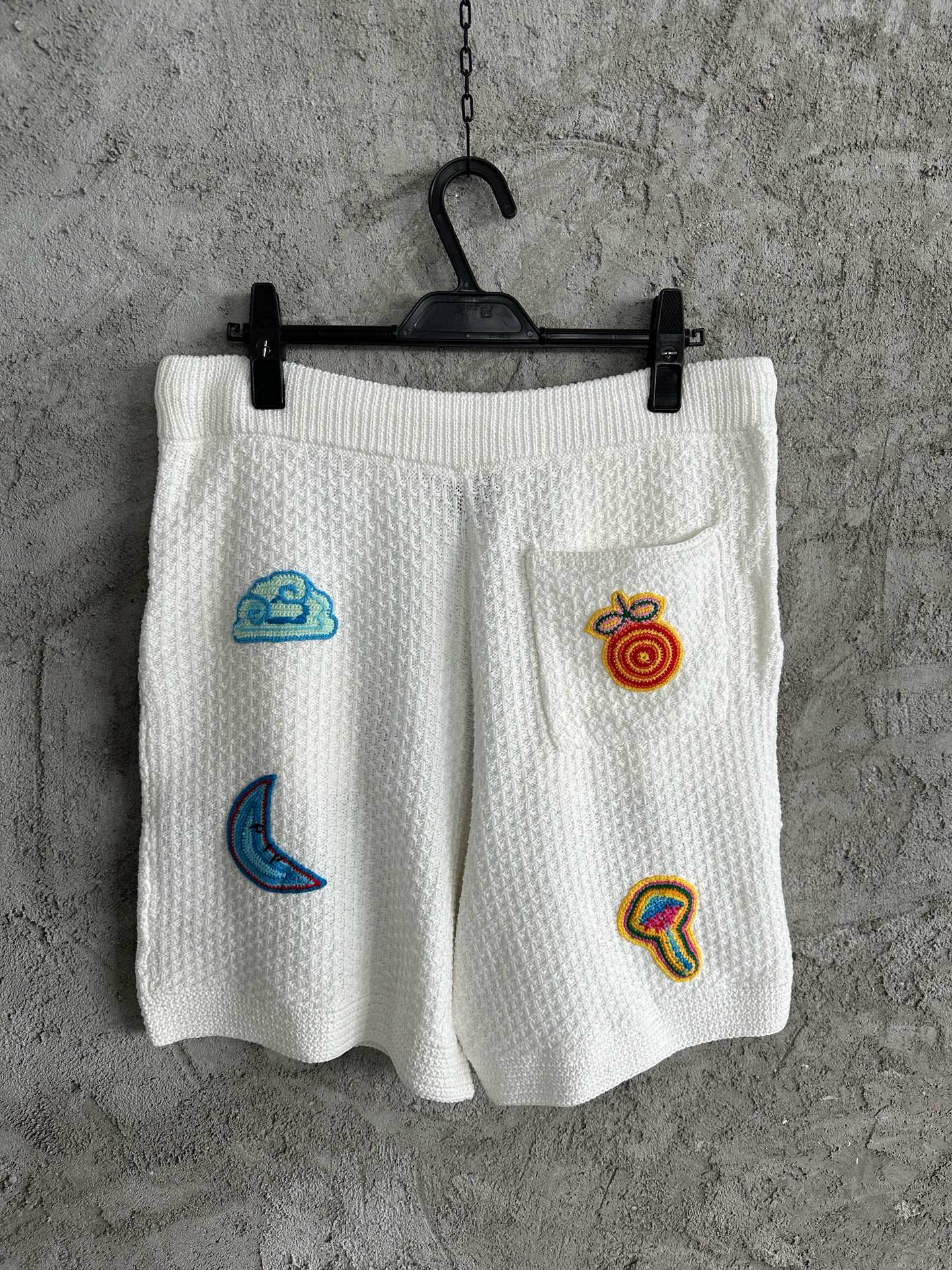 NIGO Casablanca Men's Summer Embroidered Solid-Color Cotton Loose-Fit Knit Short-Sleeve Shirt Casual Drawstring Mid-Rise Motif Crochet Shorts Suit Set Ngvp #nigo2392
