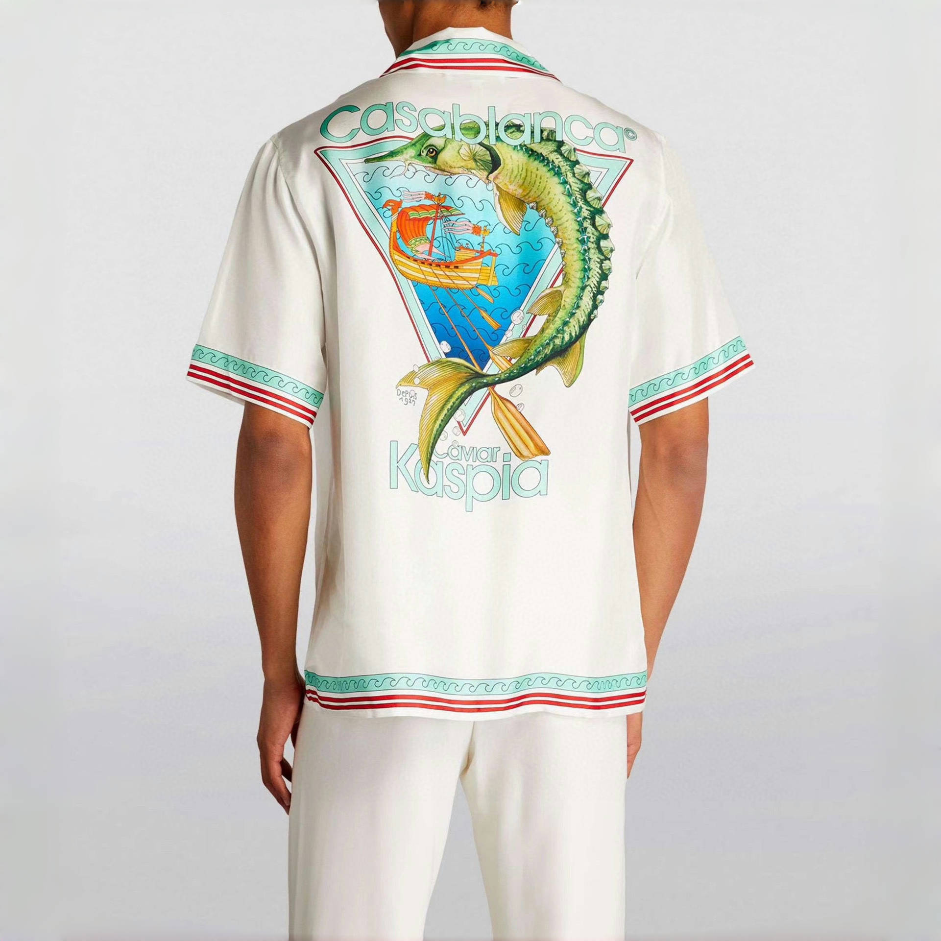 NIGO Casablanca Men's Summer Solid Color Animal Print Single Button Short Sleeve Shirt and Casual Shorts Set Suit #nigo77743