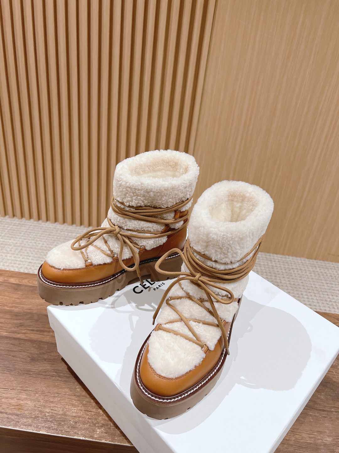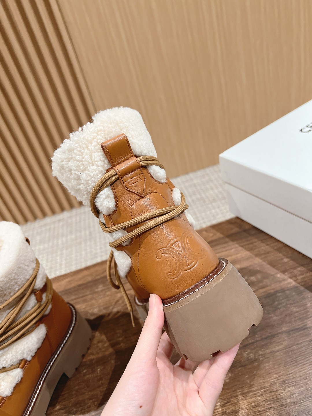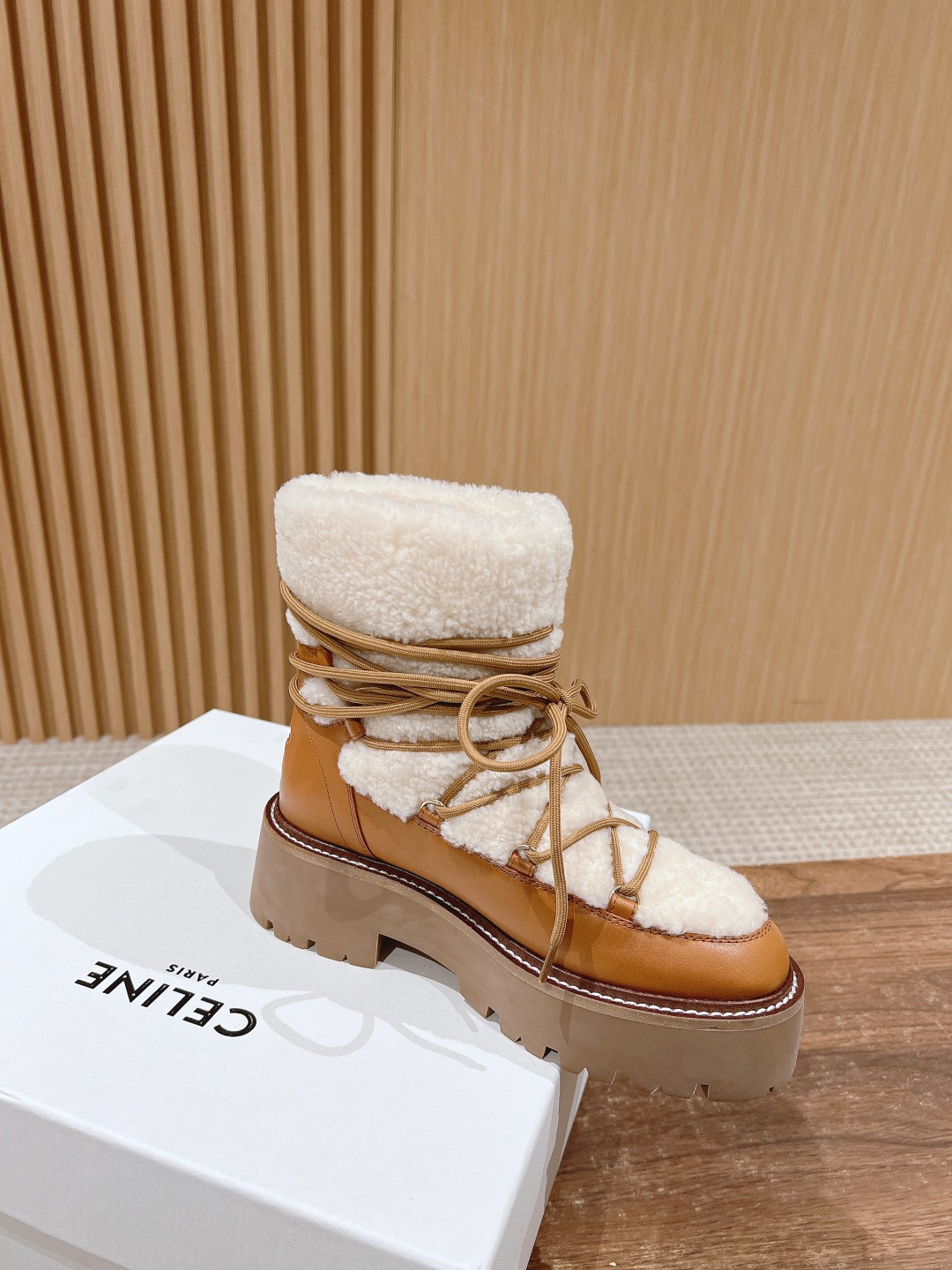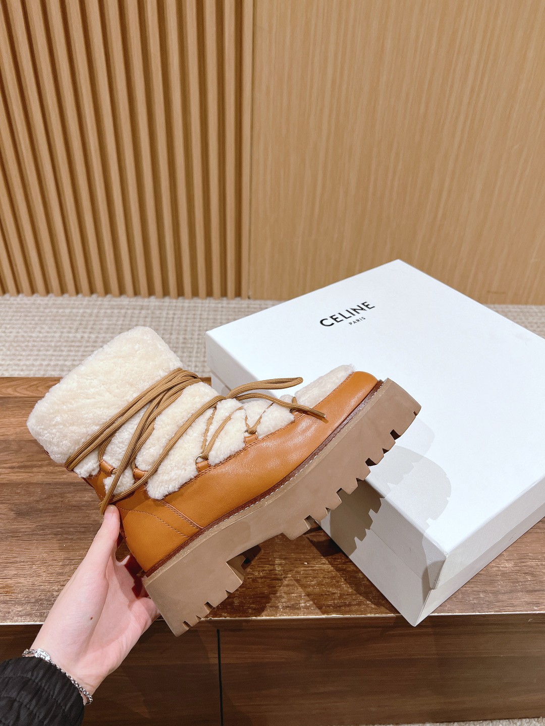 NIGO Celine Bulky Lace Up Boot in Shearling and Calfskin #nigo292286