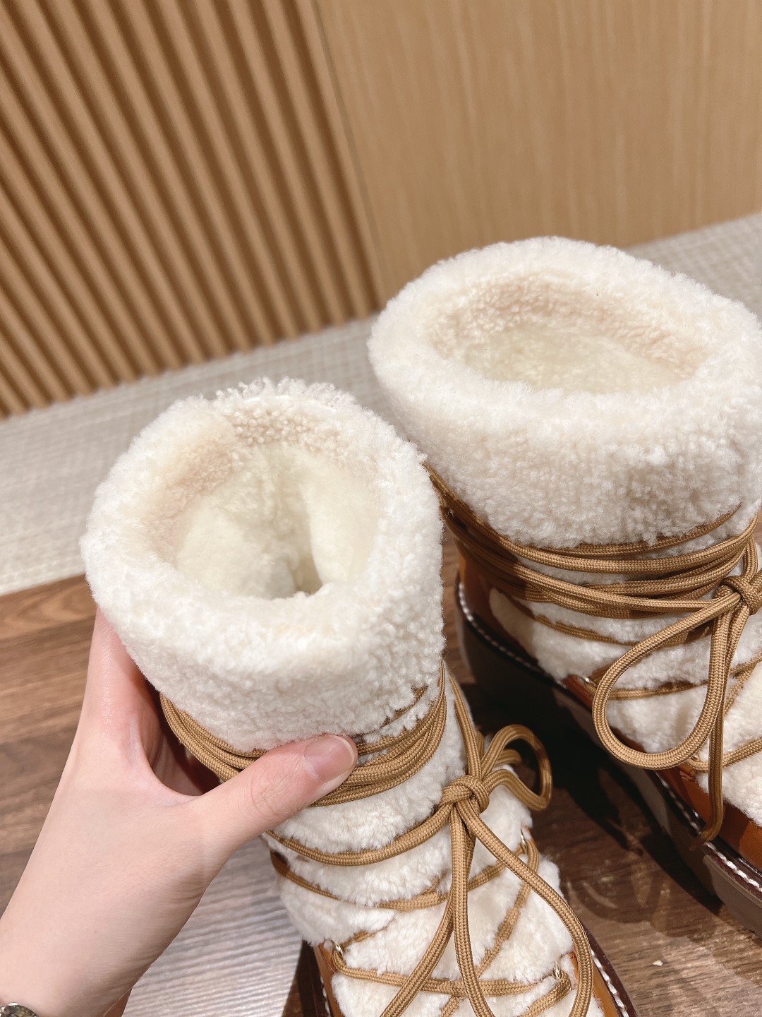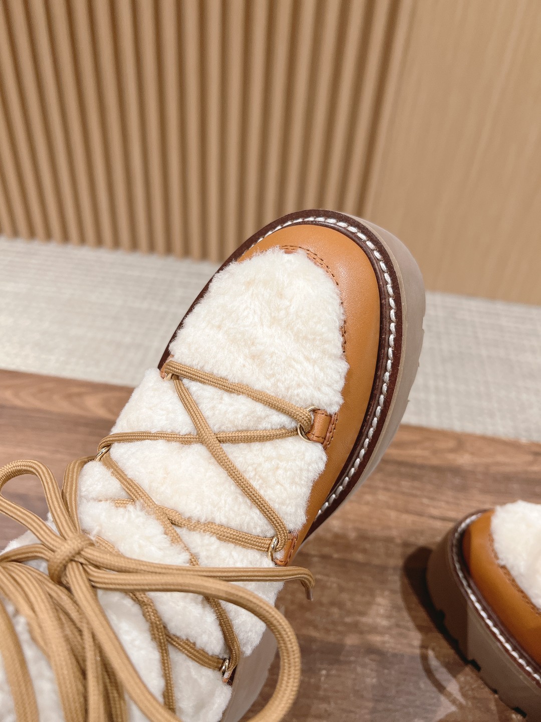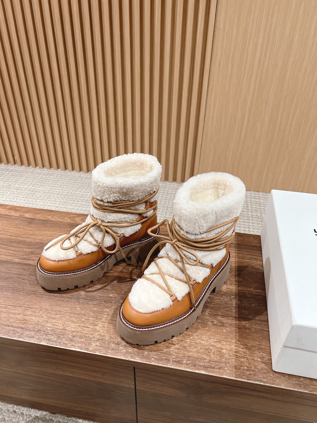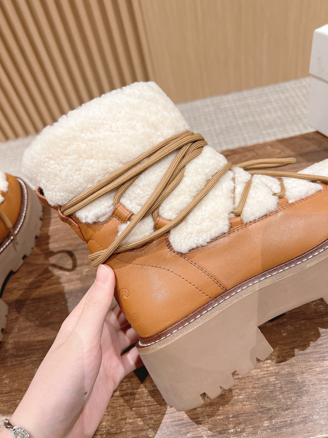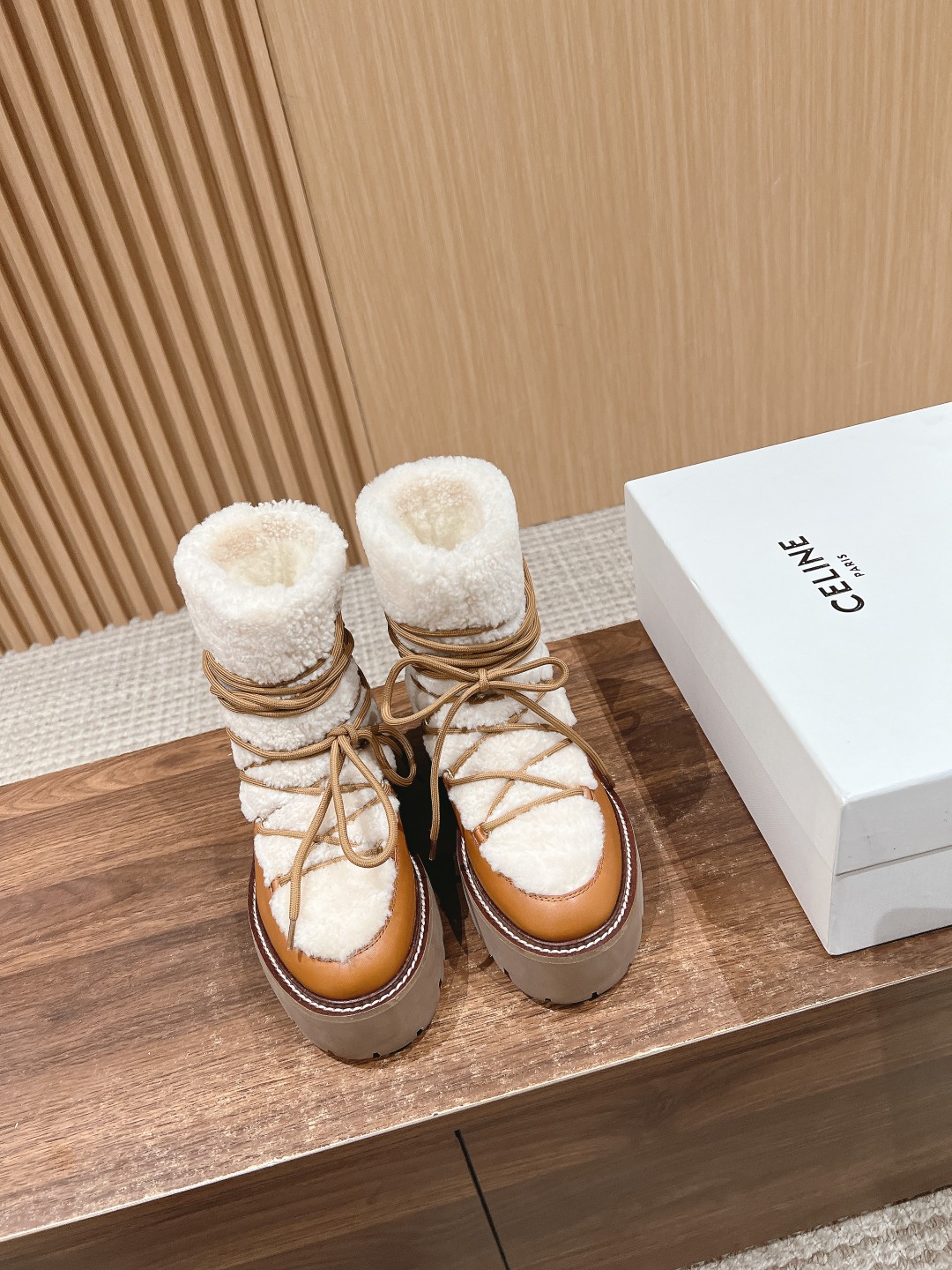 NIGO Celine Bulky Lace Up Boot in Shearling and Calfskin #nigo292286