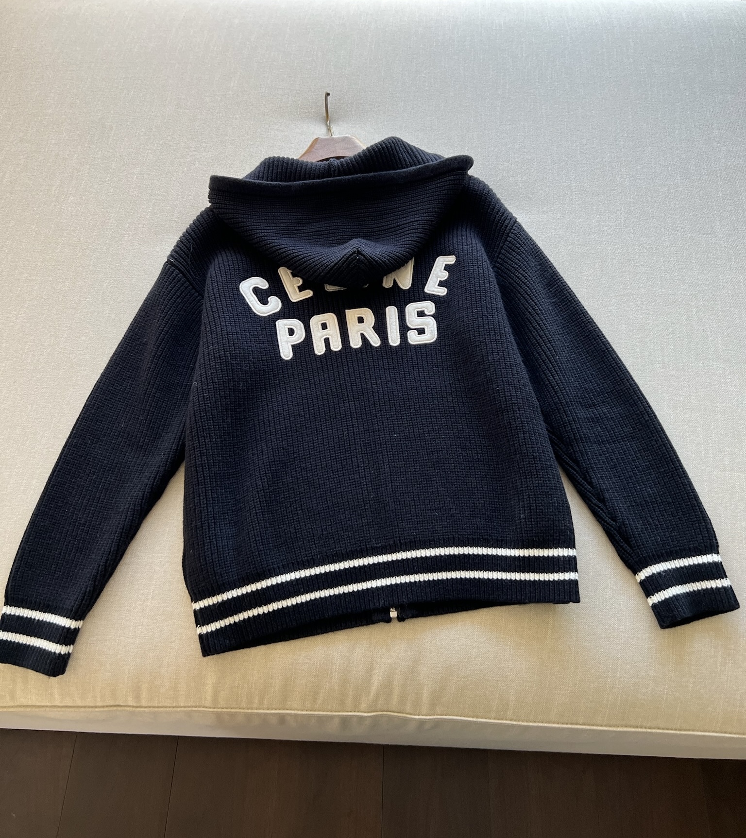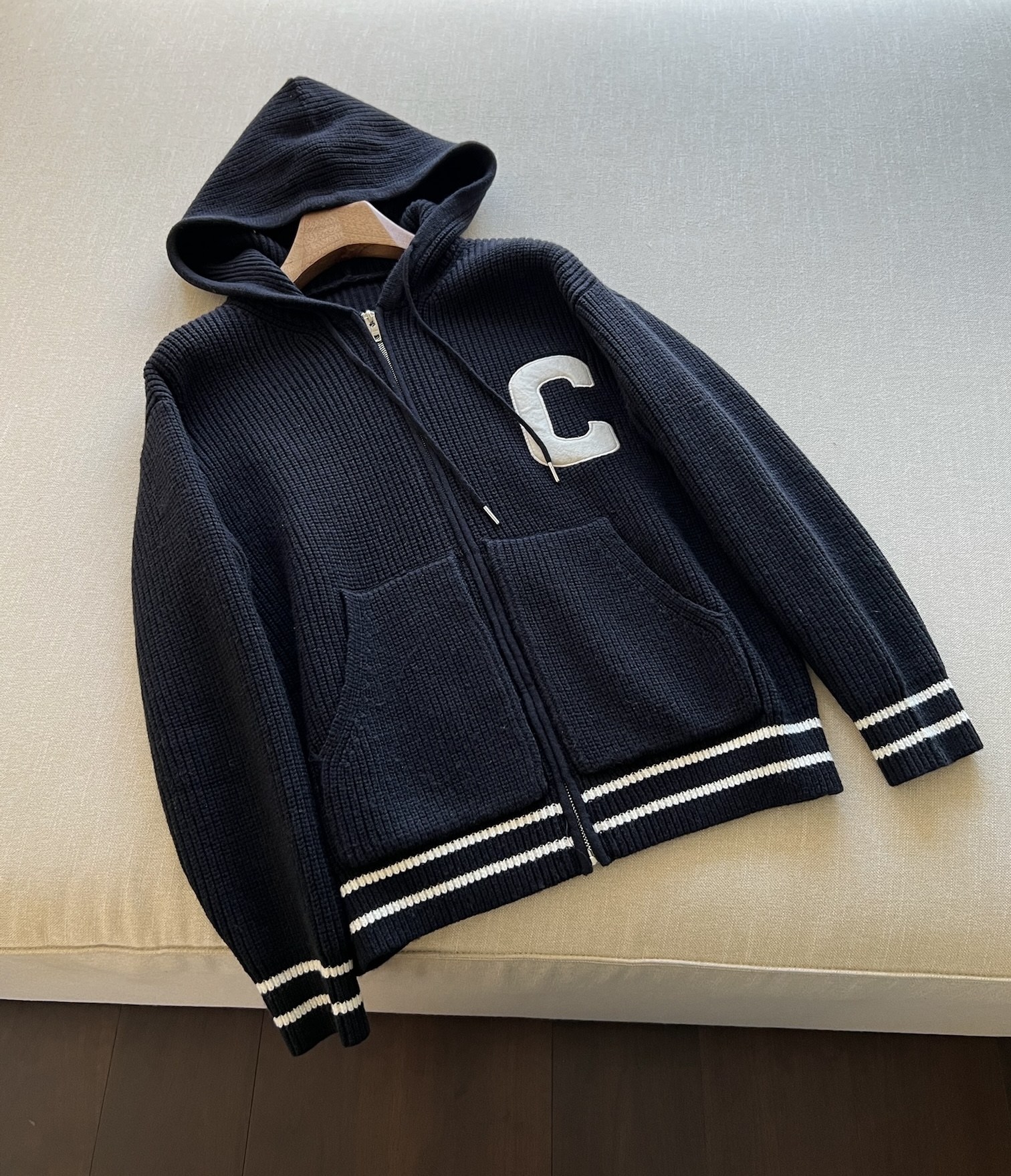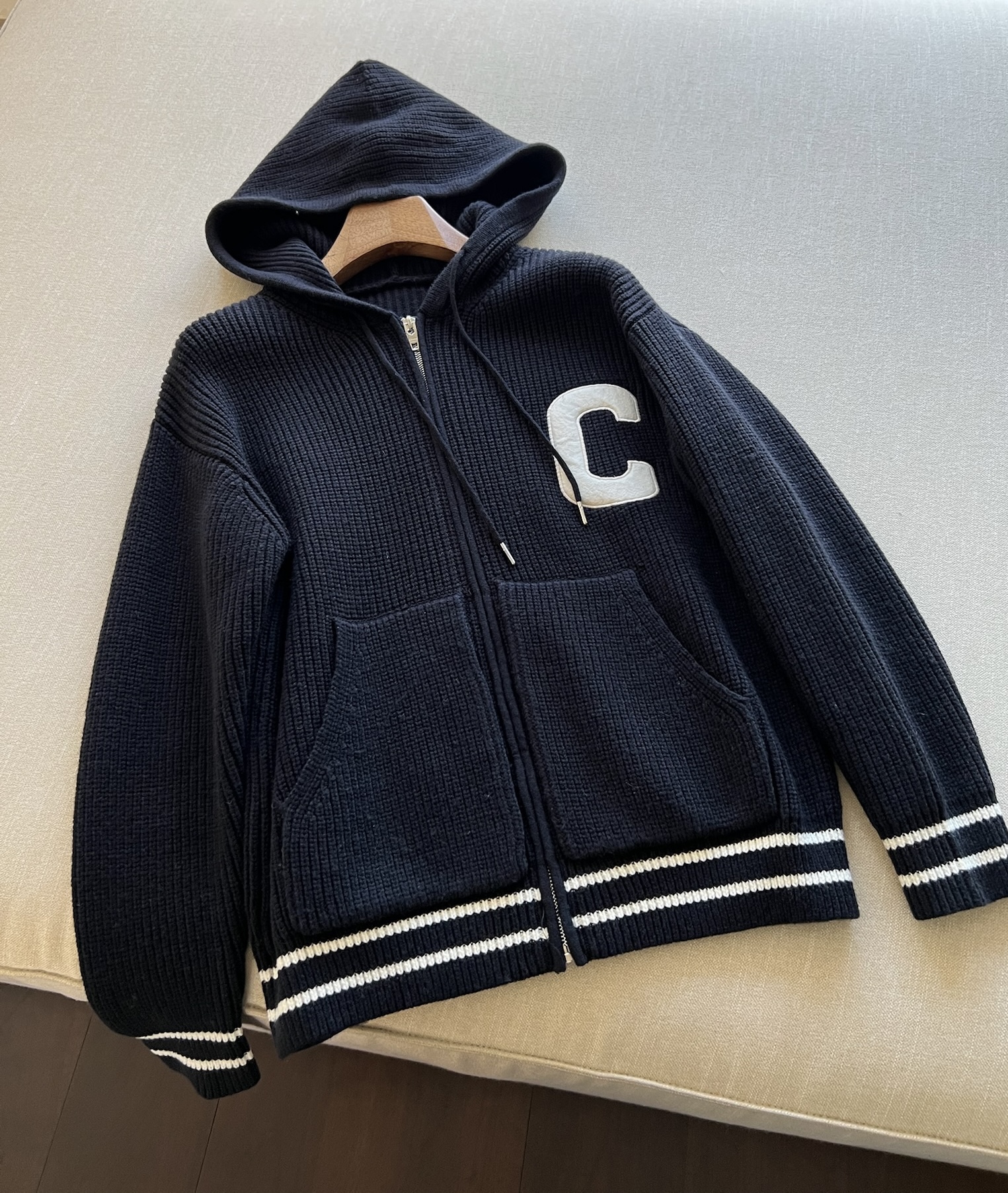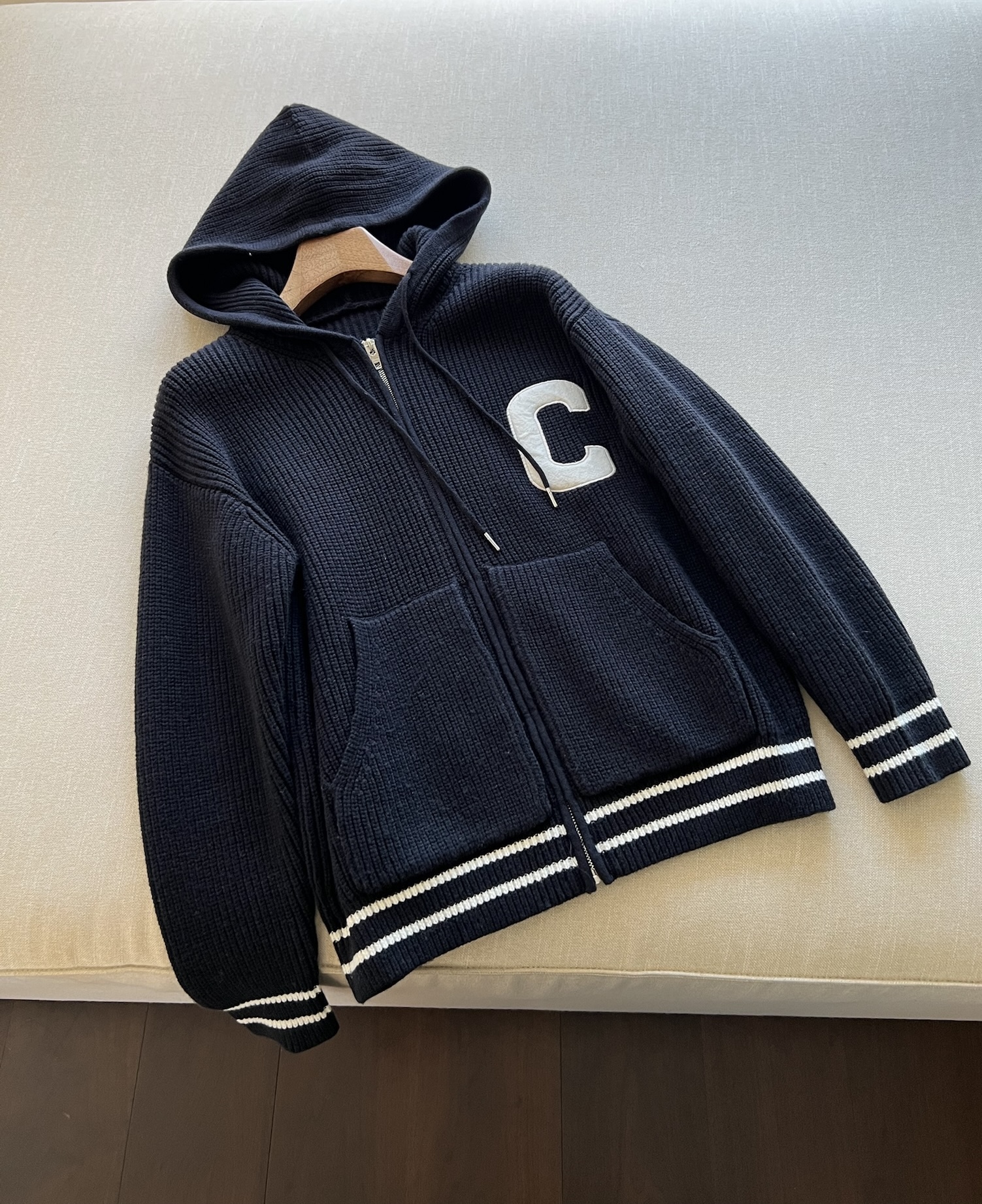 NIGO Celine Men's Spring and Autumn Solid Color Knit Hooded Drawstring Zipper Long Sleeve Jacket #nigo75345