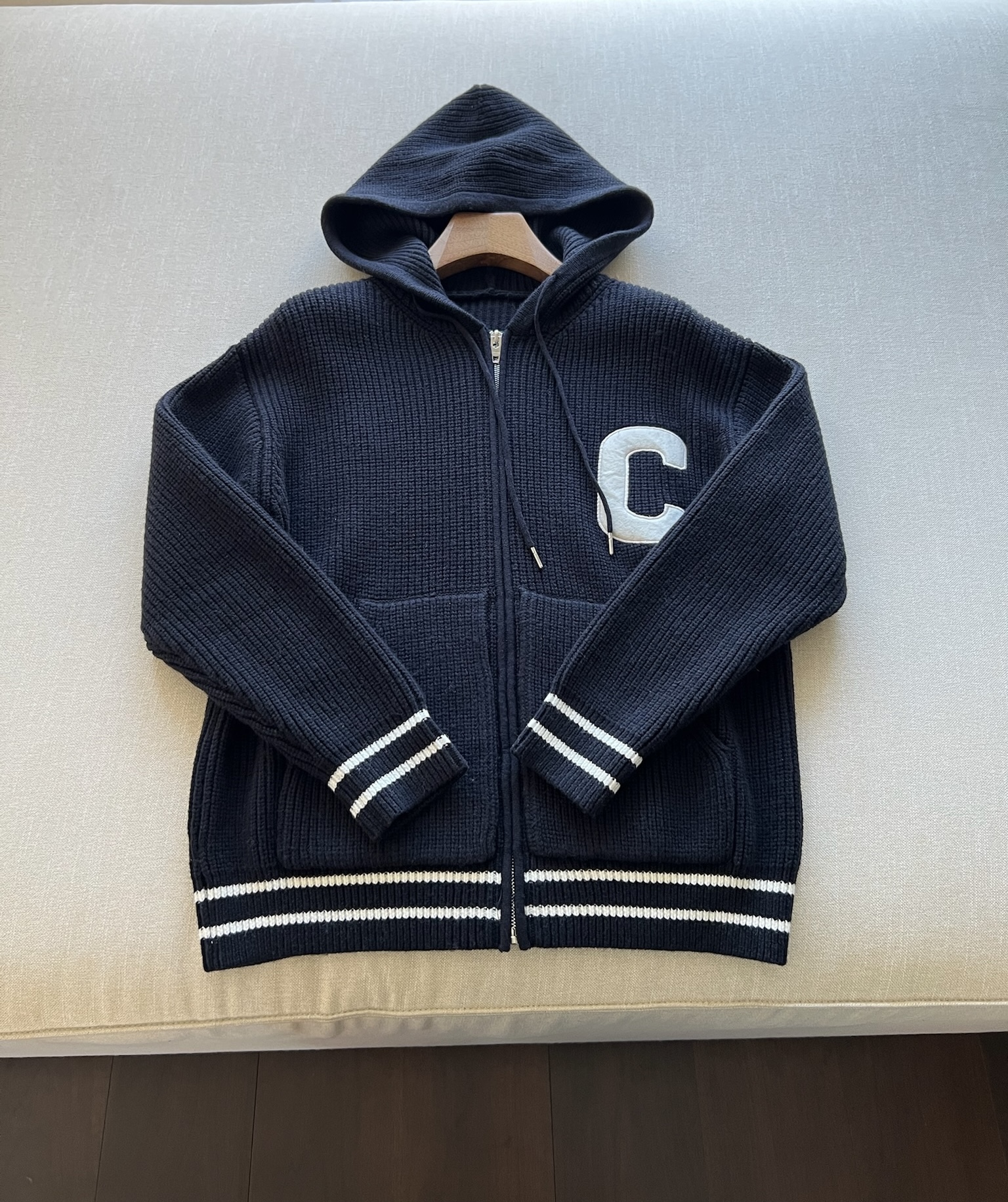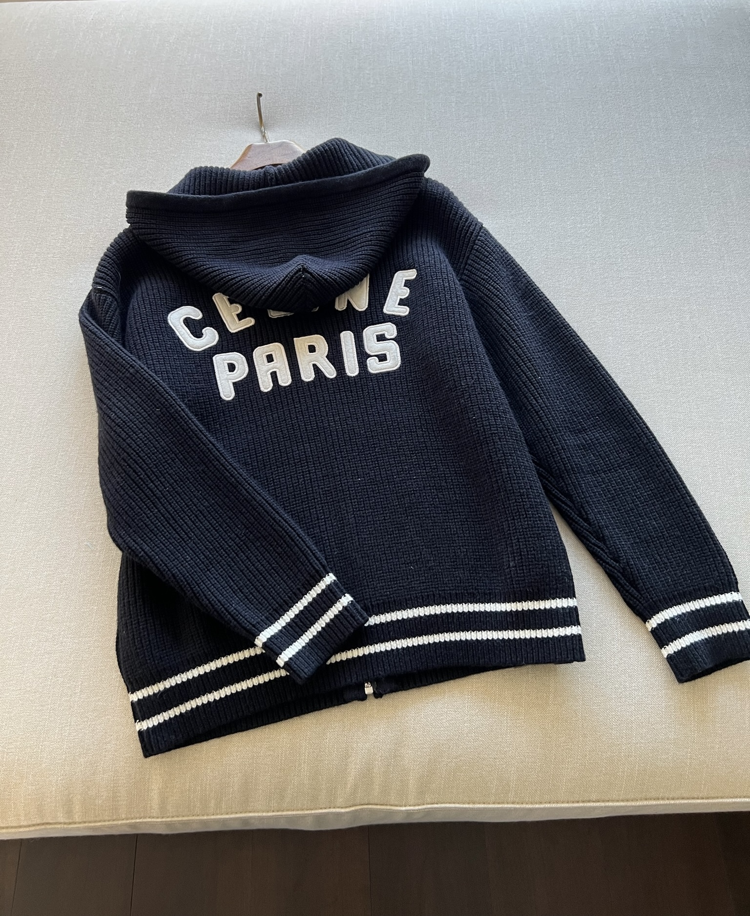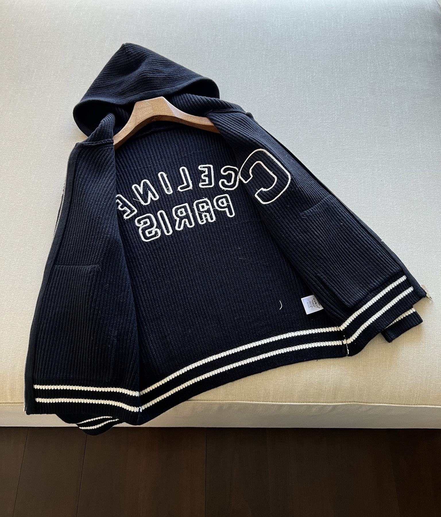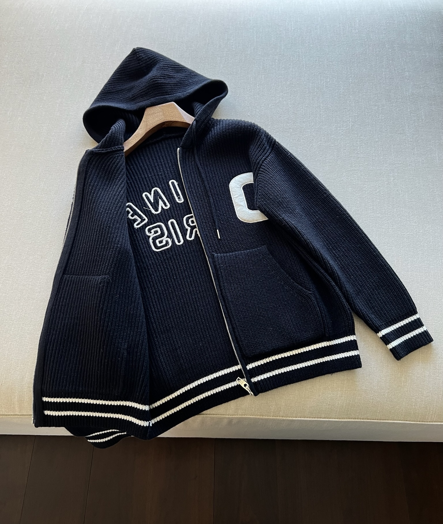 NIGO Celine Men's Spring and Autumn Solid Color Knit Hooded Drawstring Zipper Long Sleeve Jacket #nigo75345