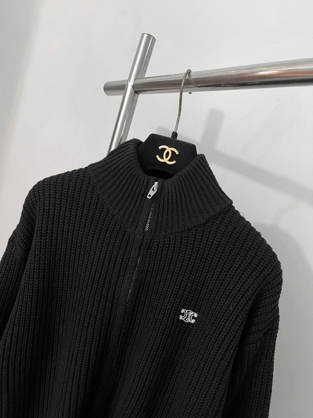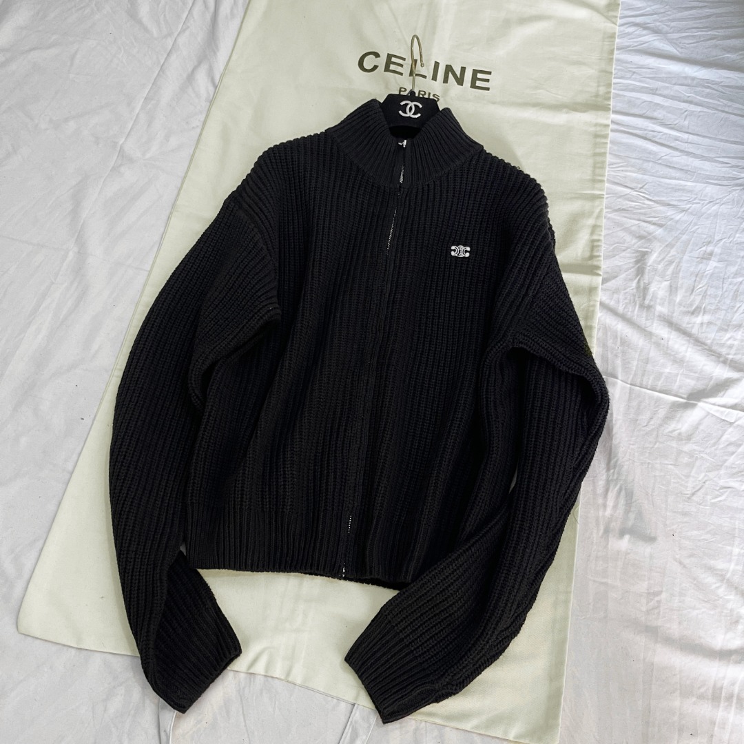 NIGO Celine TRIOMPHE Men's Spring/Autumn Solid Color Fashionable Casual Logo Embroidered Zipper Long Sleeve Wool Trucker Sweater Jacket #nigo78242