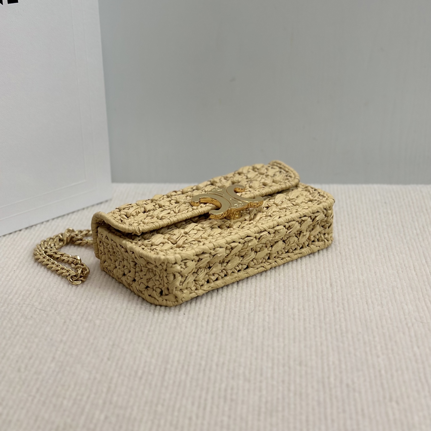 NIGO Celine TRIOMPHE Women's Monogrammed Gold Buckle Raffia Woven Solid Color Crossbody Shoulder Bag Bags #nigo76673
