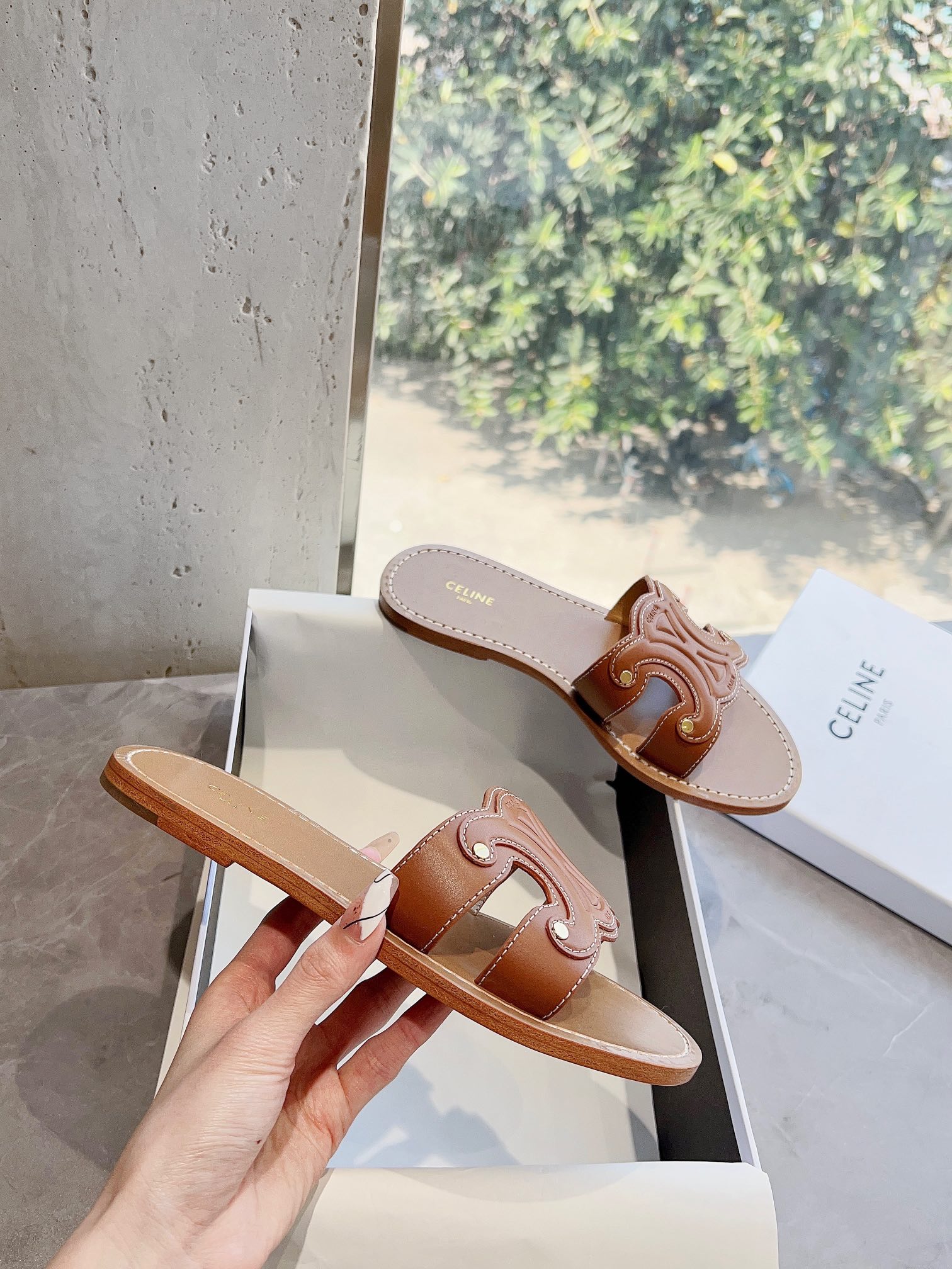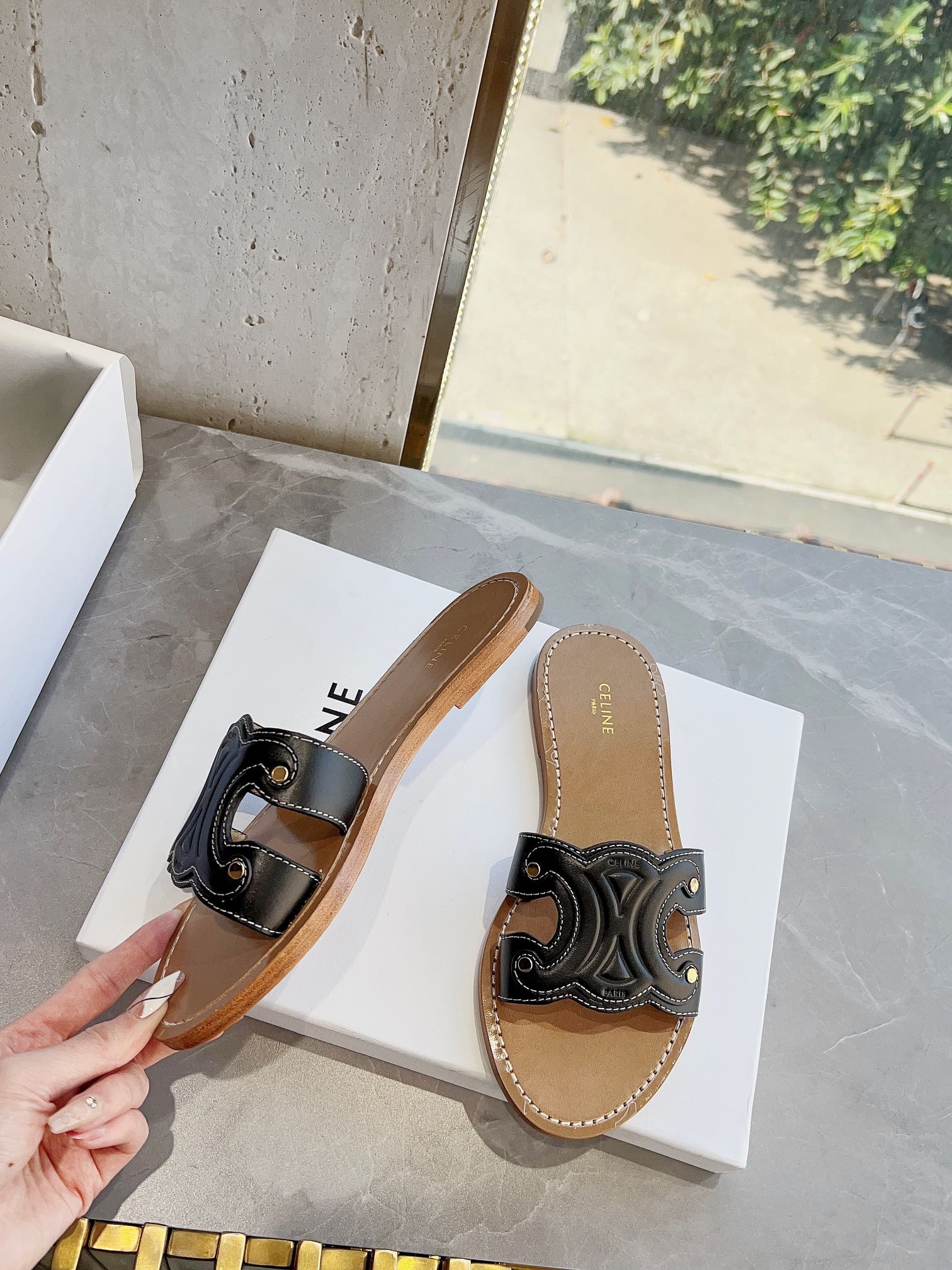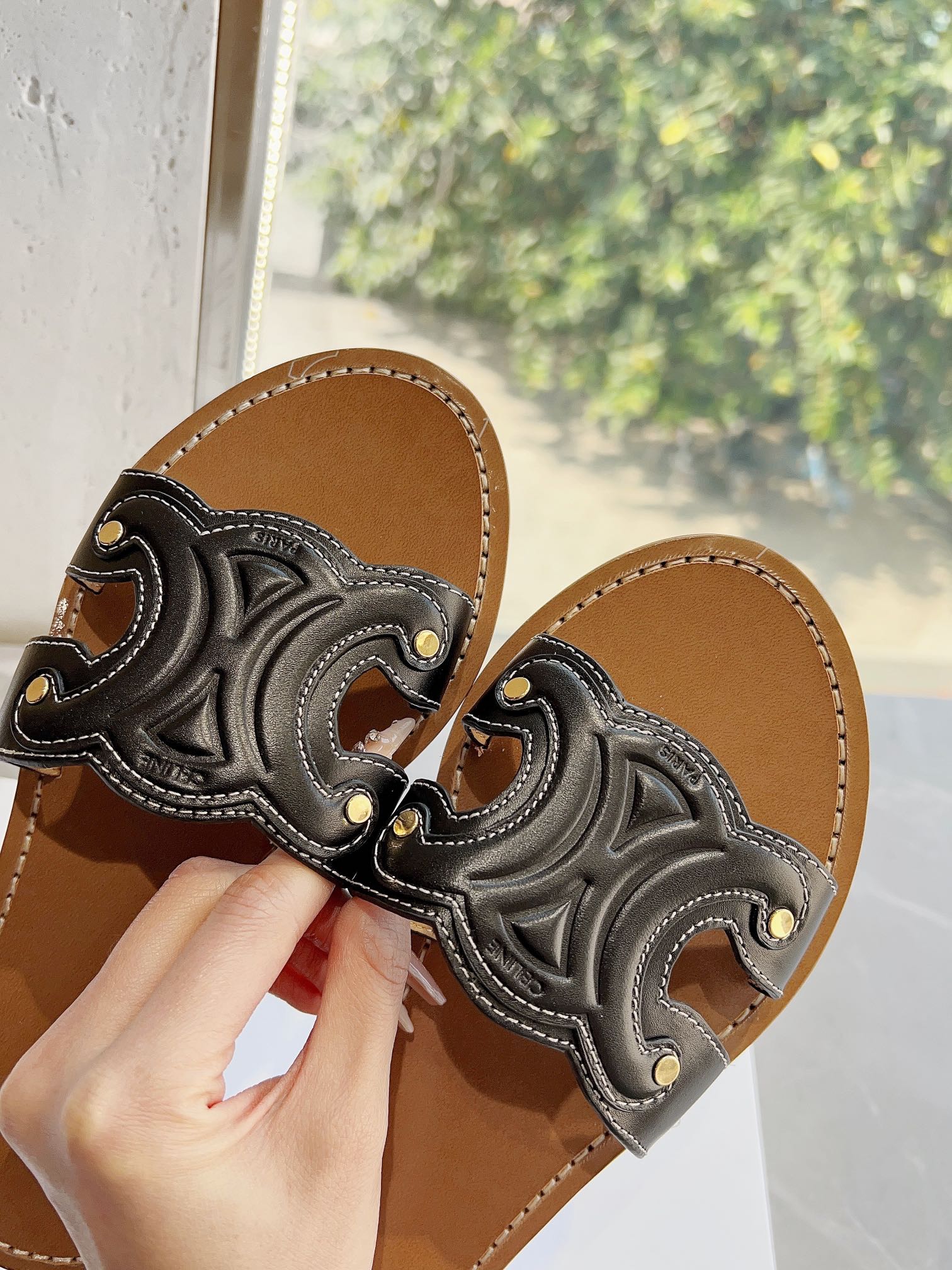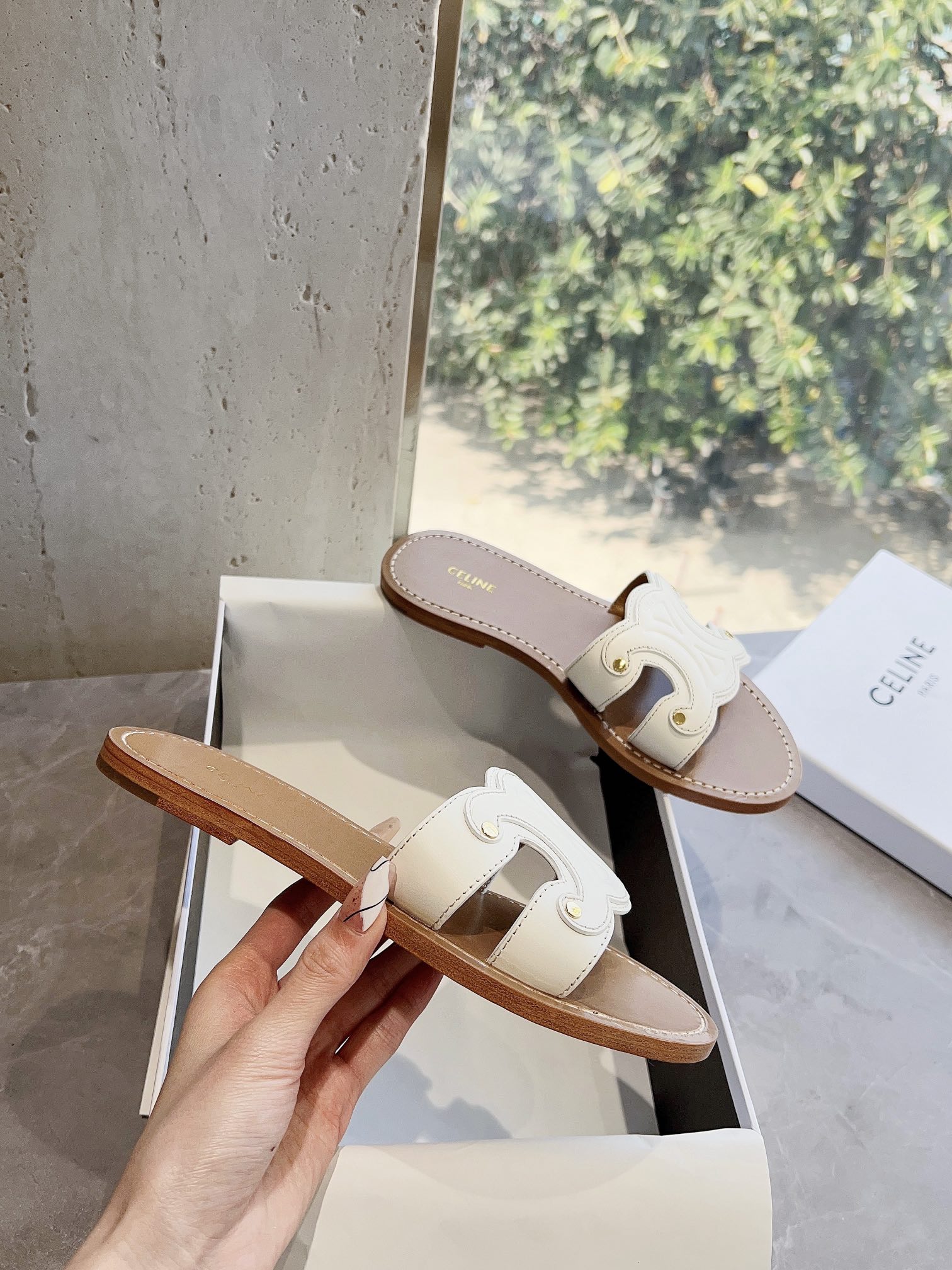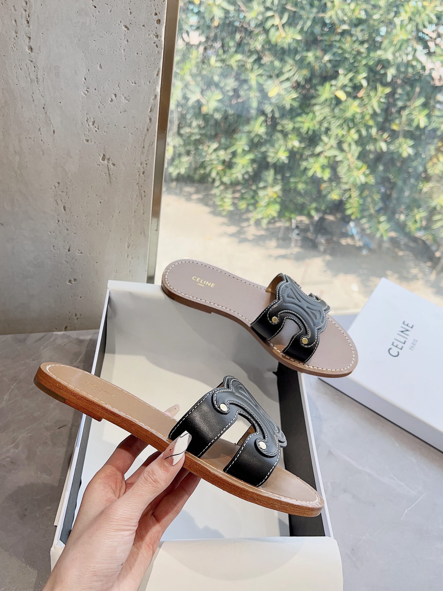 NIGO Celine Women's Spring Summer TRIOMPHE Cow Leather Mule Shoes Solid Color Casual Slippers Shoes #nigo71816