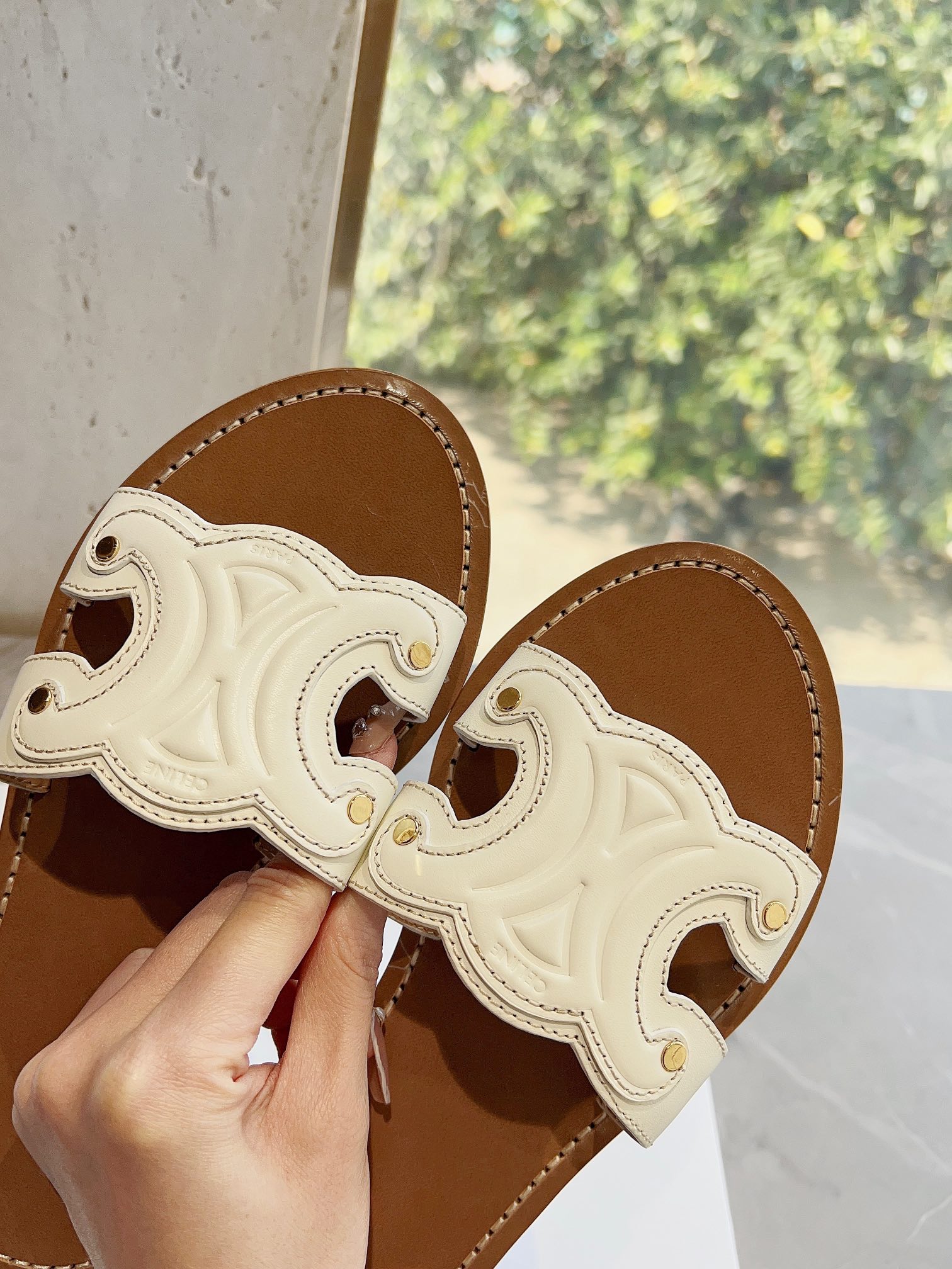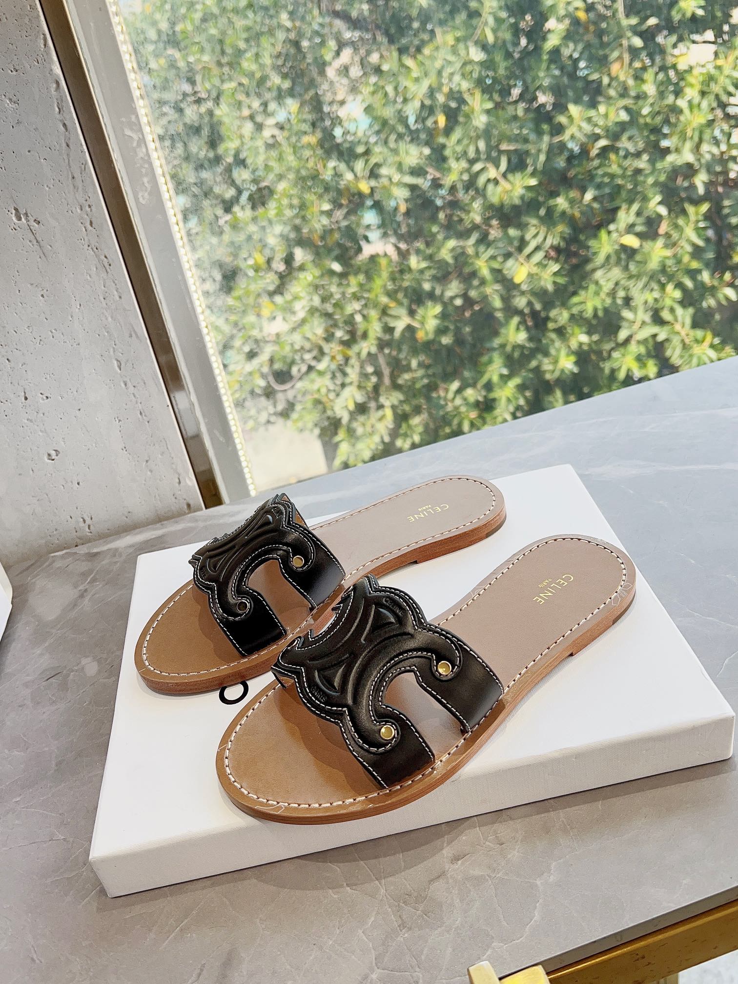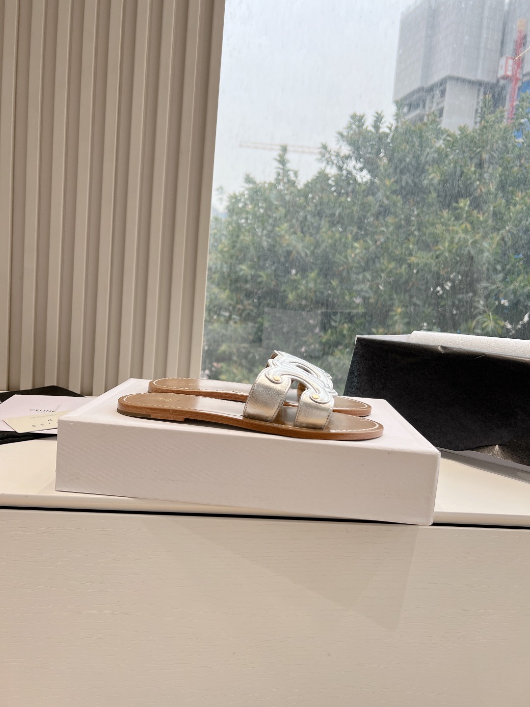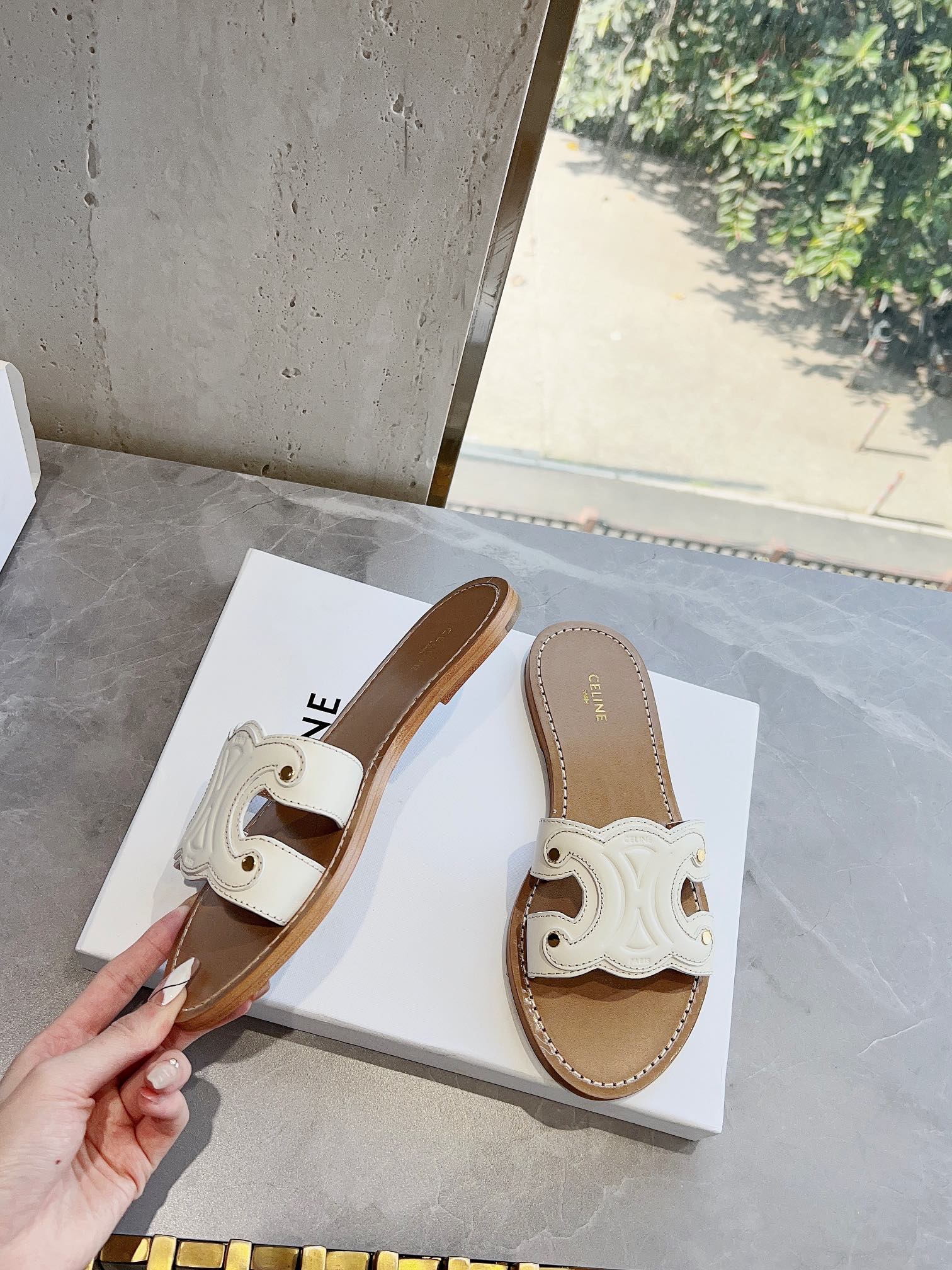 NIGO Celine Women's Spring Summer TRIOMPHE Cow Leather Mule Shoes Solid Color Casual Slippers Shoes #nigo71816