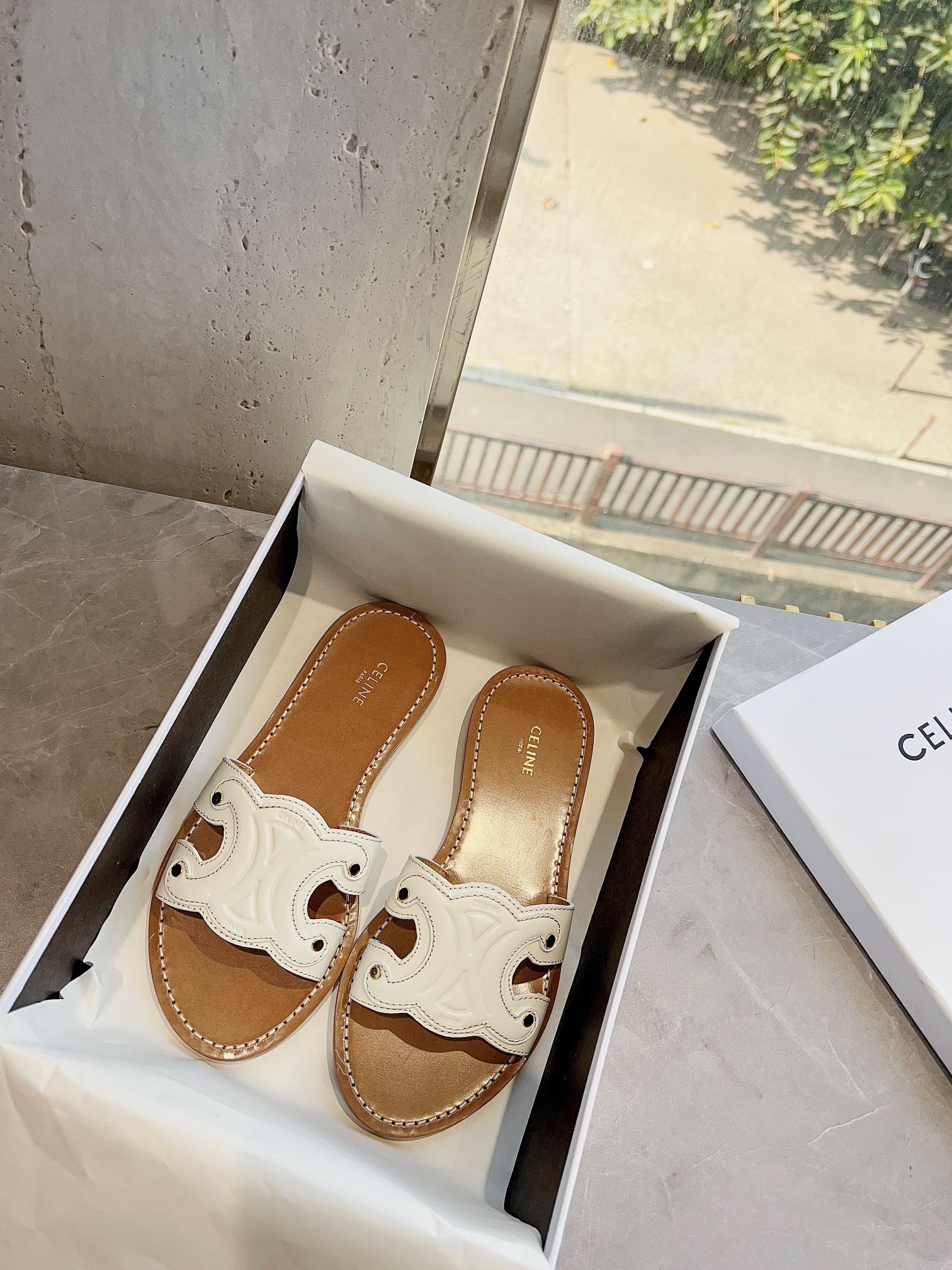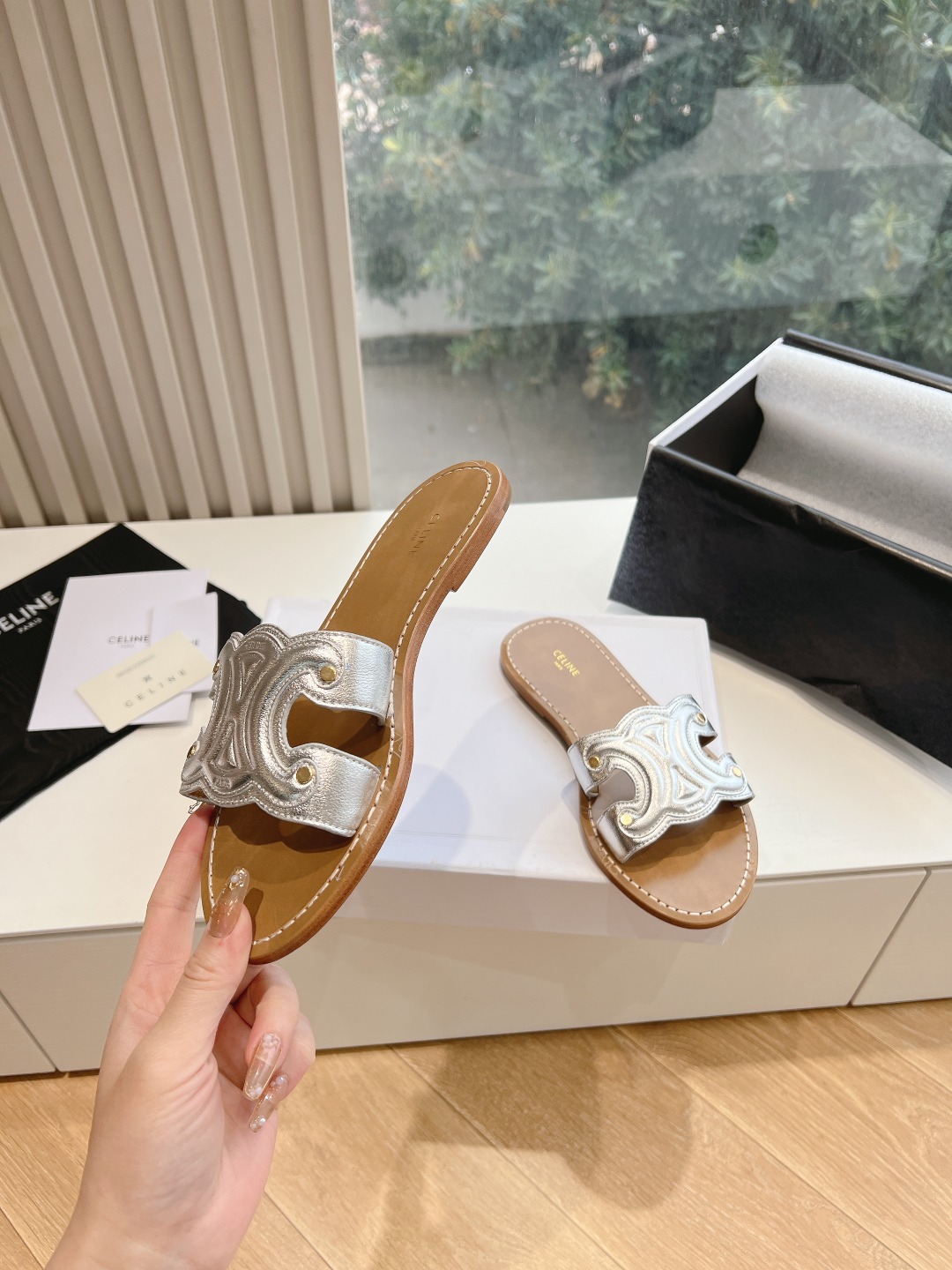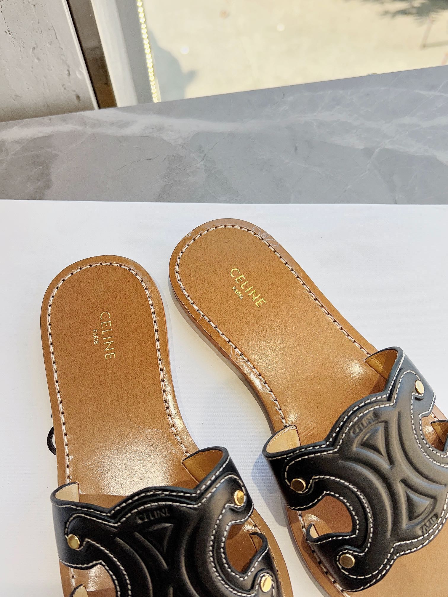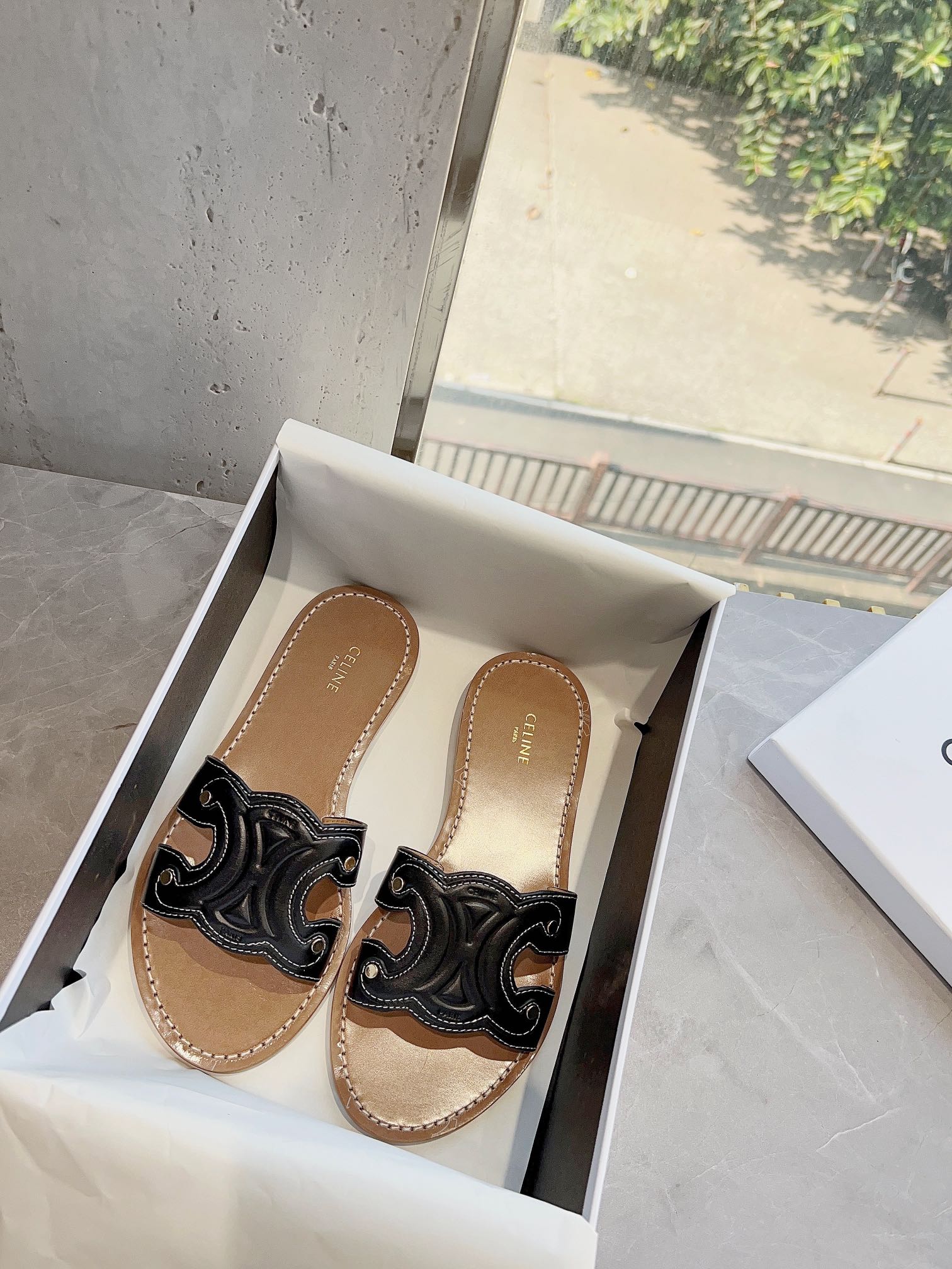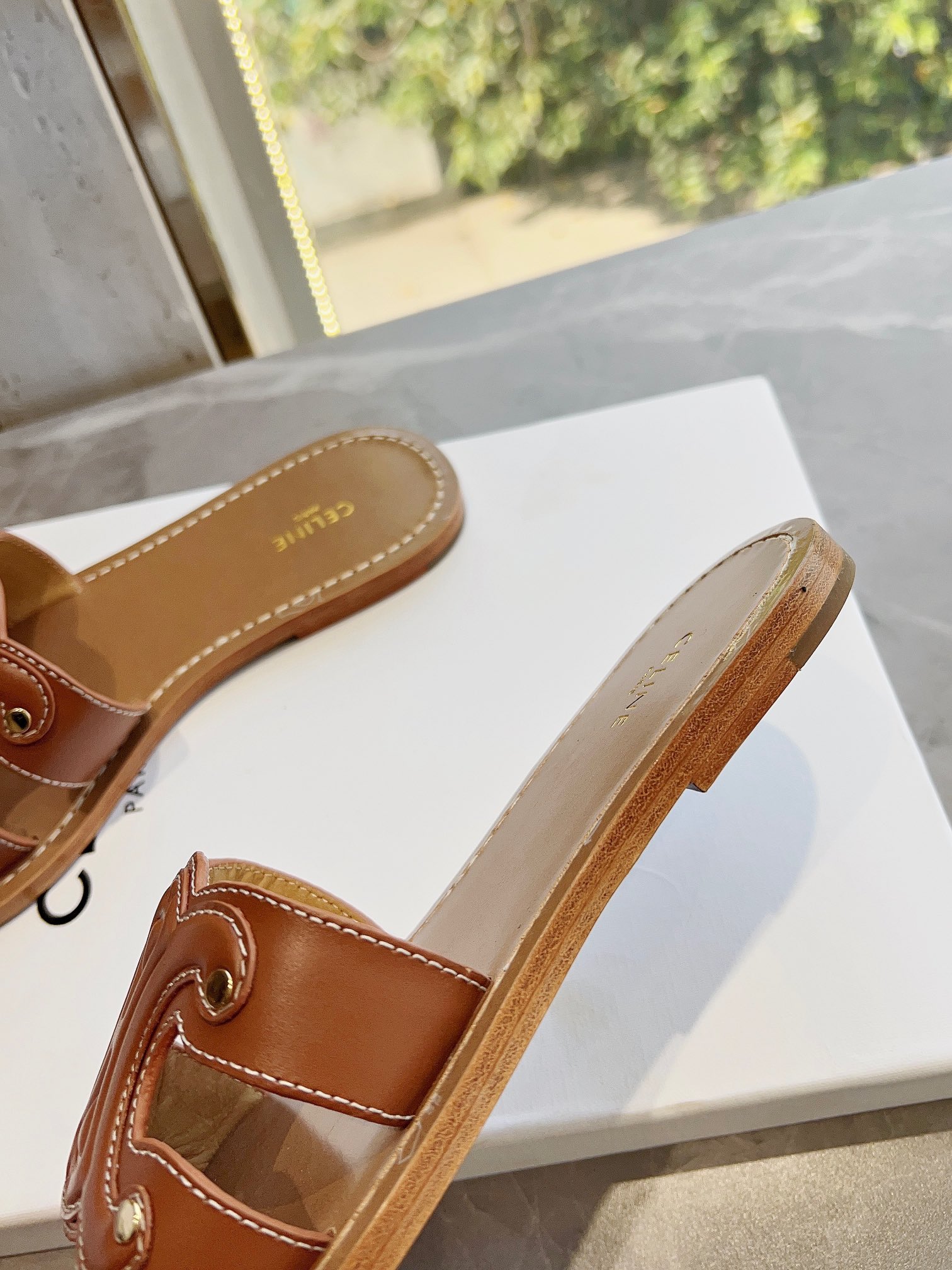 NIGO Celine Women's Spring Summer TRIOMPHE Cow Leather Mule Shoes Solid Color Casual Slippers Shoes #nigo71816