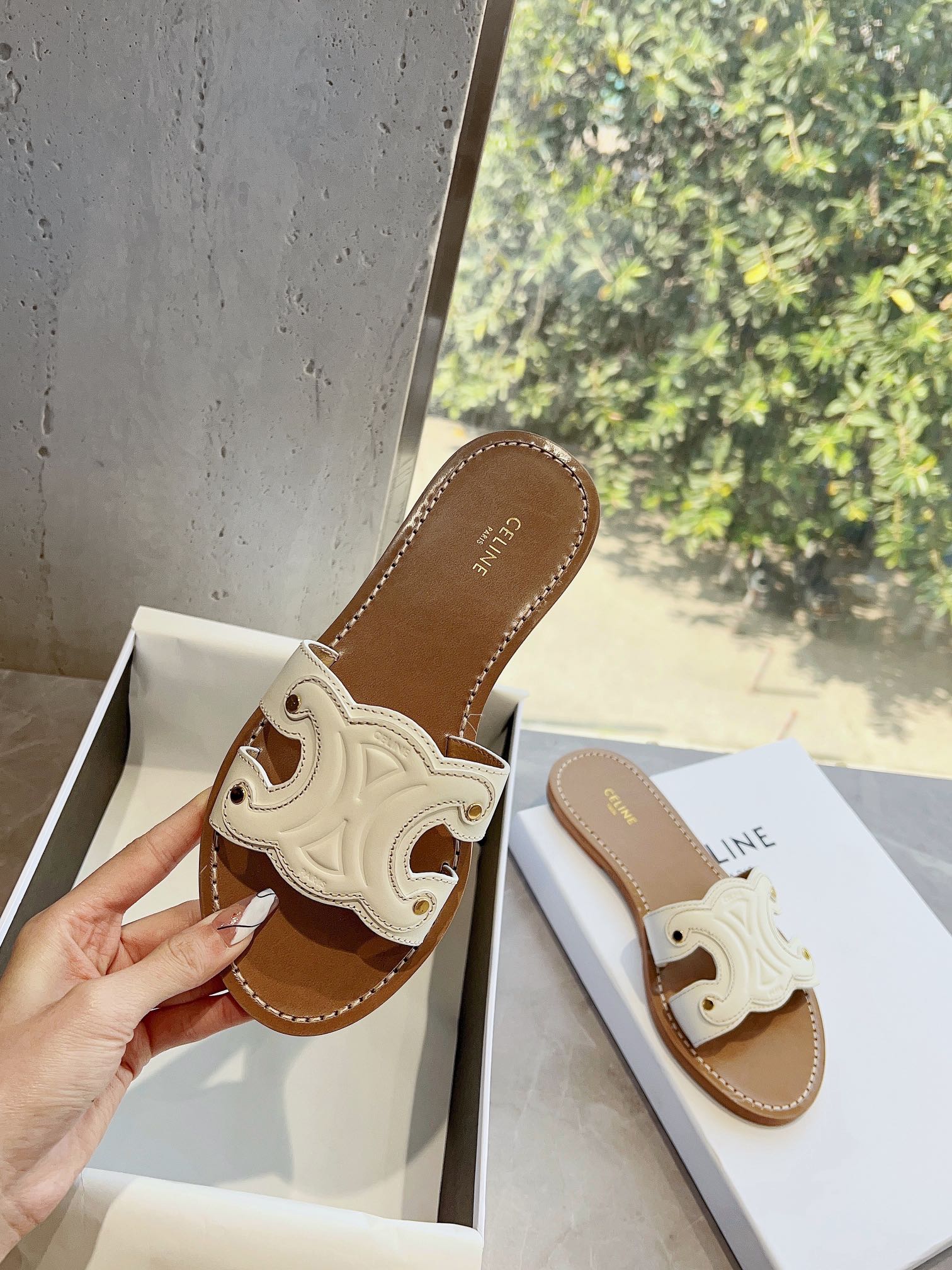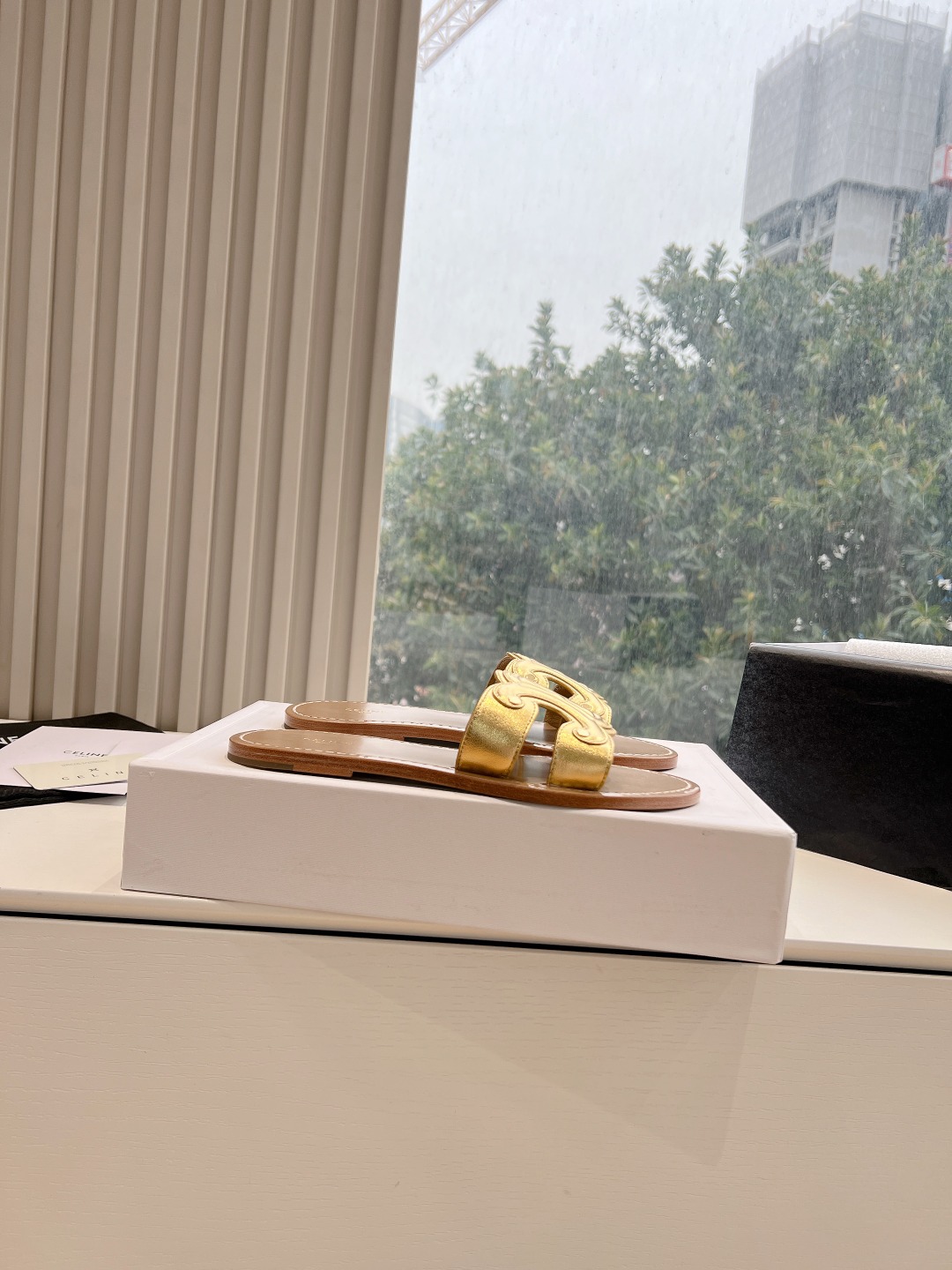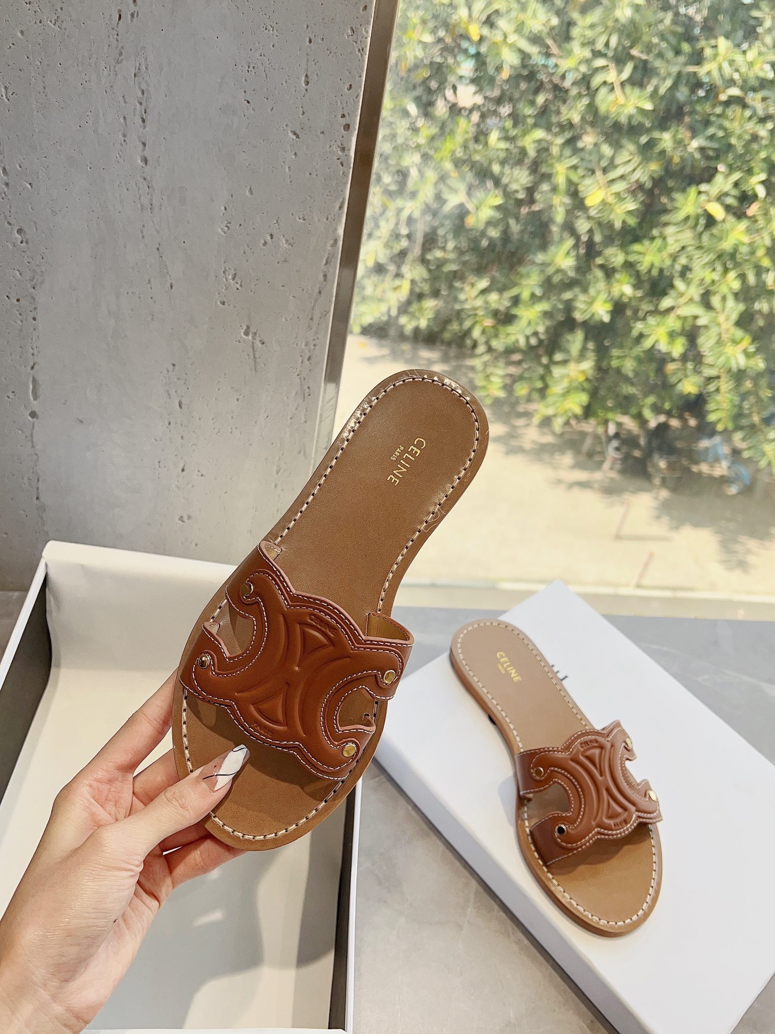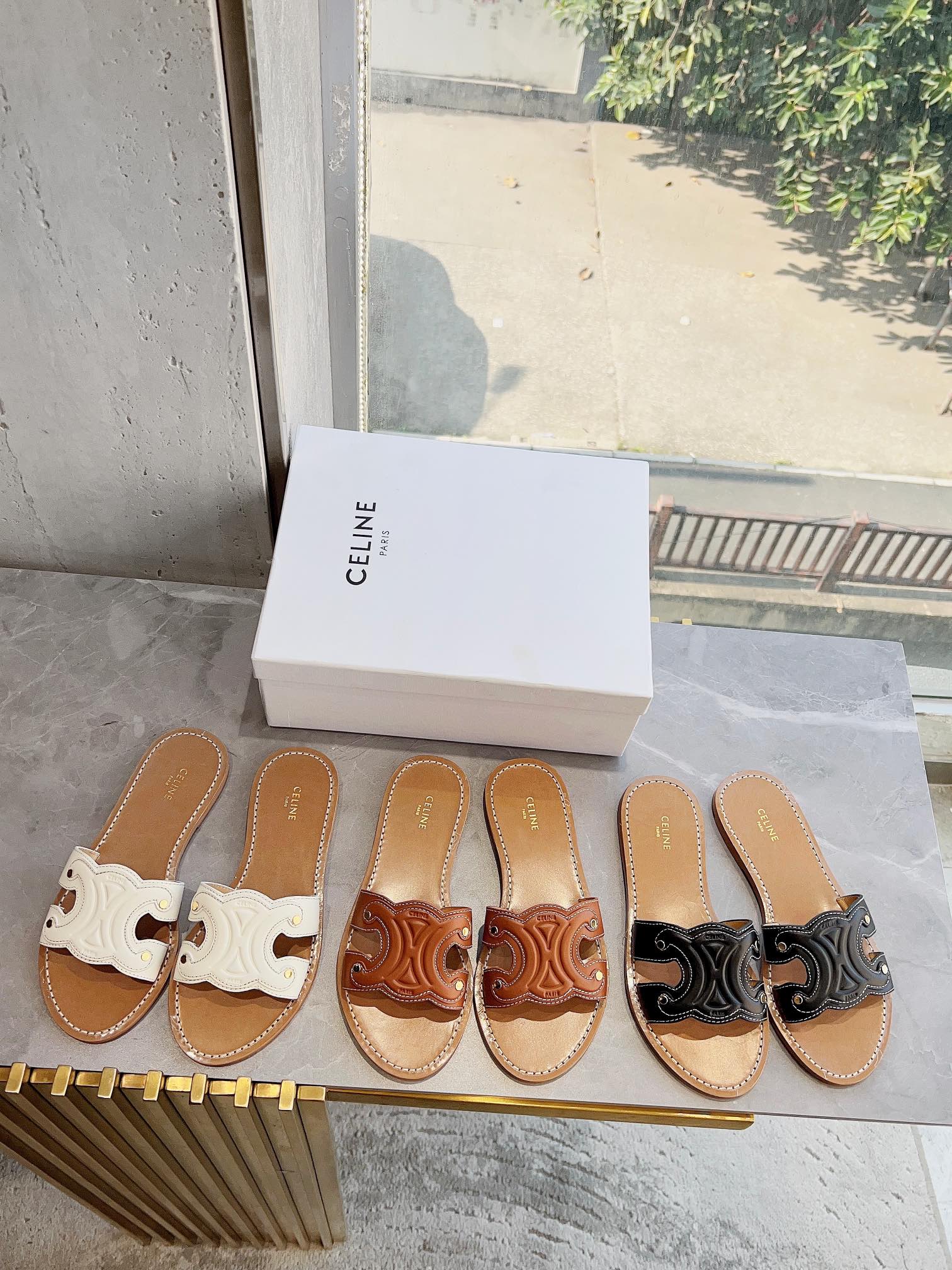 NIGO Celine Women's Spring Summer TRIOMPHE Cow Leather Mule Shoes Solid Color Casual Slippers Shoes #nigo71816