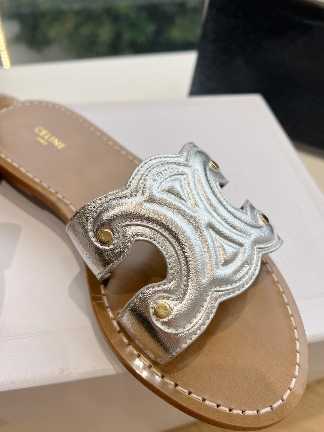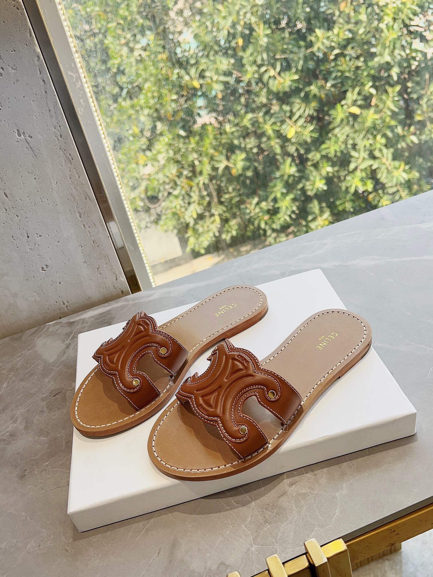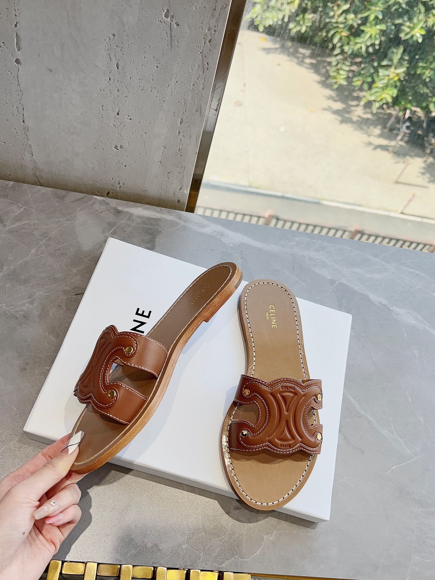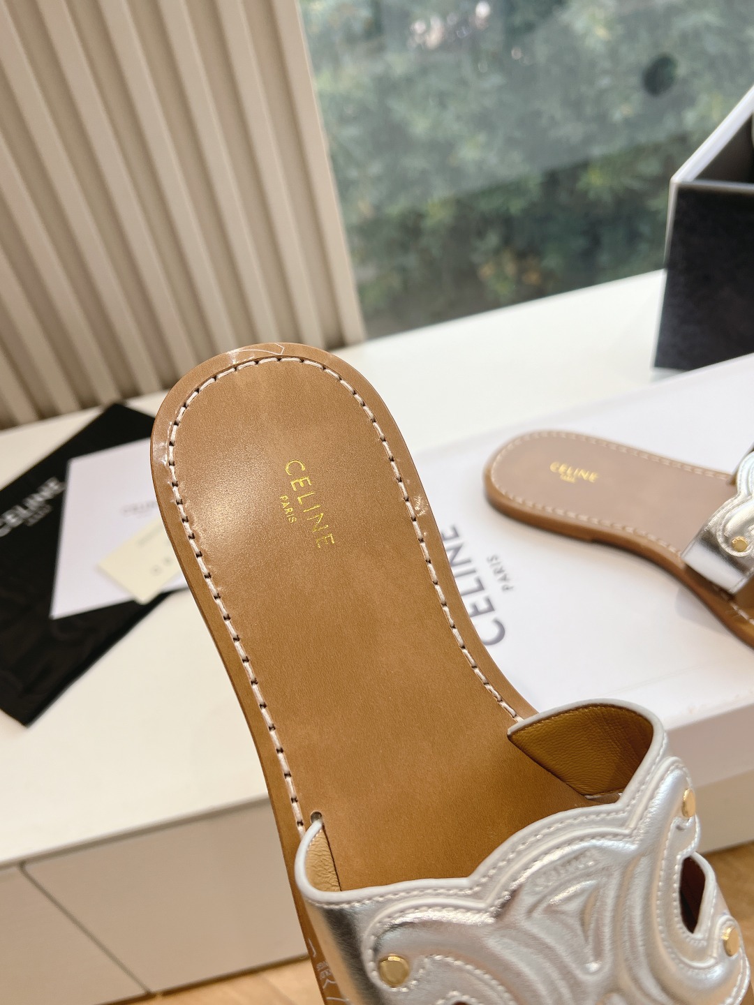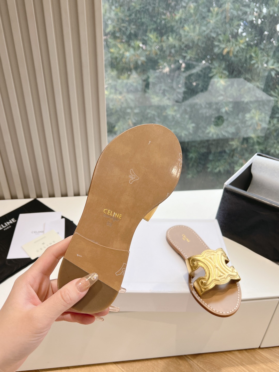 NIGO Celine Women's Spring Summer TRIOMPHE Cow Leather Mule Shoes Solid Color Casual Slippers Shoes #nigo71816