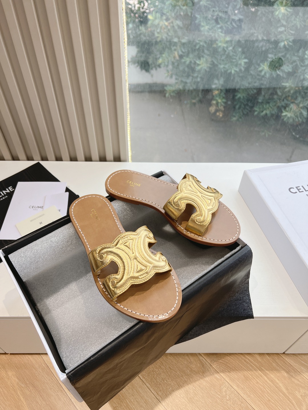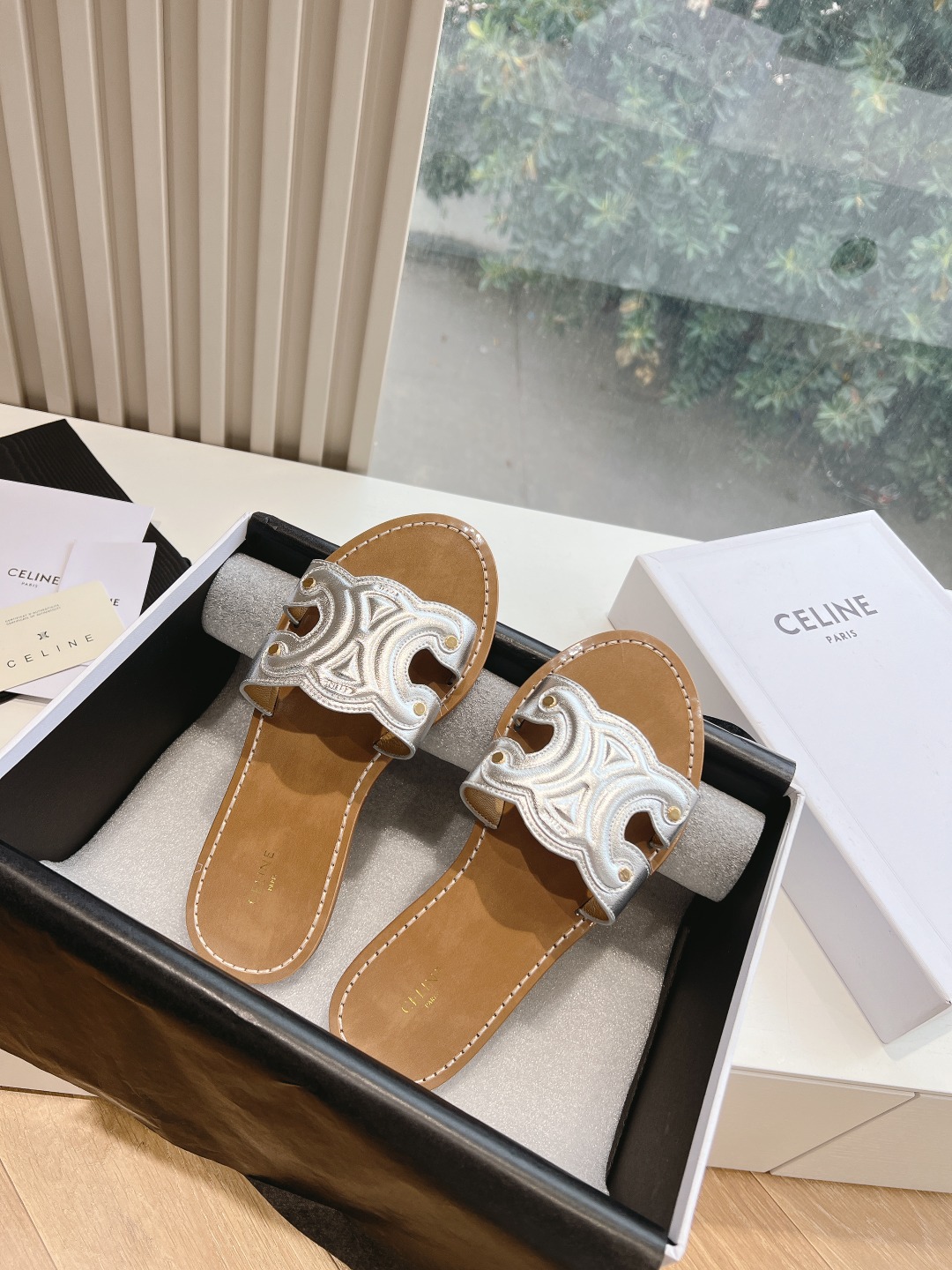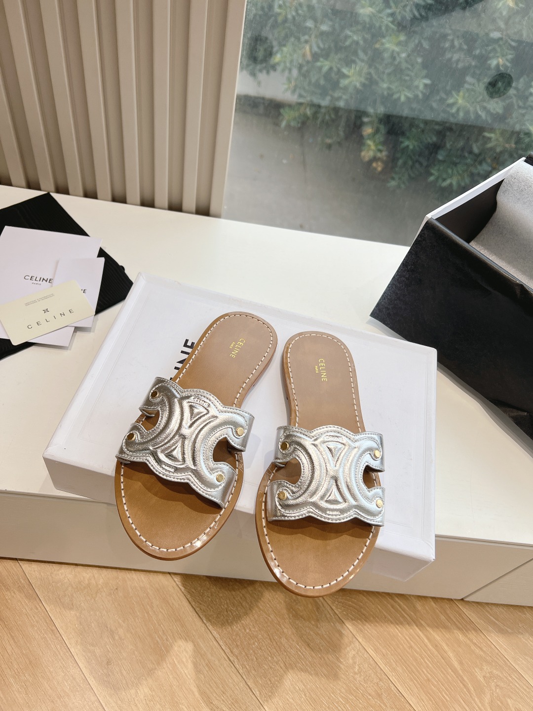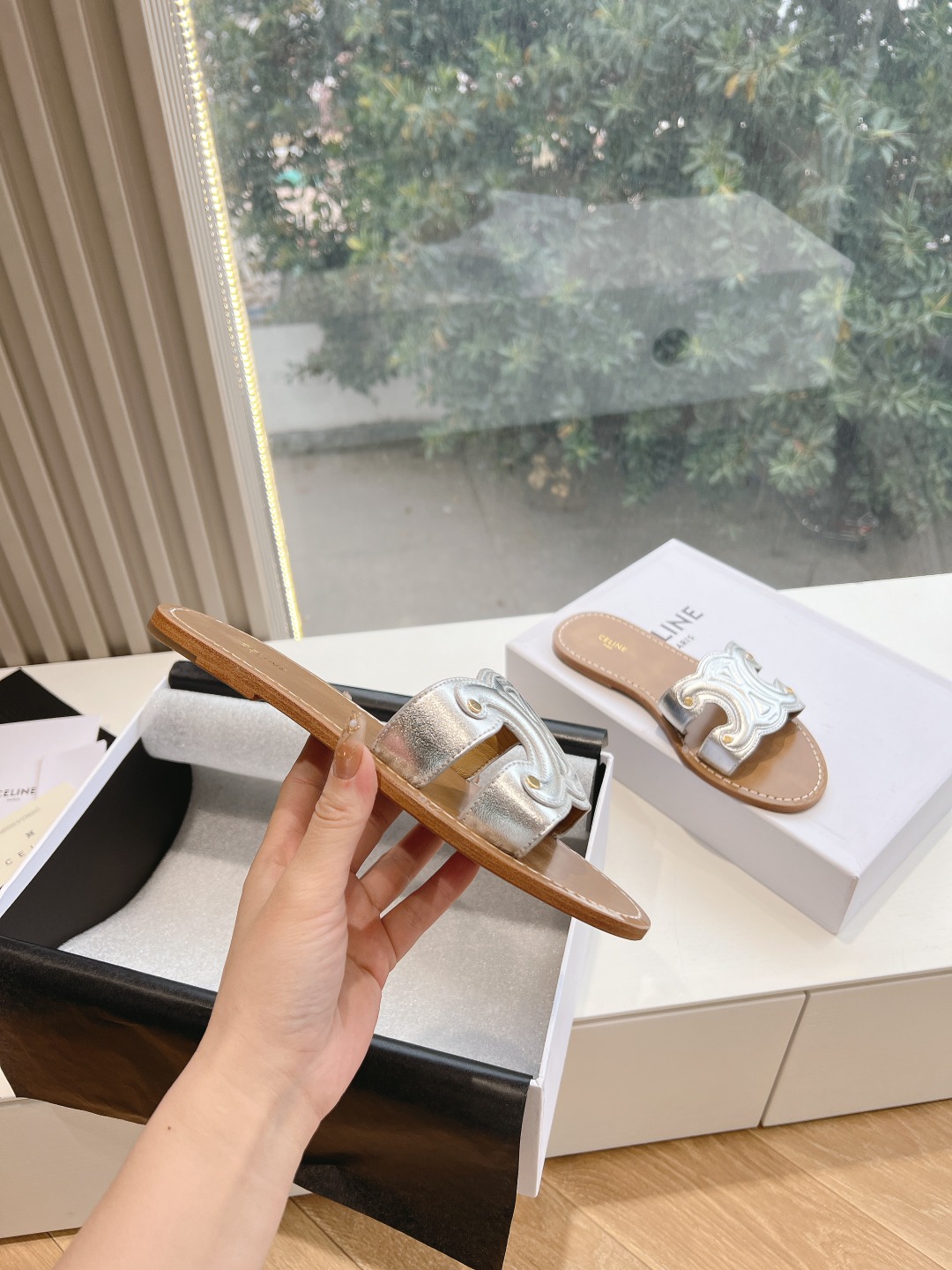 NIGO Celine Women's Spring Summer TRIOMPHE Cow Leather Mule Shoes Solid Color Casual Slippers Shoes #nigo71816