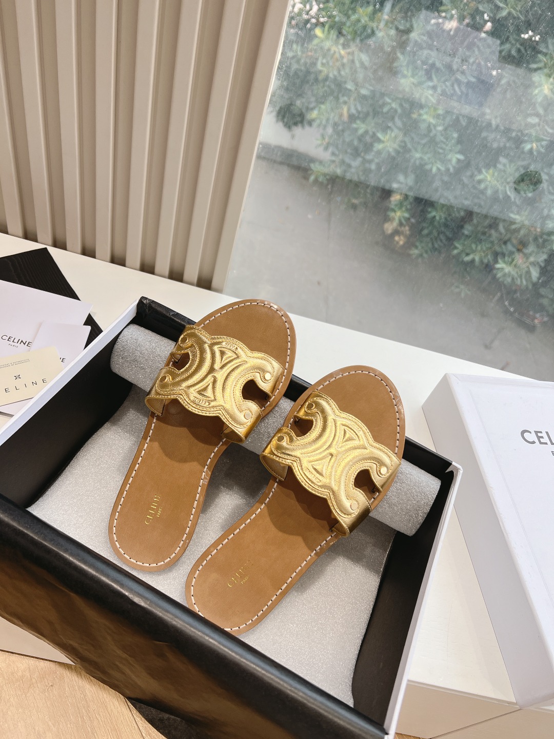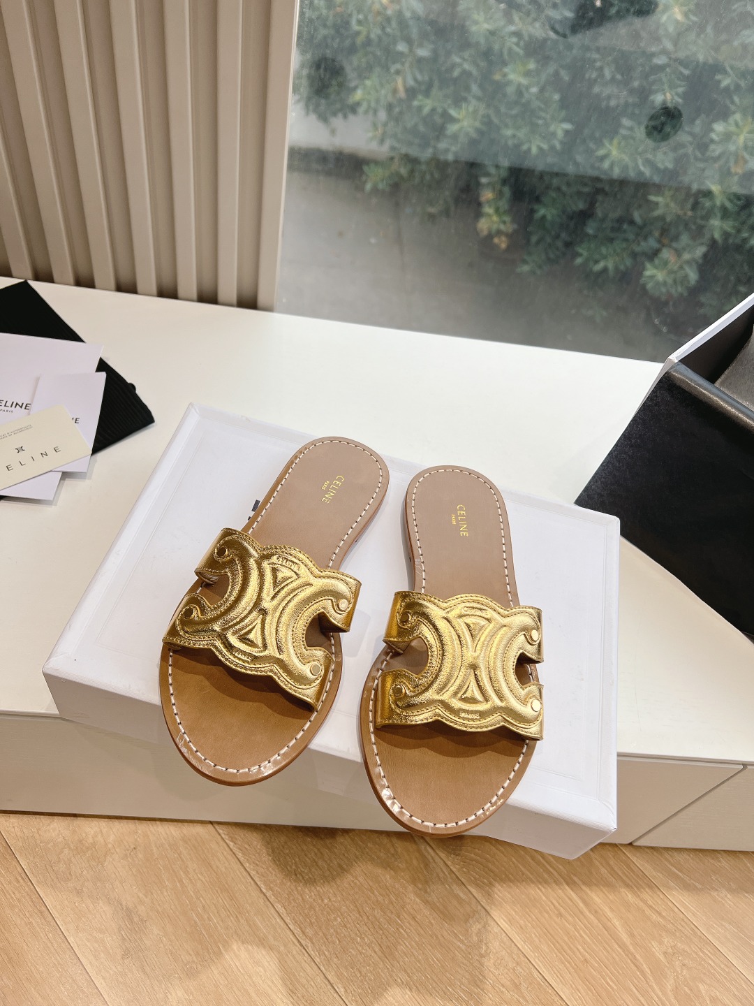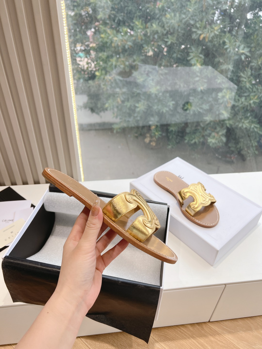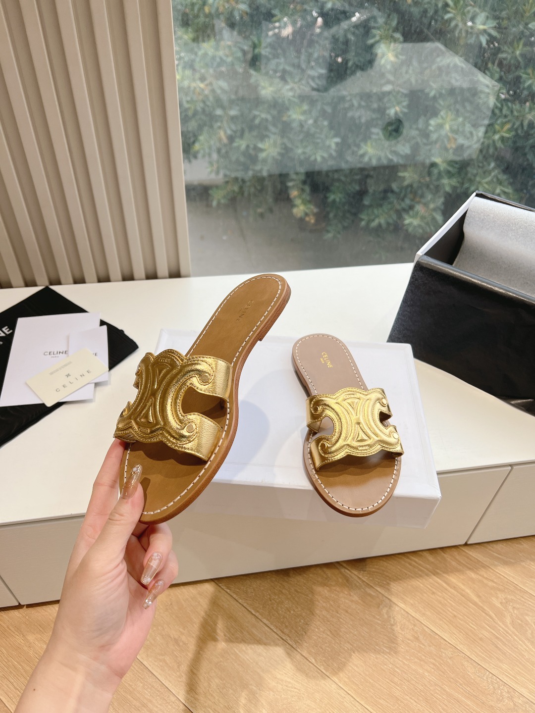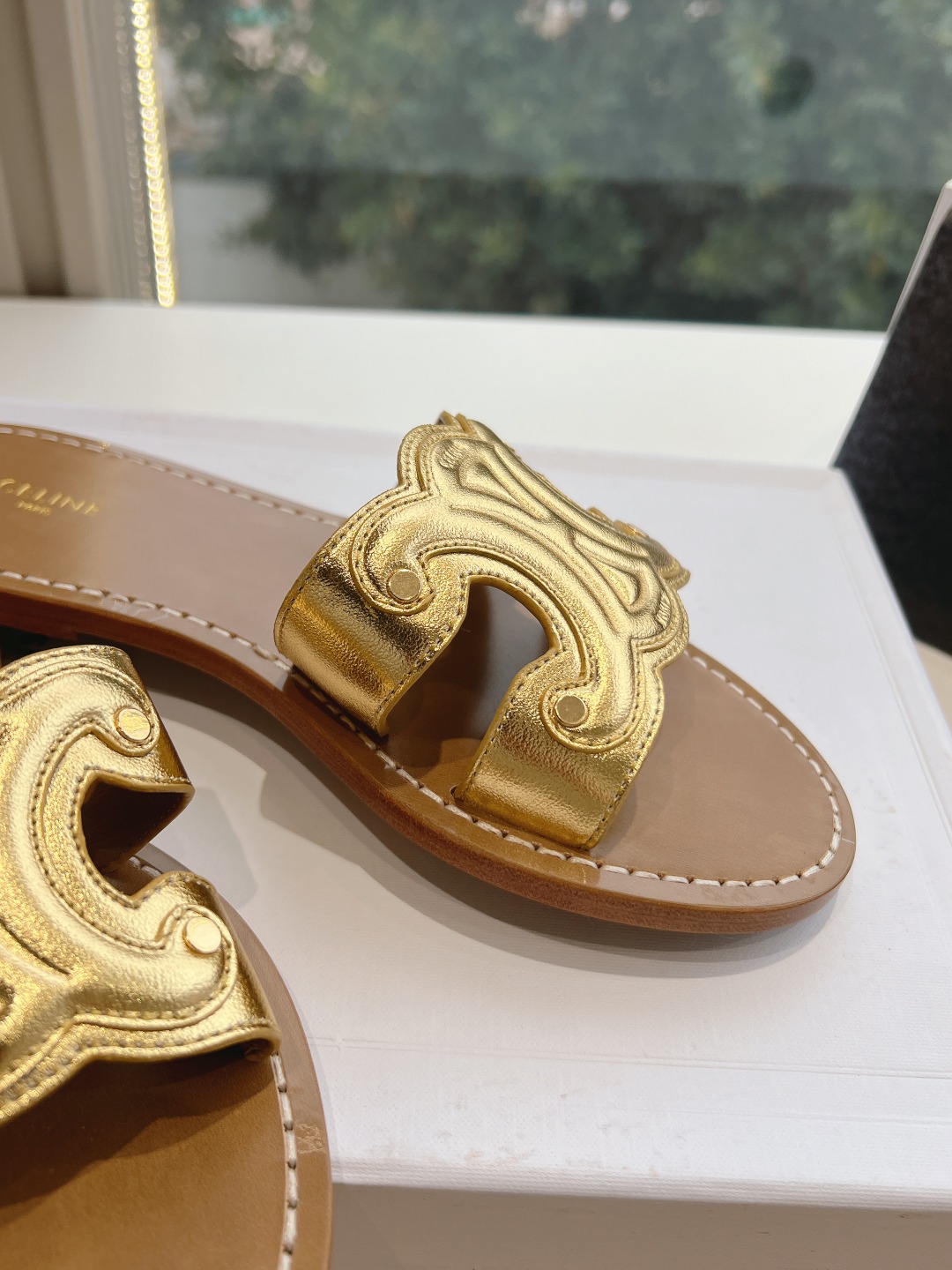 NIGO Celine Women's Spring Summer TRIOMPHE Cow Leather Mule Shoes Solid Color Casual Slippers Shoes #nigo71816