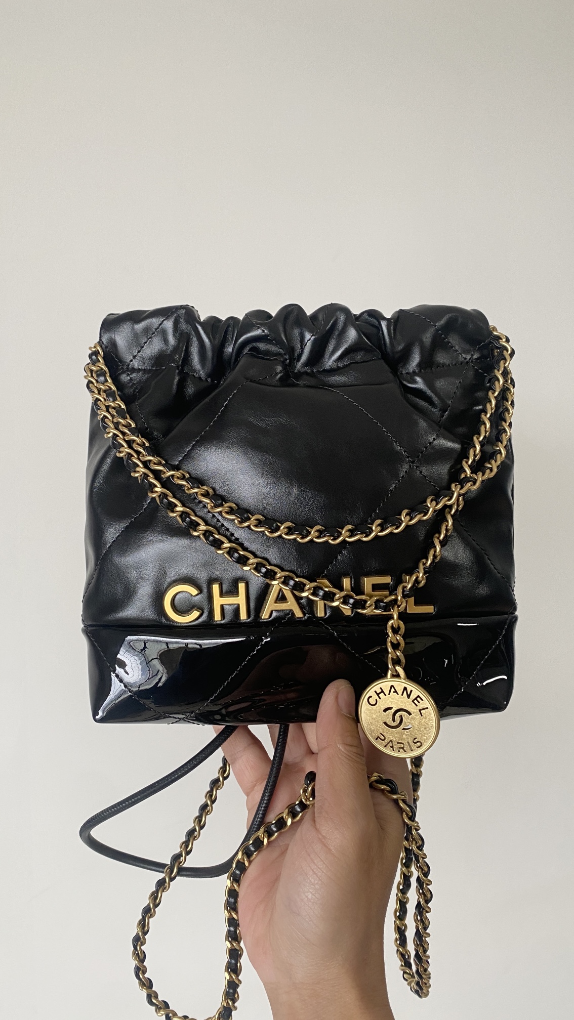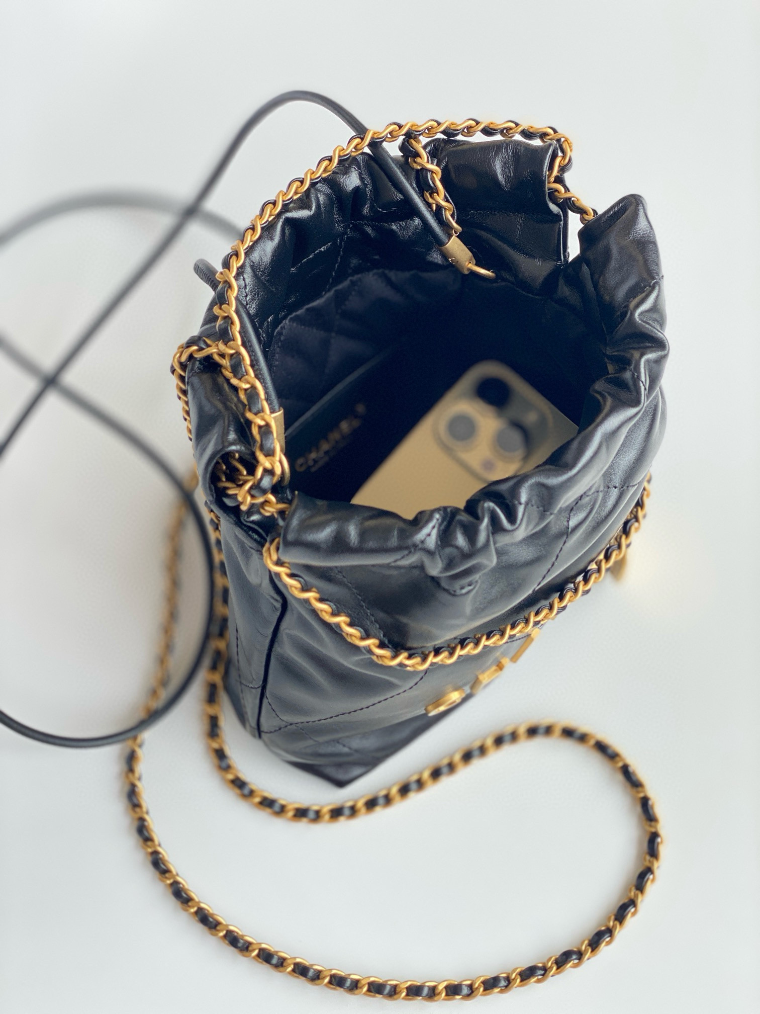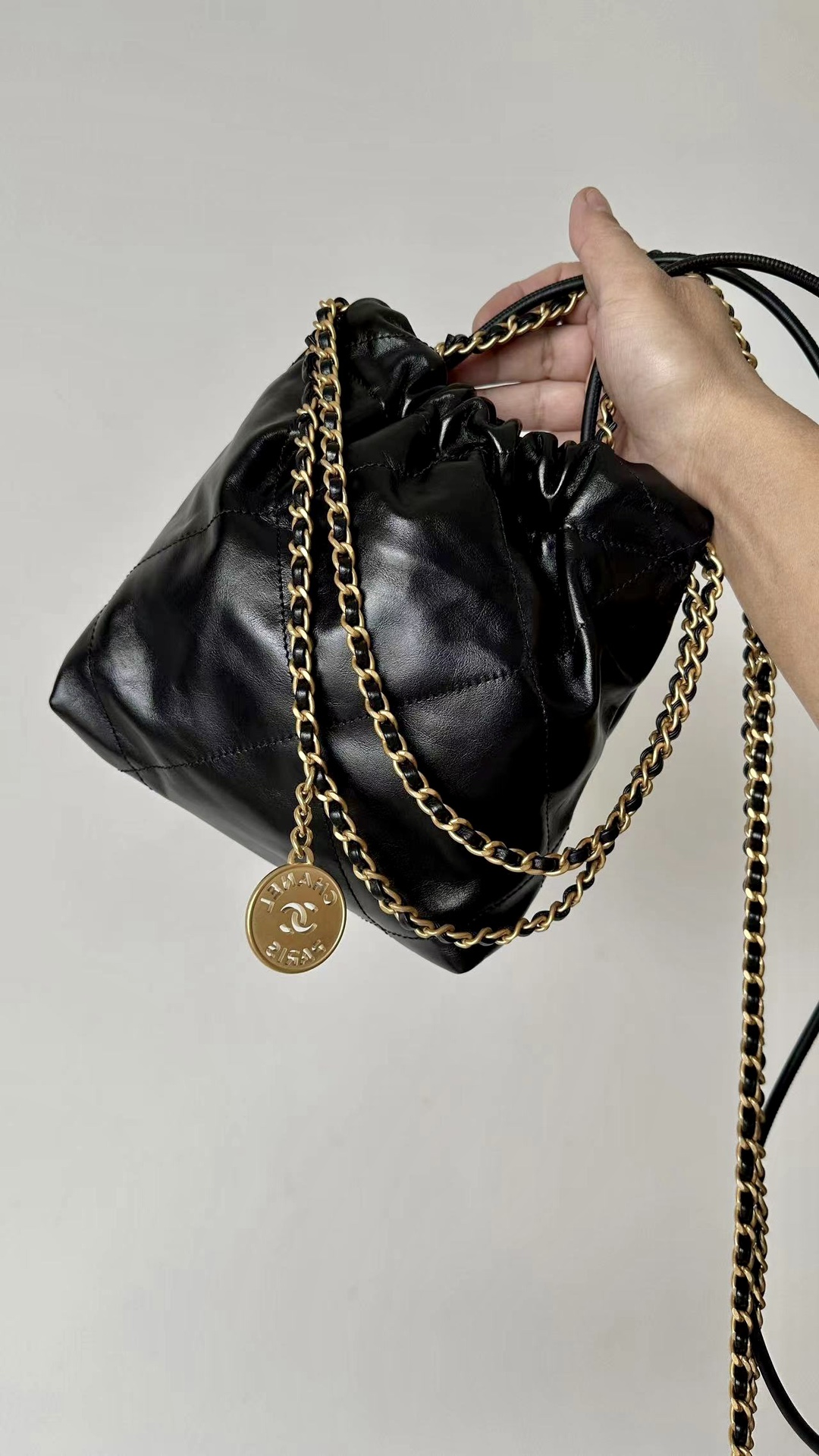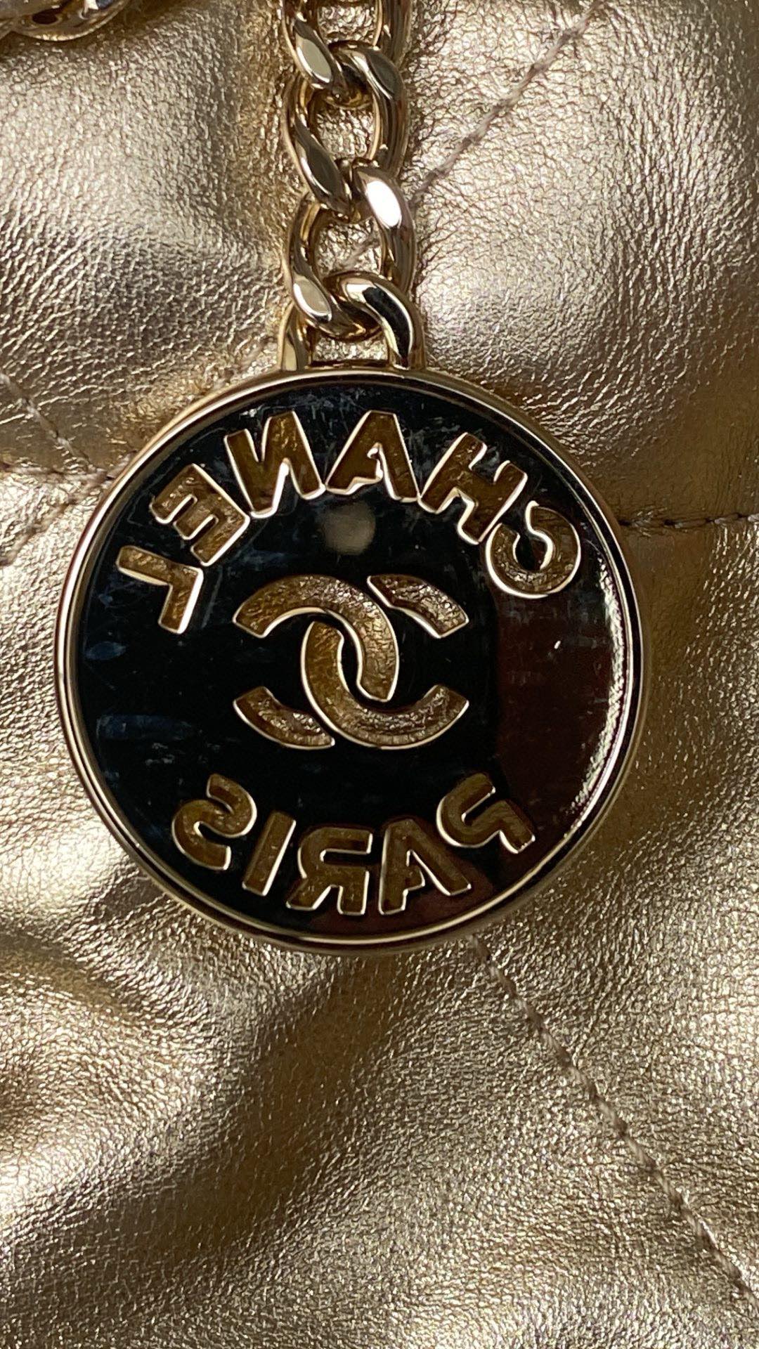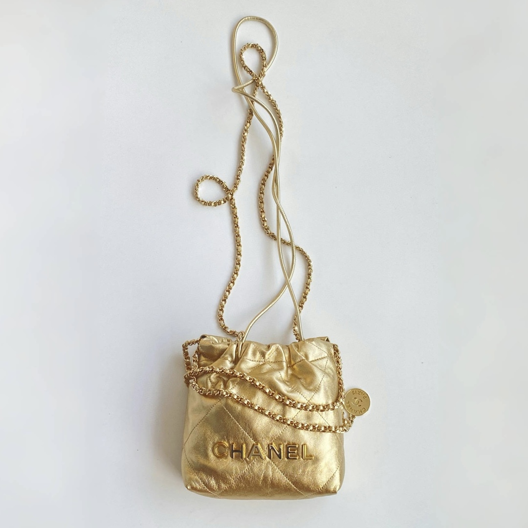 NIGO Chanel 22 Mini Handbag Shiny Calfskin Gold-tone Metal #nigo319128