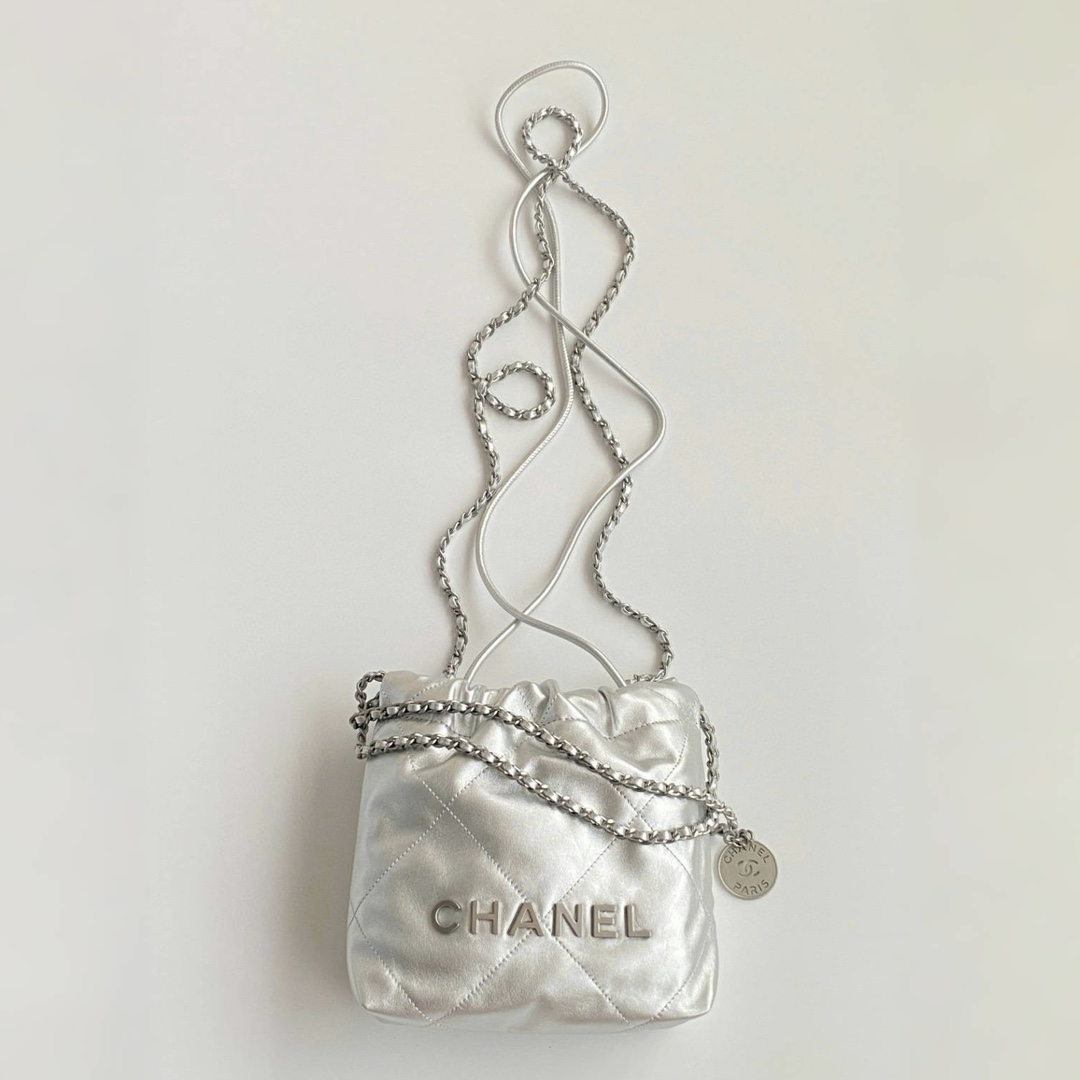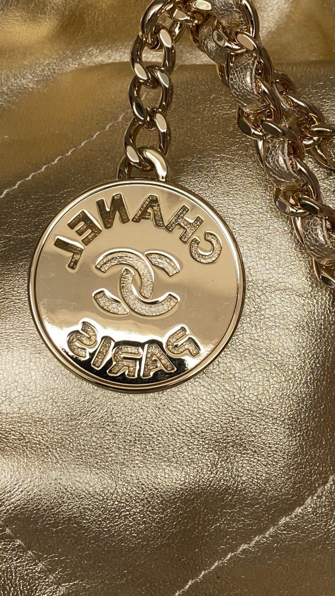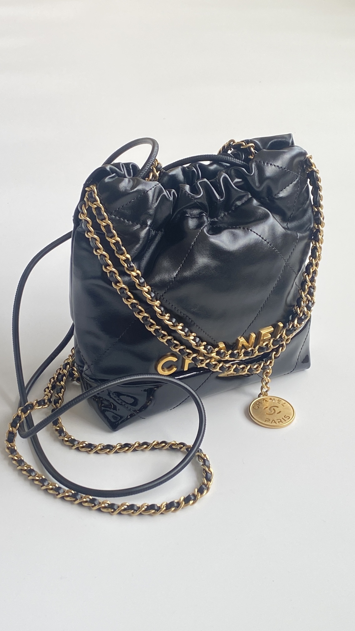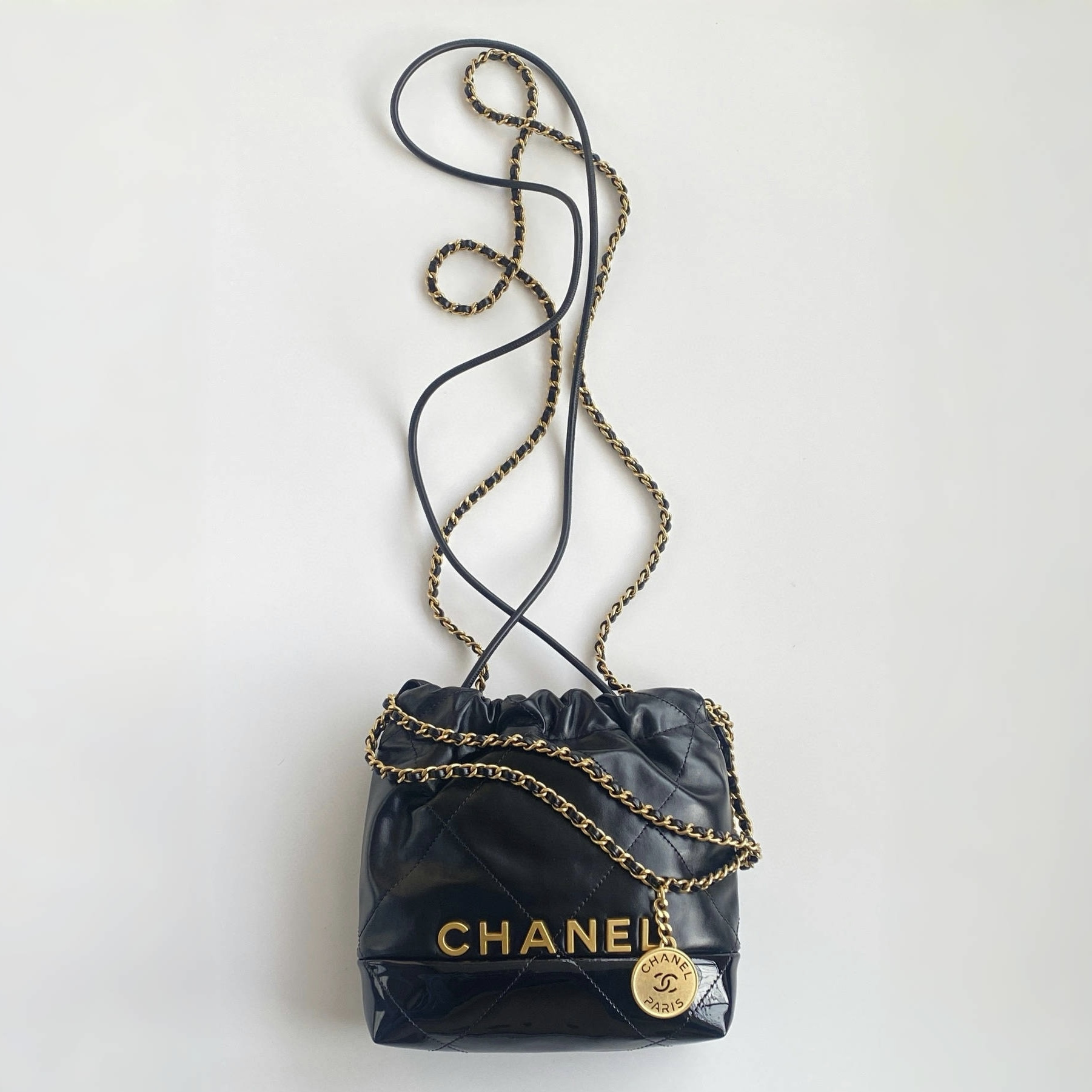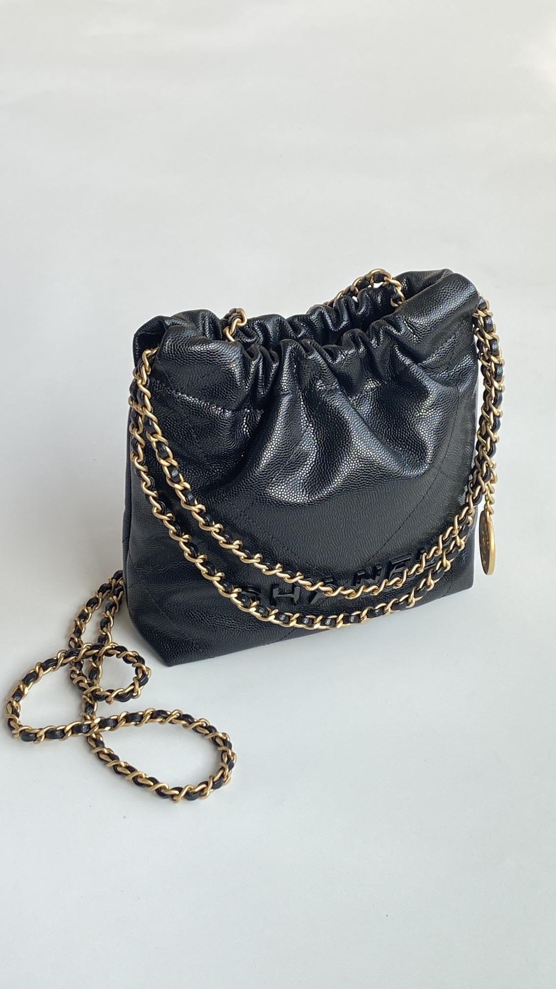 NIGO Chanel 22 Mini Handbag Shiny Calfskin Gold-tone Metal #nigo319128