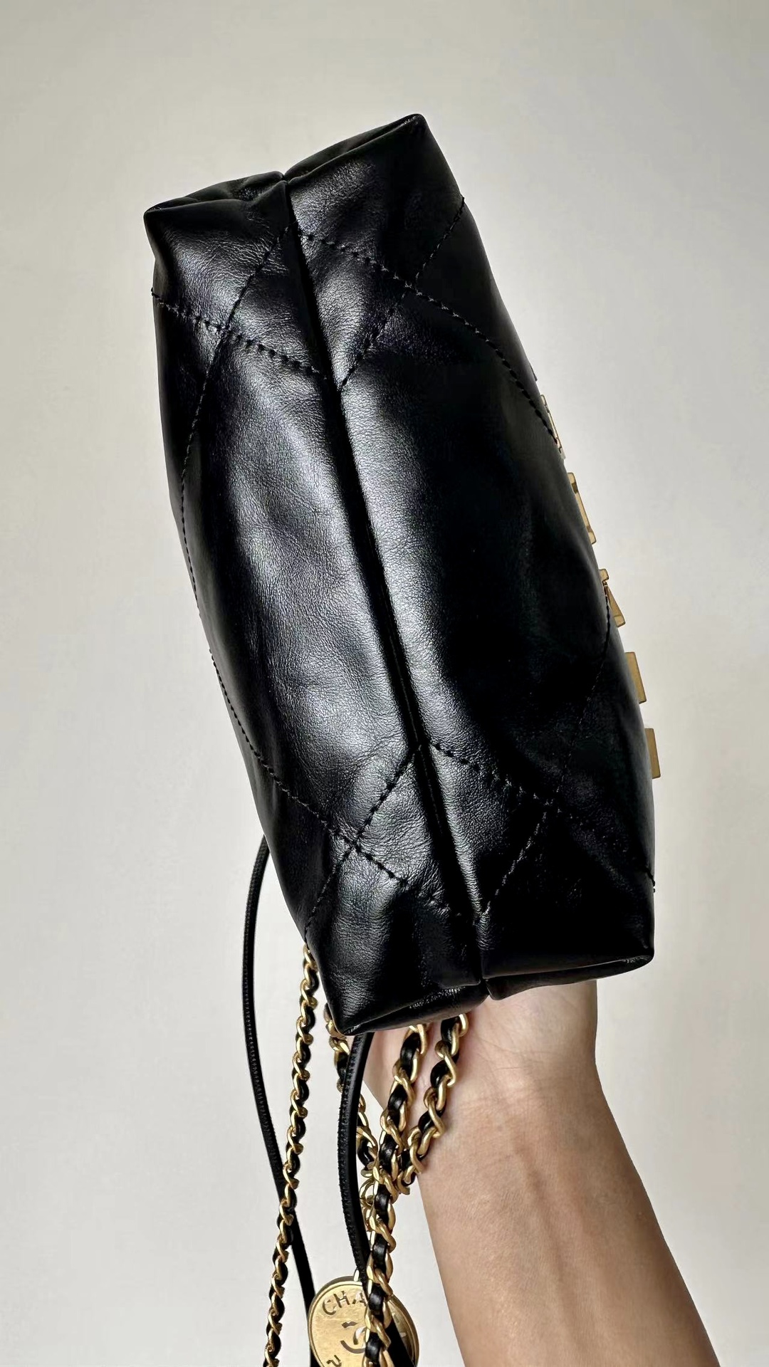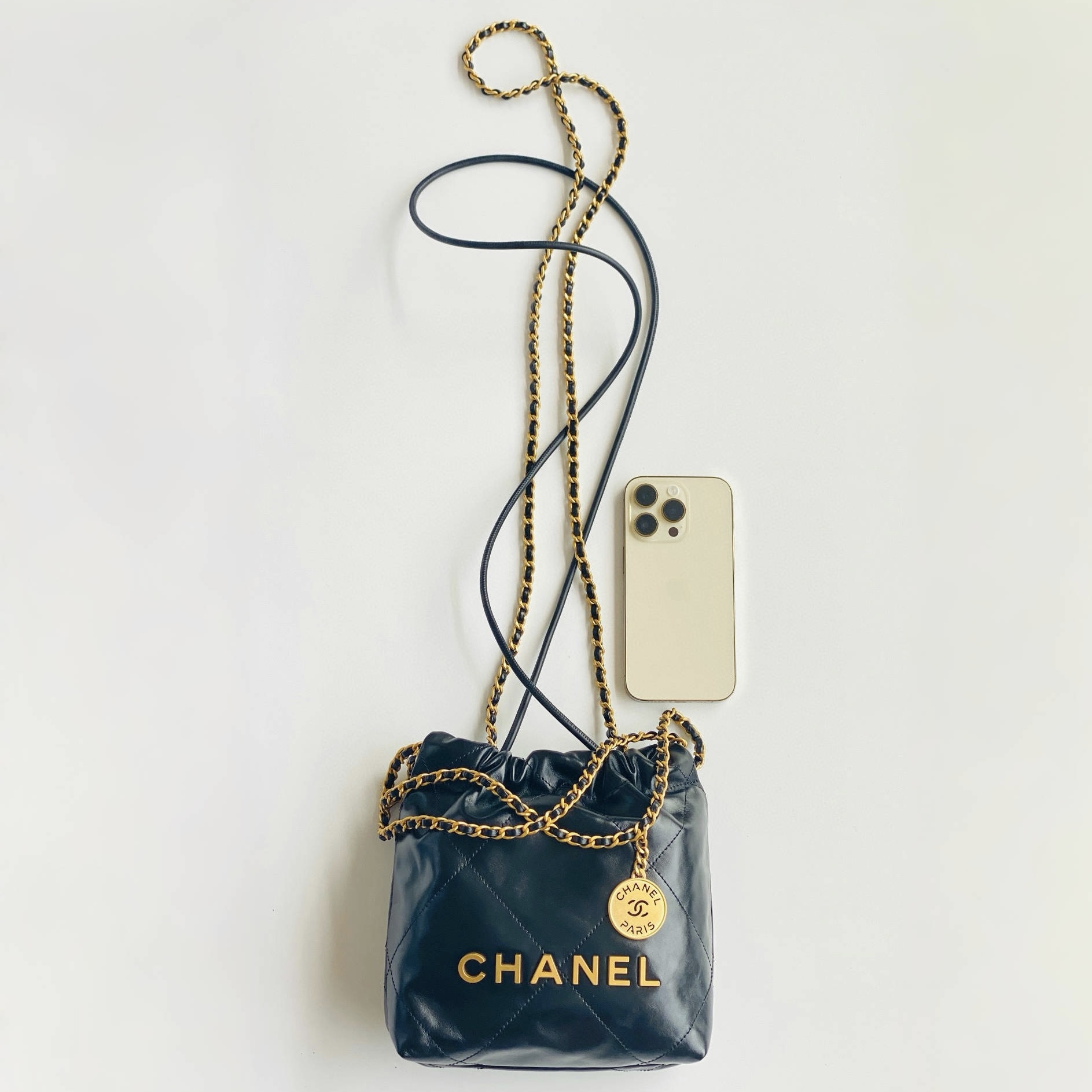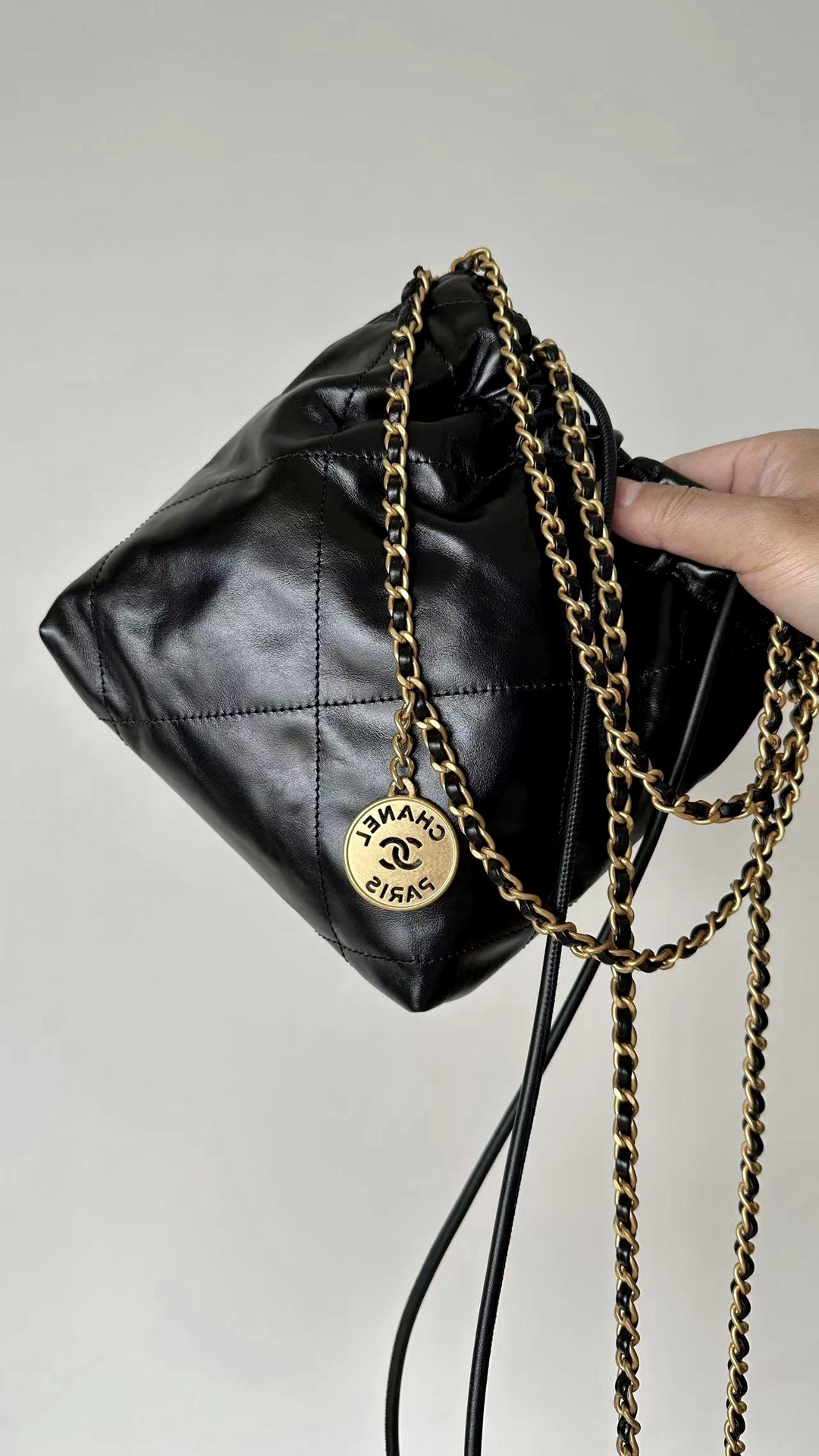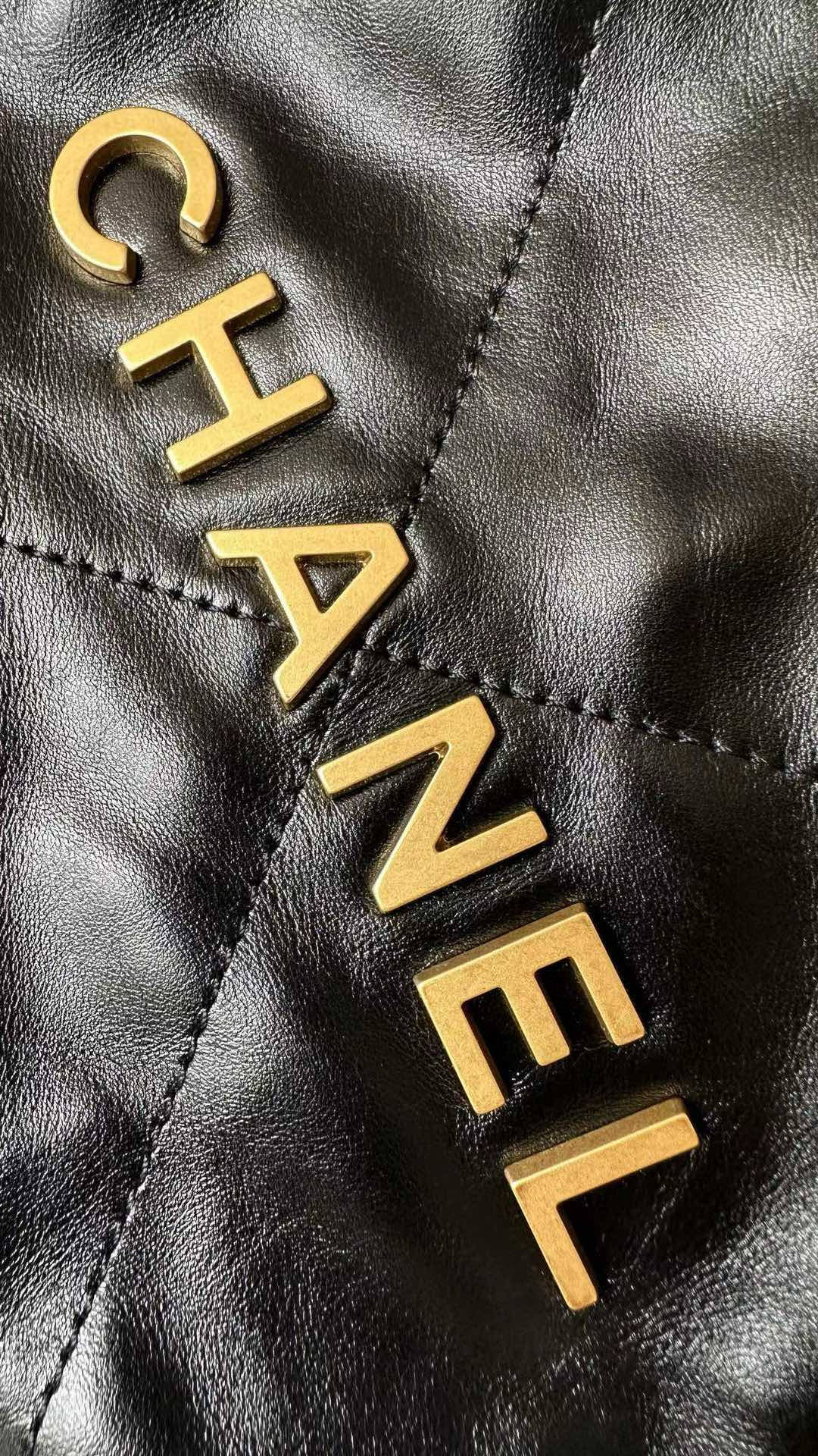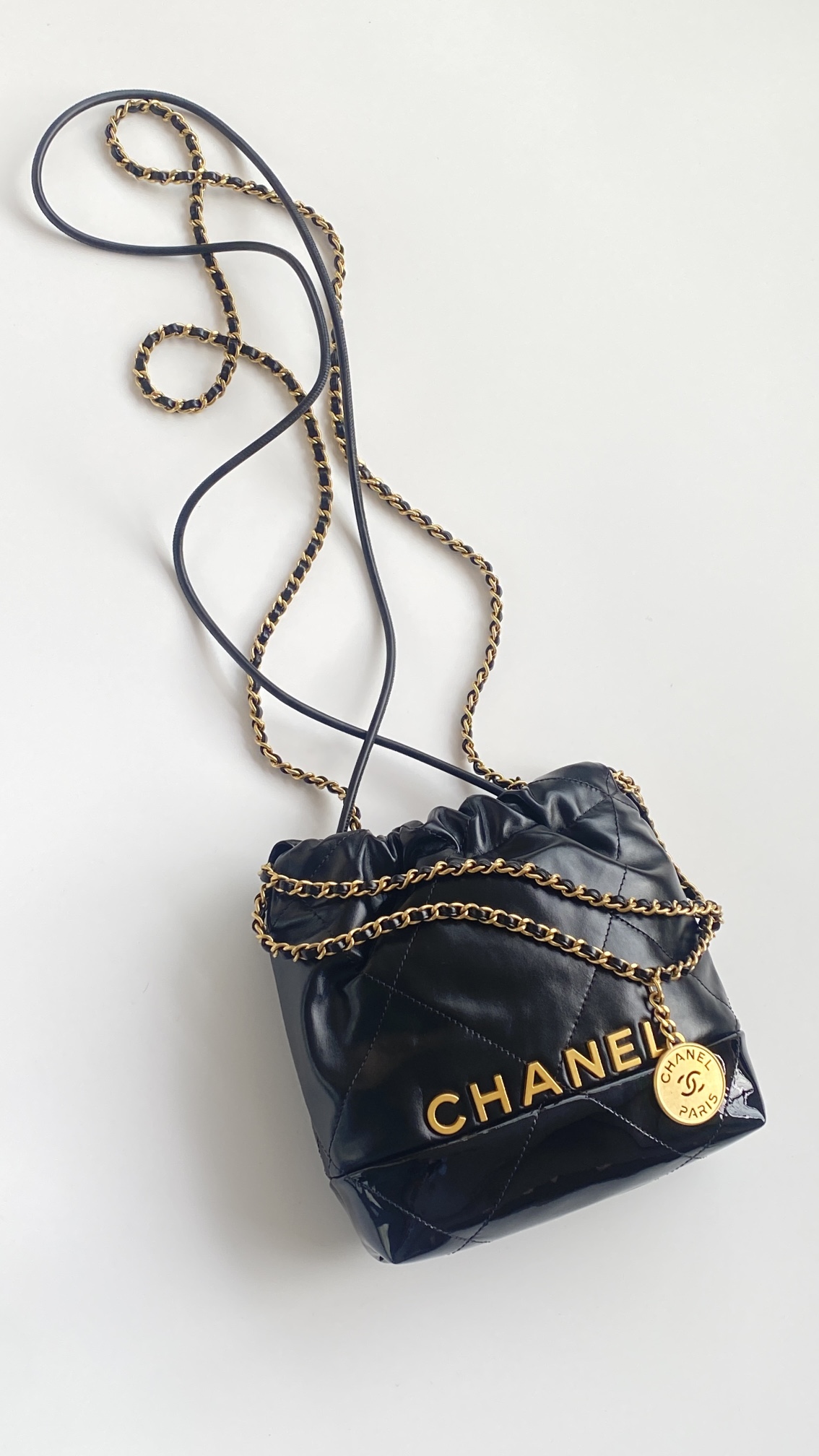 NIGO Chanel 22 Mini Handbag Shiny Calfskin Gold-tone Metal #nigo319128