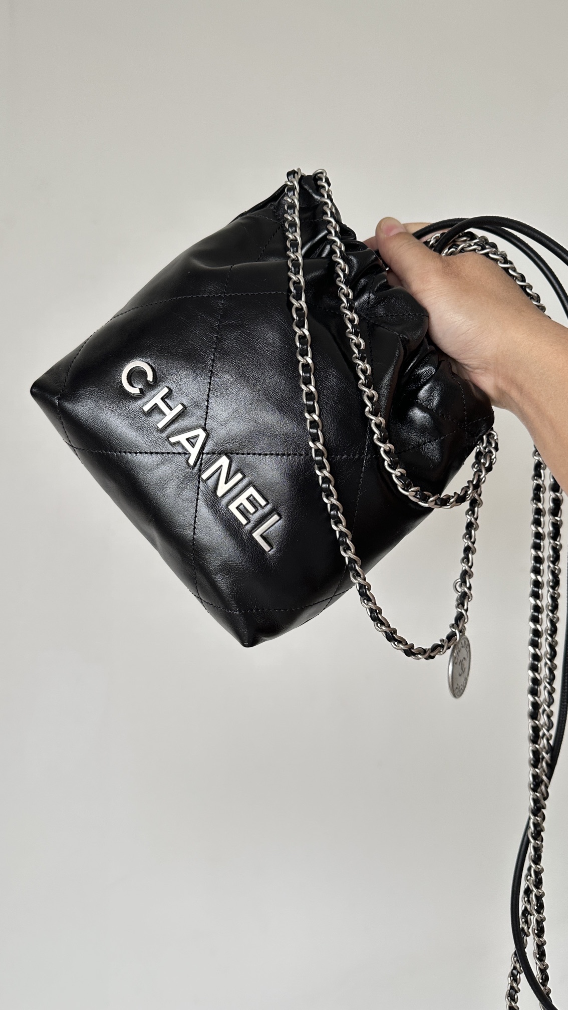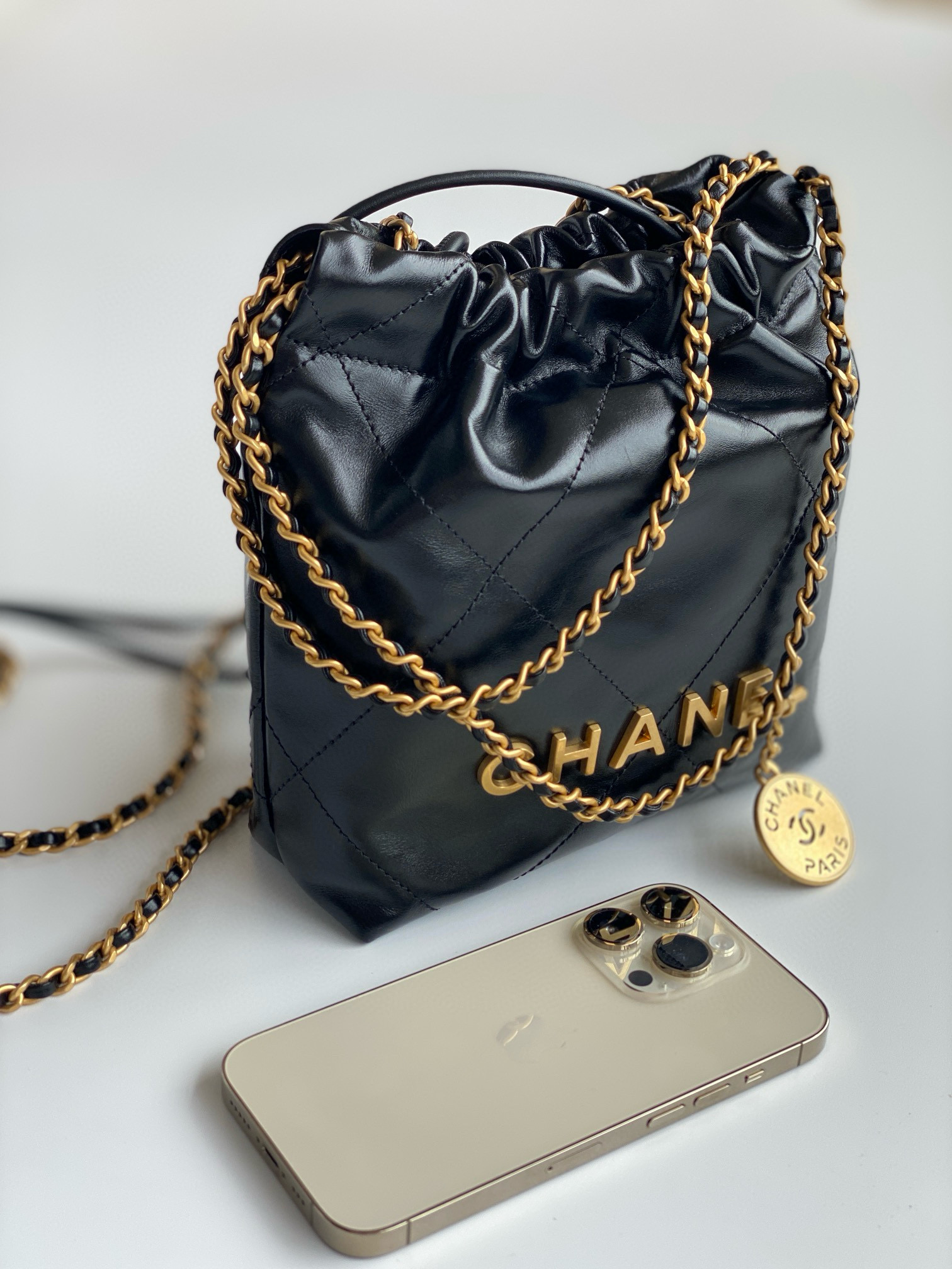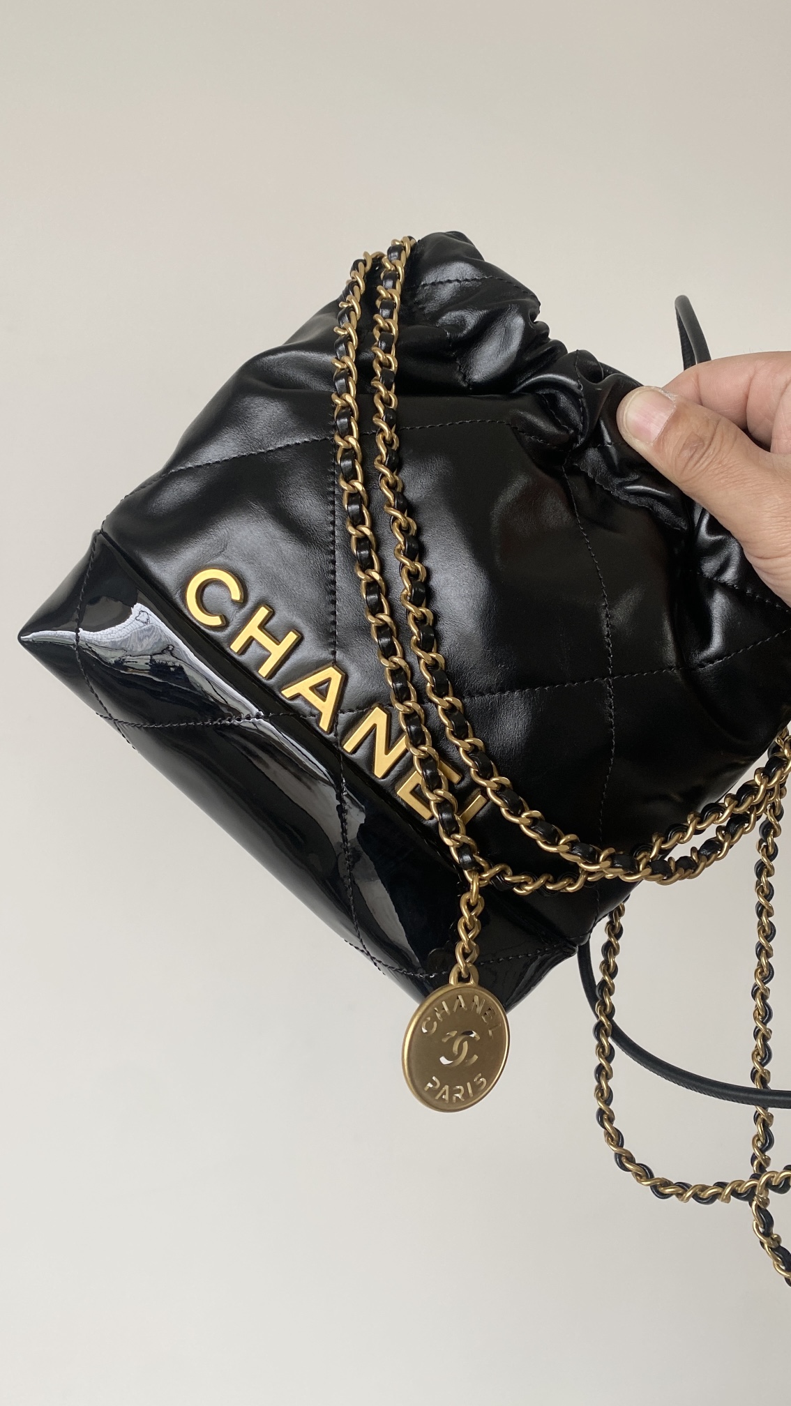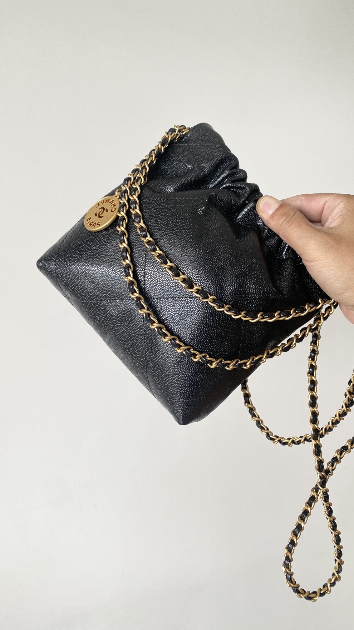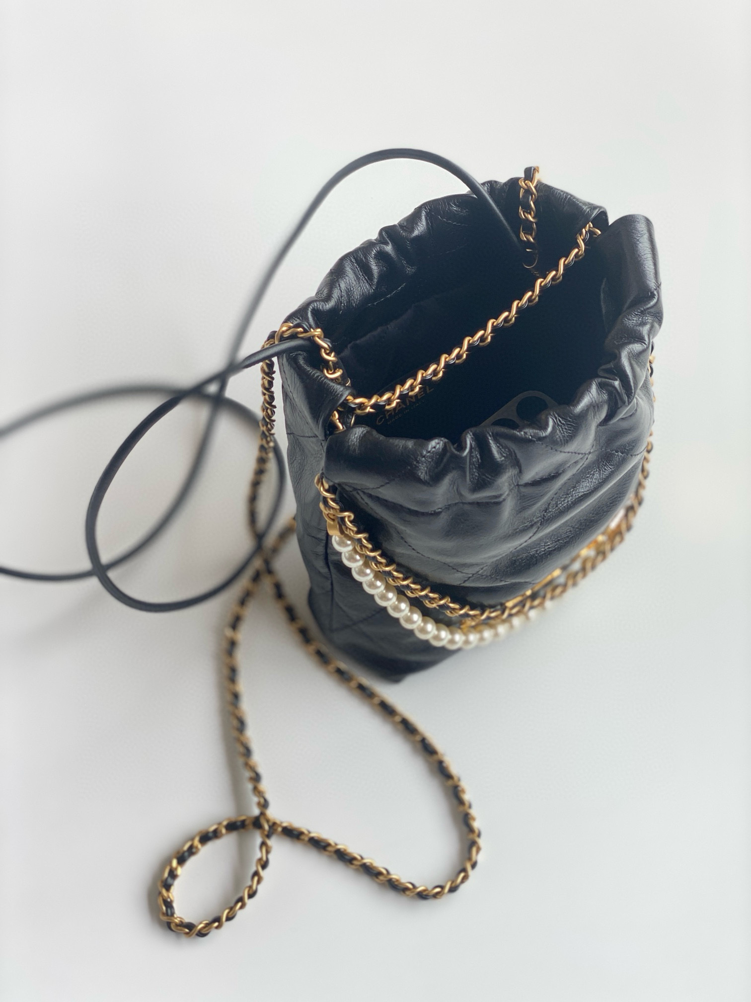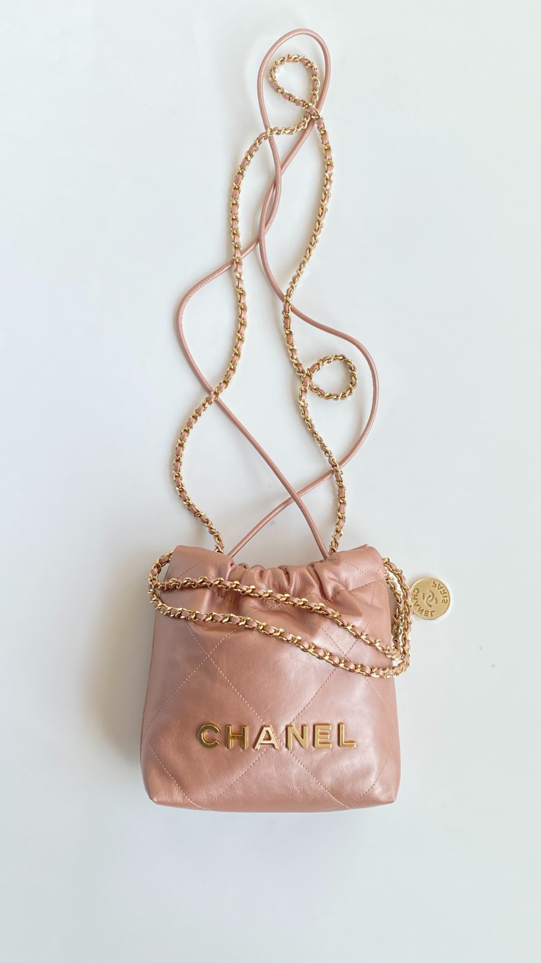 NIGO Chanel 22 Mini Handbag Shiny Calfskin Gold-tone Metal #nigo319128
