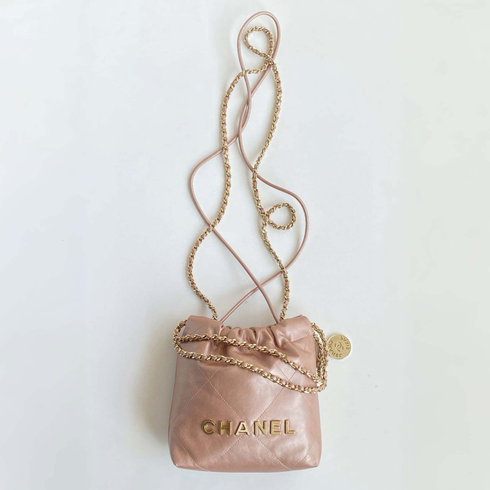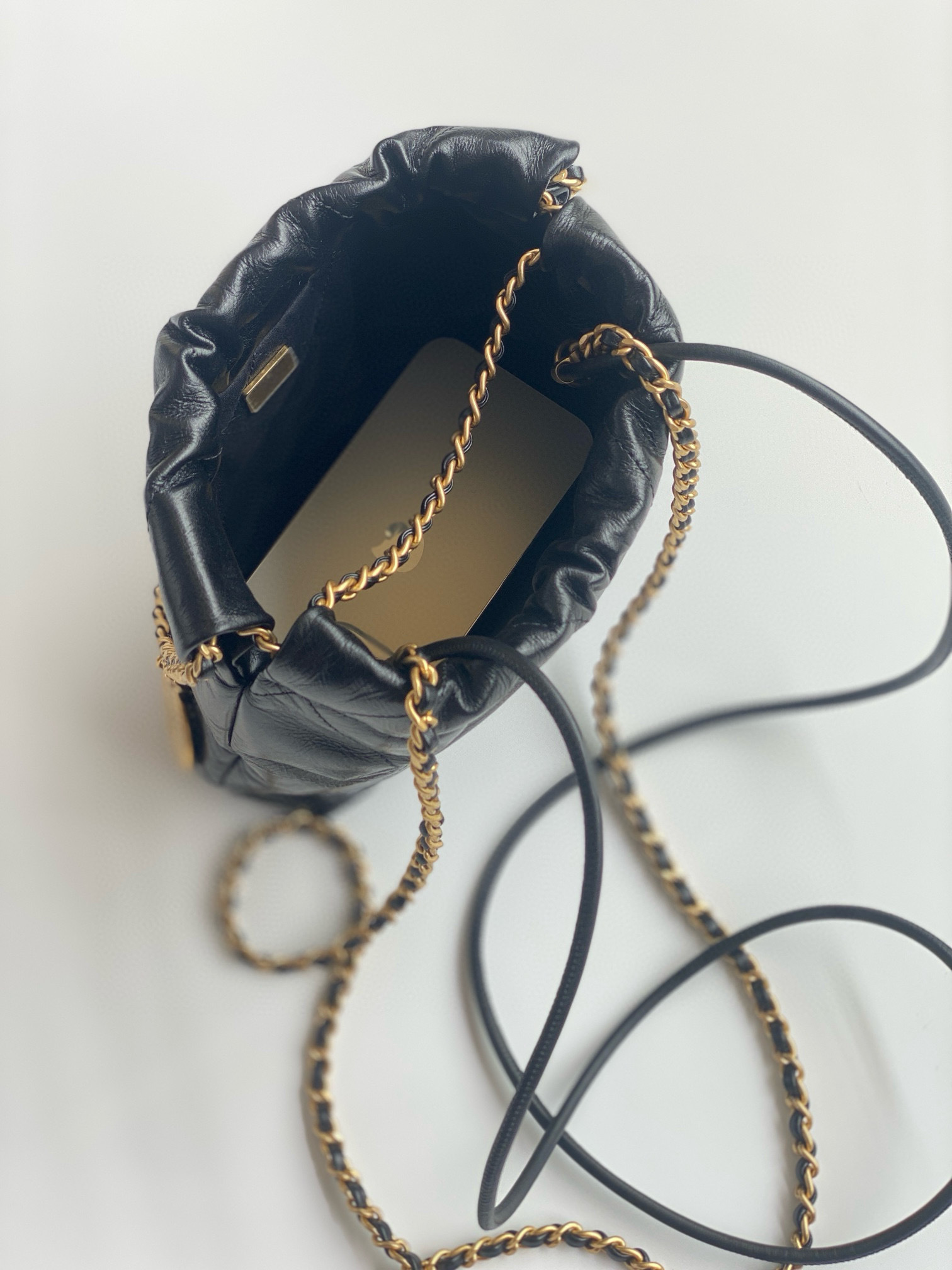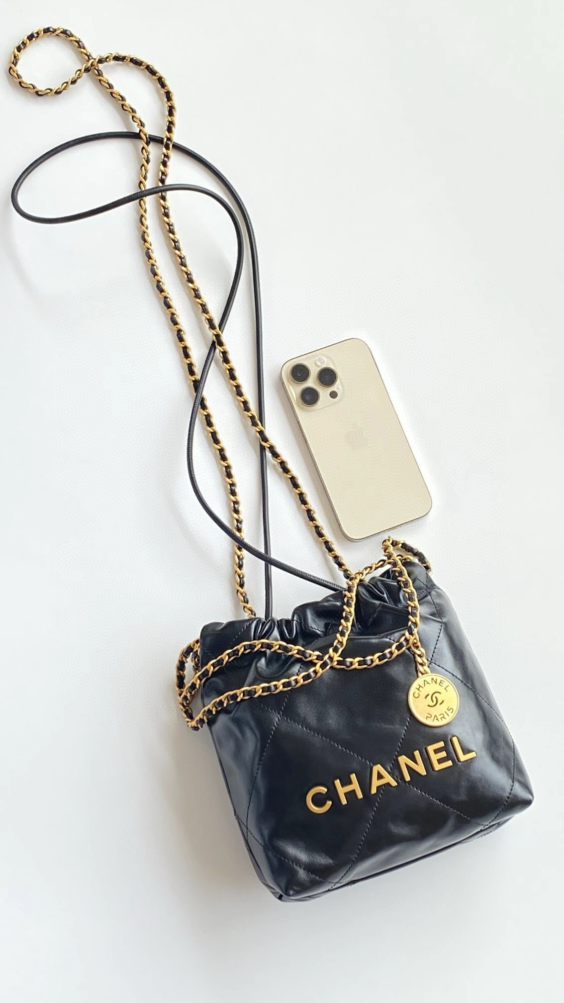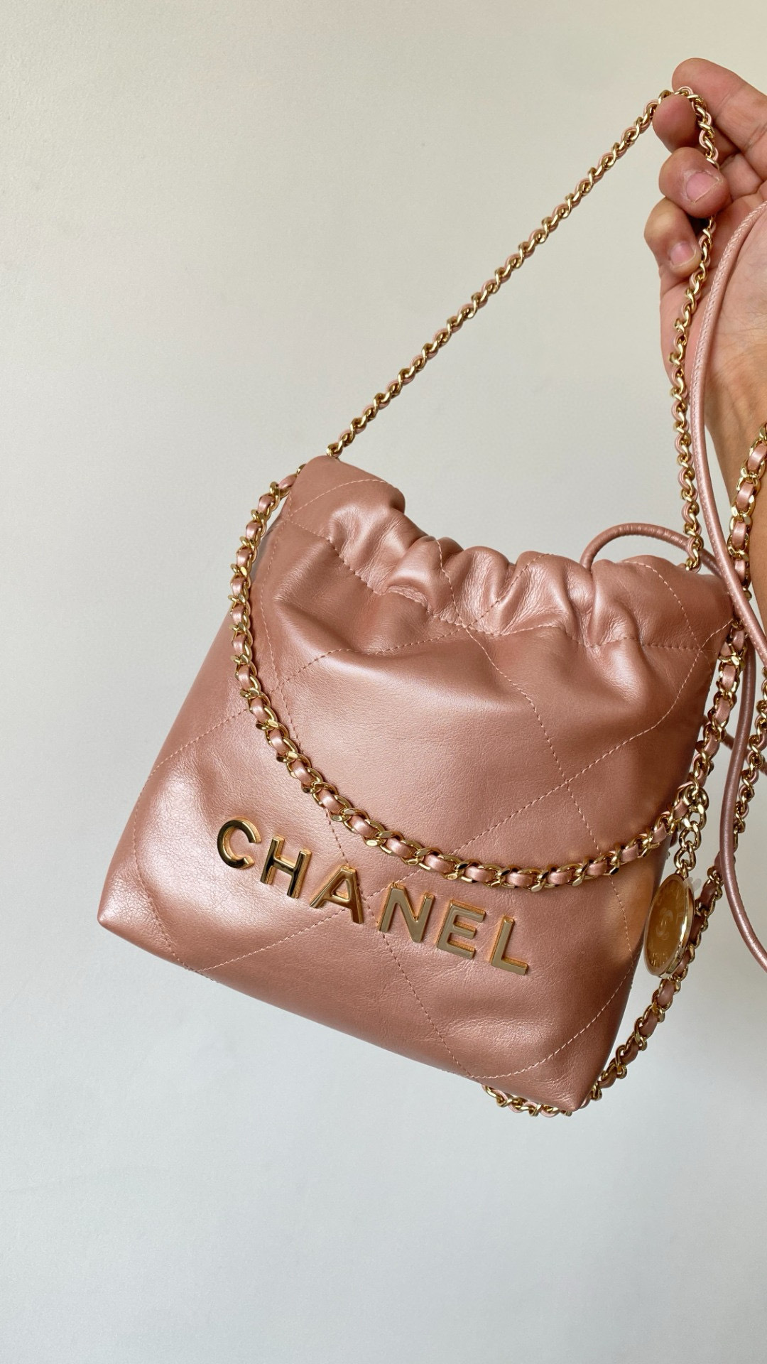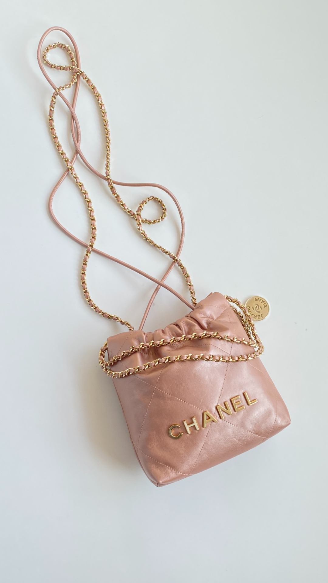 NIGO Chanel 22 Mini Handbag Shiny Calfskin Gold-tone Metal #nigo319128