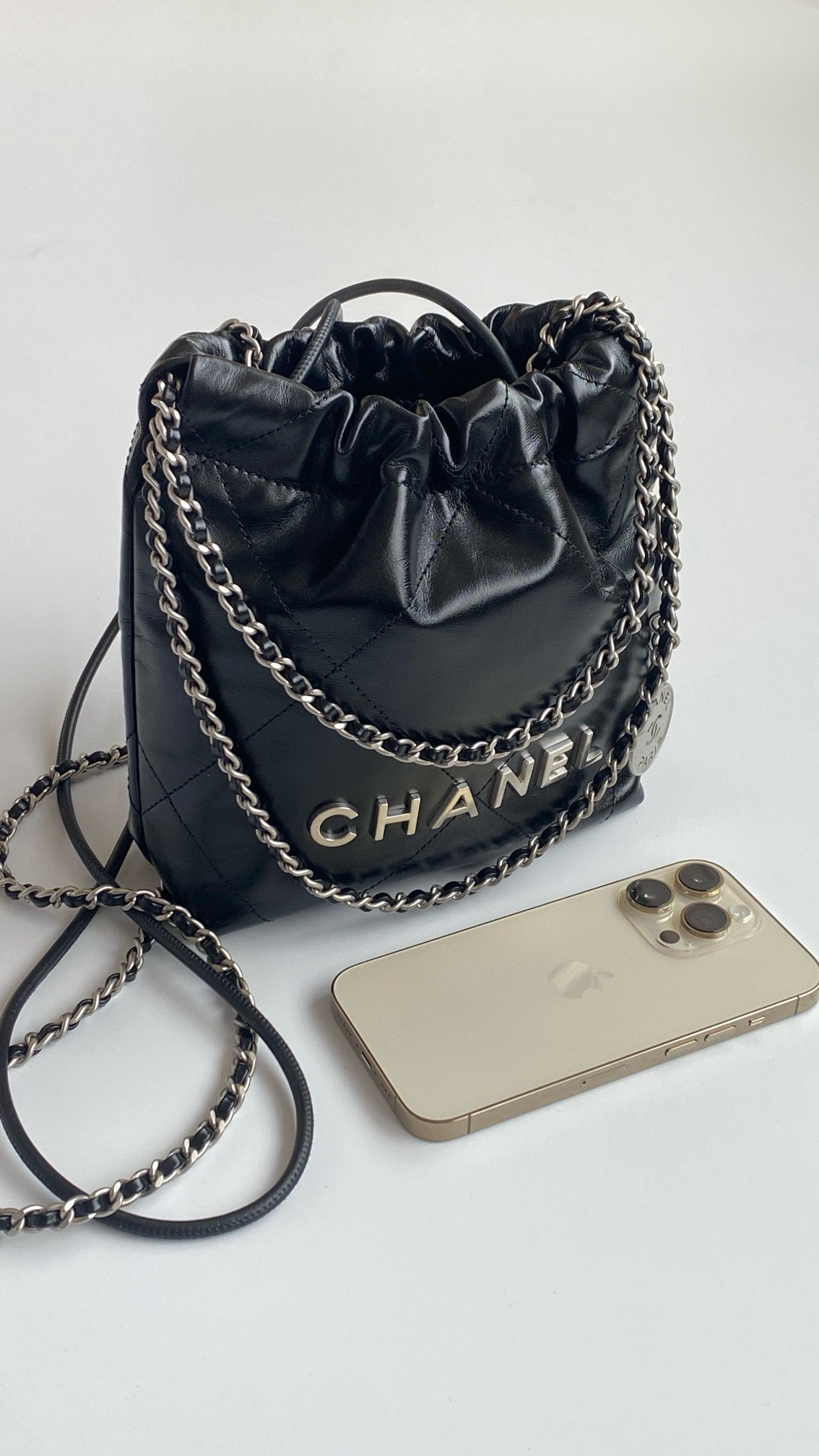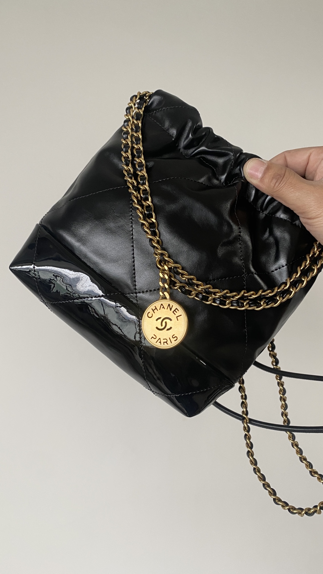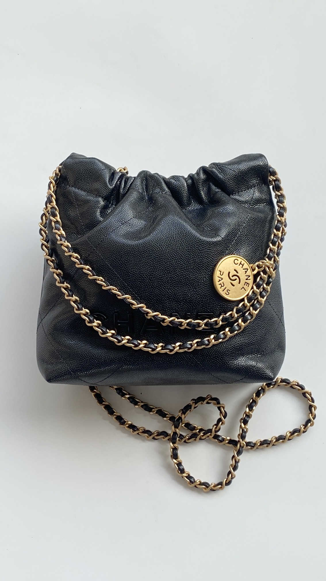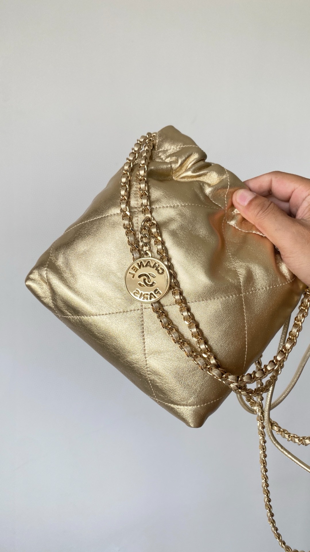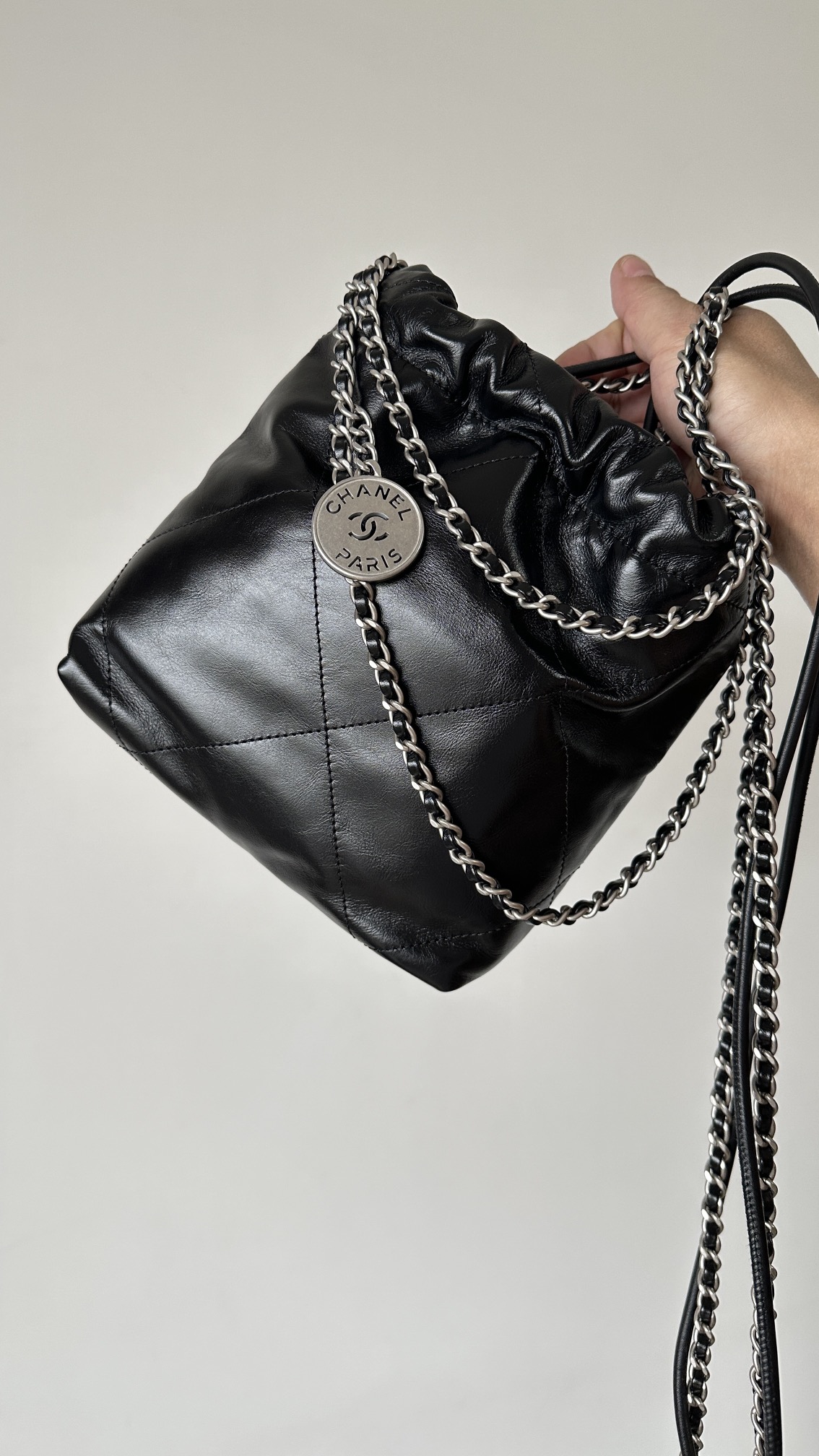 NIGO Chanel 22 Mini Handbag Shiny Calfskin Gold-tone Metal #nigo319128
