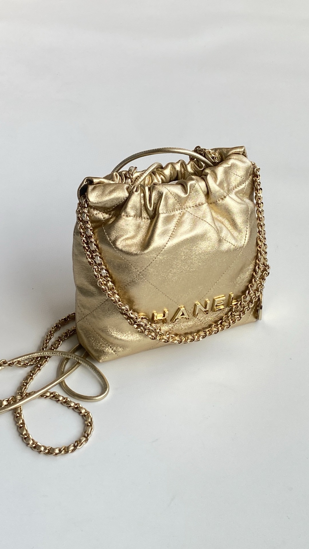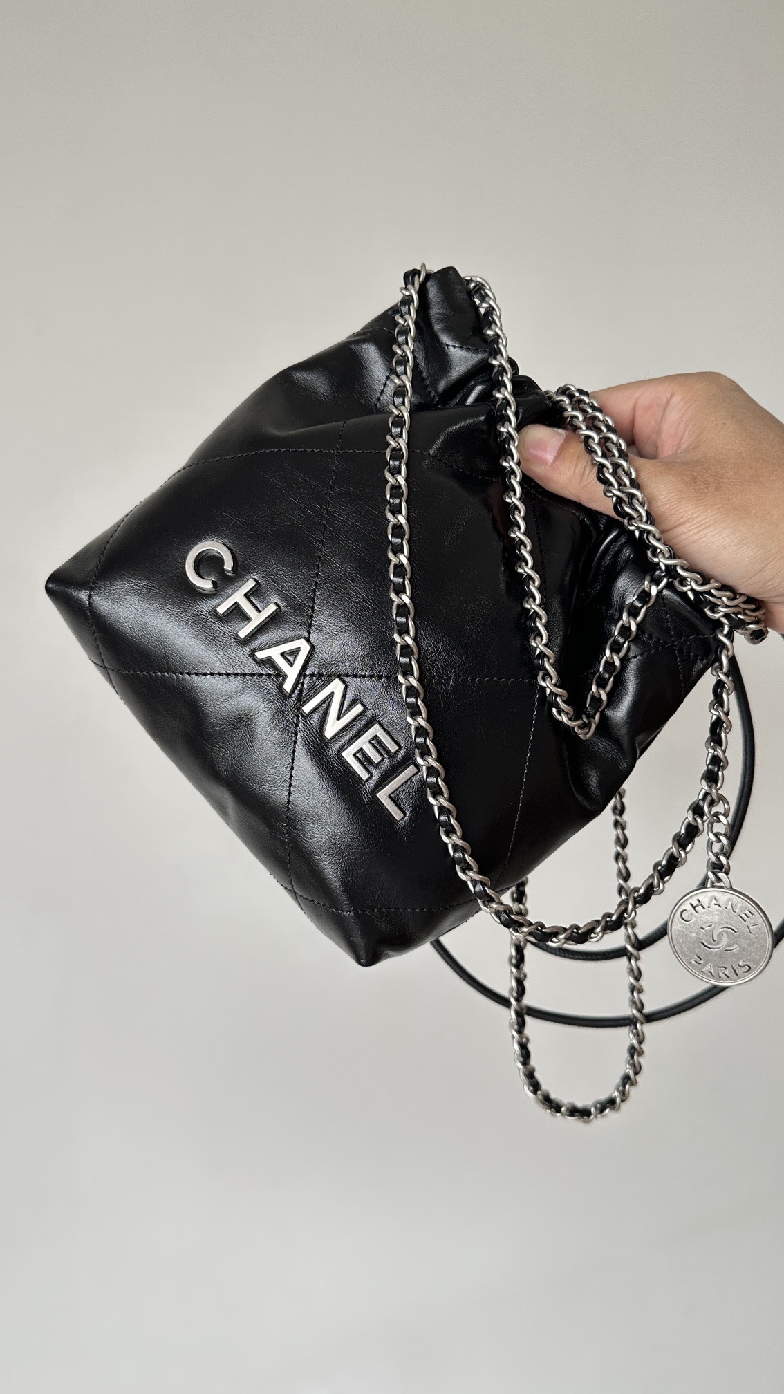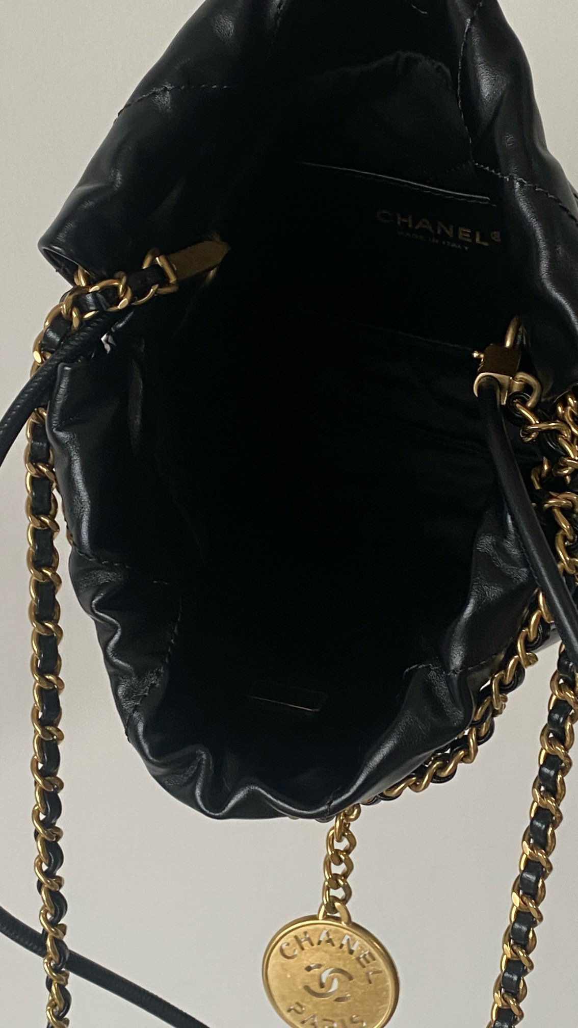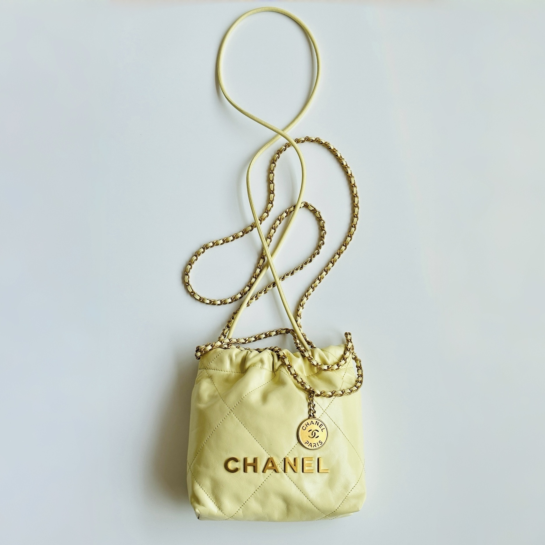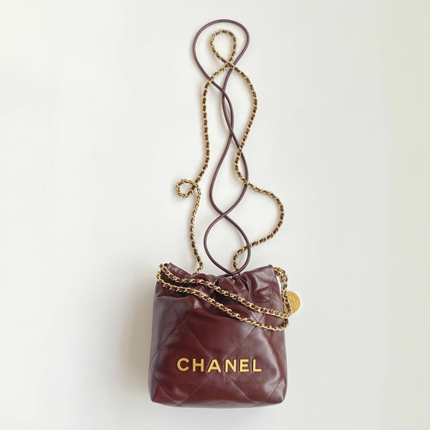 NIGO Chanel 22 Mini Handbag Shiny Calfskin Gold-tone Metal #nigo319128