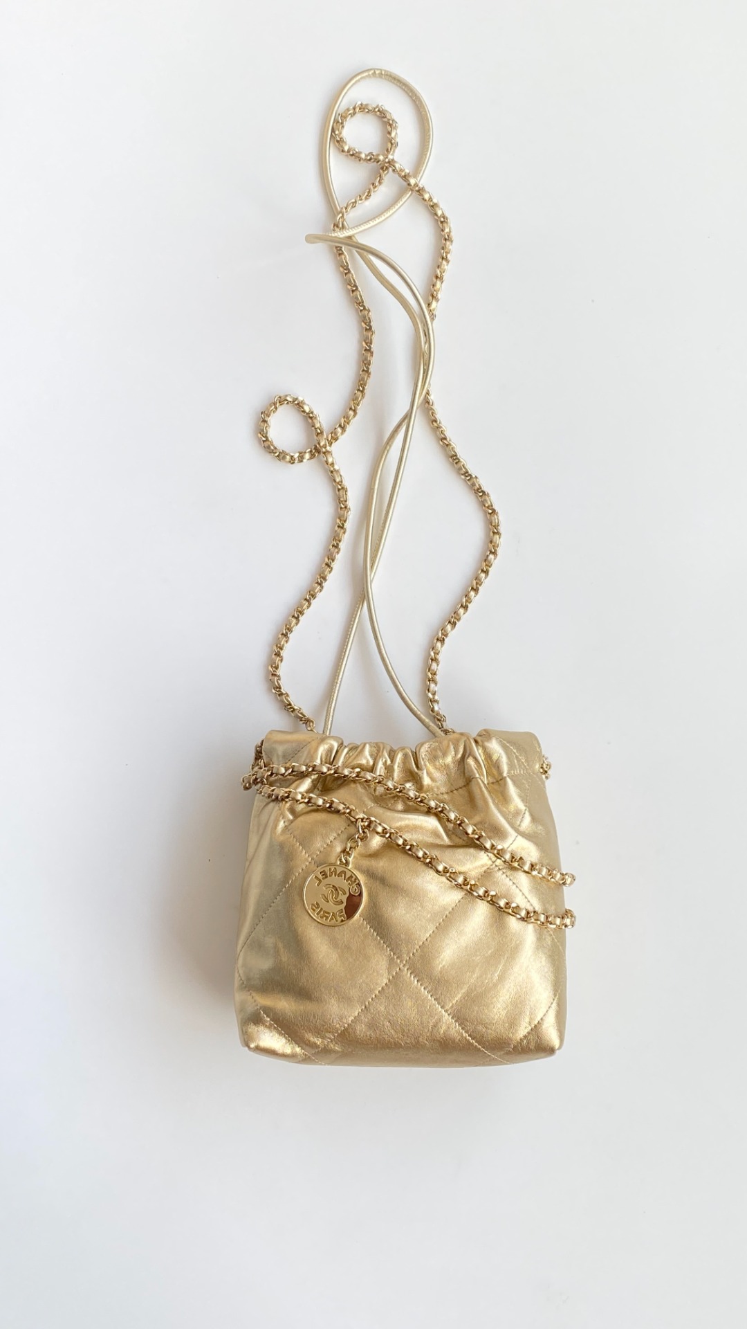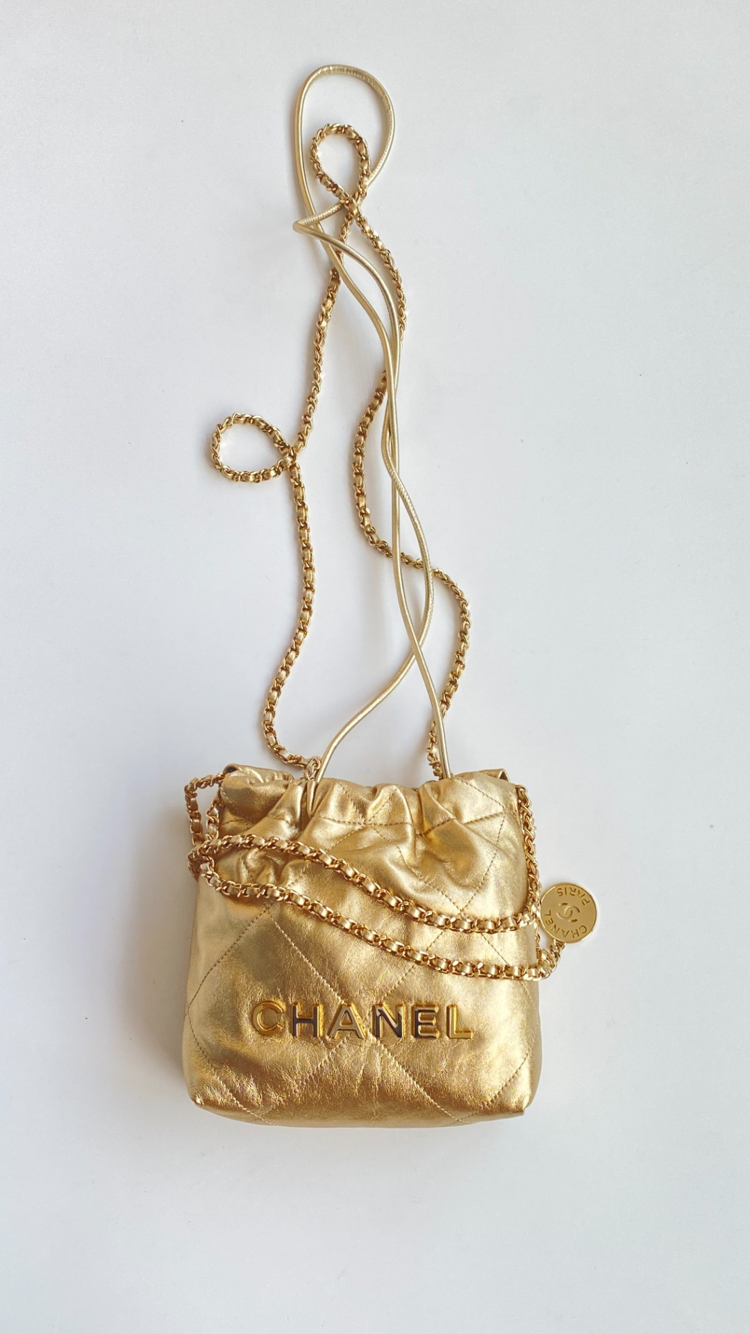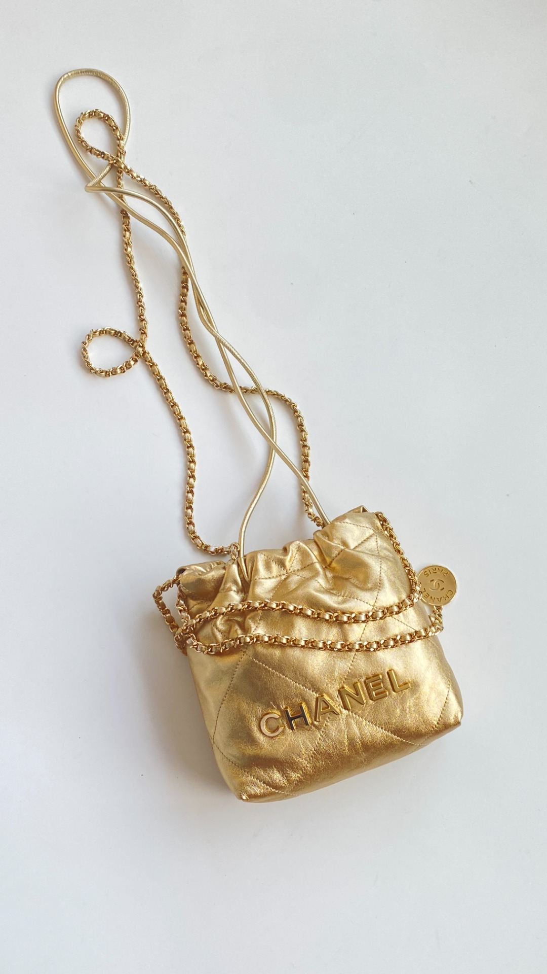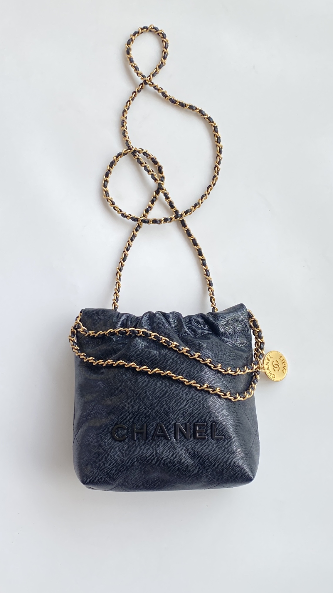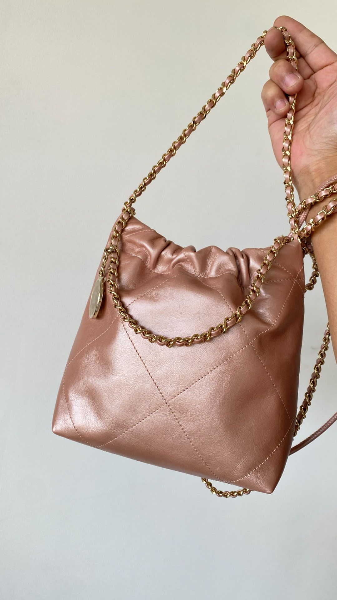 NIGO Chanel 22 Mini Handbag Shiny Calfskin Gold-tone Metal #nigo319128