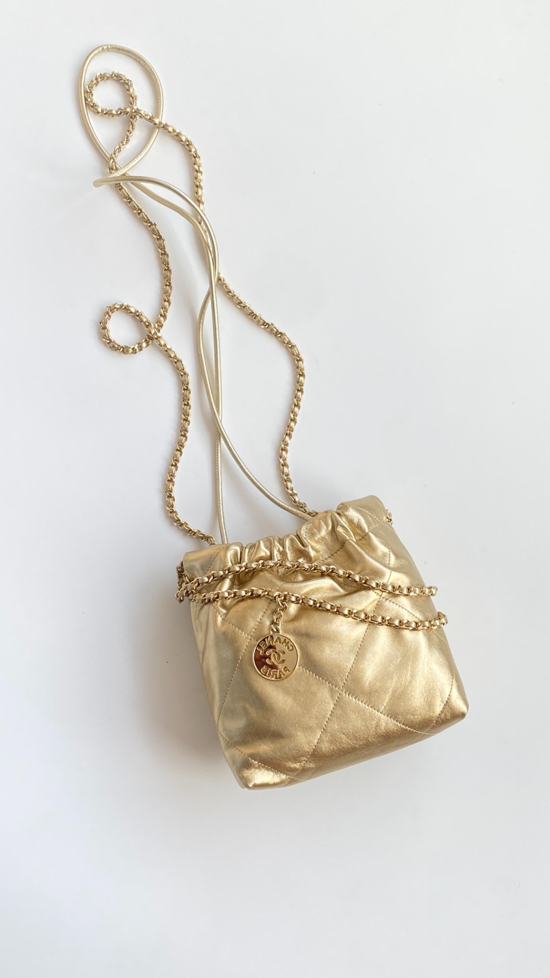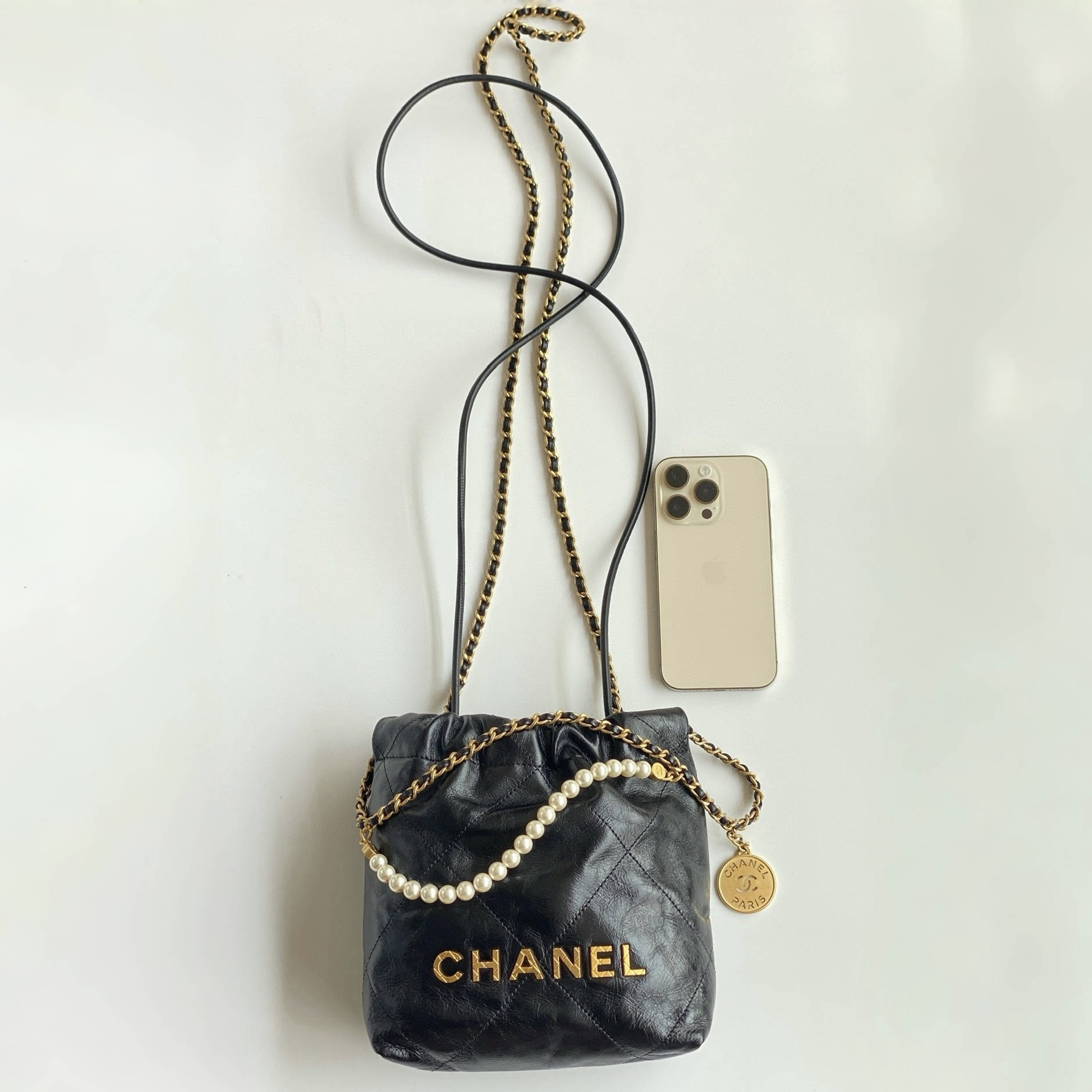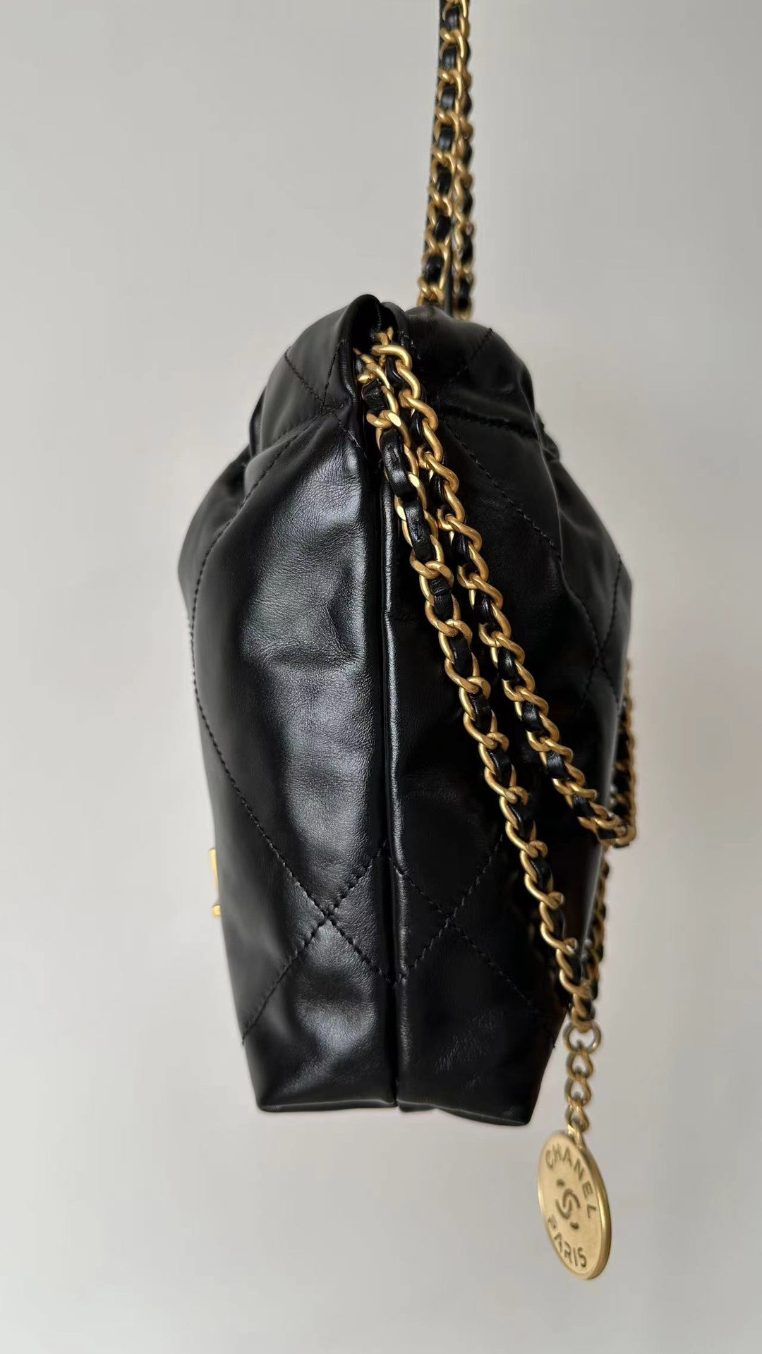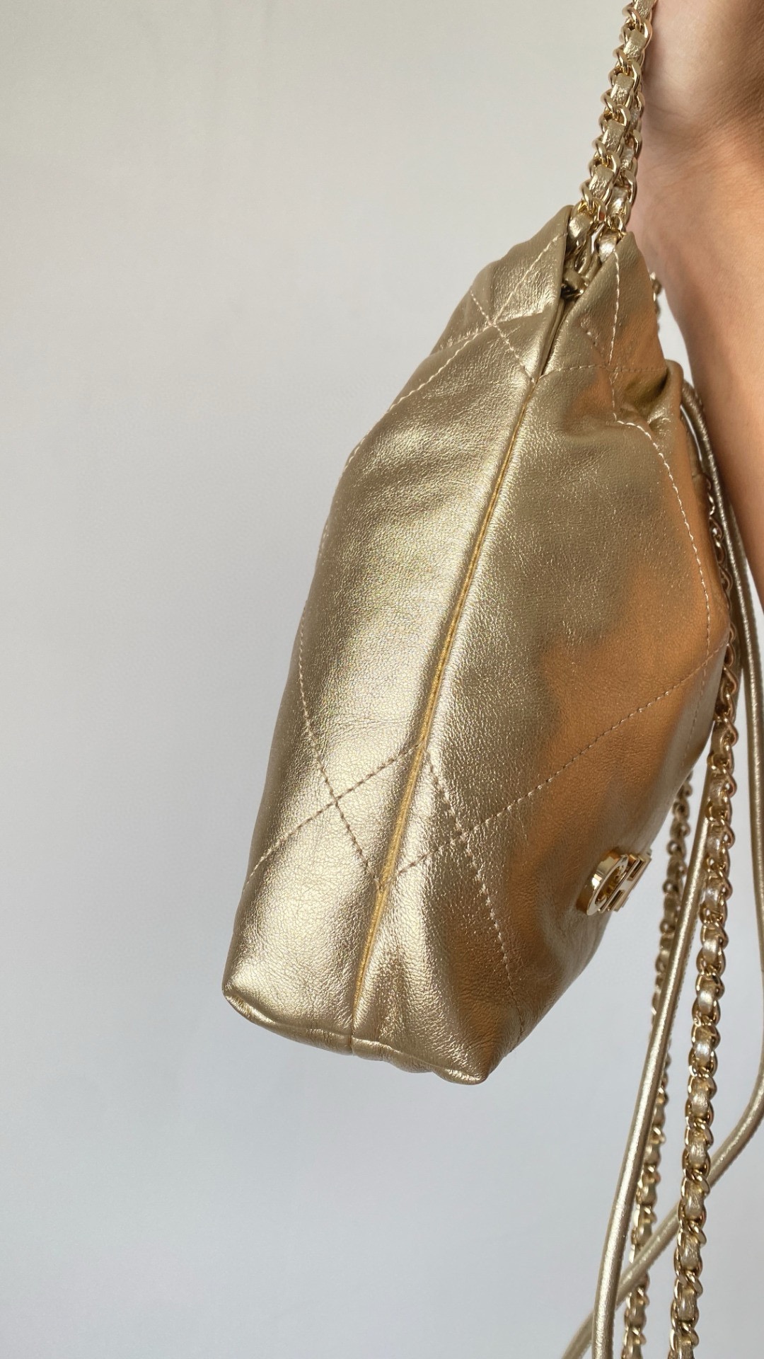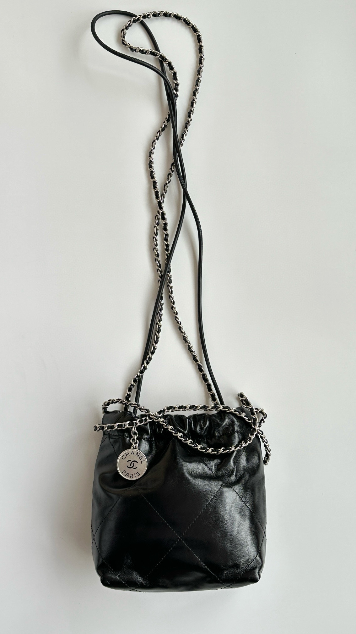 NIGO Chanel 22 Mini Handbag Shiny Calfskin Gold-tone Metal #nigo319128