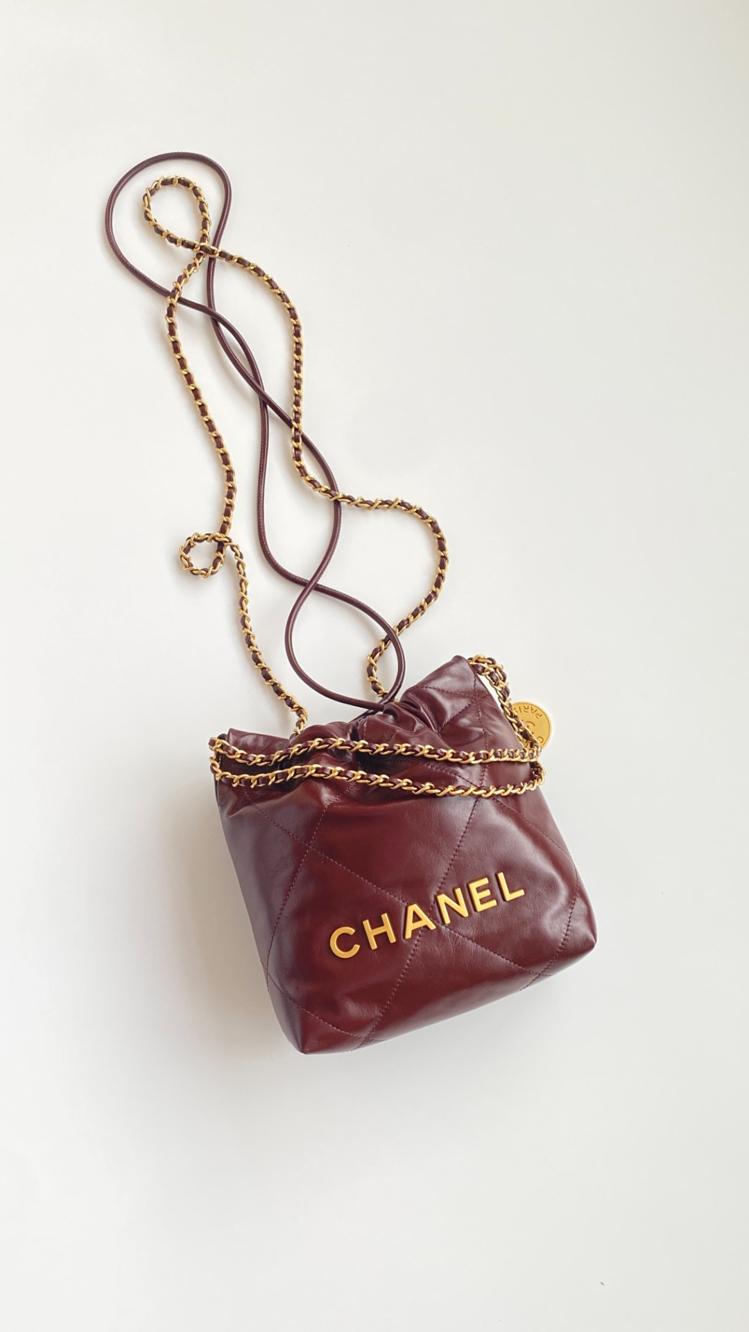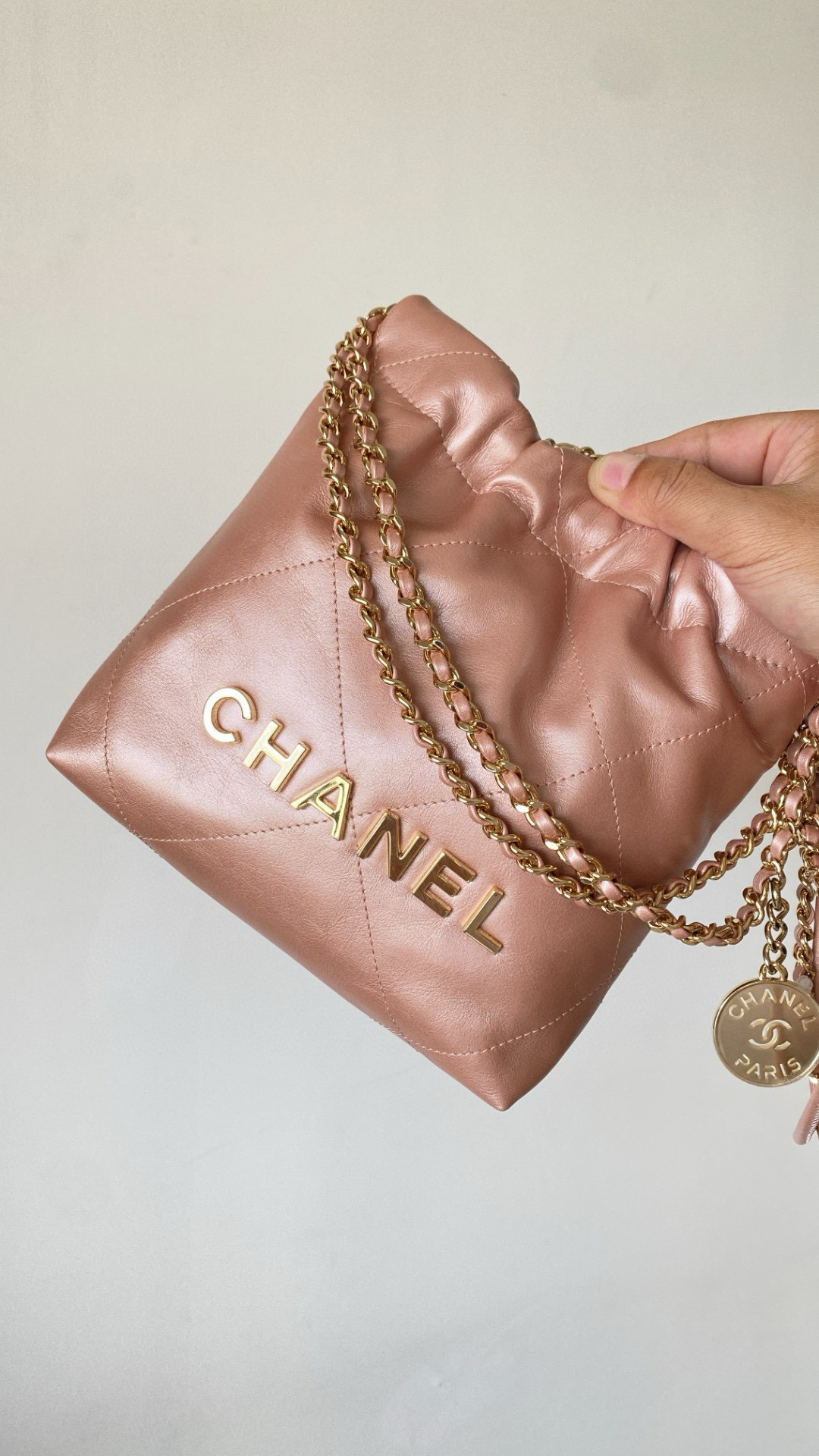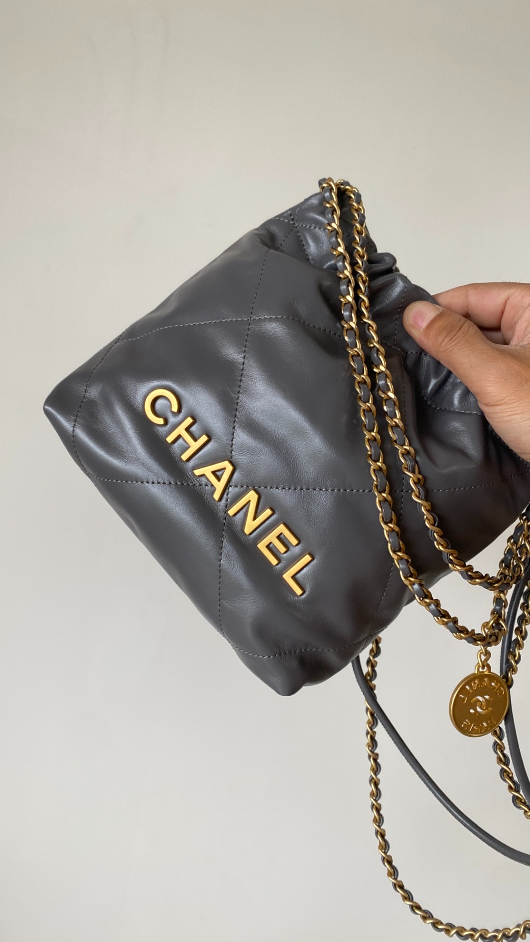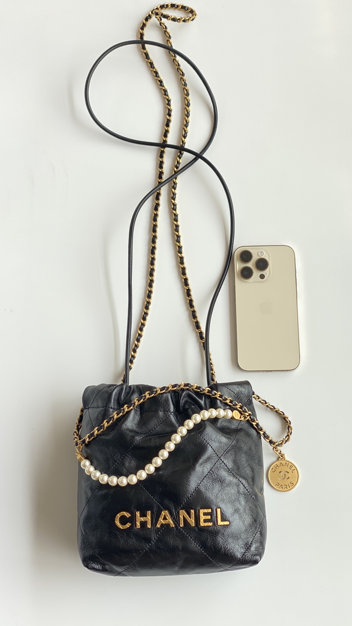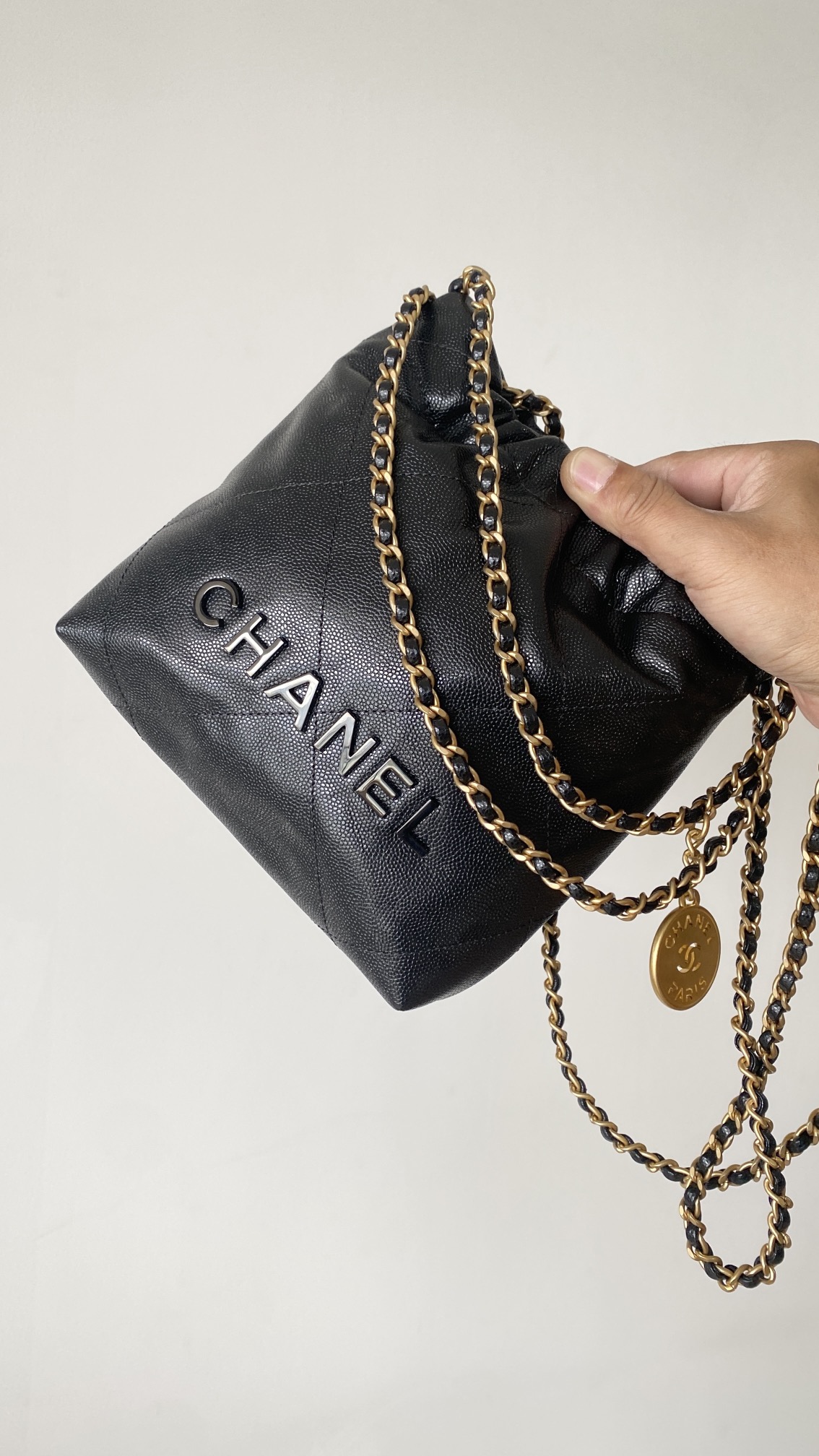 NIGO Chanel 22 Mini Handbag Shiny Calfskin Gold-tone Metal #nigo319128