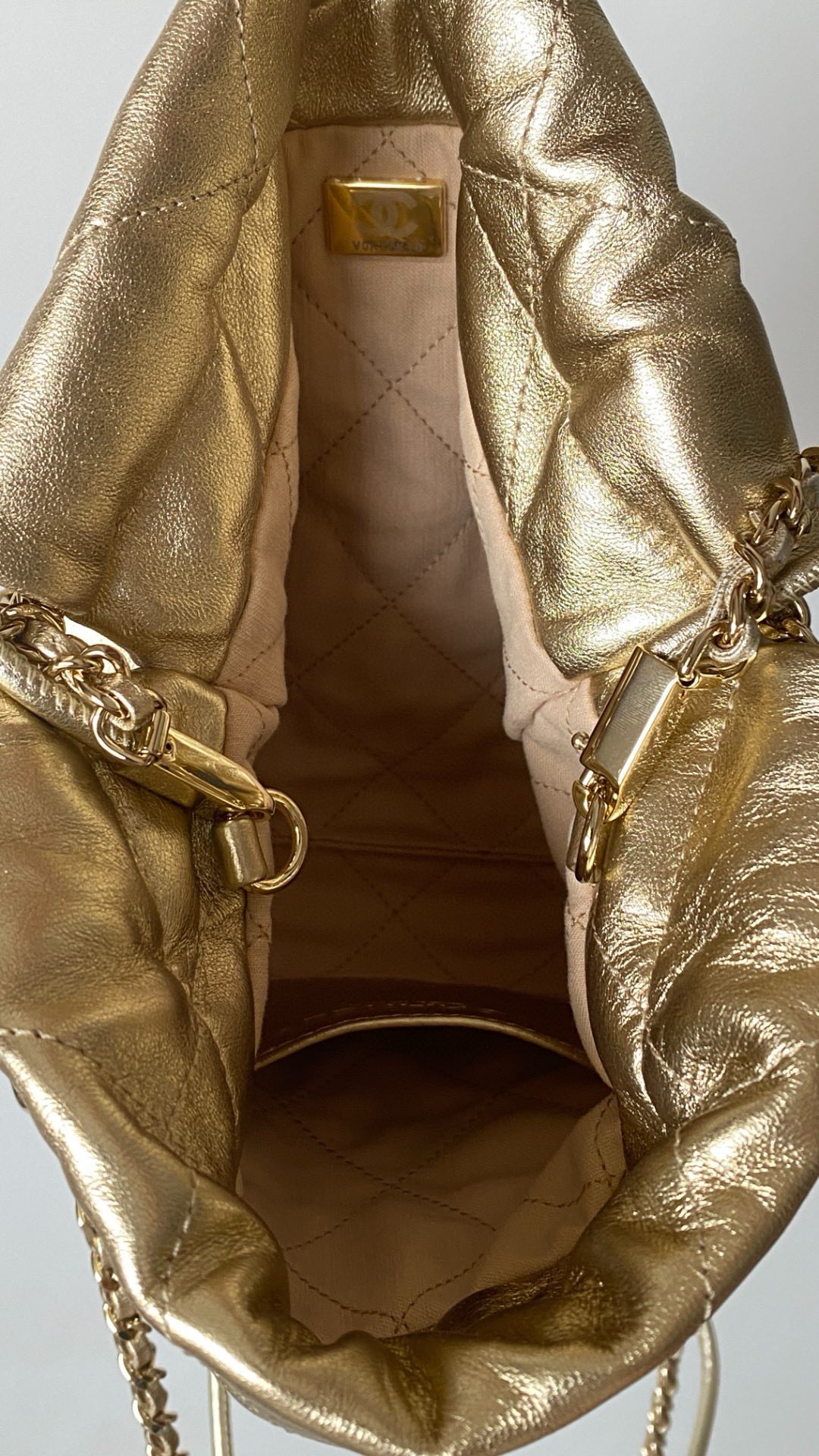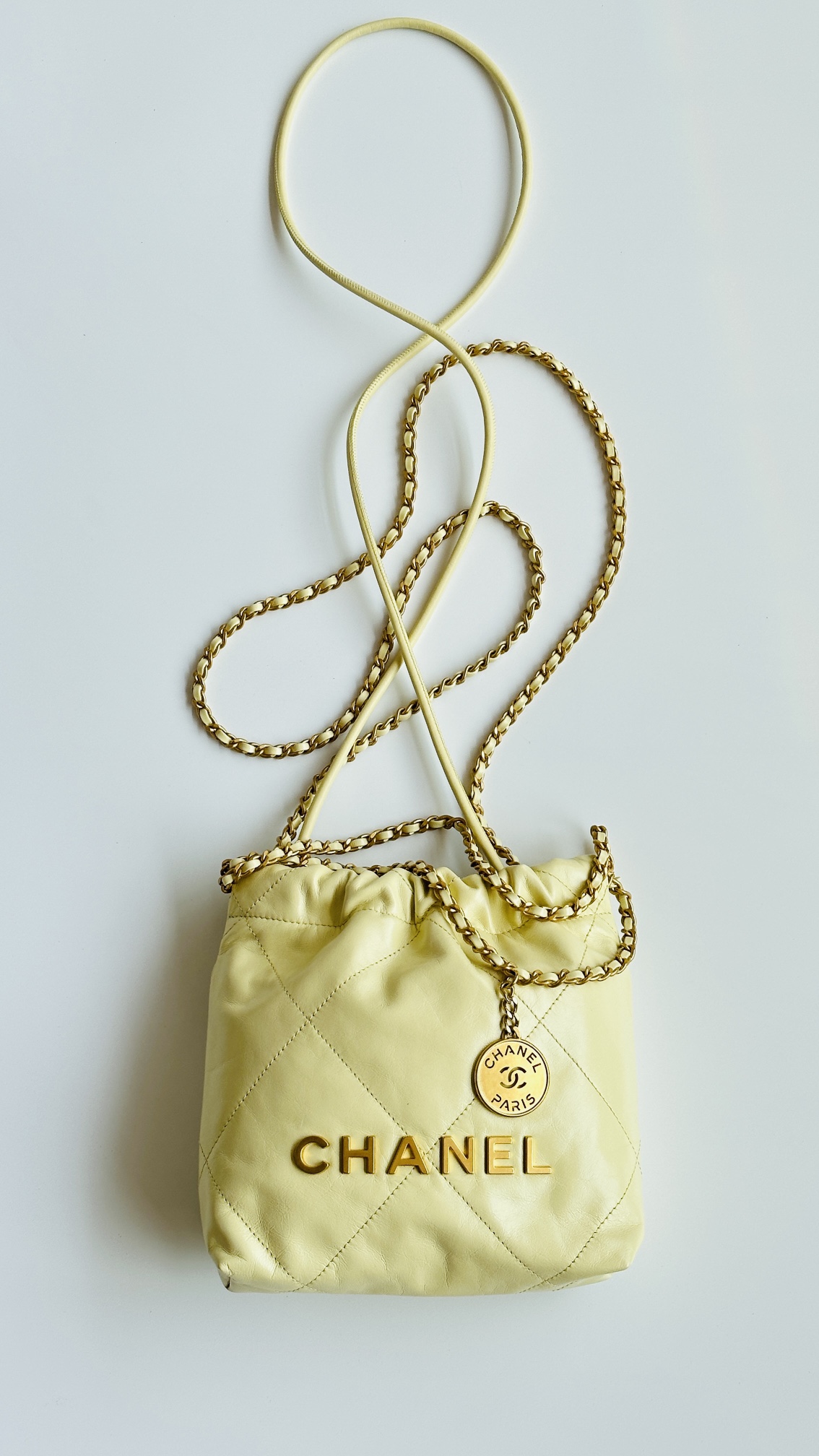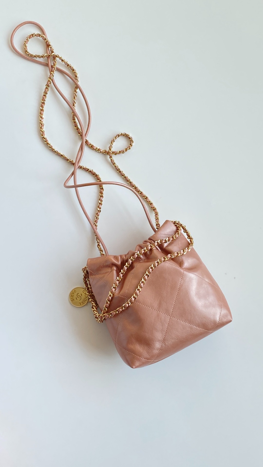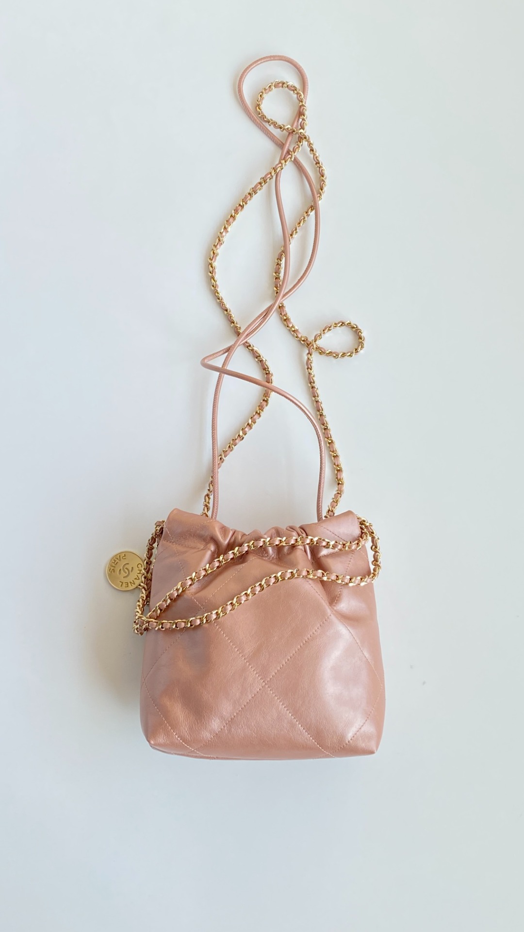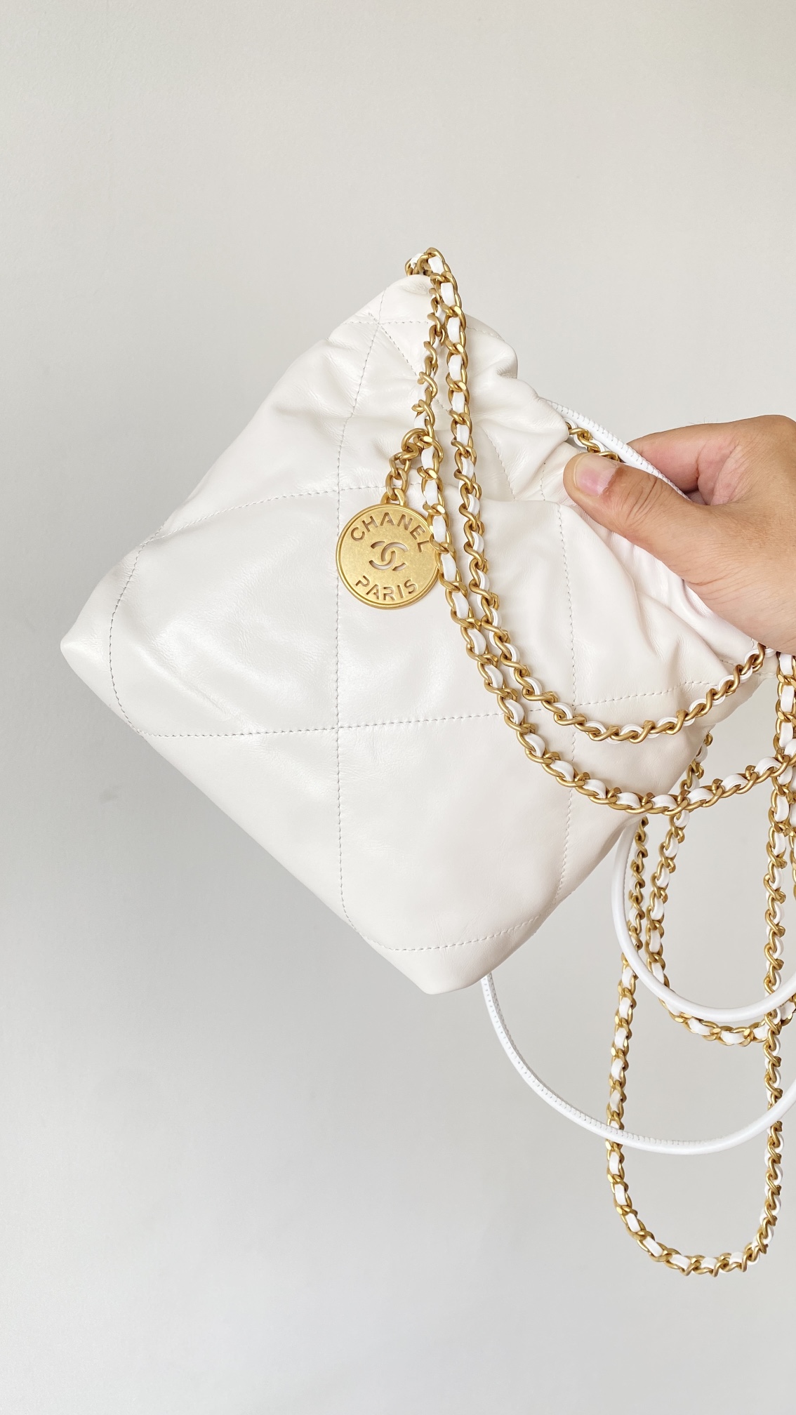 NIGO Chanel 22 Mini Handbag Shiny Calfskin Gold-tone Metal #nigo319128