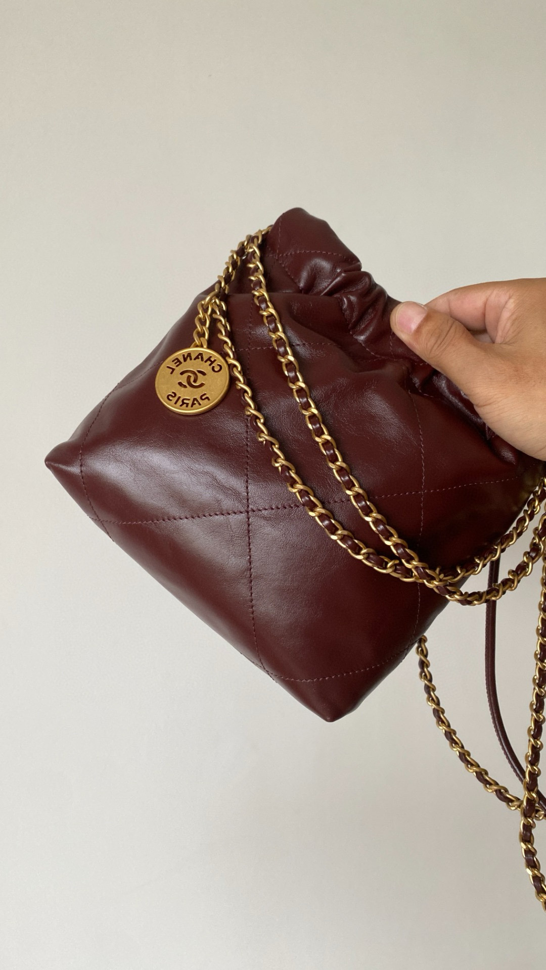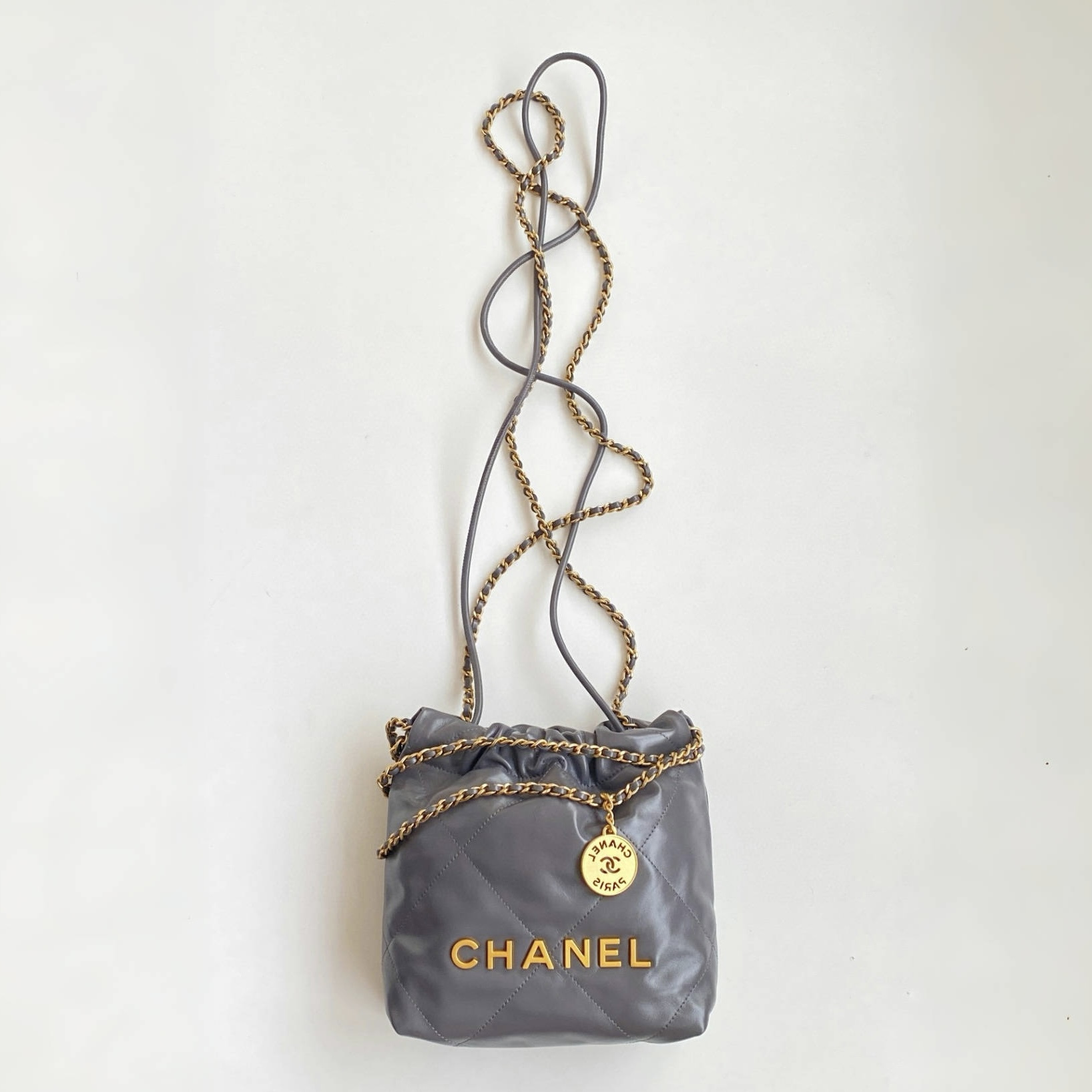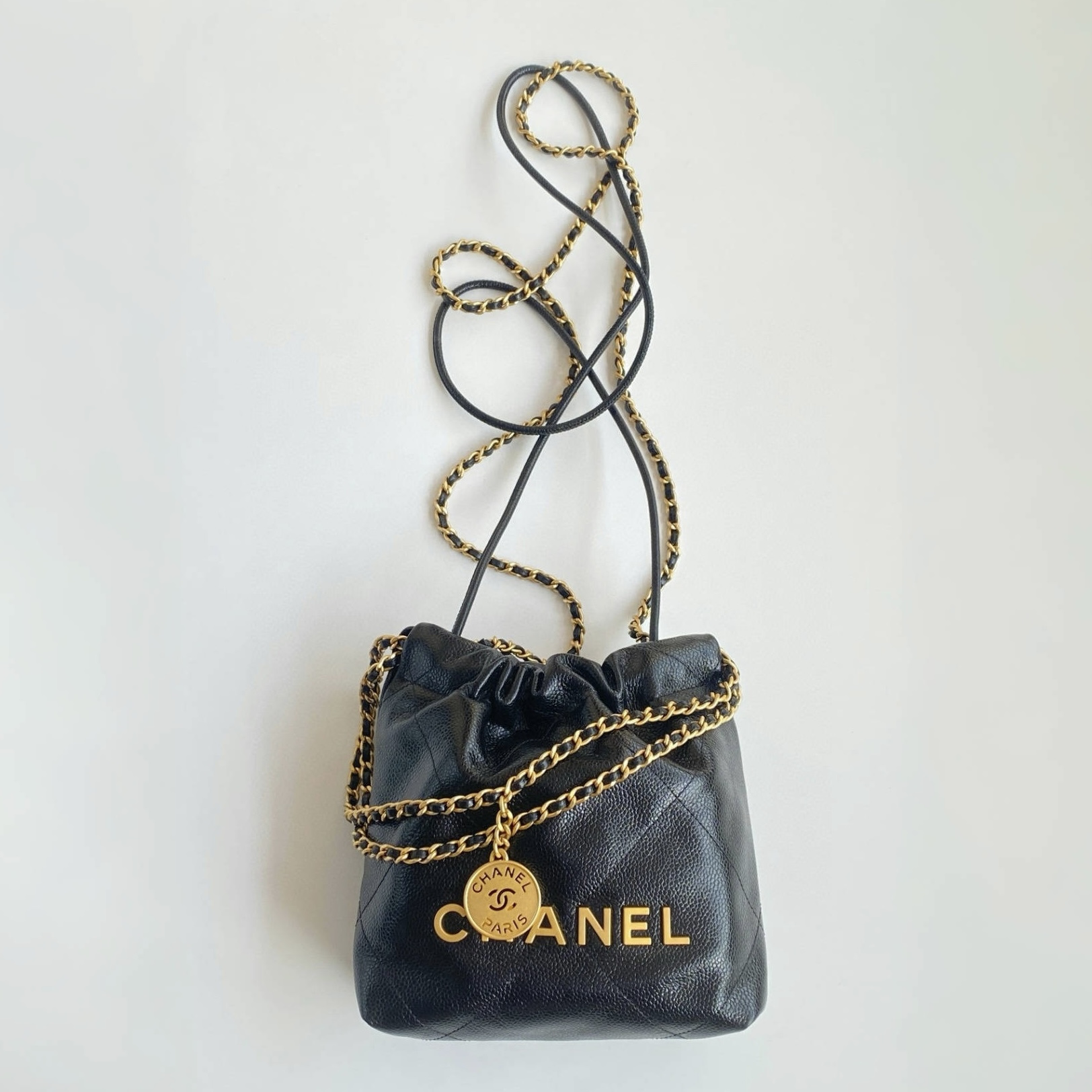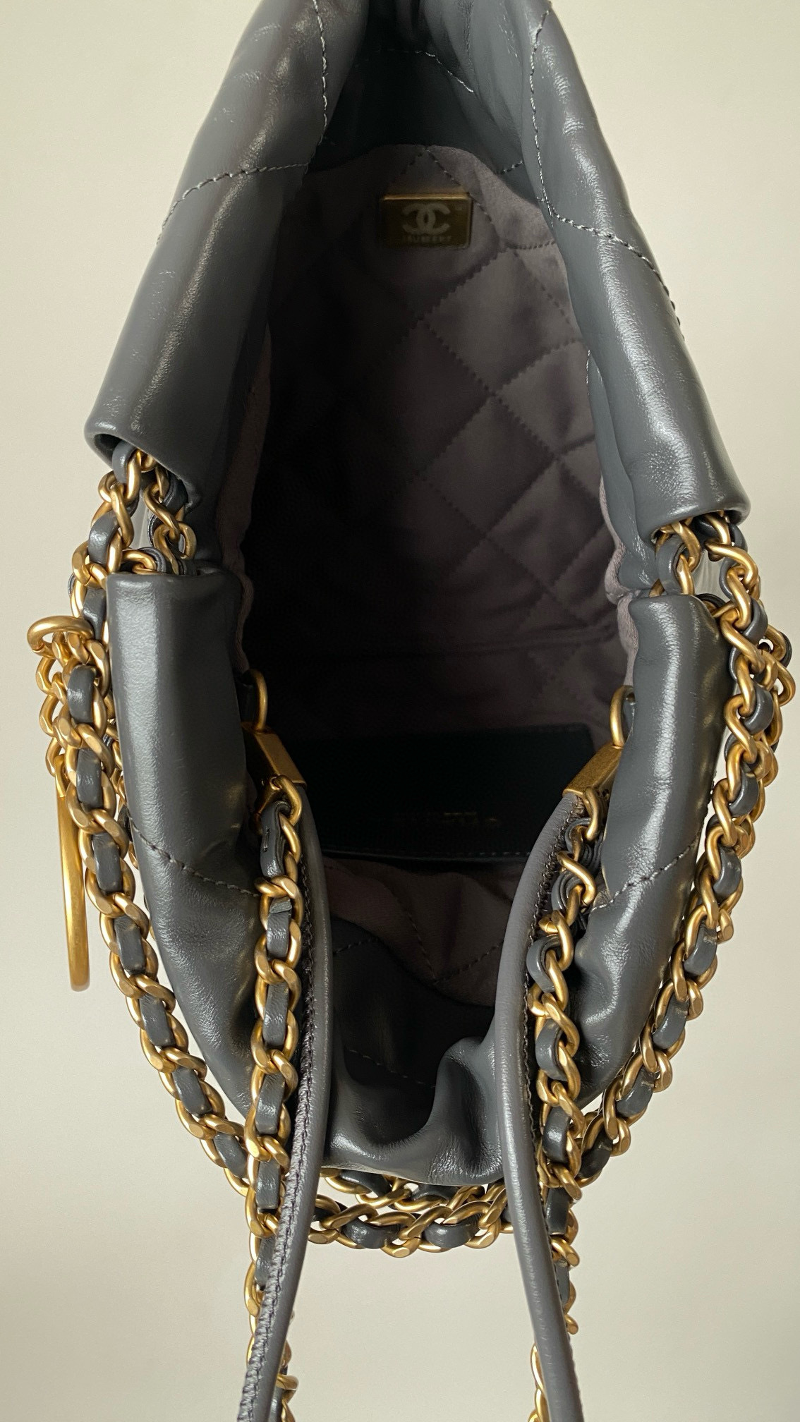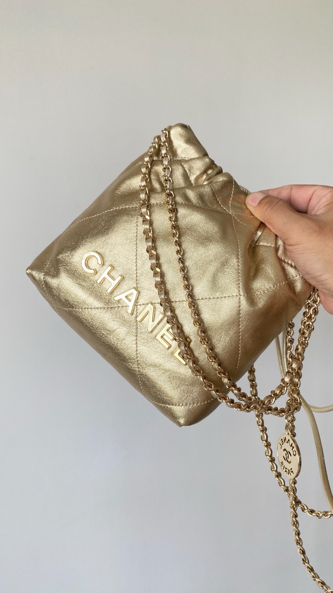 NIGO Chanel 22 Mini Handbag Shiny Calfskin Gold-tone Metal #nigo319128