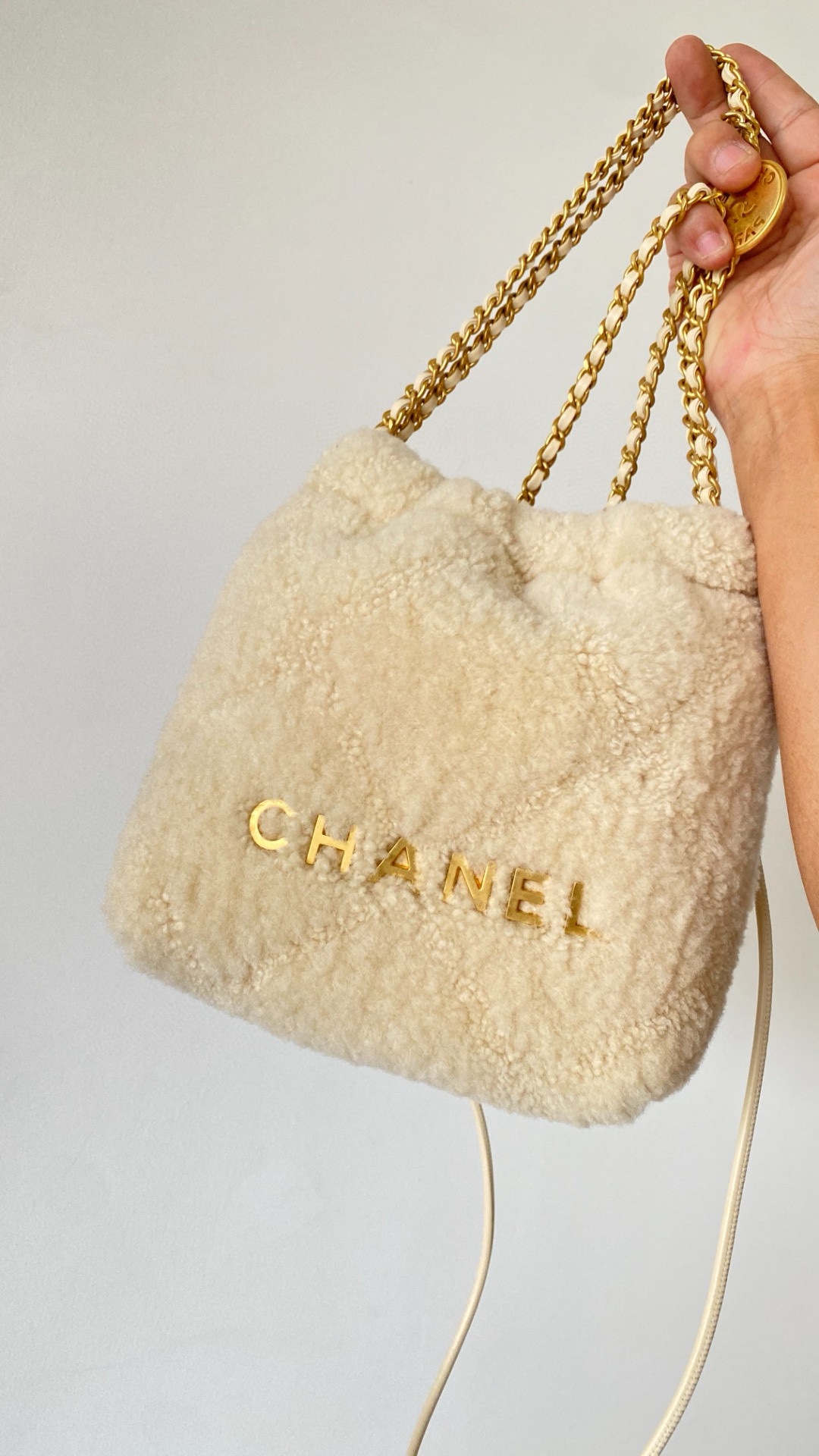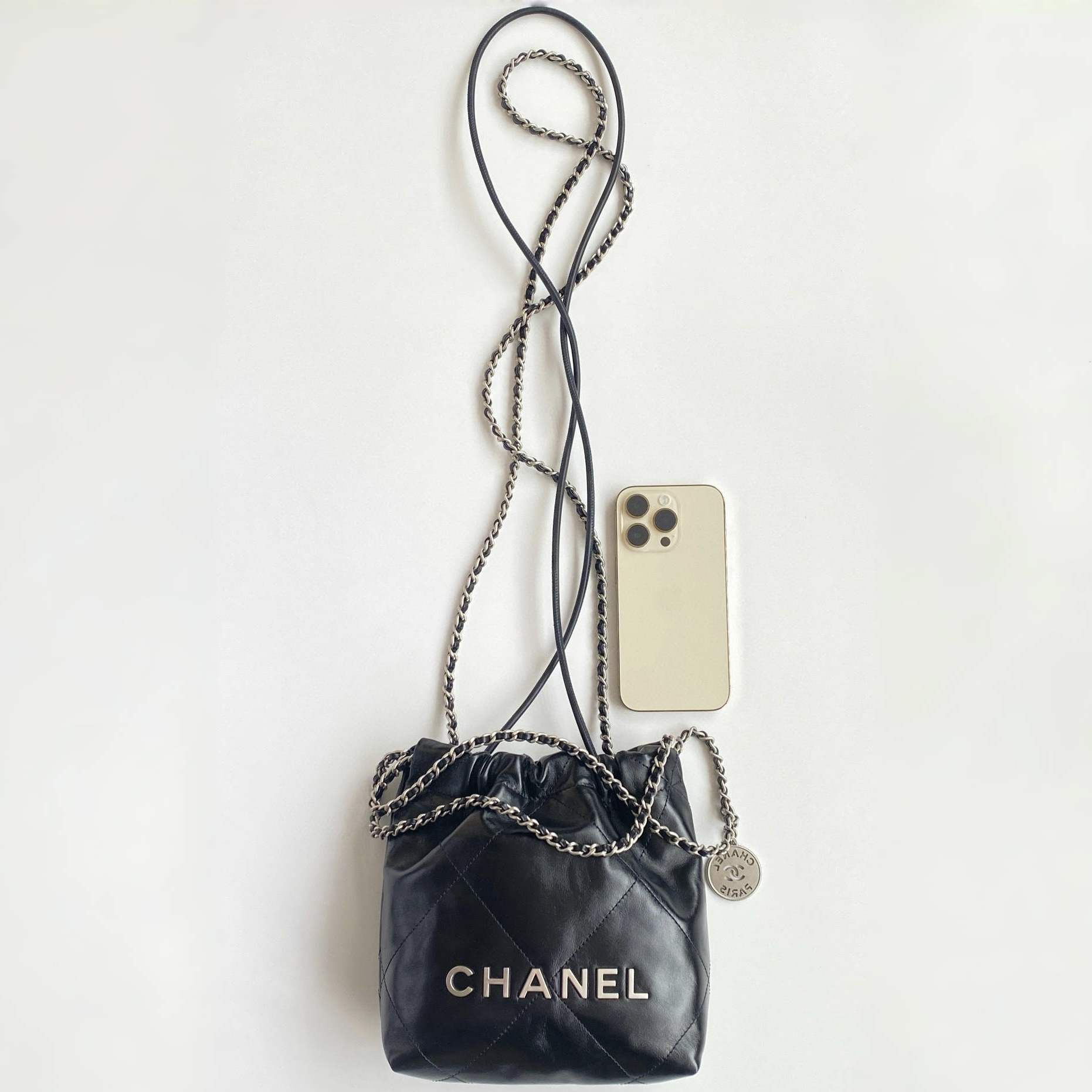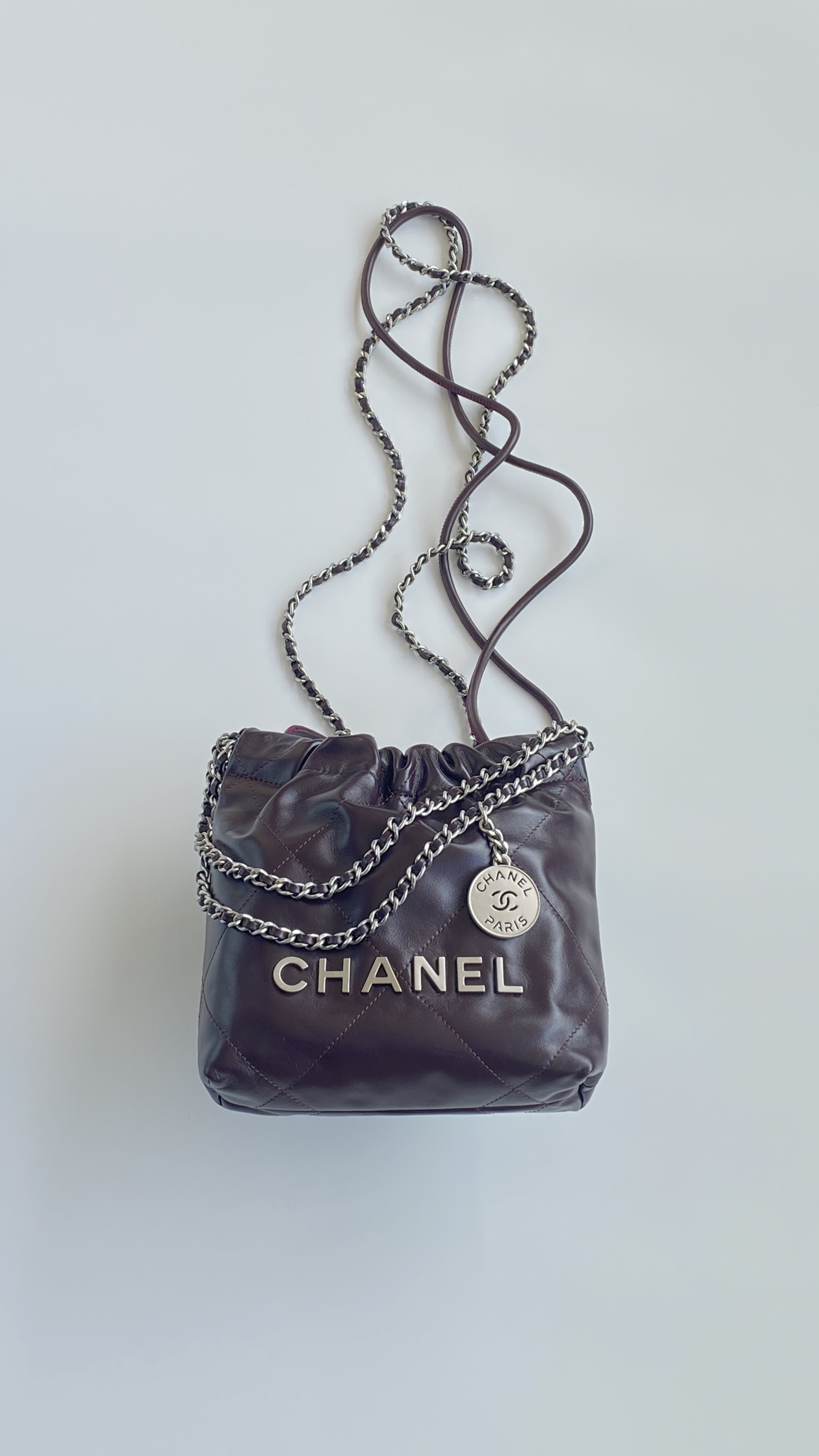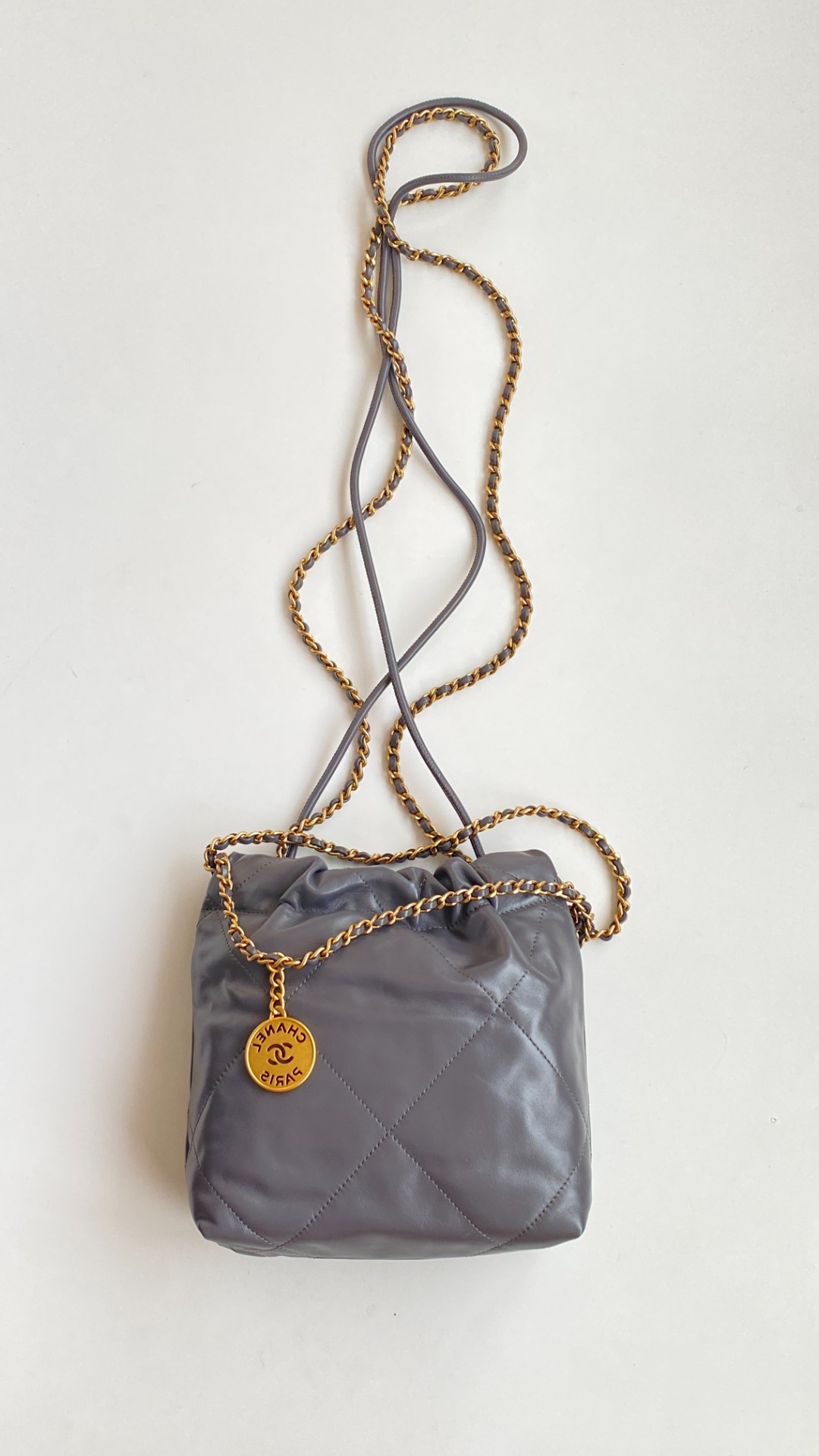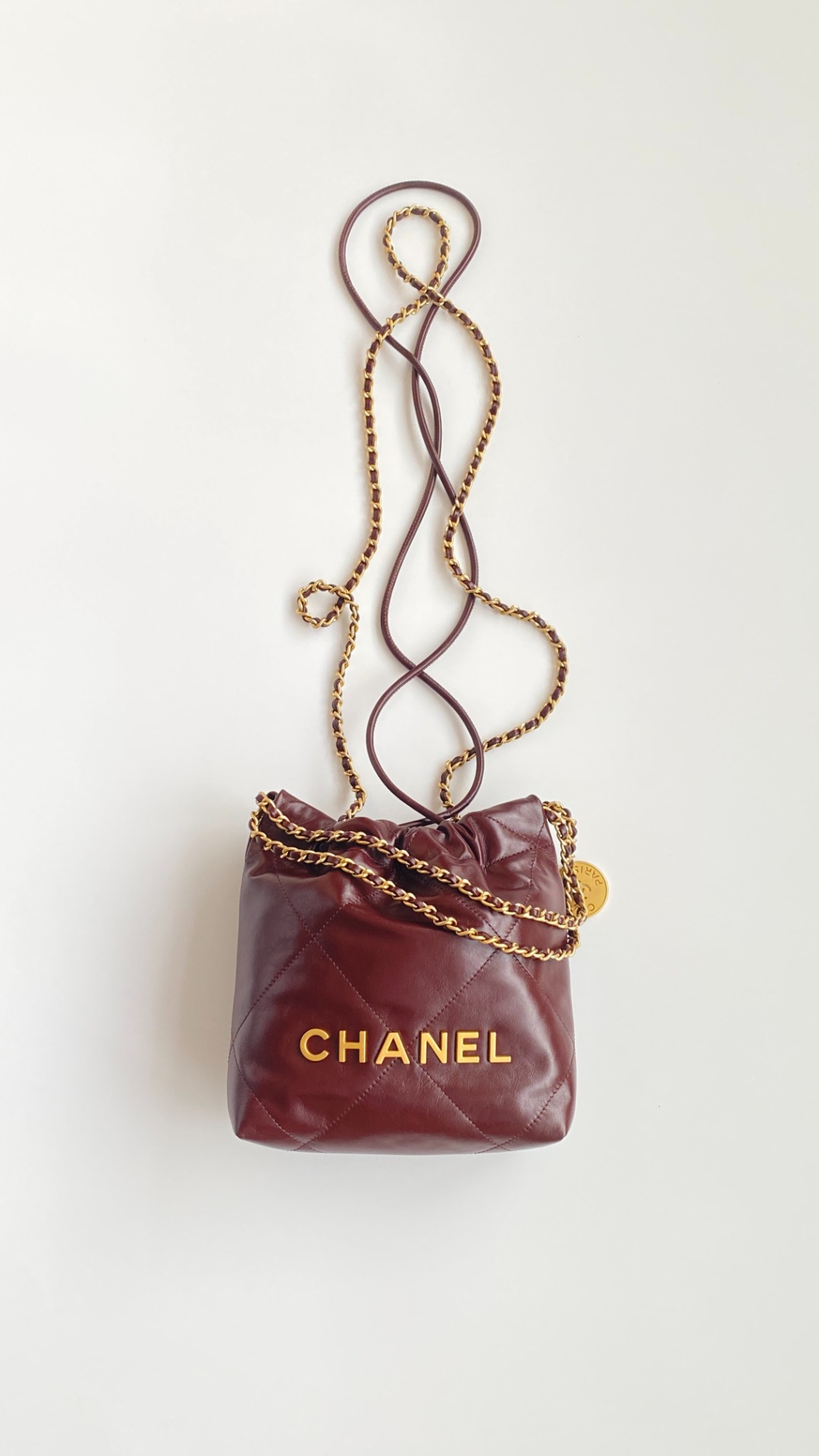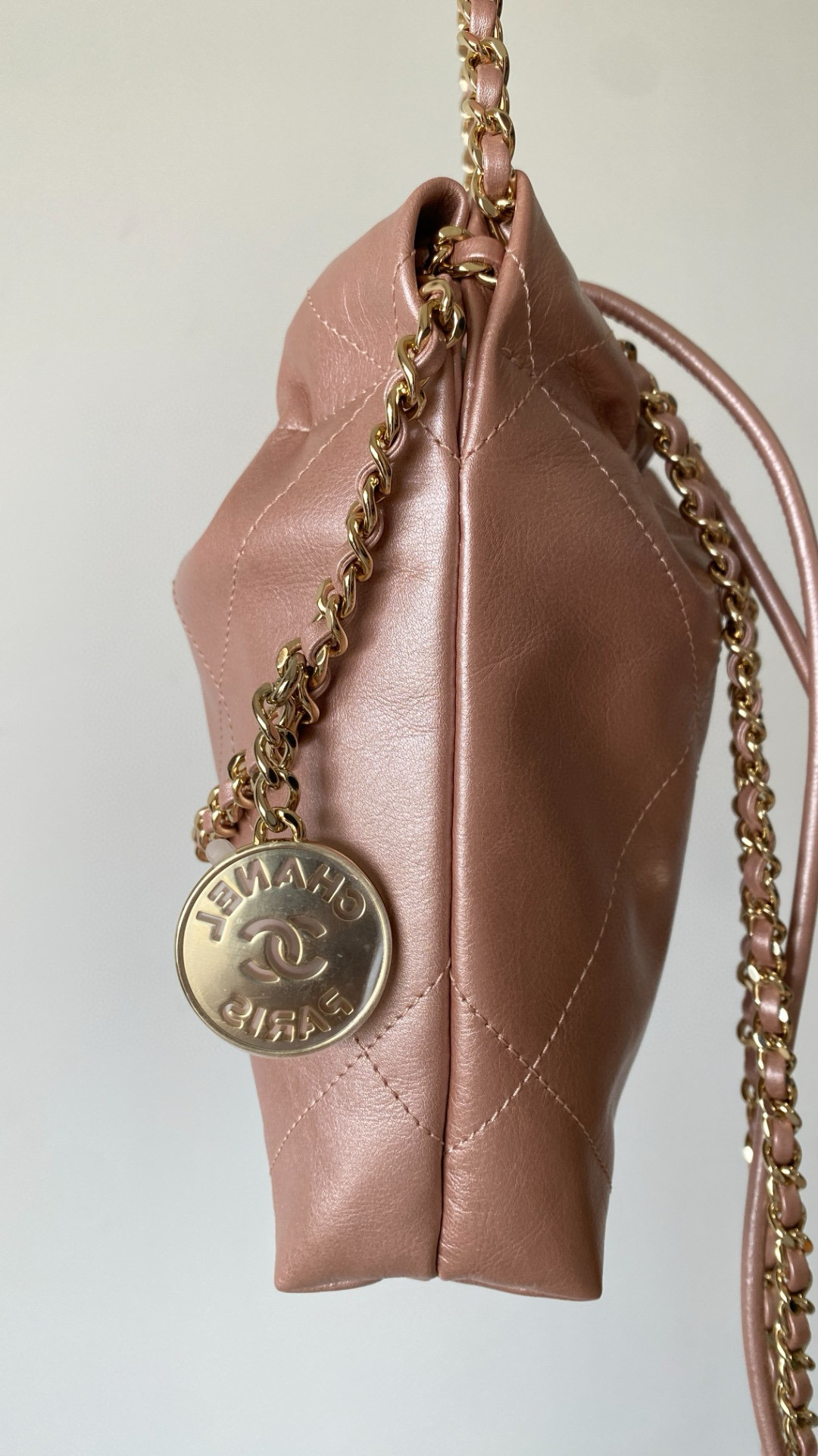 NIGO Chanel 22 Mini Handbag Shiny Calfskin Gold-tone Metal #nigo319128