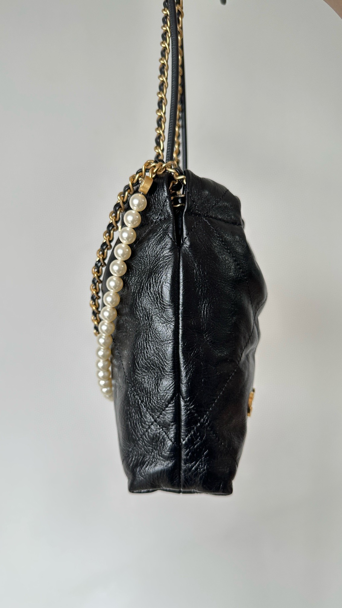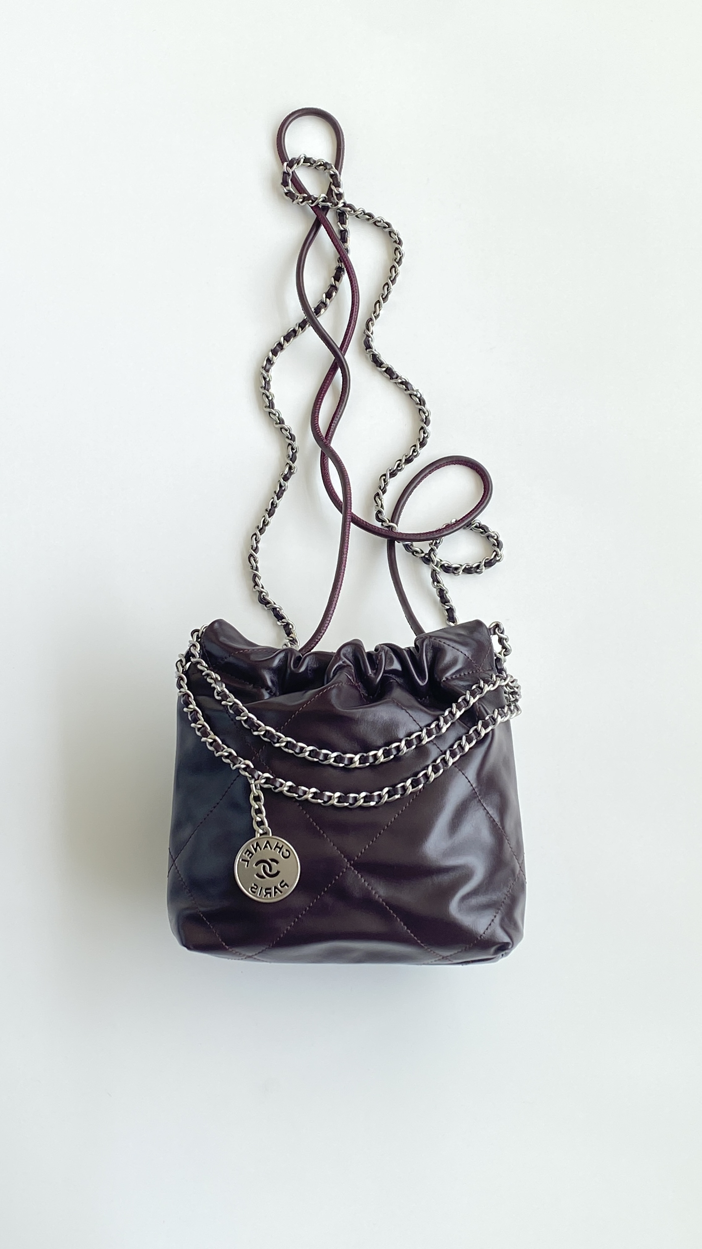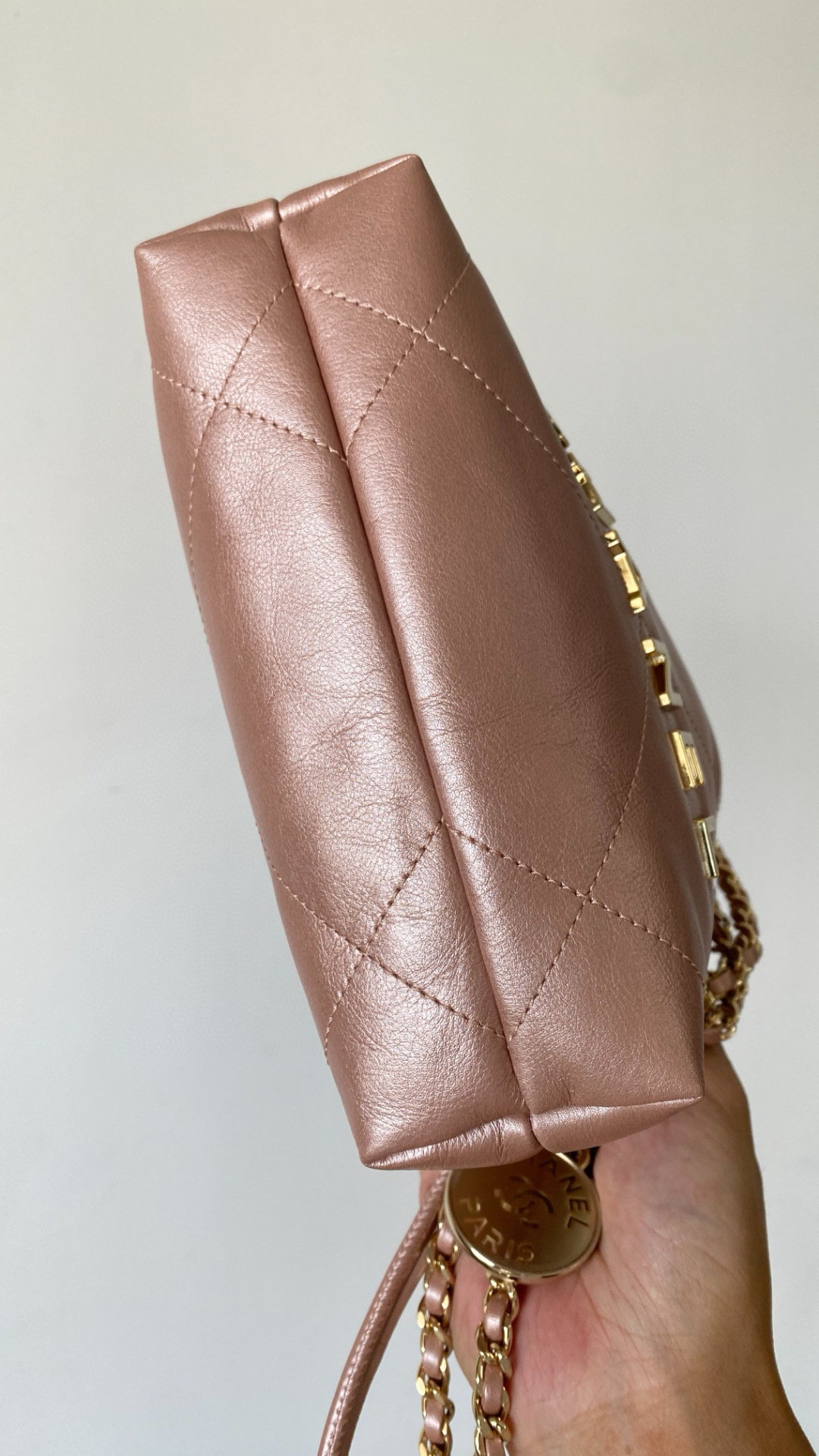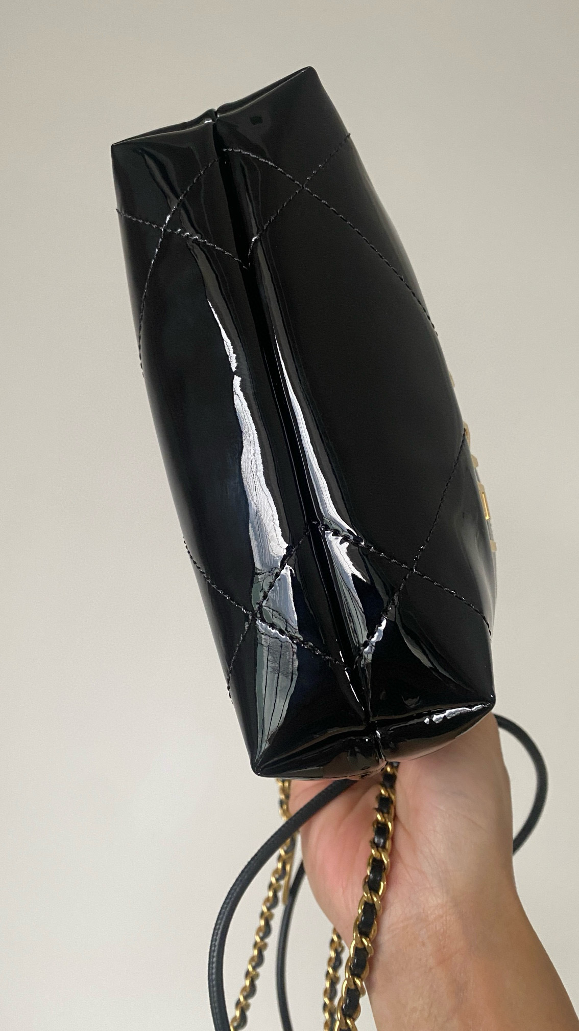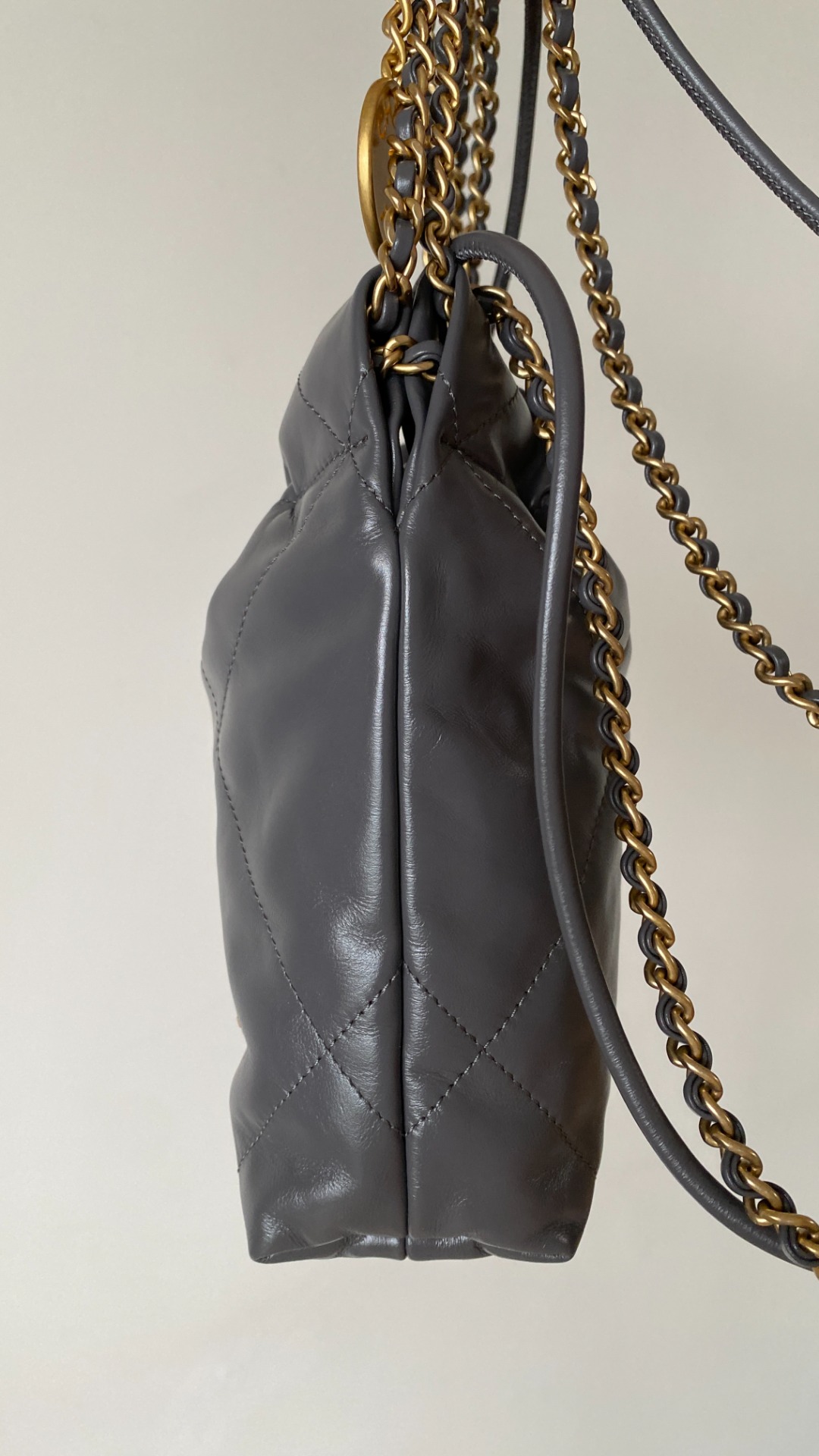 NIGO Chanel 22 Mini Handbag Shiny Calfskin Gold-tone Metal #nigo319128