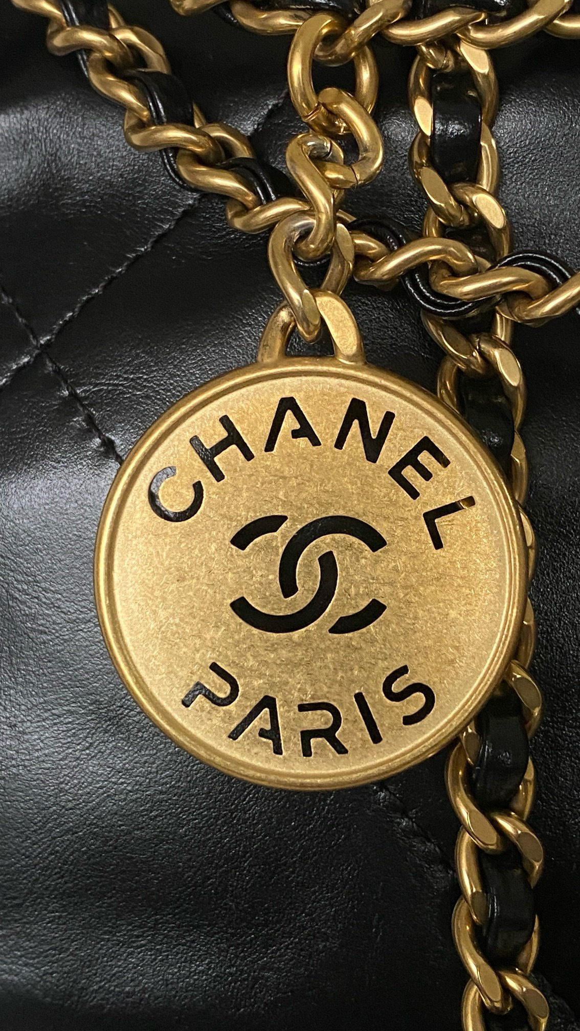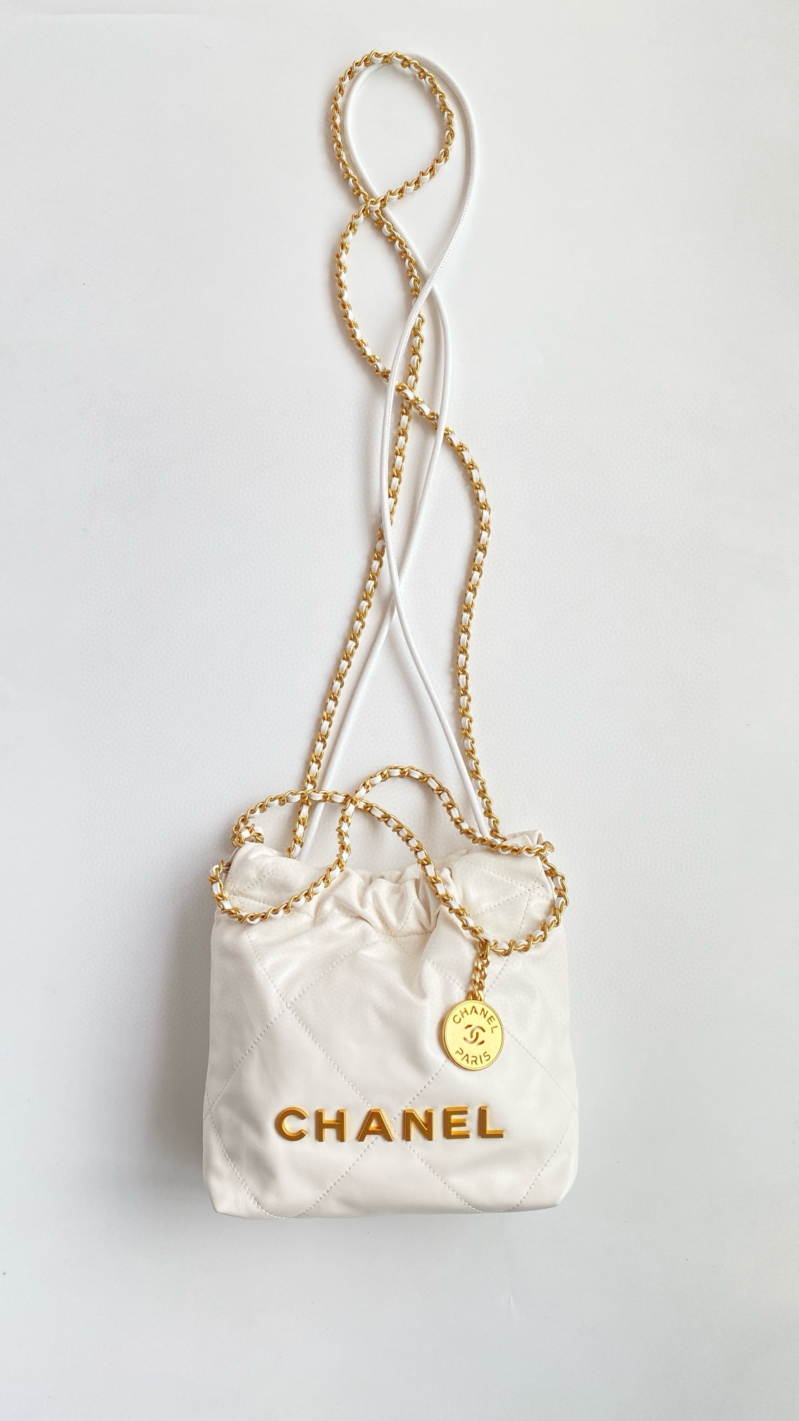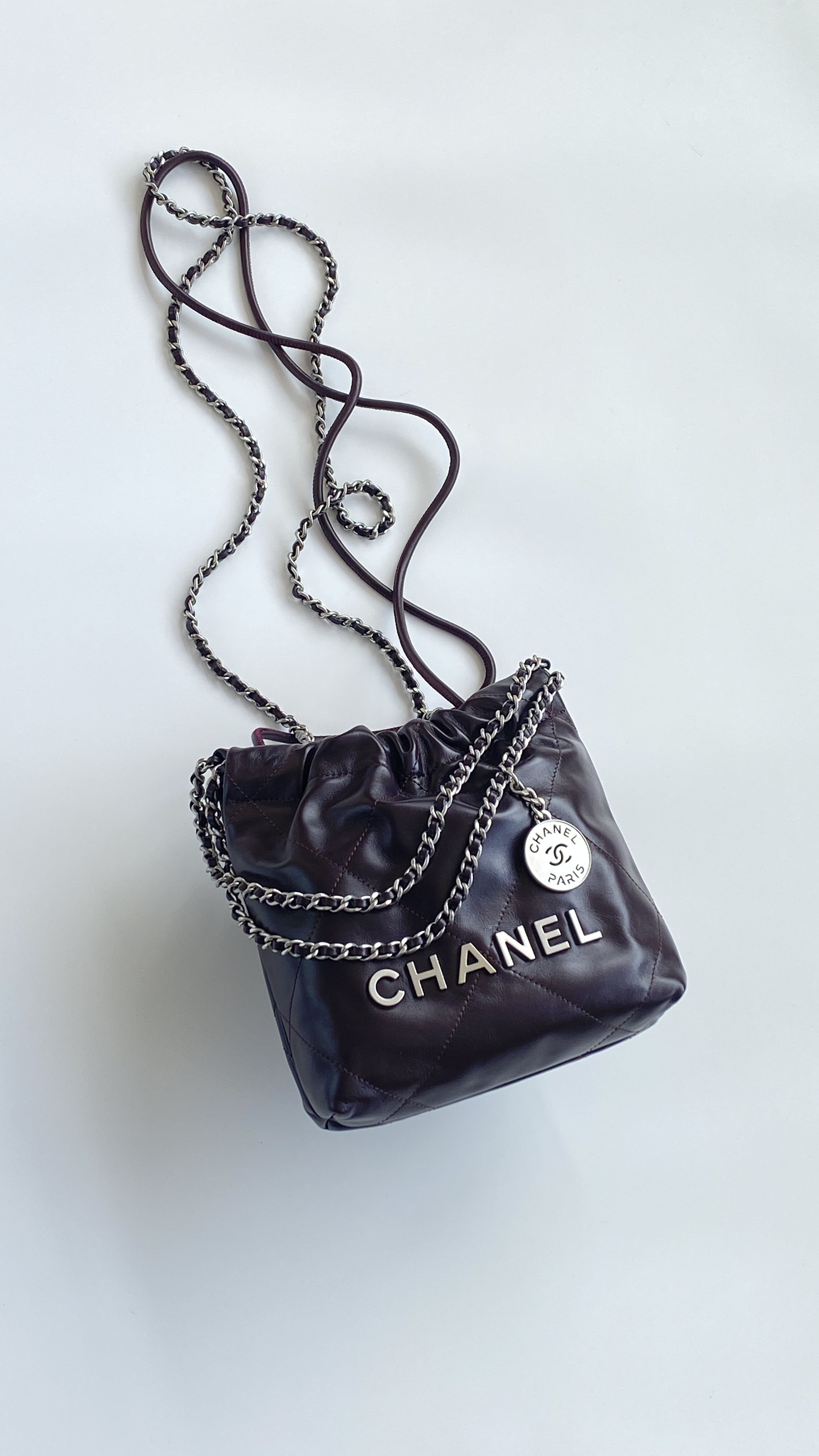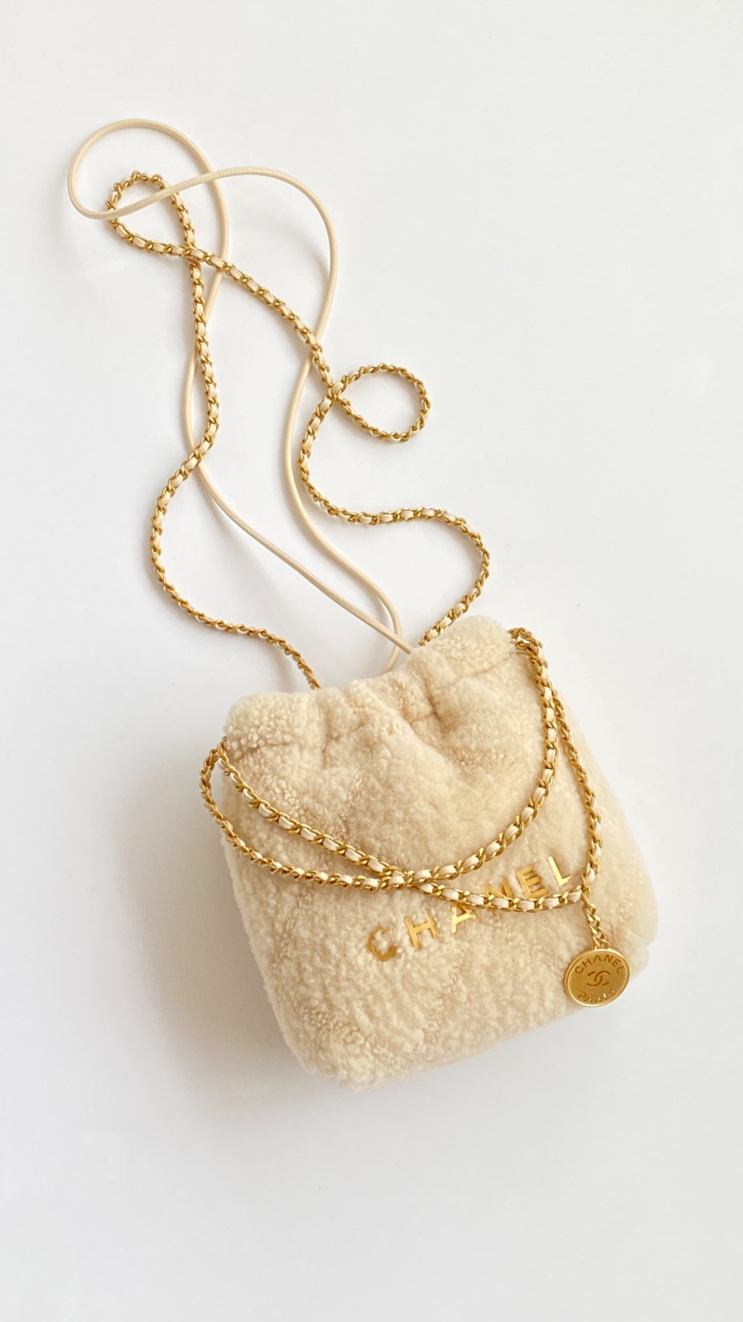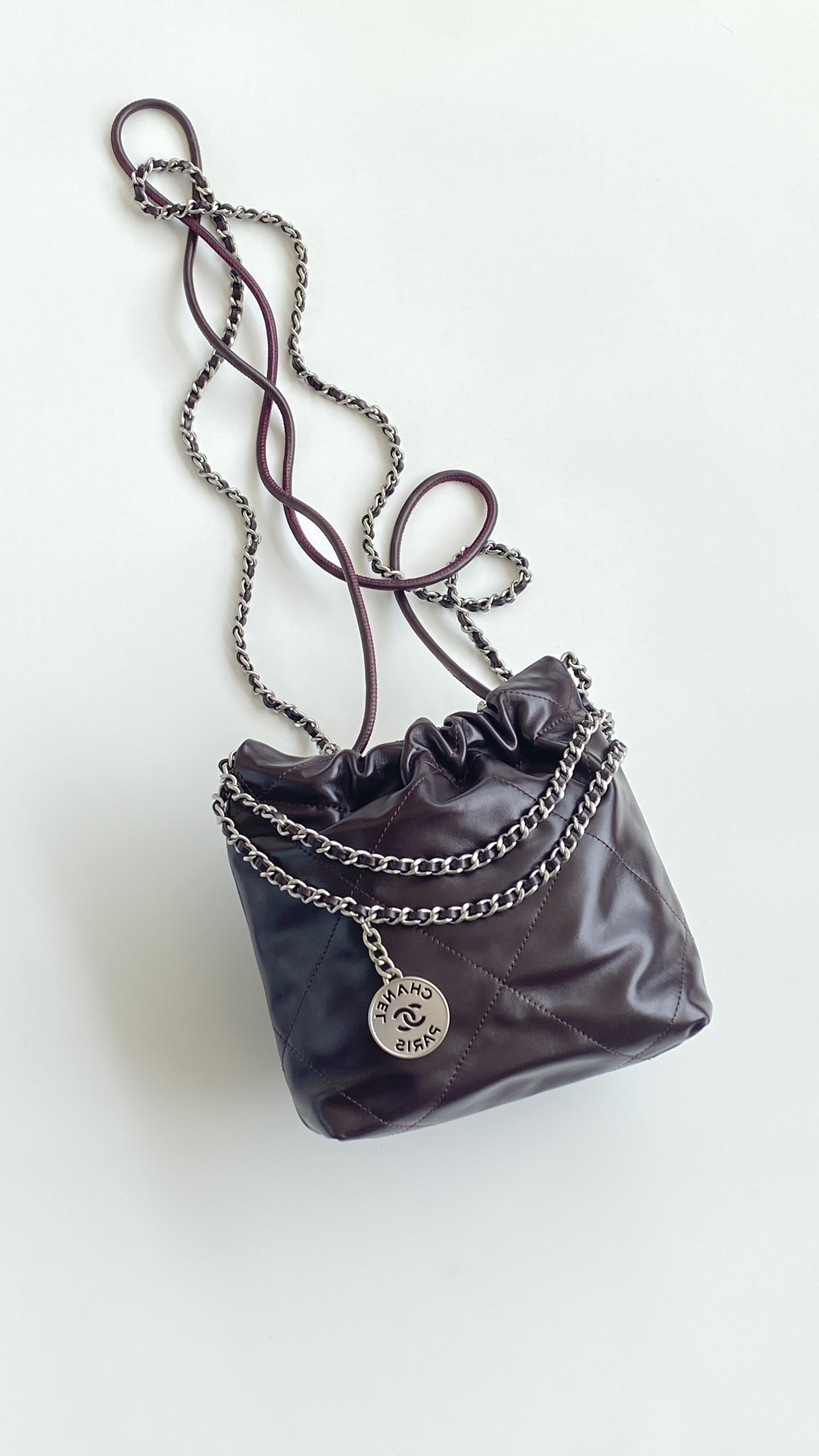NIGO Chanel 22 Mini Handbag Shiny Calfskin Gold-tone Metal #nigo319128