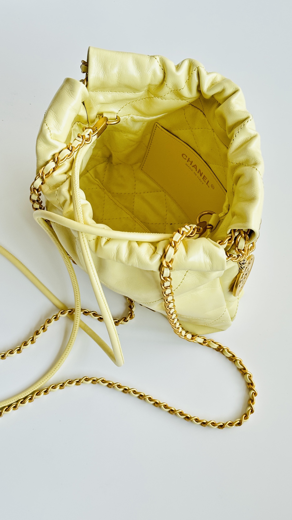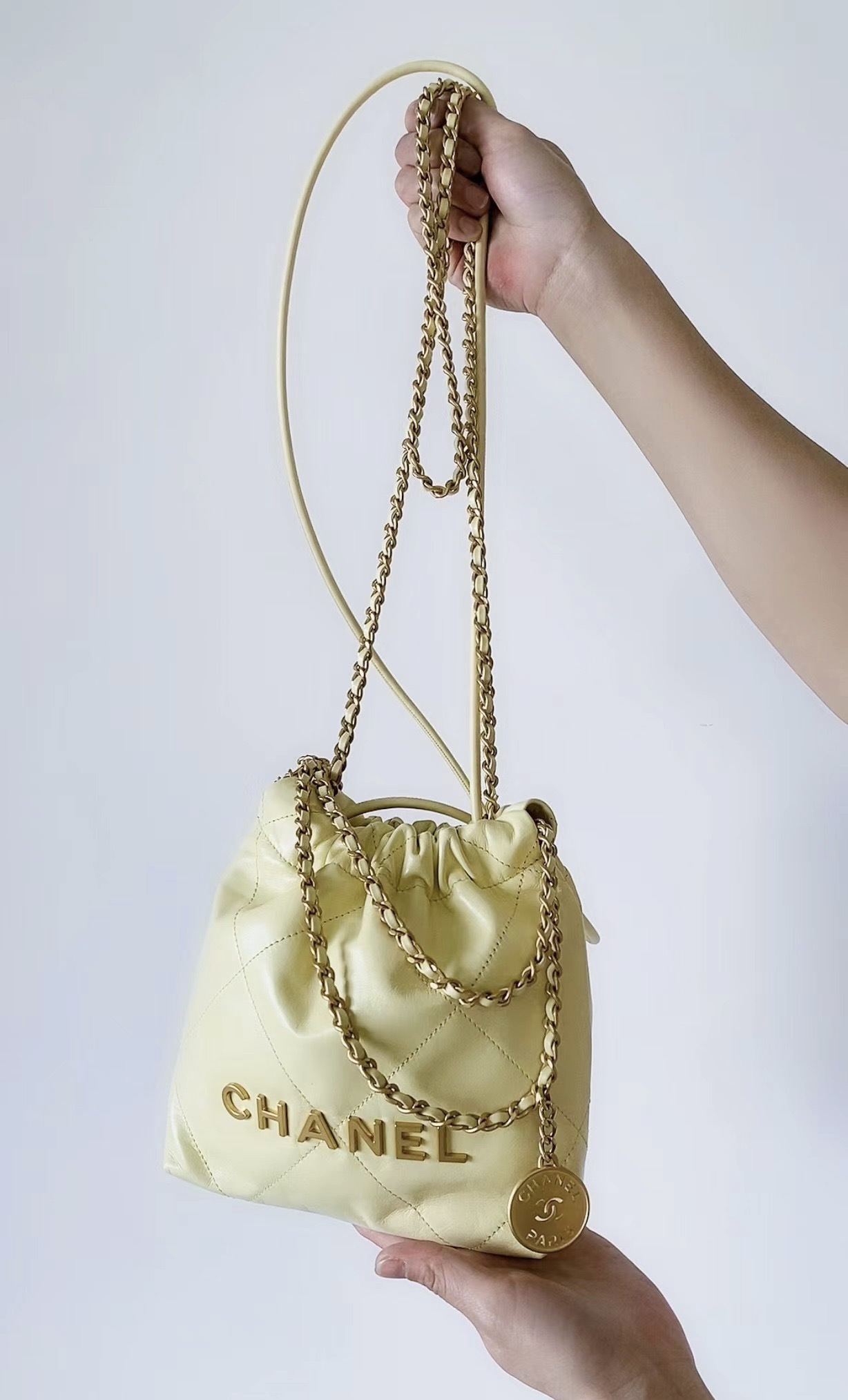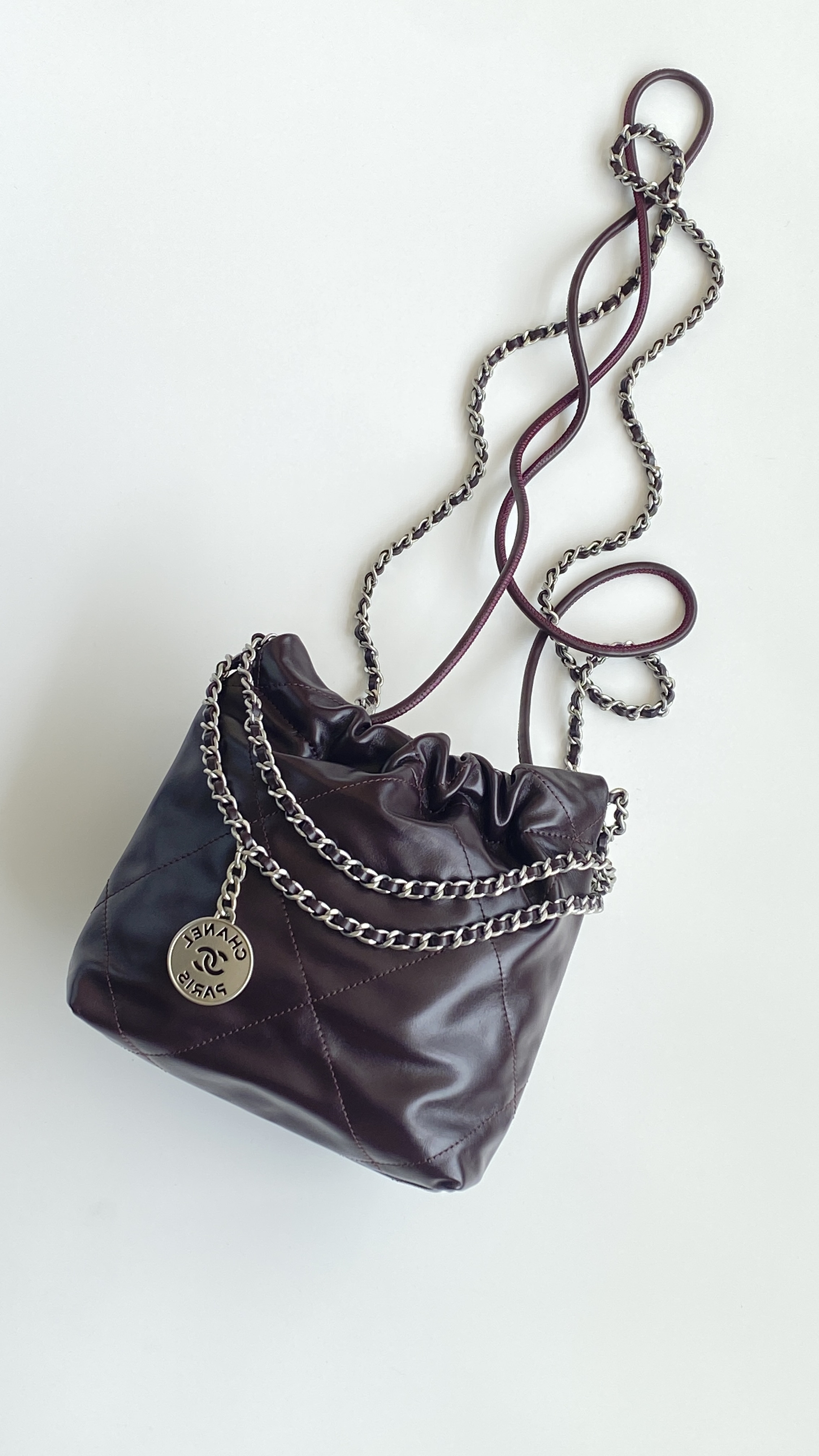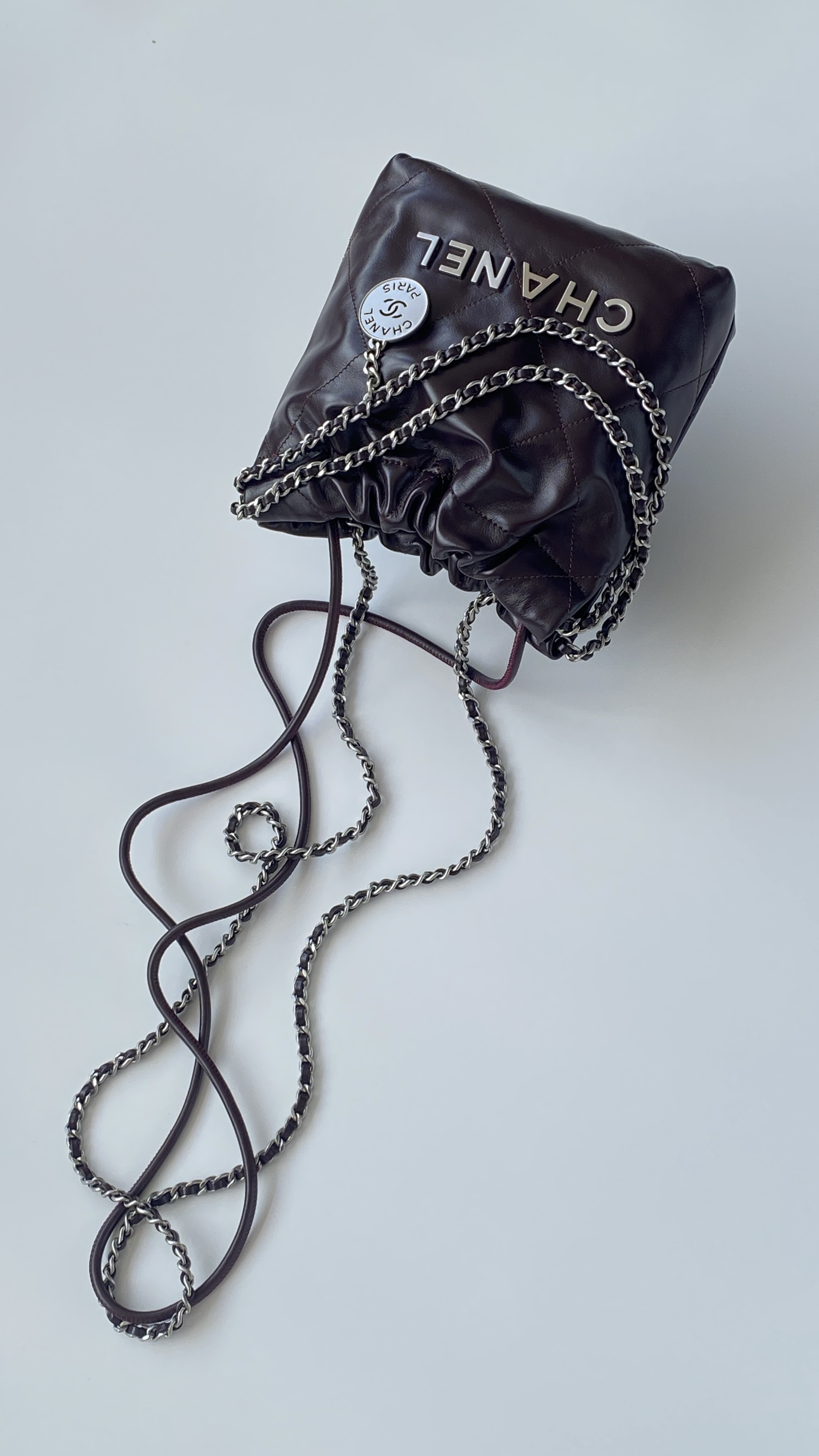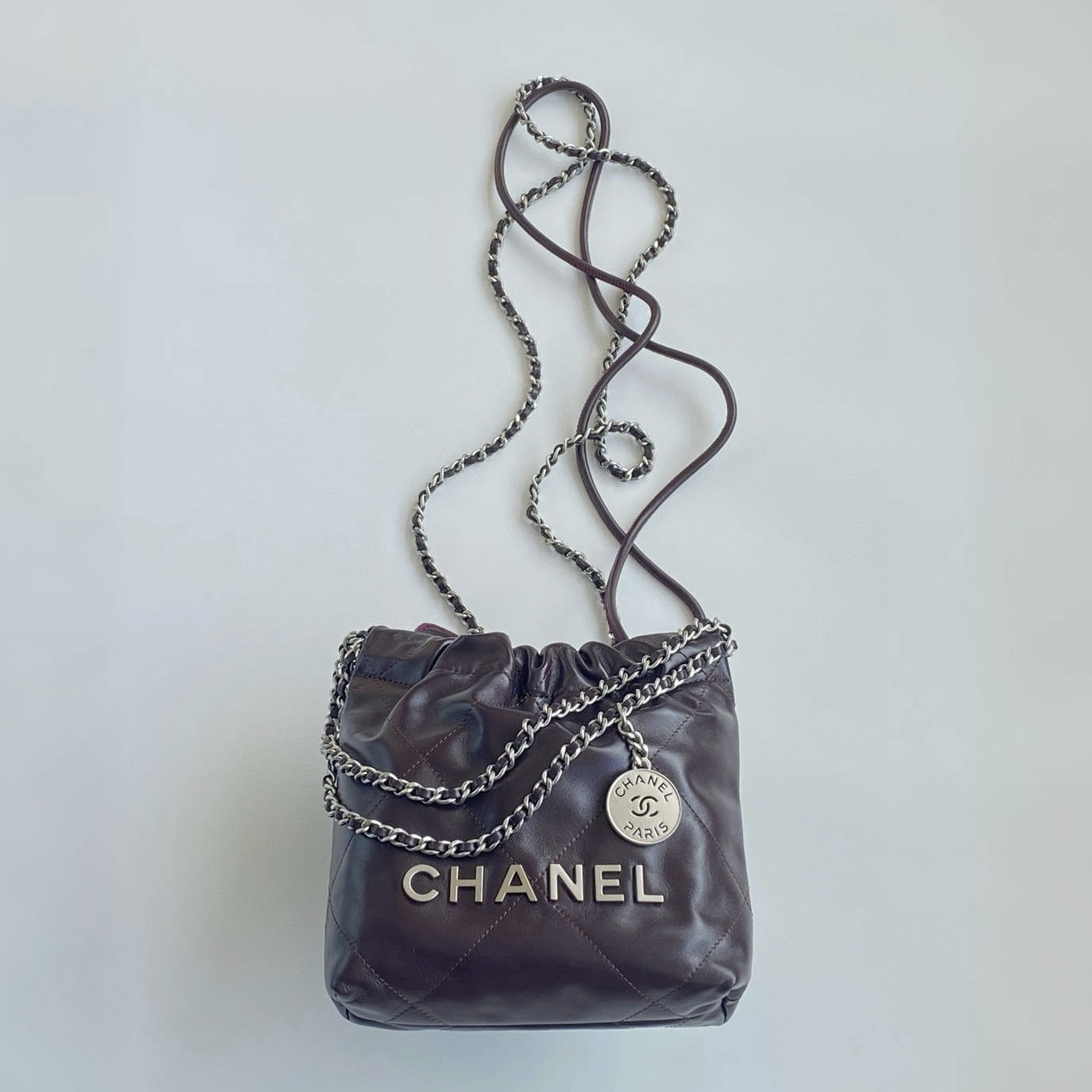 NIGO Chanel 22 Mini Handbag Shiny Calfskin Gold-tone Metal #nigo319128