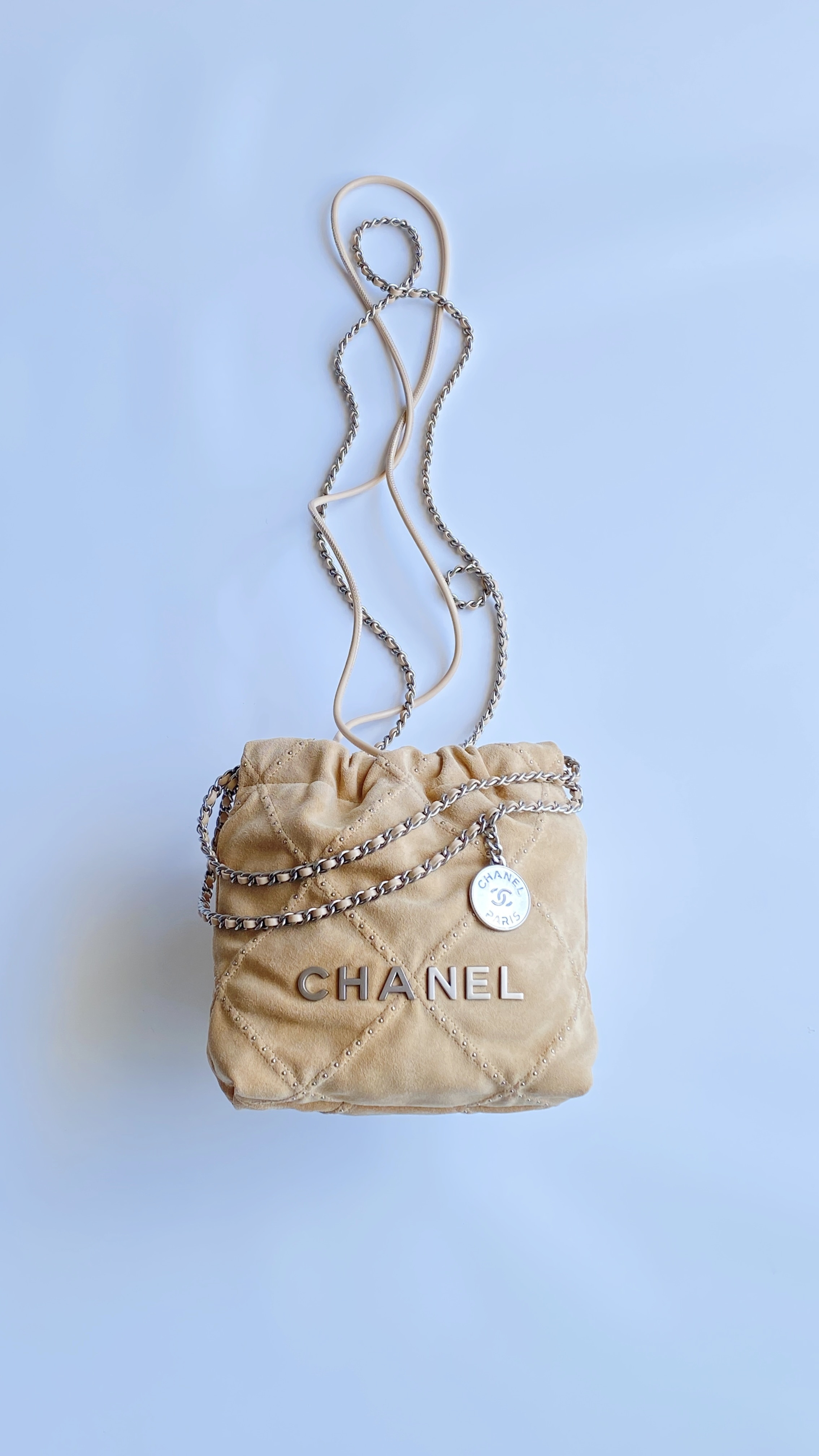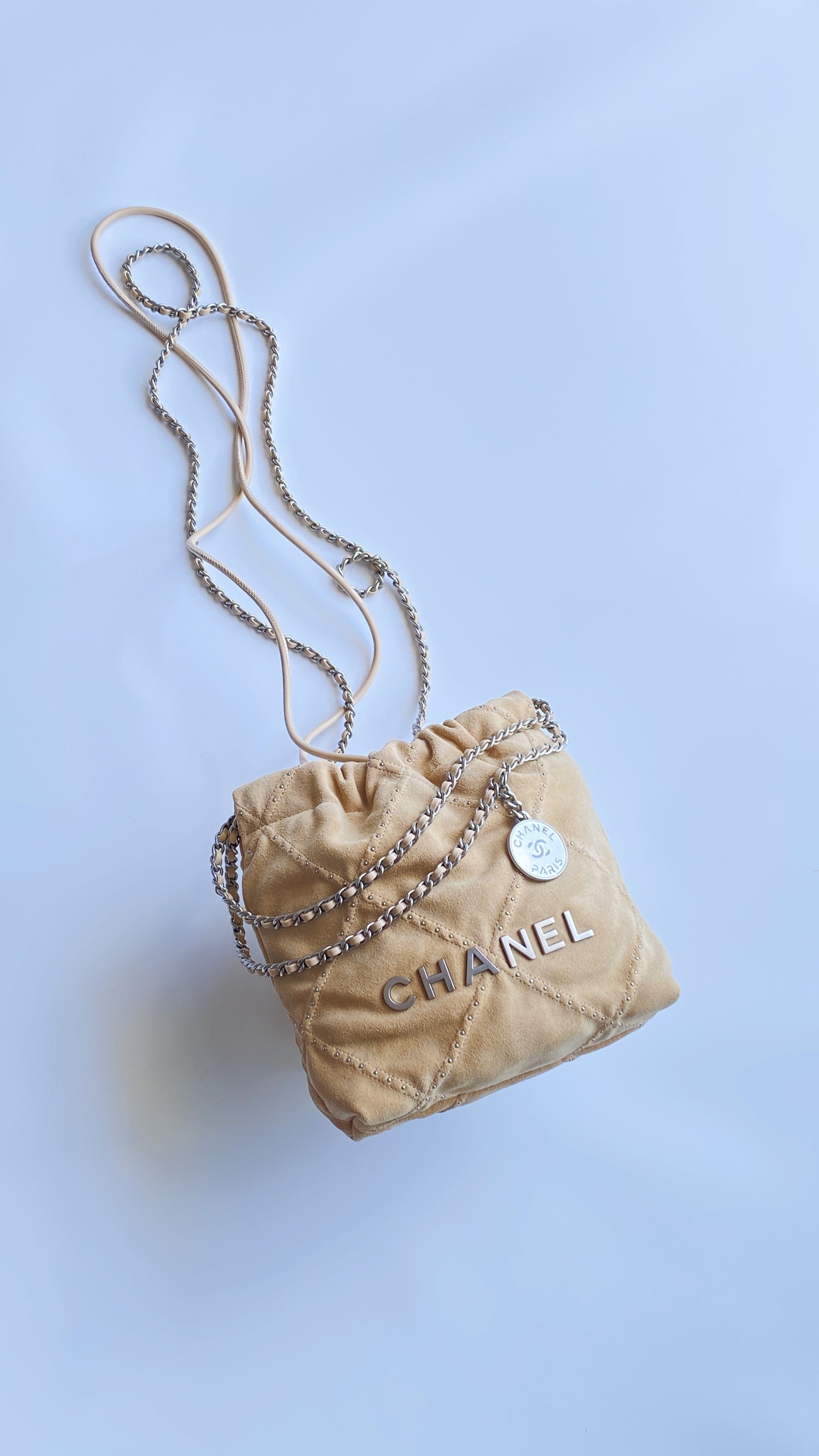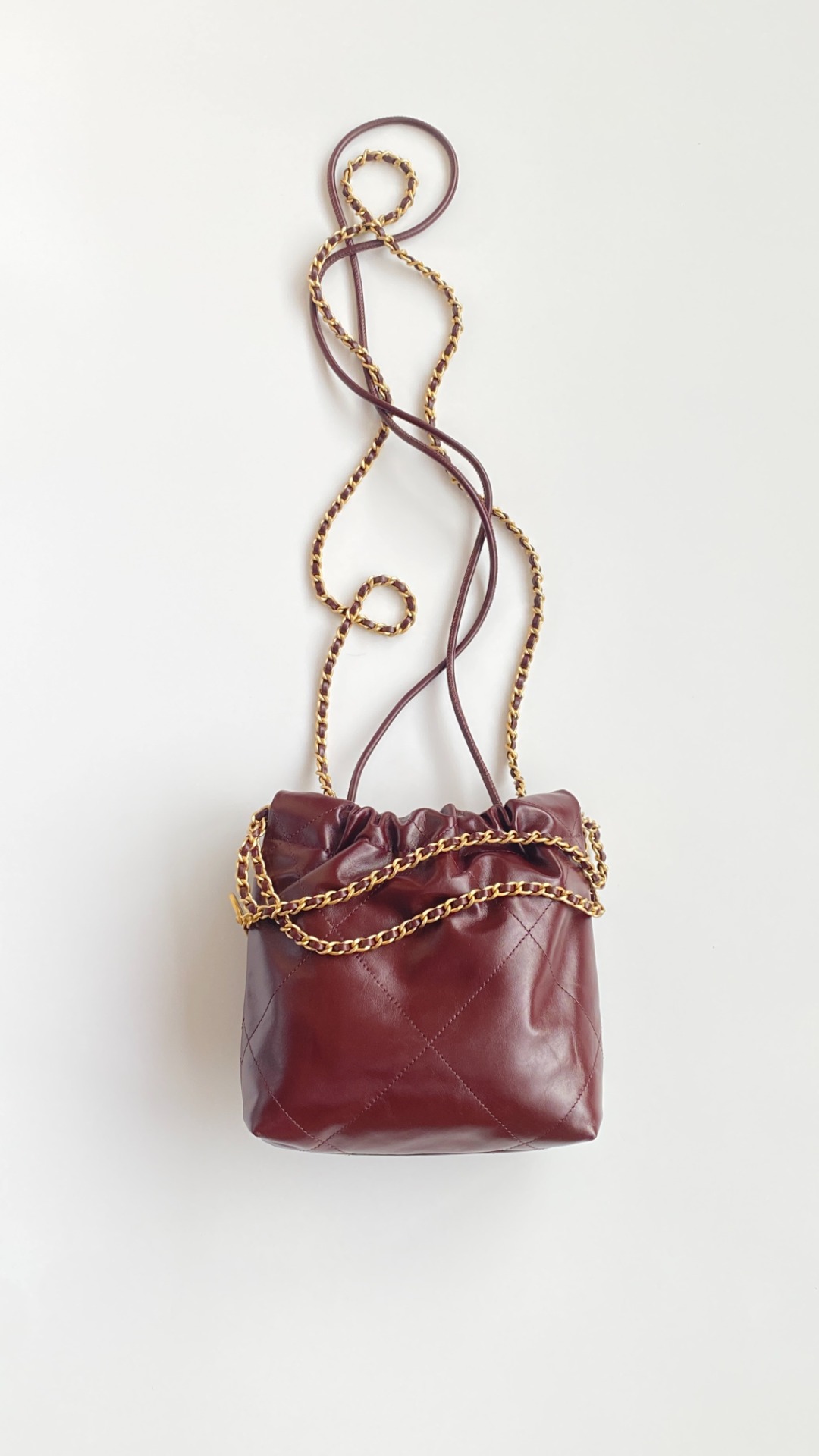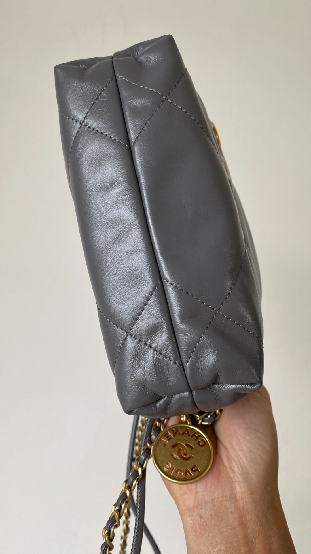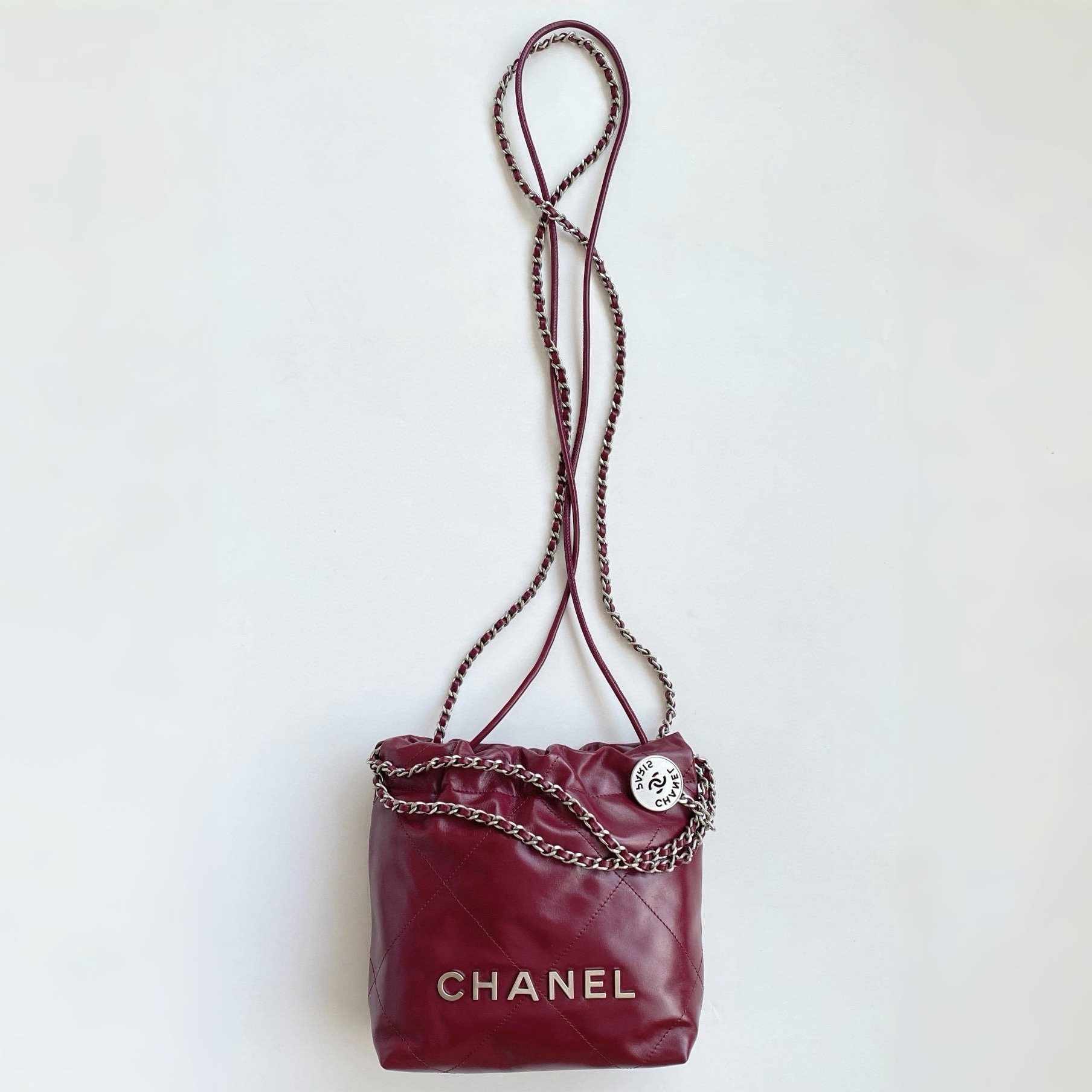 NIGO Chanel 22 Mini Handbag Shiny Calfskin Gold-tone Metal #nigo319128