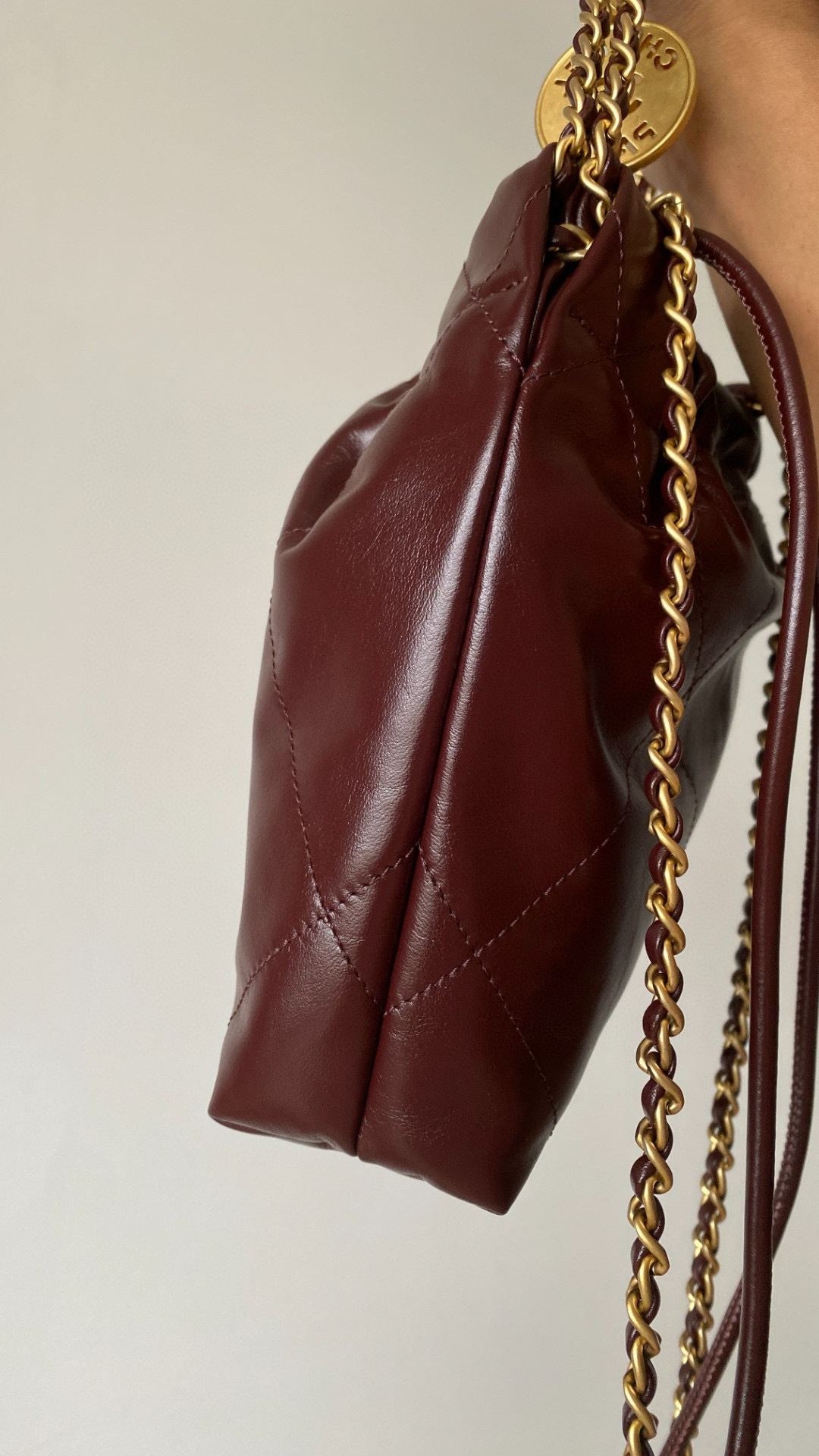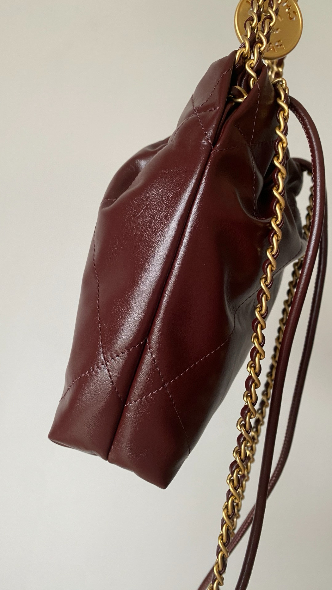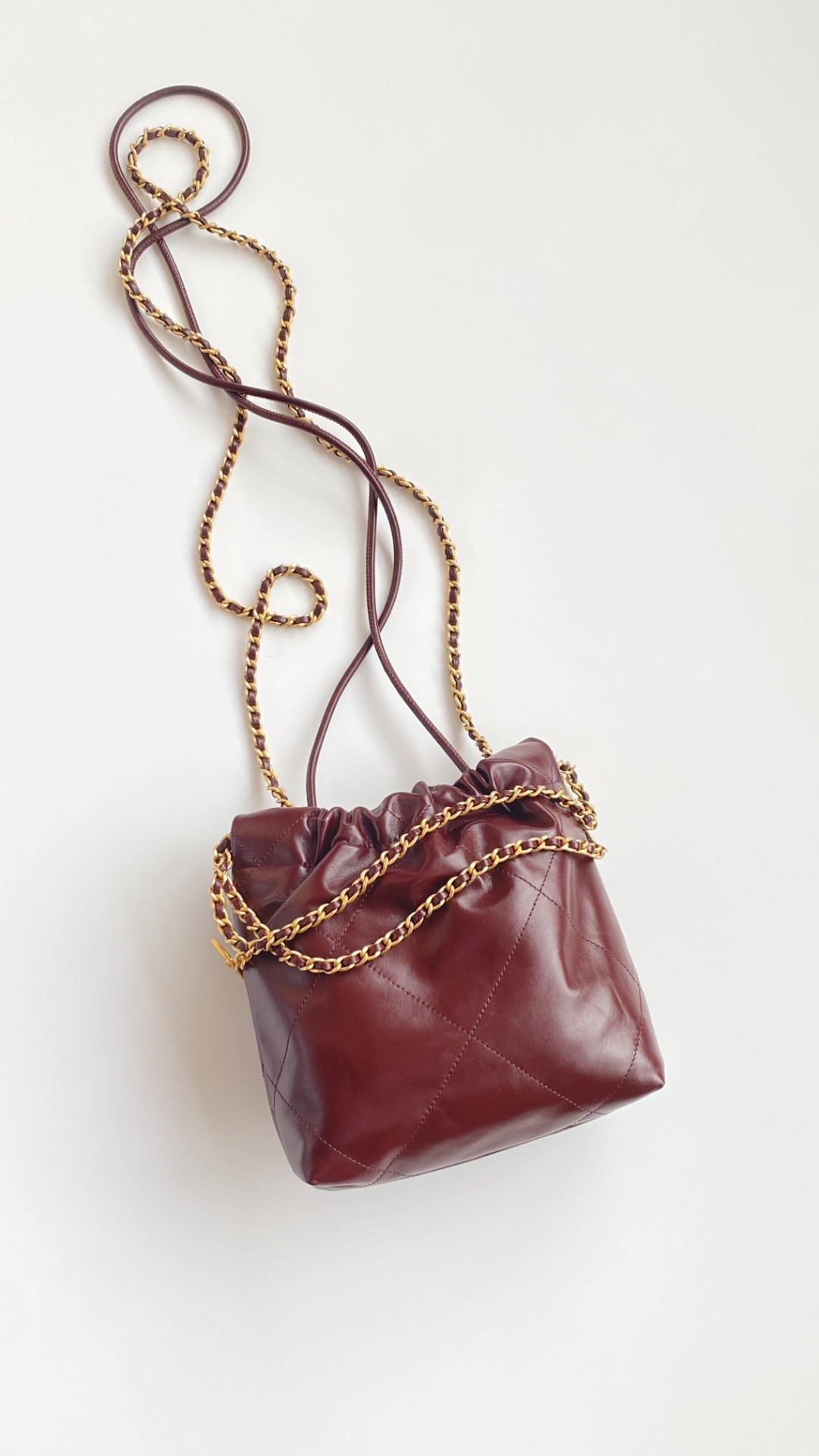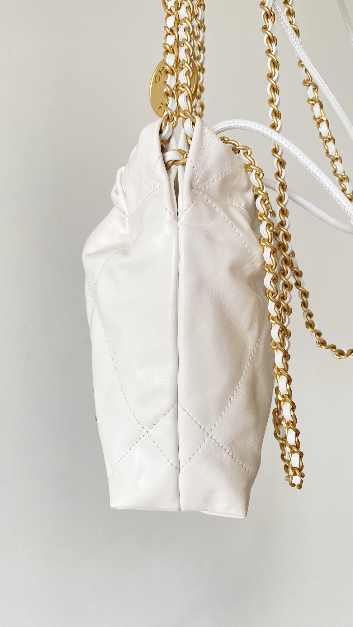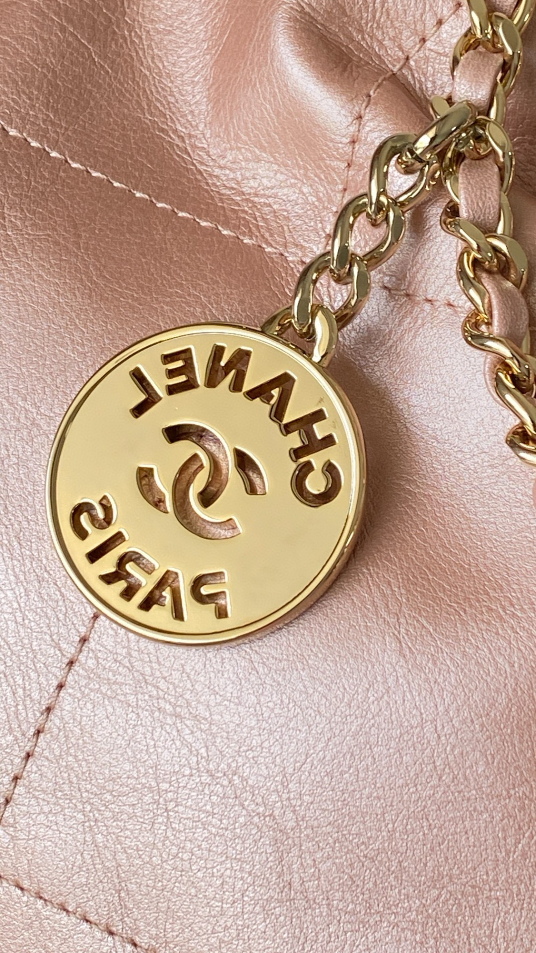 NIGO Chanel 22 Mini Handbag Shiny Calfskin Gold-tone Metal #nigo319128