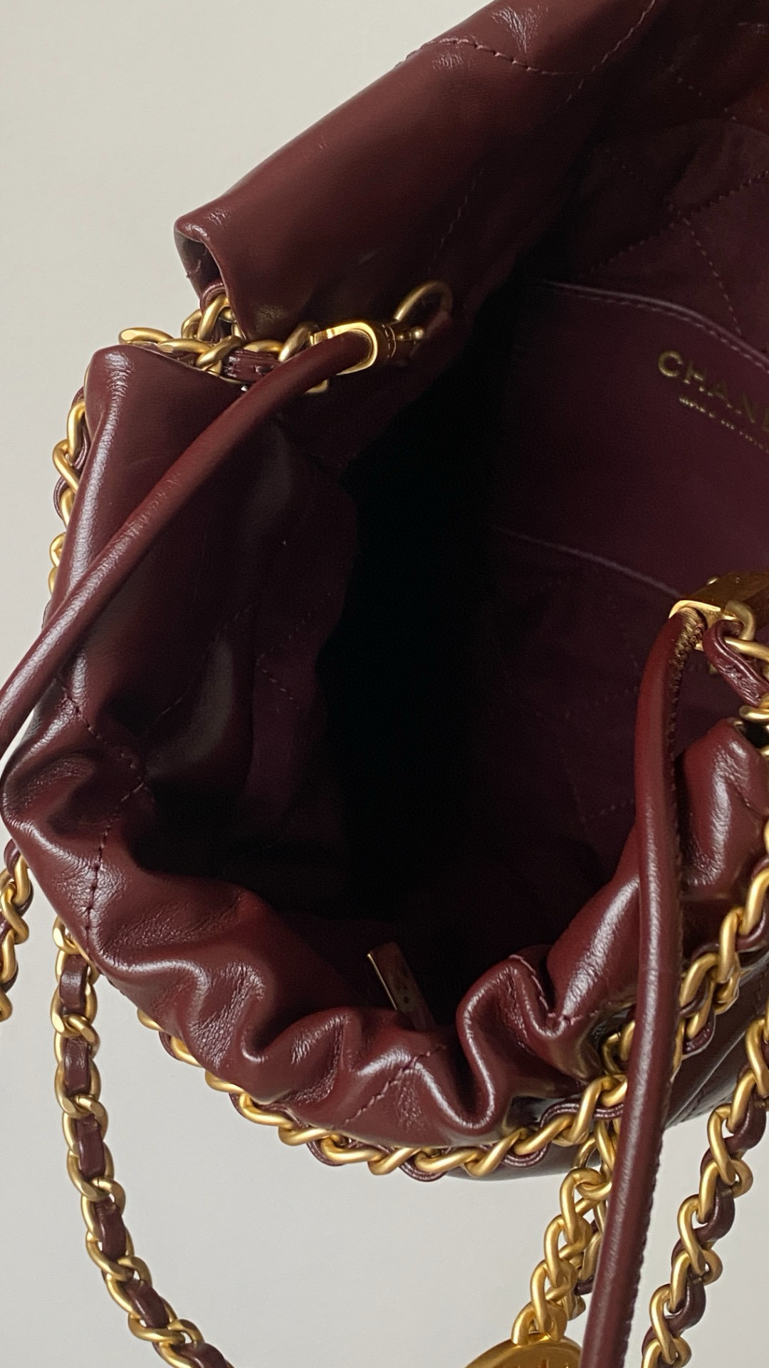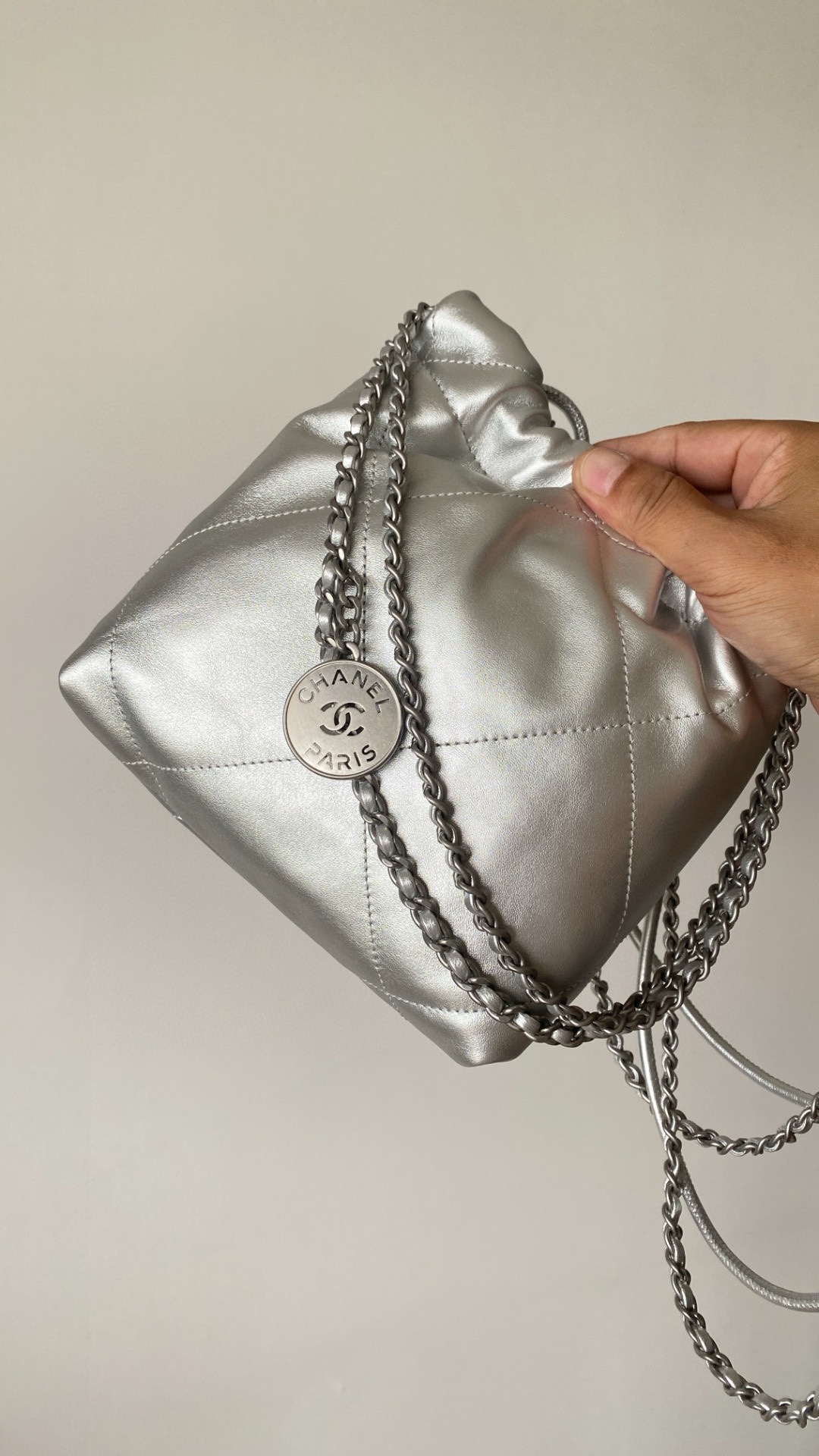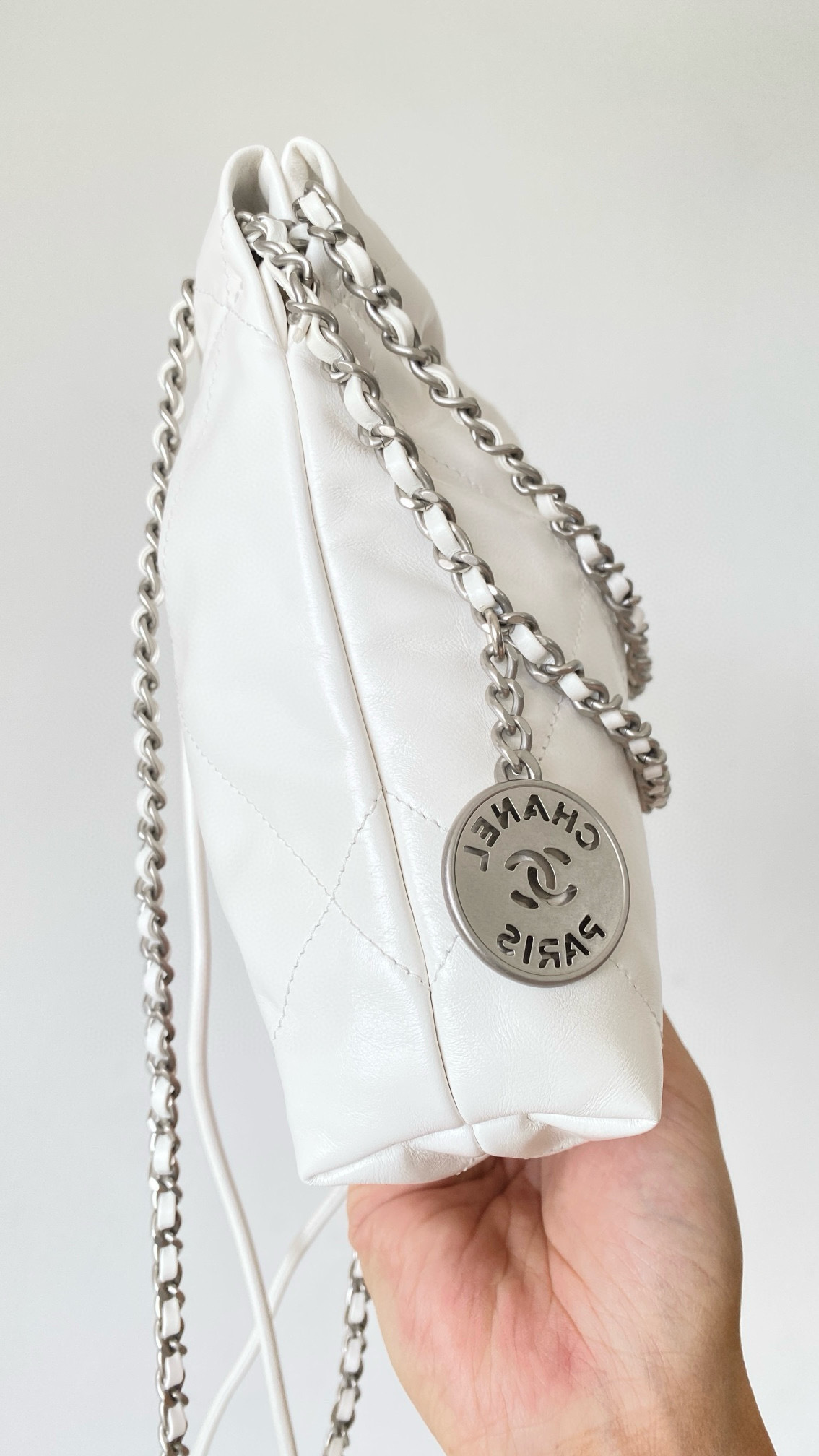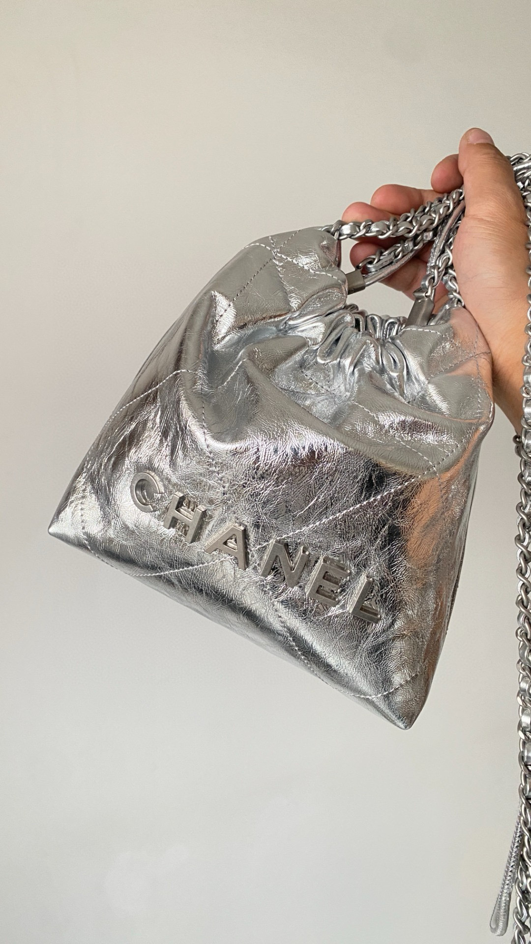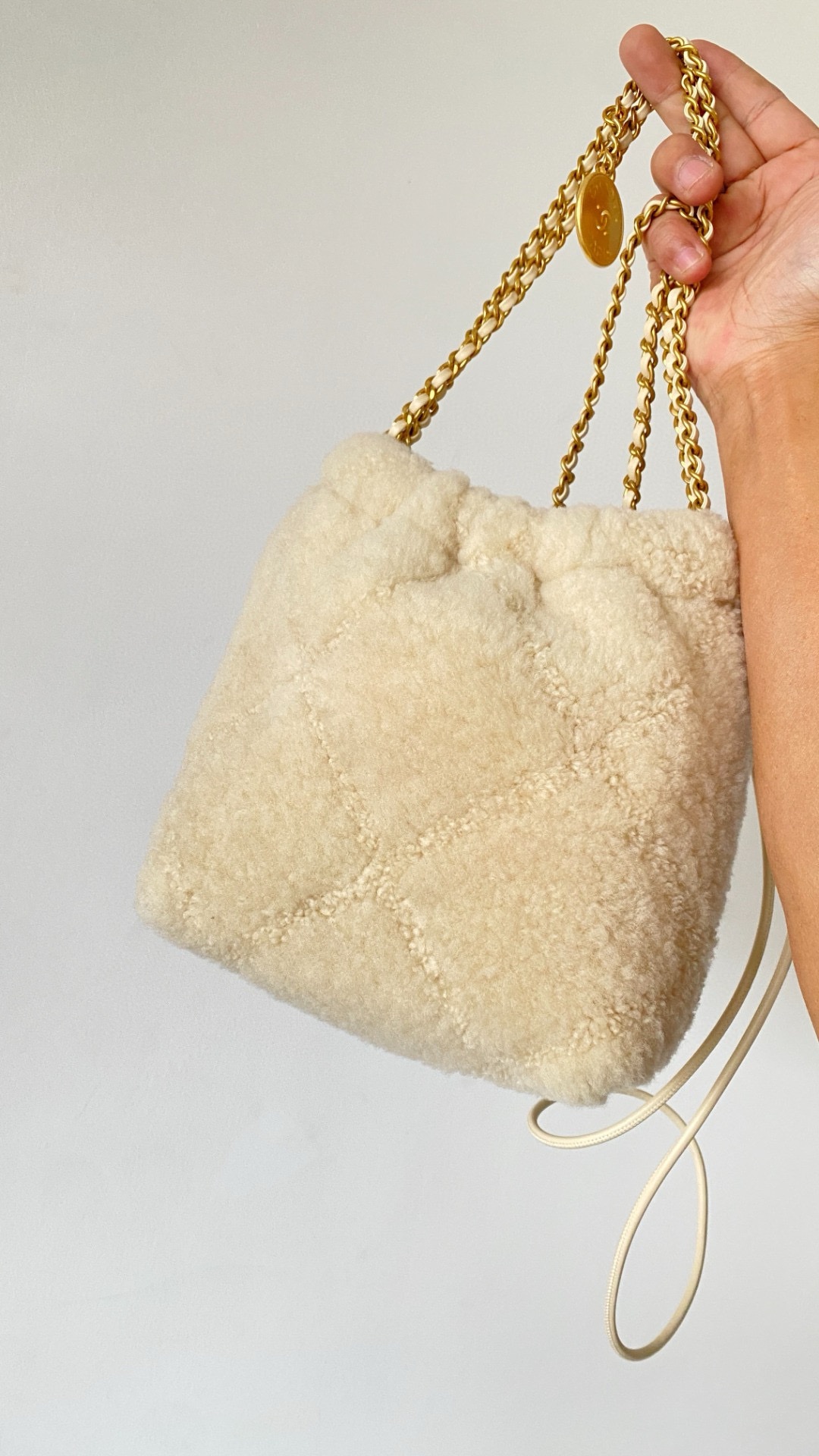 NIGO Chanel 22 Mini Handbag Shiny Calfskin Gold-tone Metal #nigo319128