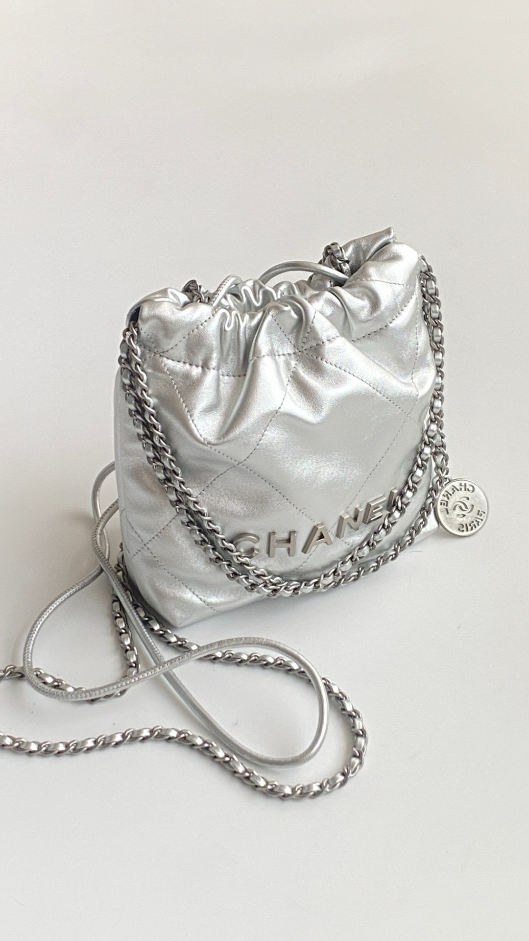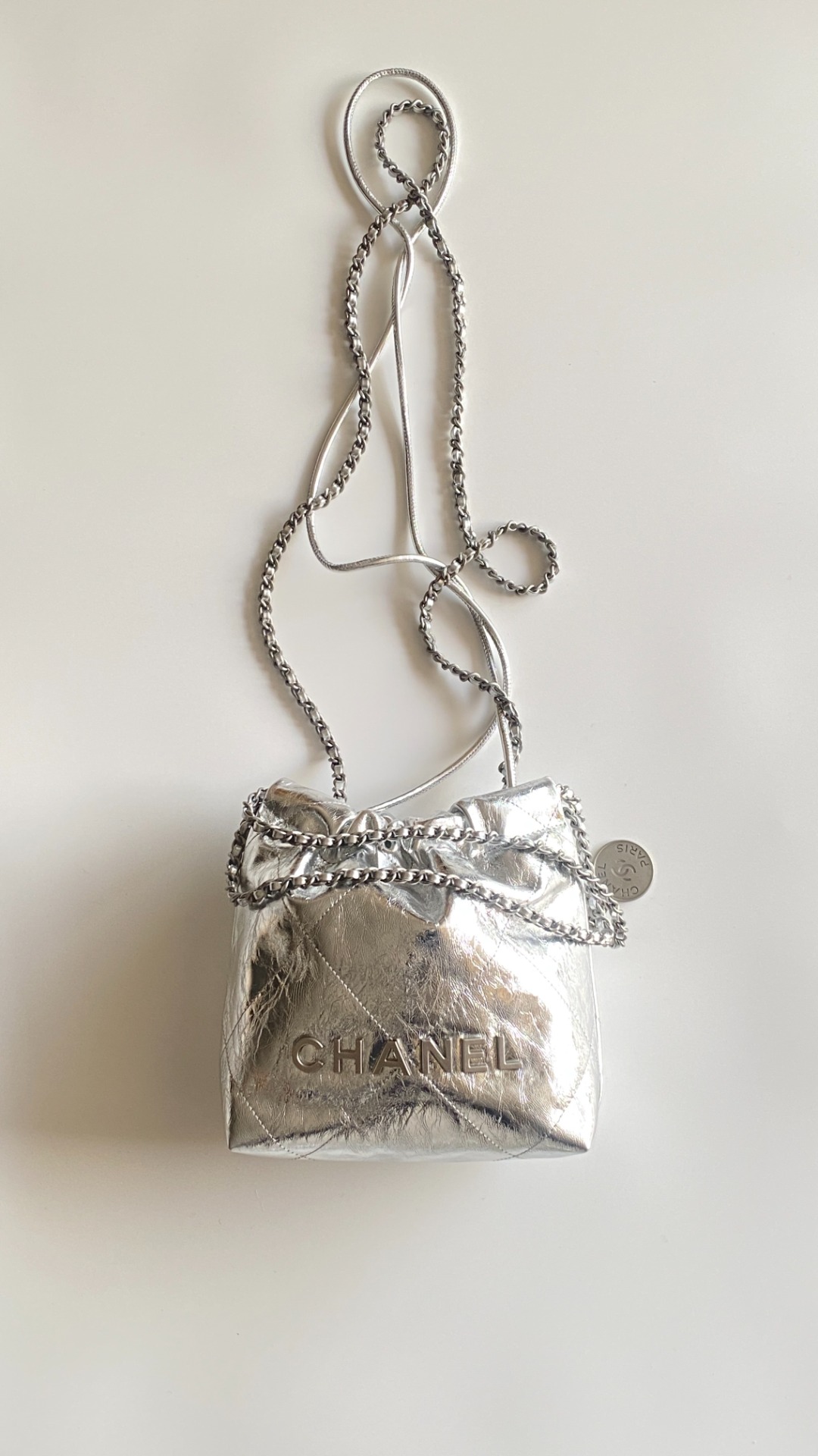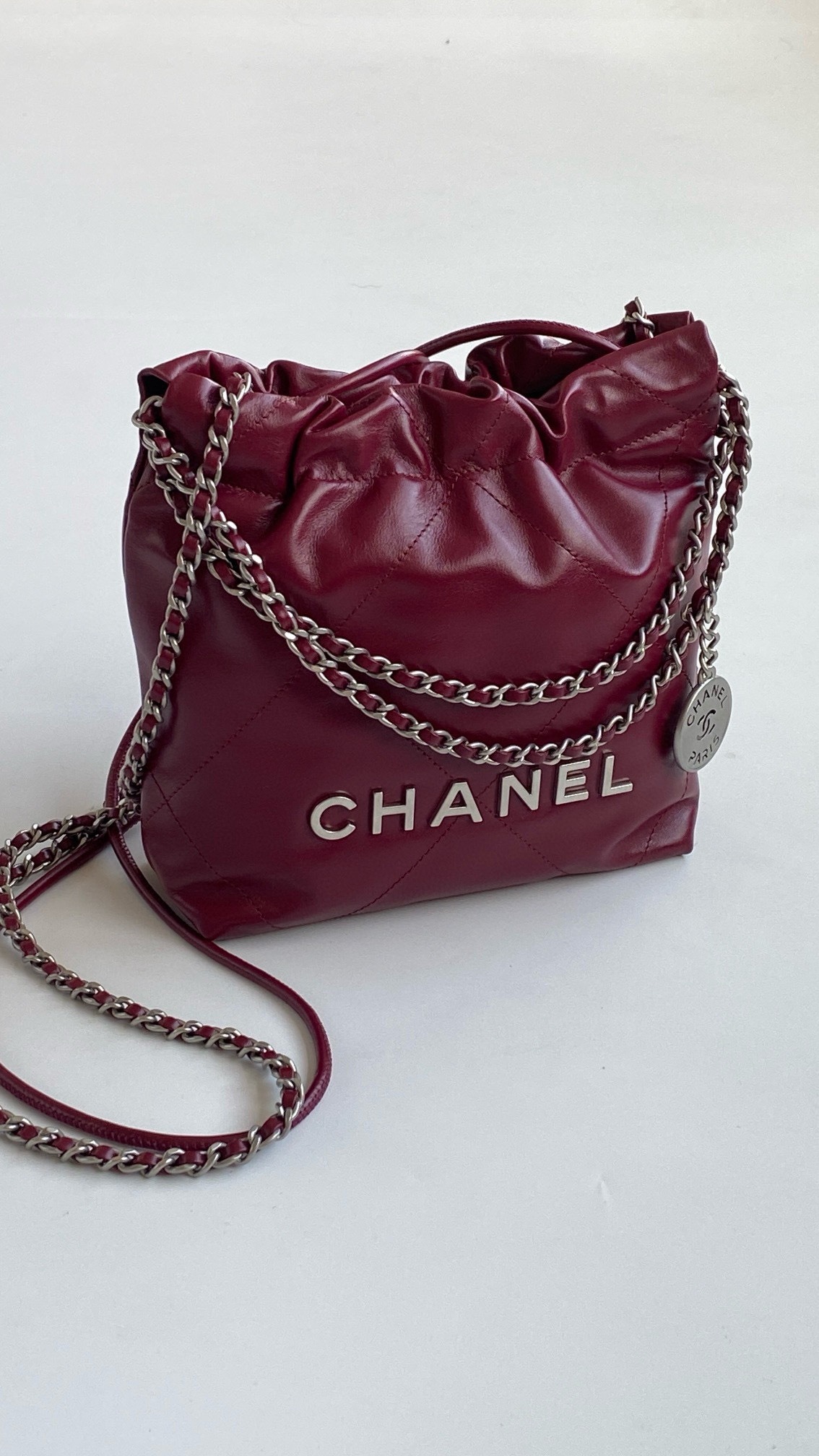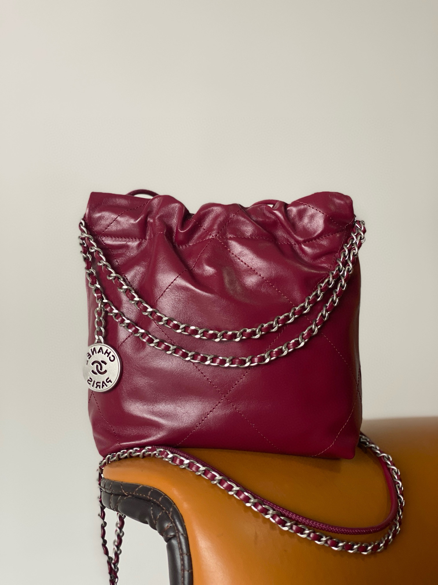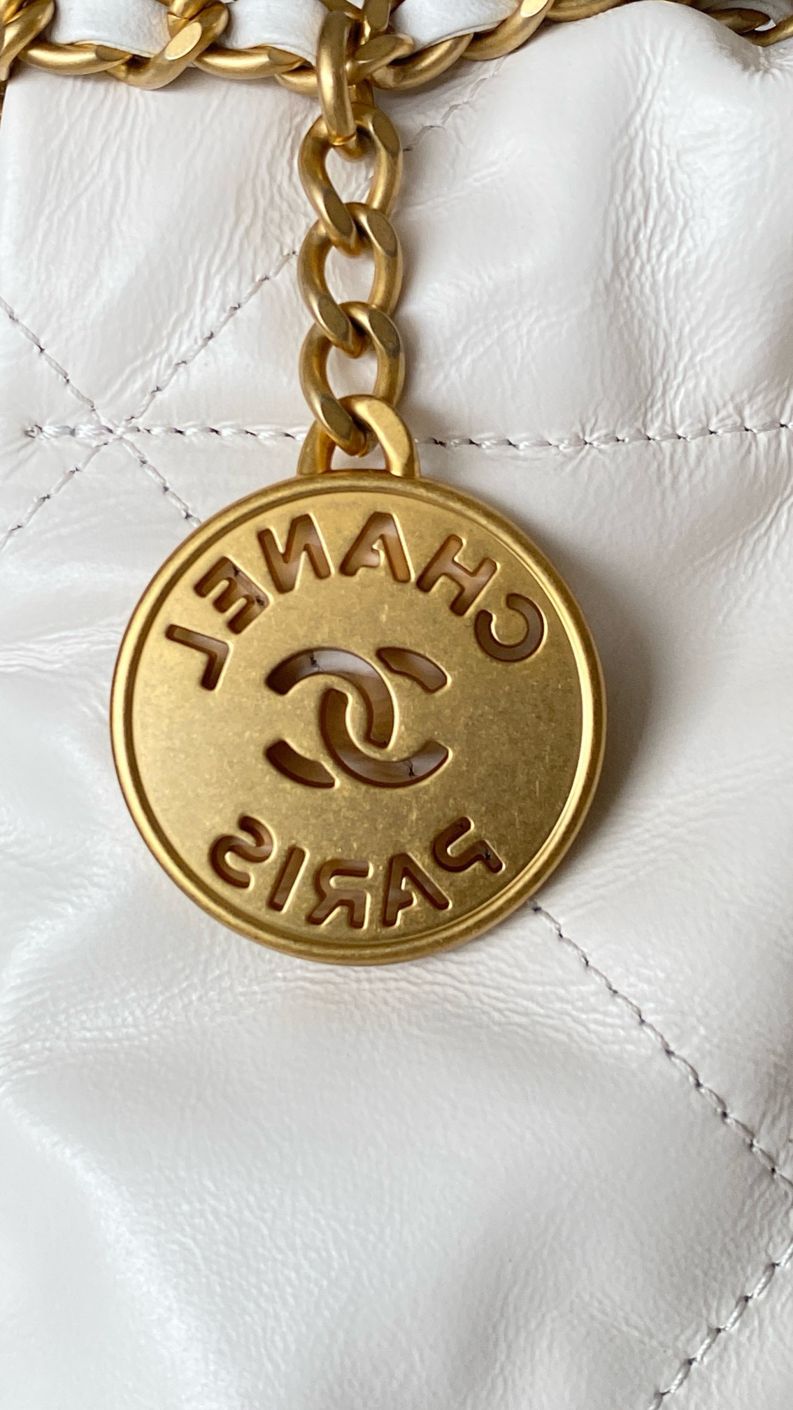 NIGO Chanel 22 Mini Handbag Shiny Calfskin Gold-tone Metal #nigo319128