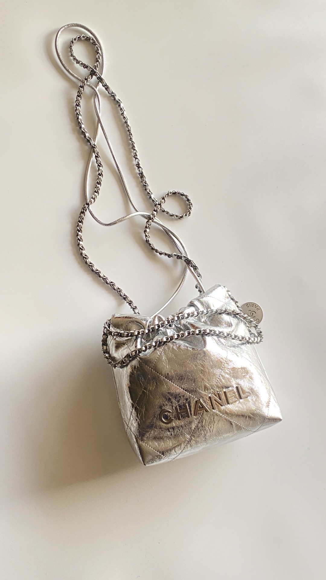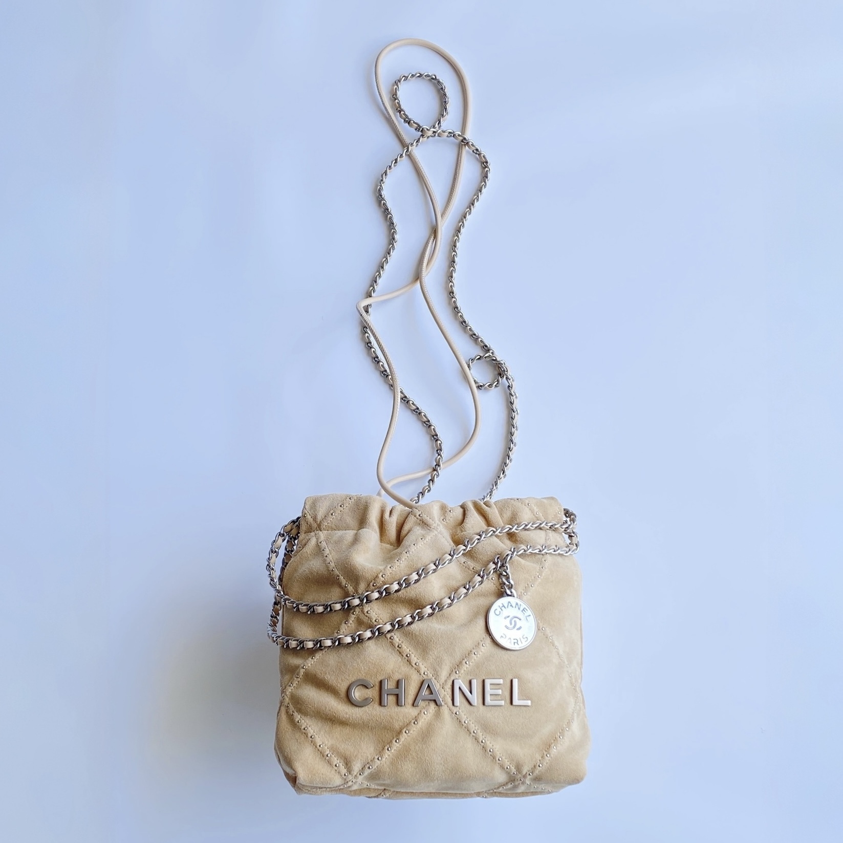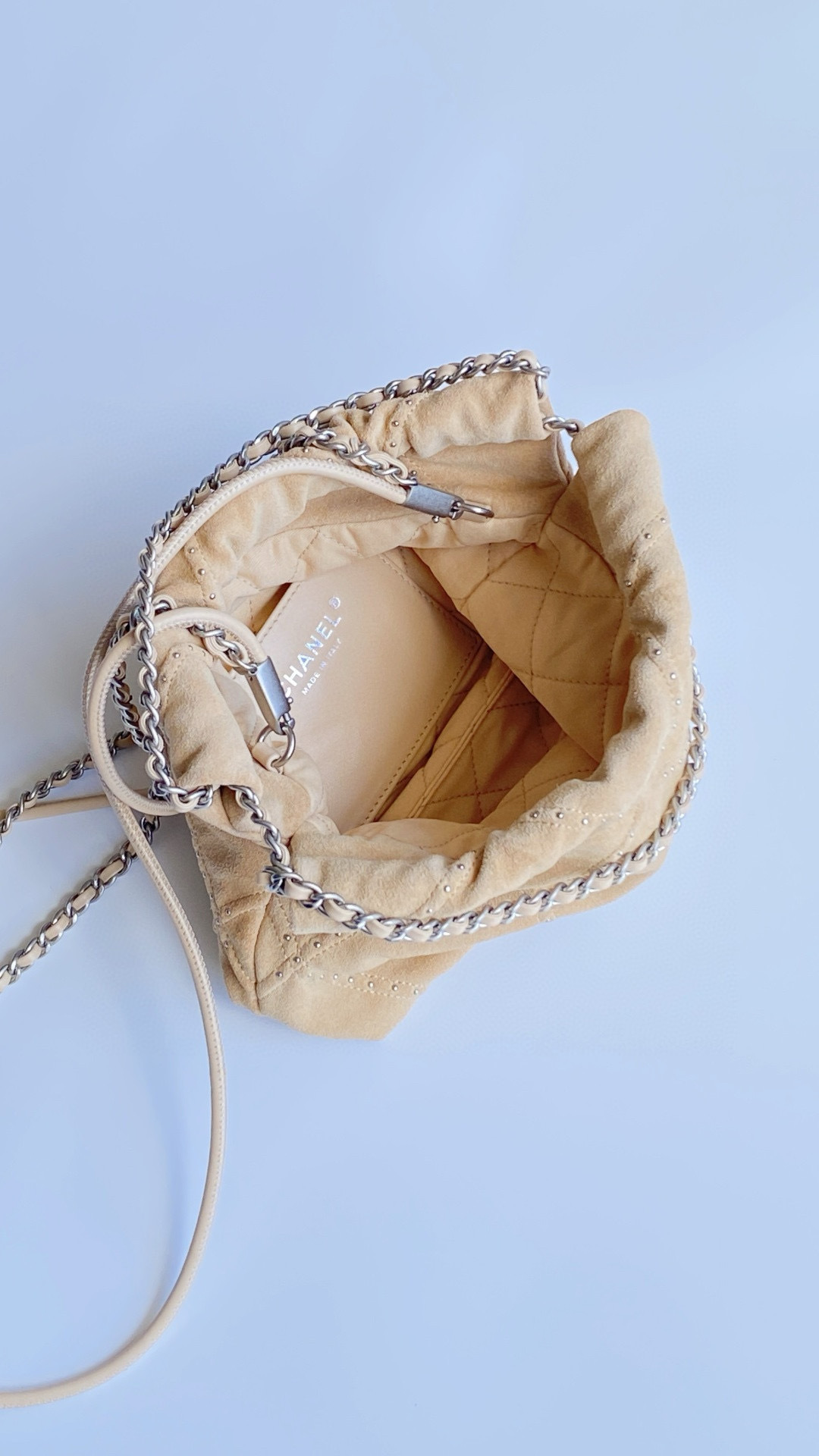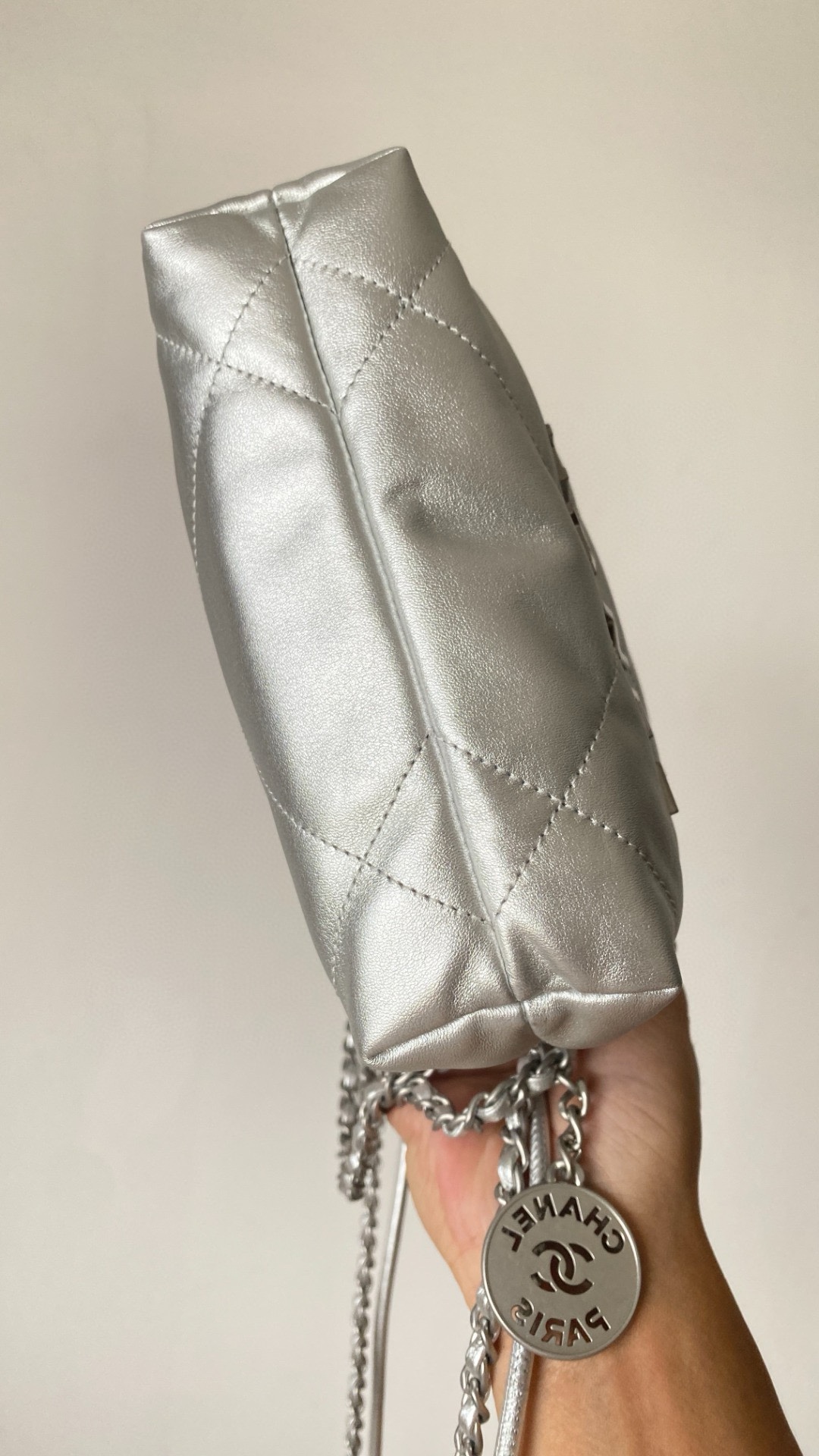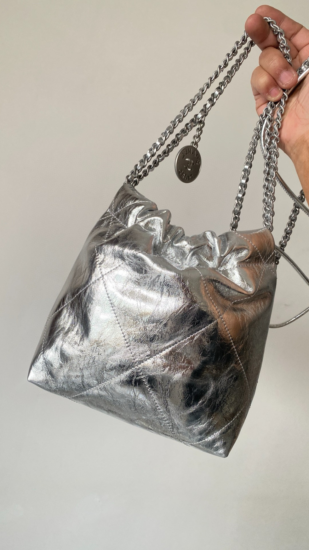 NIGO Chanel 22 Mini Handbag Shiny Calfskin Gold-tone Metal #nigo319128