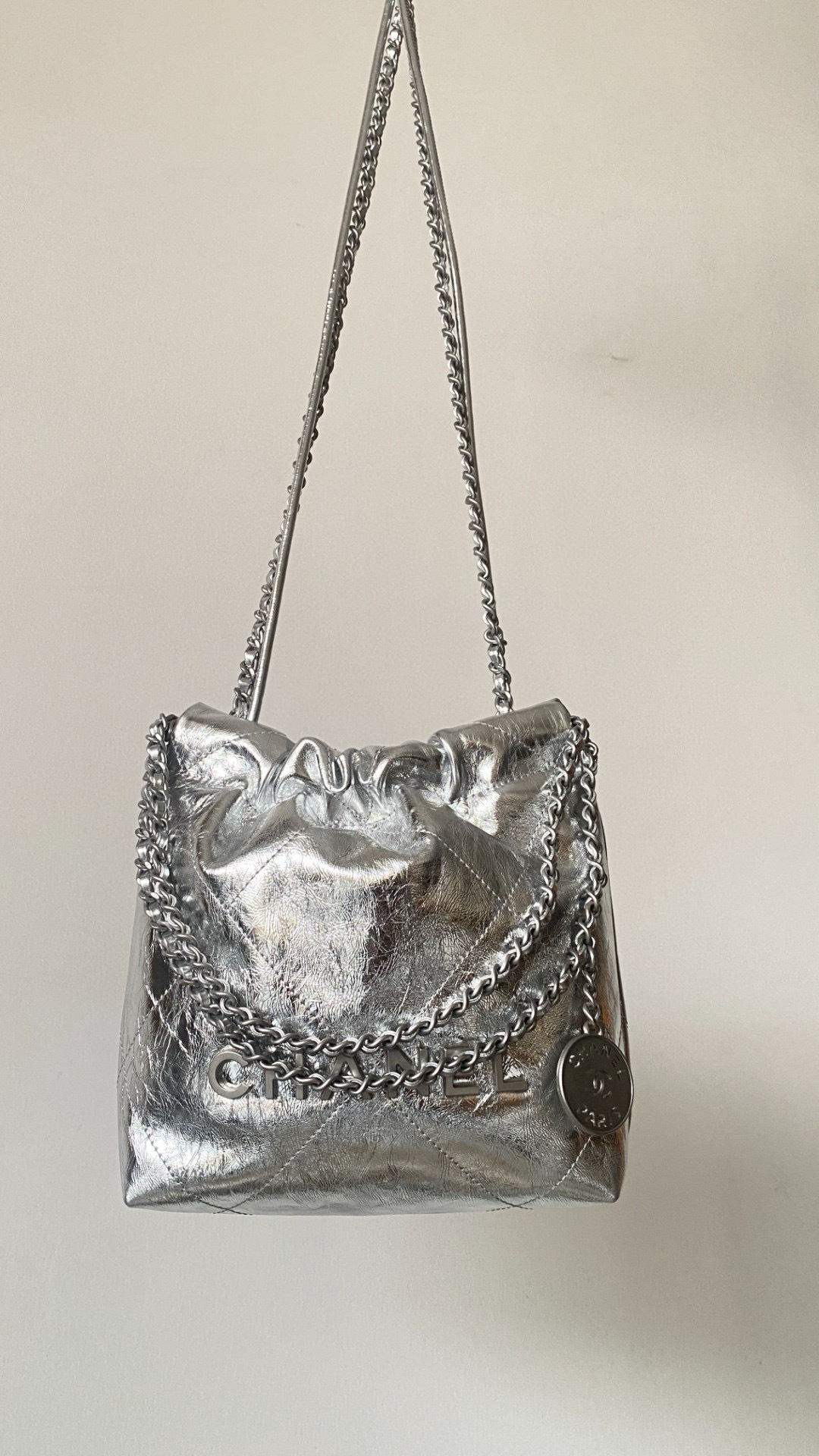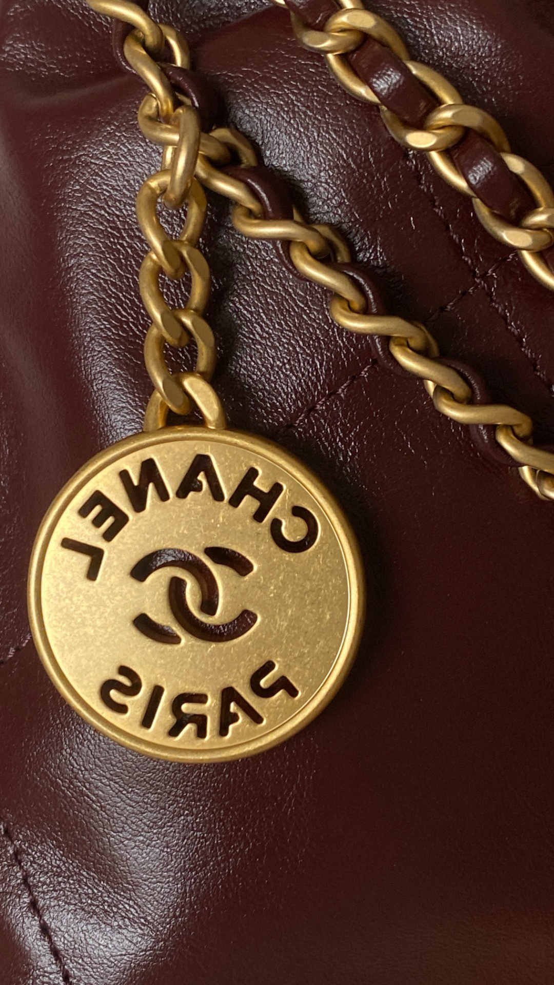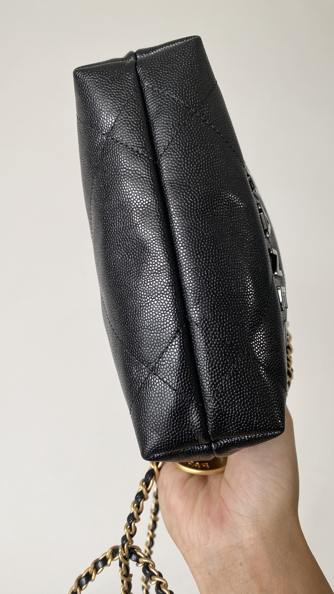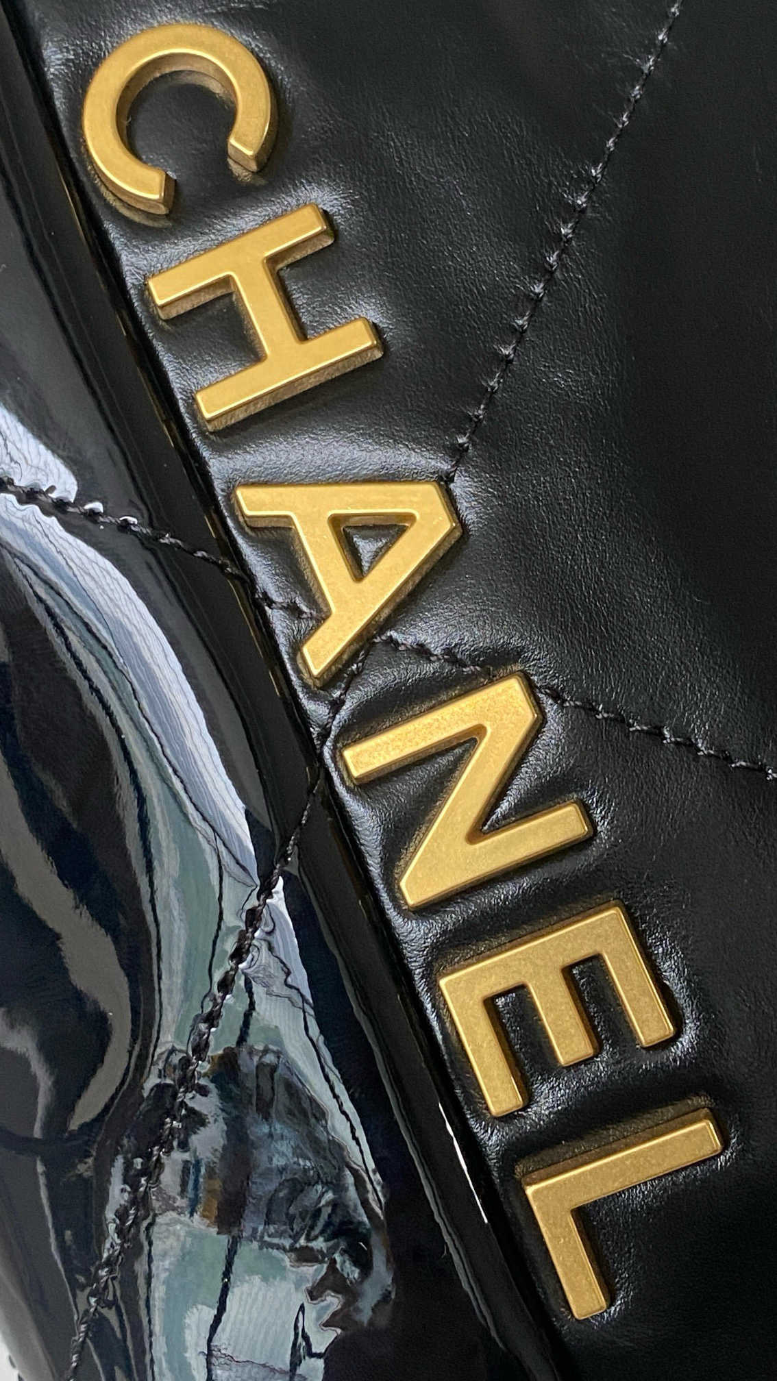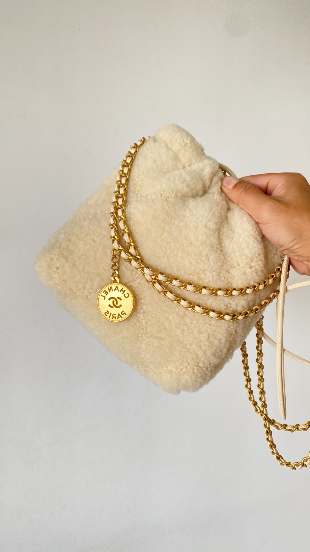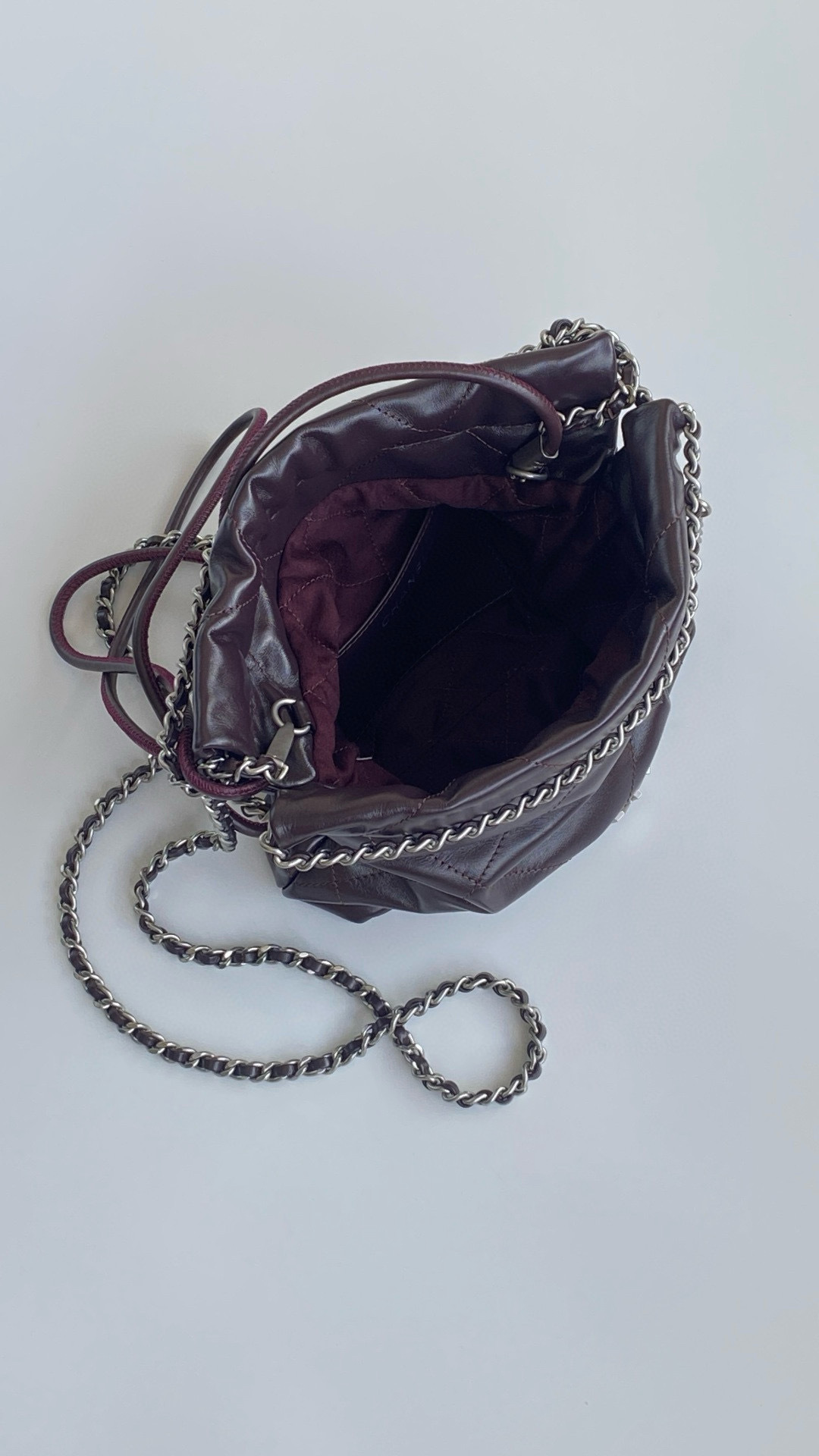 NIGO Chanel 22 Mini Handbag Shiny Calfskin Gold-tone Metal #nigo319128