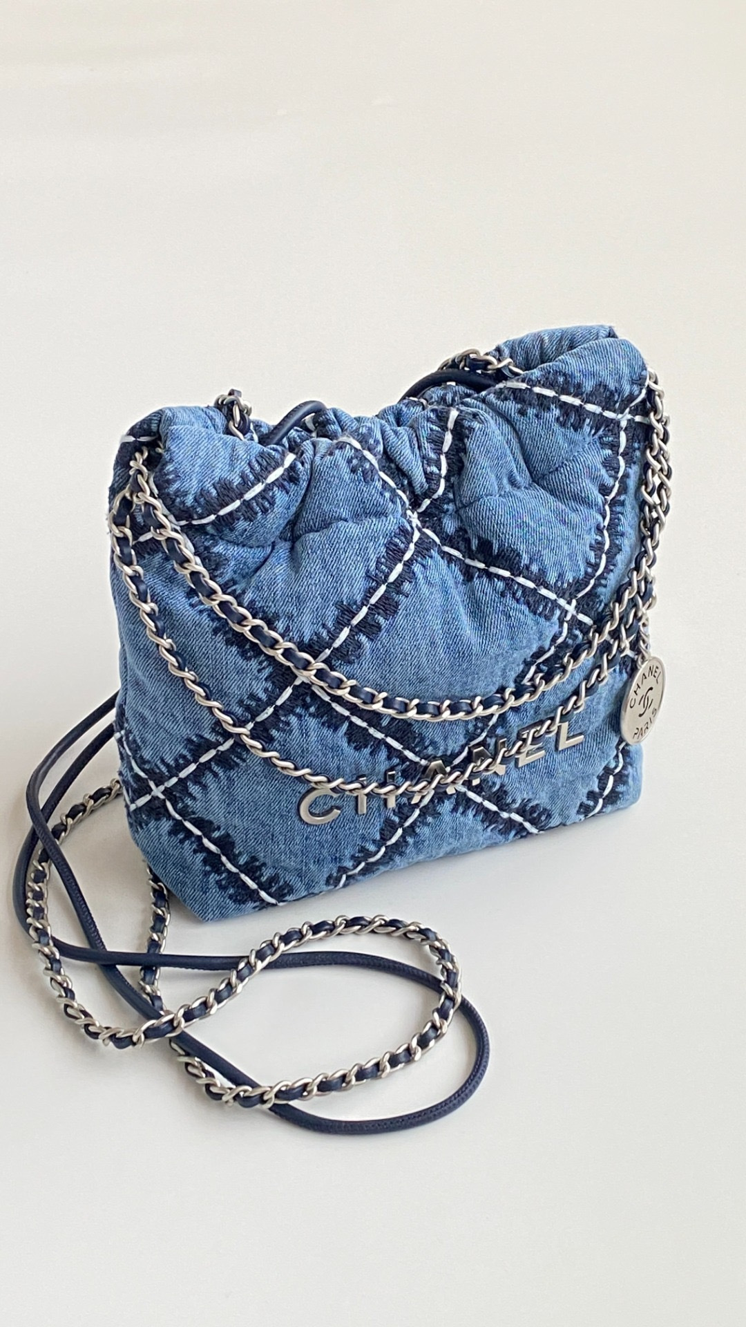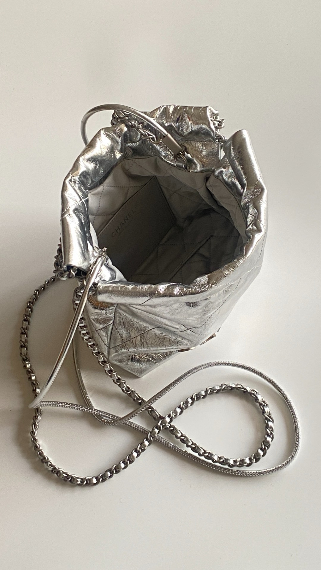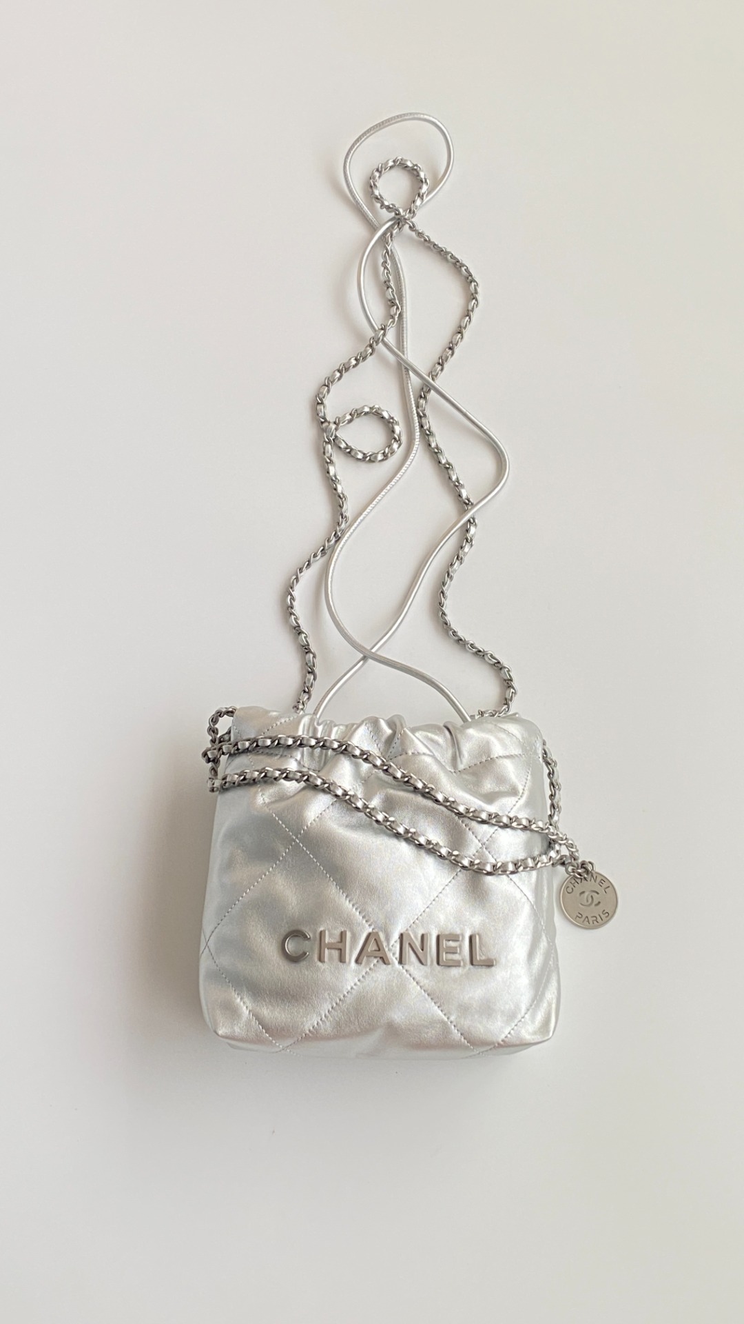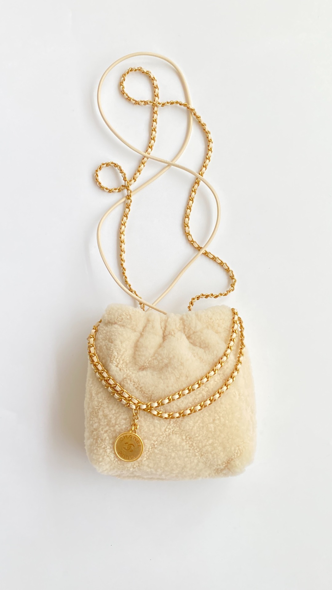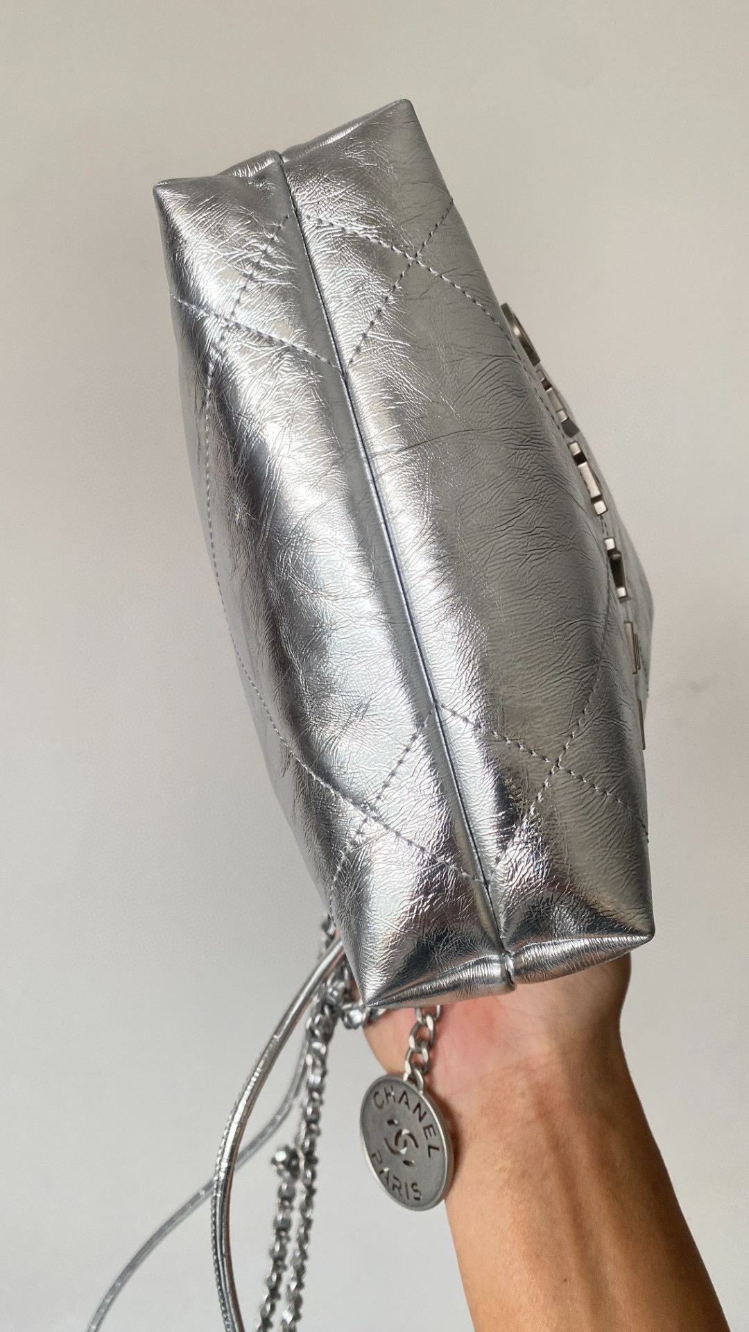 NIGO Chanel 22 Mini Handbag Shiny Calfskin Gold-tone Metal #nigo319128