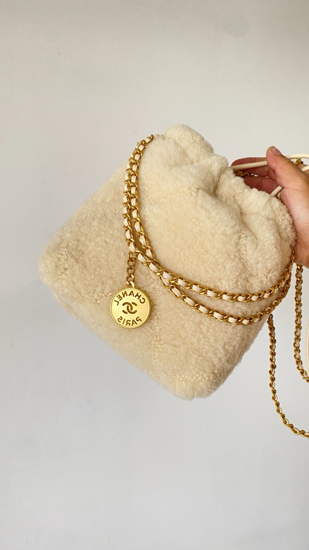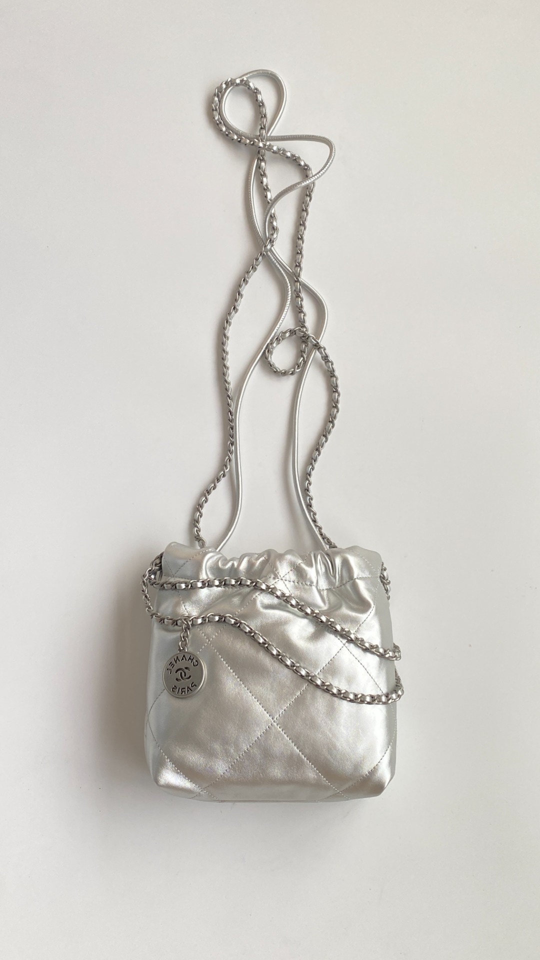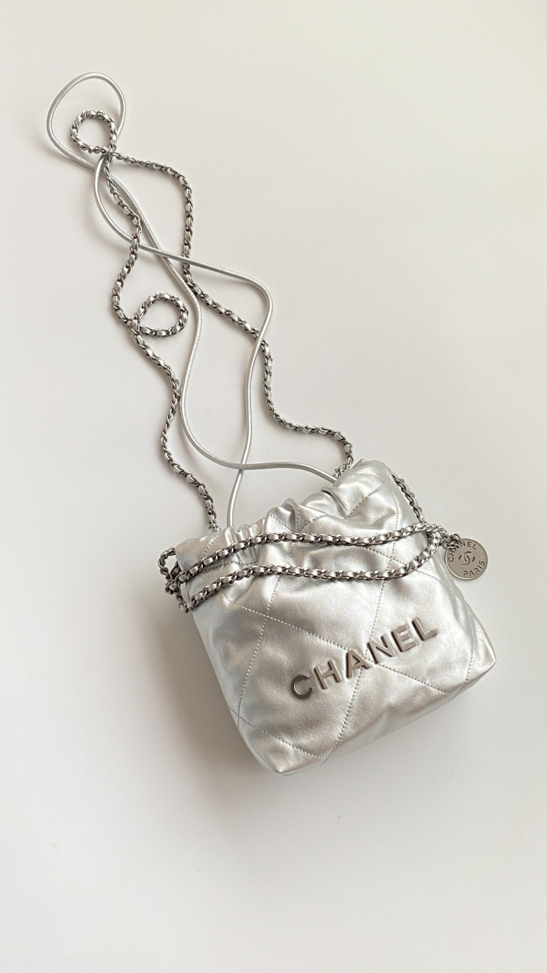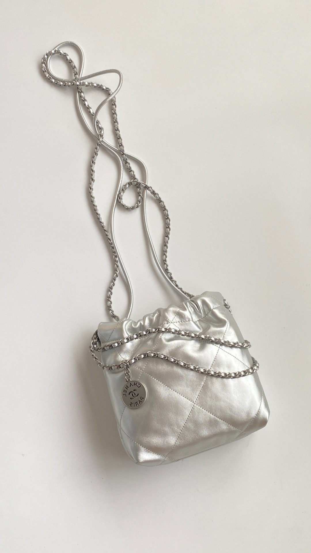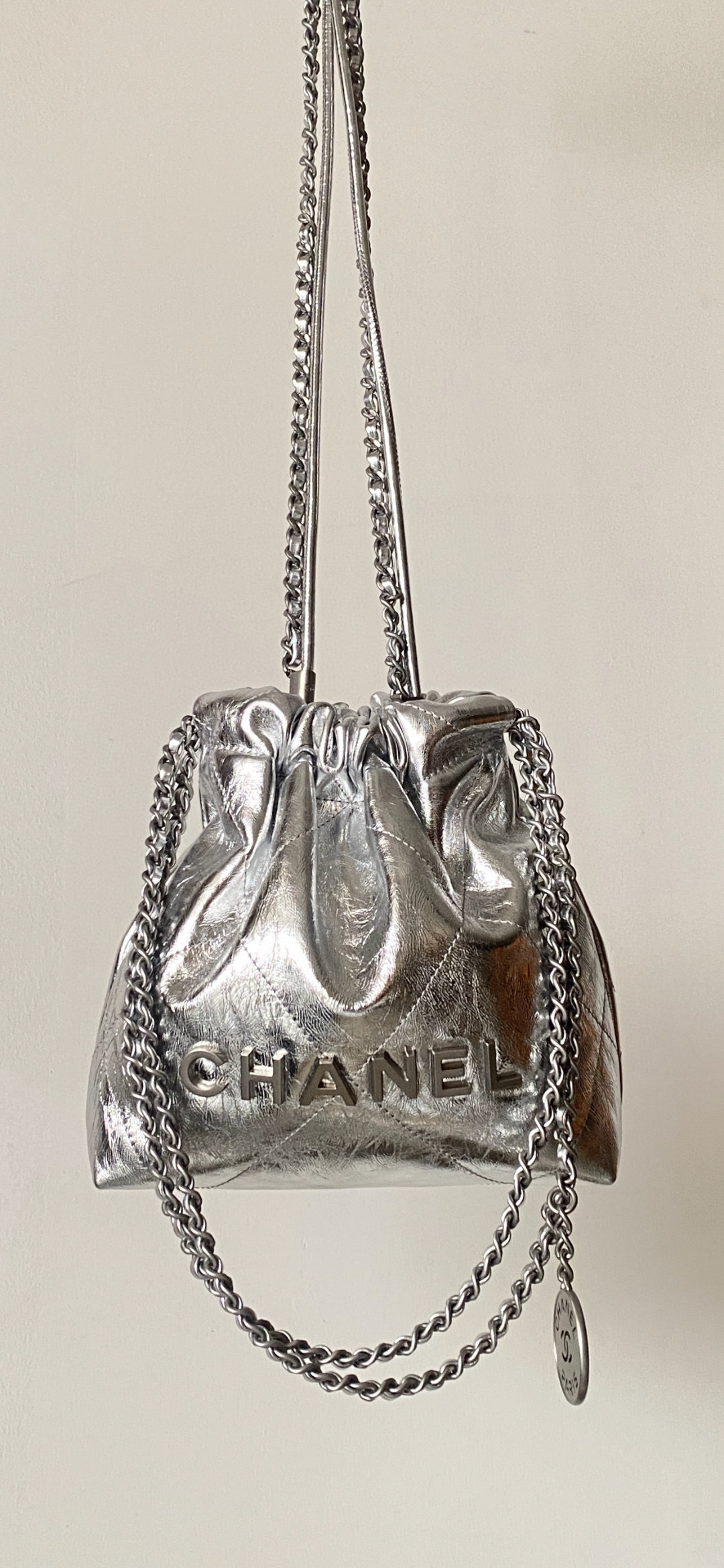 NIGO Chanel 22 Mini Handbag Shiny Calfskin Gold-tone Metal #nigo319128